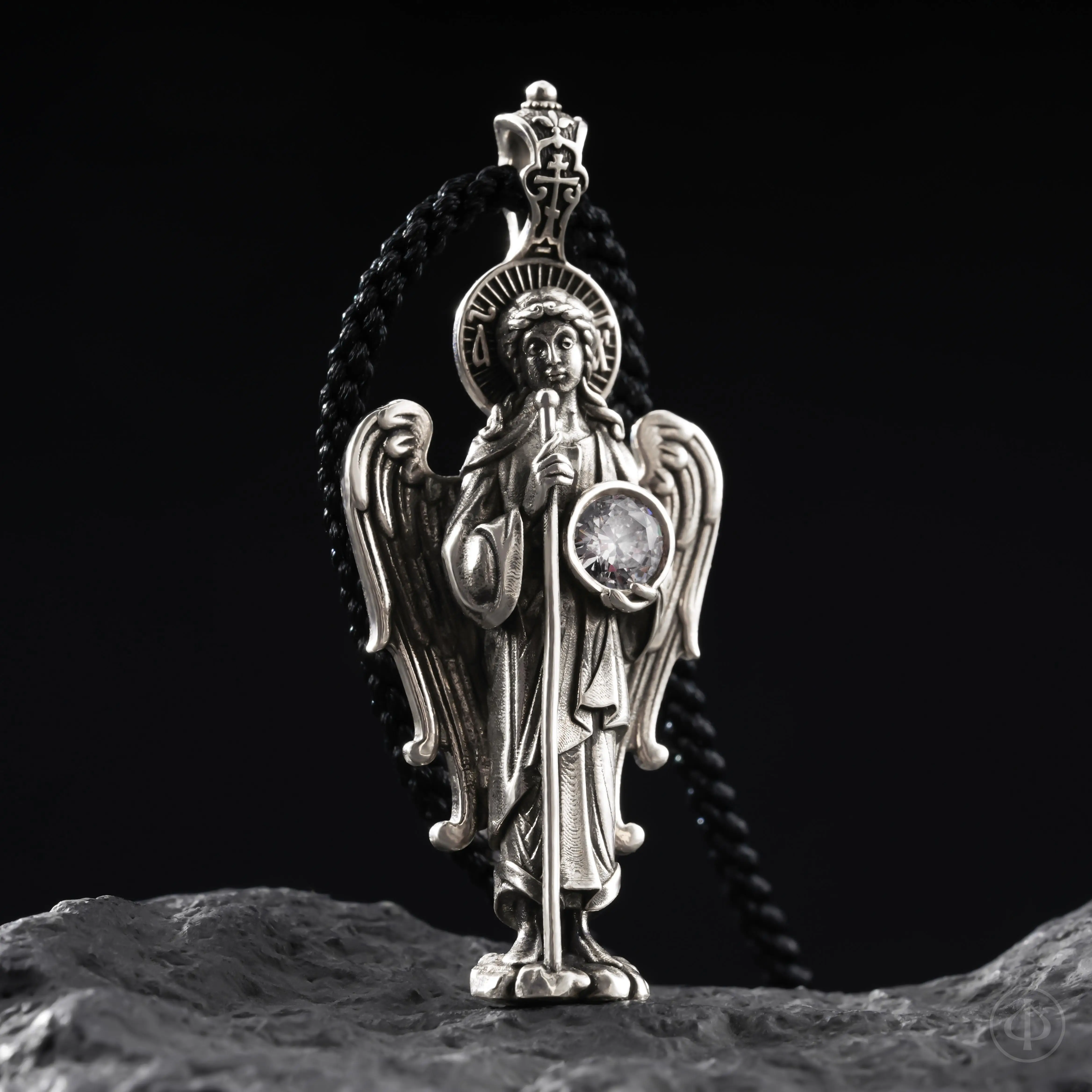 Подвеска из золота 750 с бриллиантом. Ангел-хранитель – верный спутник православного человека, а тем более на Рождество. На ювелирном изделии изображён посох, олицетворяющий дар предвидения, которым Бог и наделил ангелов. За счёт сочетания белого драгоценного металла и бриллианта подвеска выглядит аристократично и элегантно: то, что нужно для зимних образов.