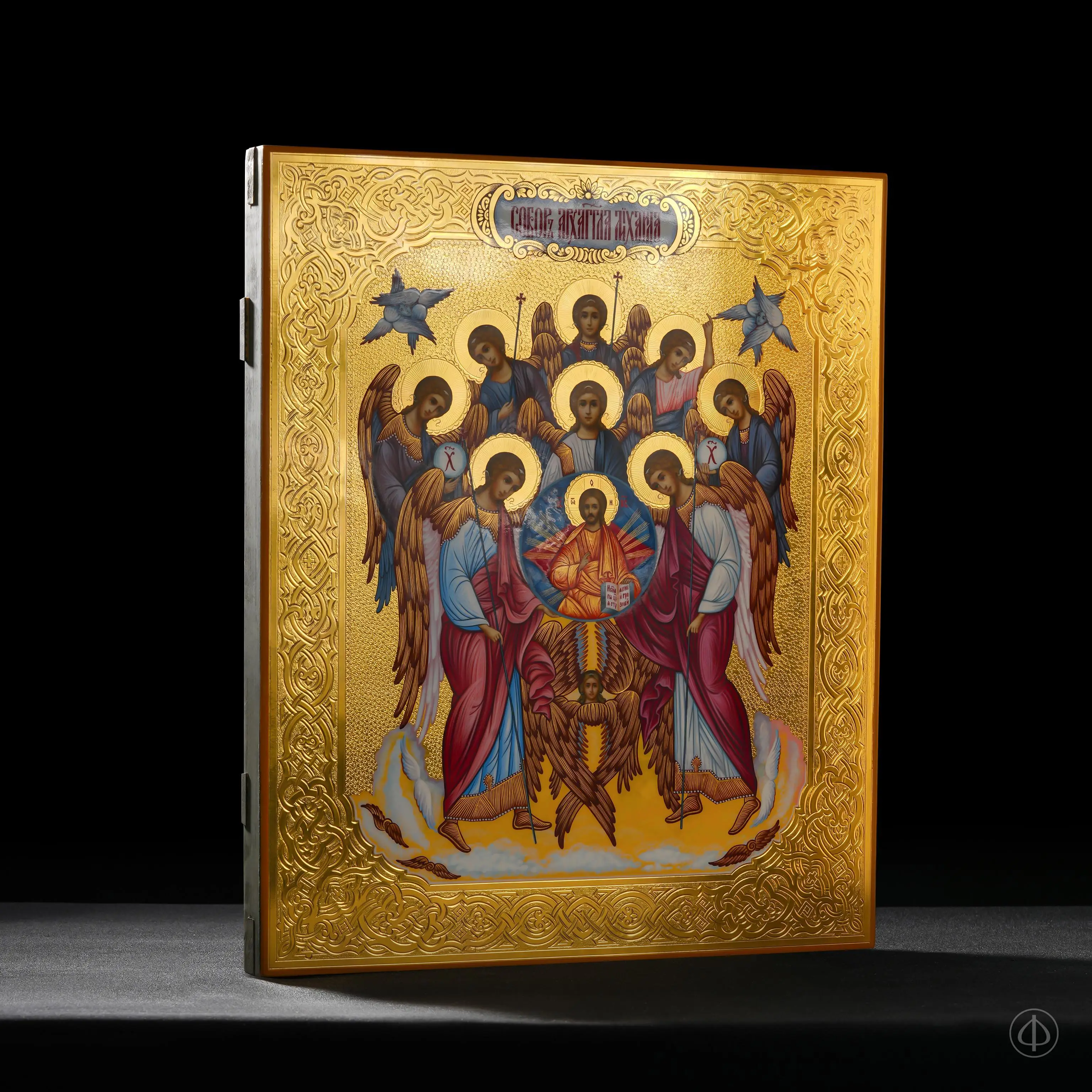 Синий или золотой фон. Указание на небесное происхождение Архангела.