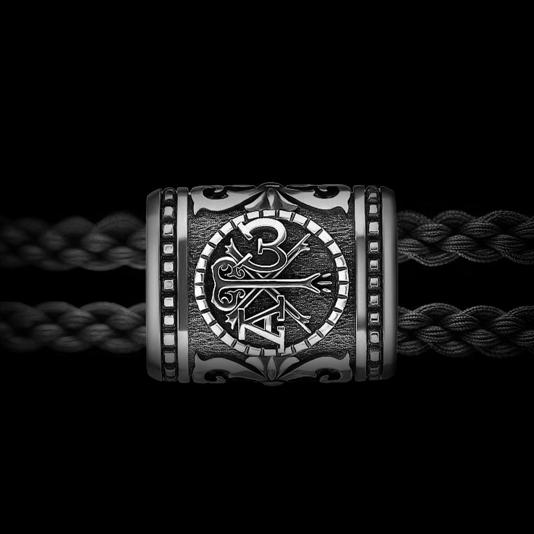 Вставка двойная "Спаси и сохрани" из платины на шнур 5 и 8 мм