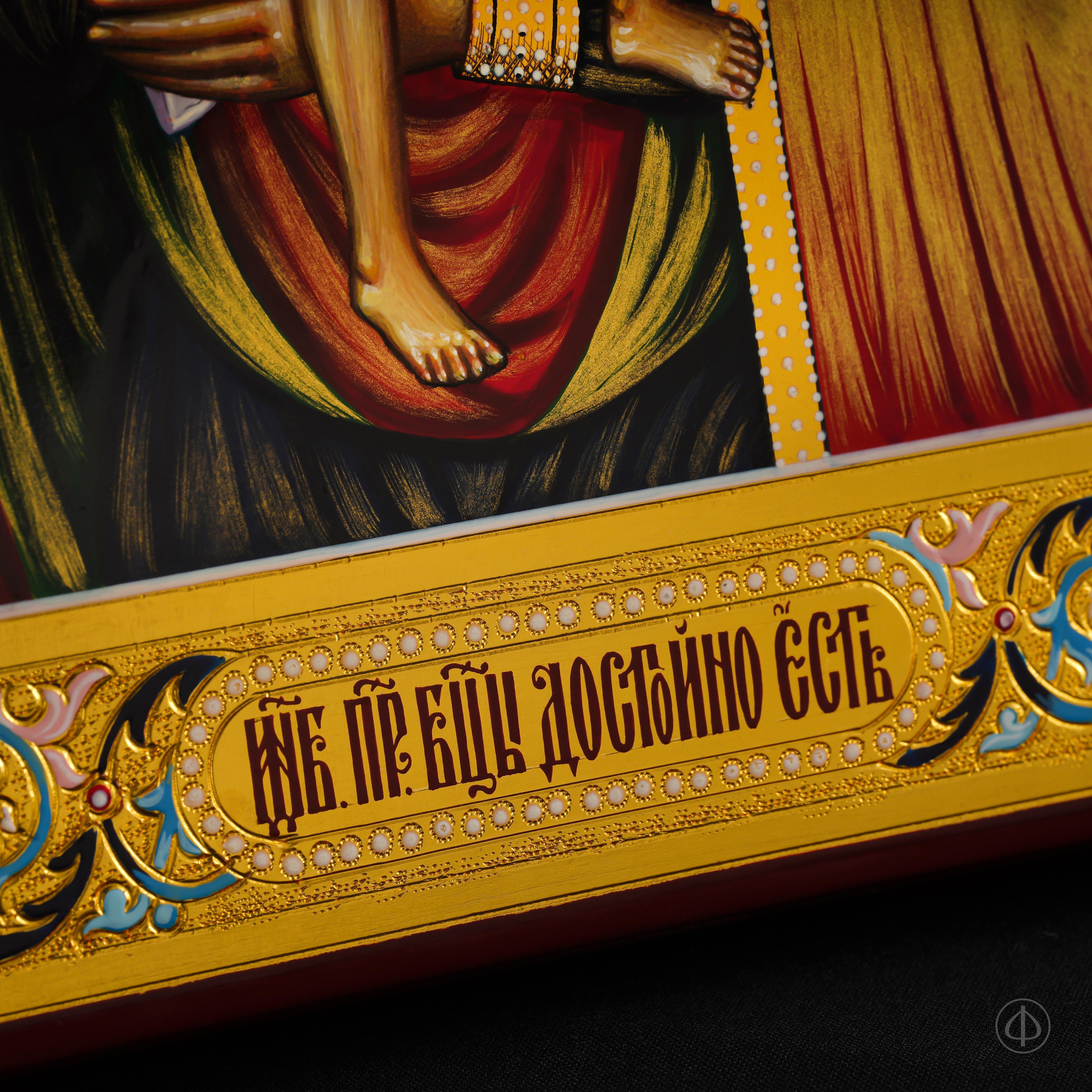 Икона ручной работы - икона Божией Матери «Достойно есть (Милующая)»