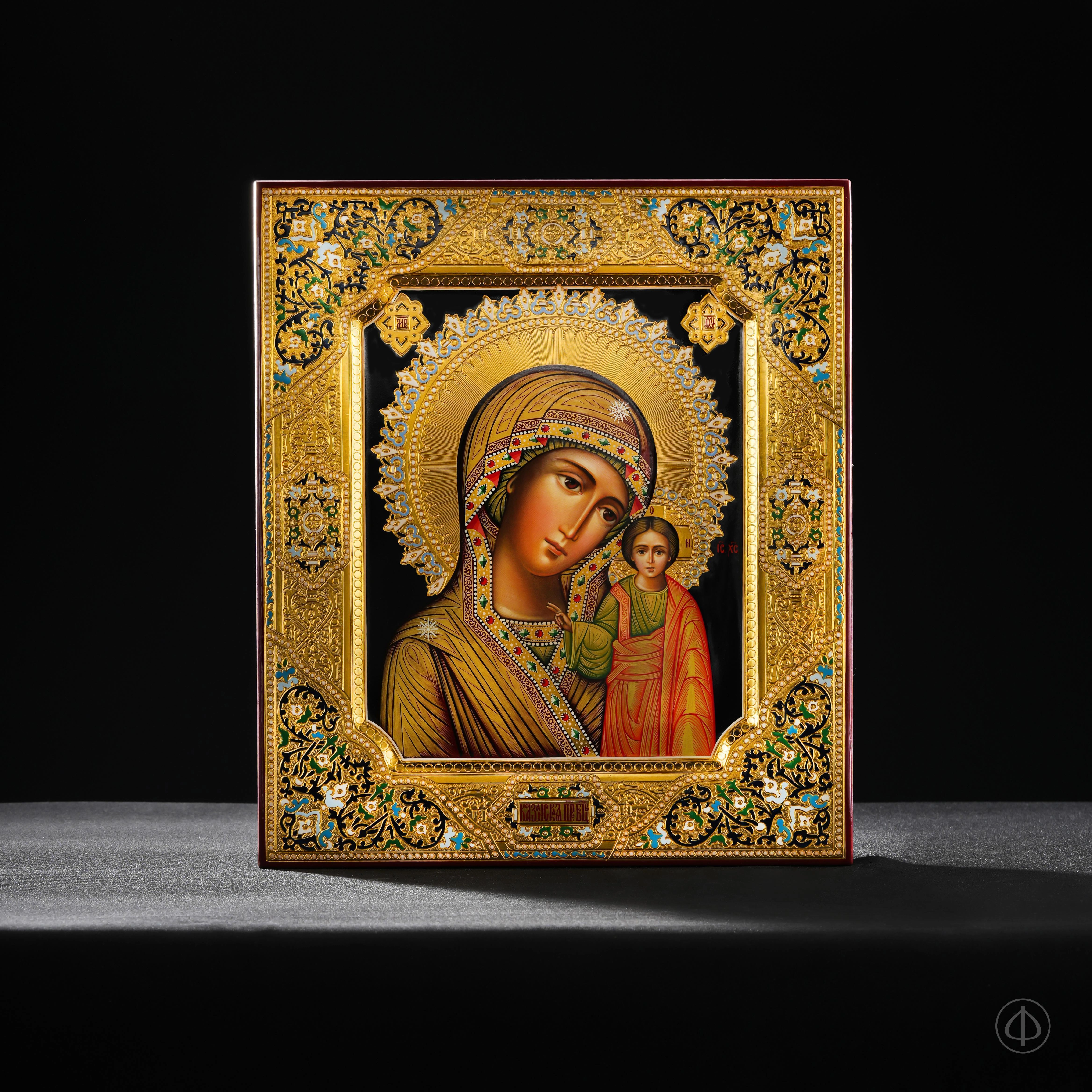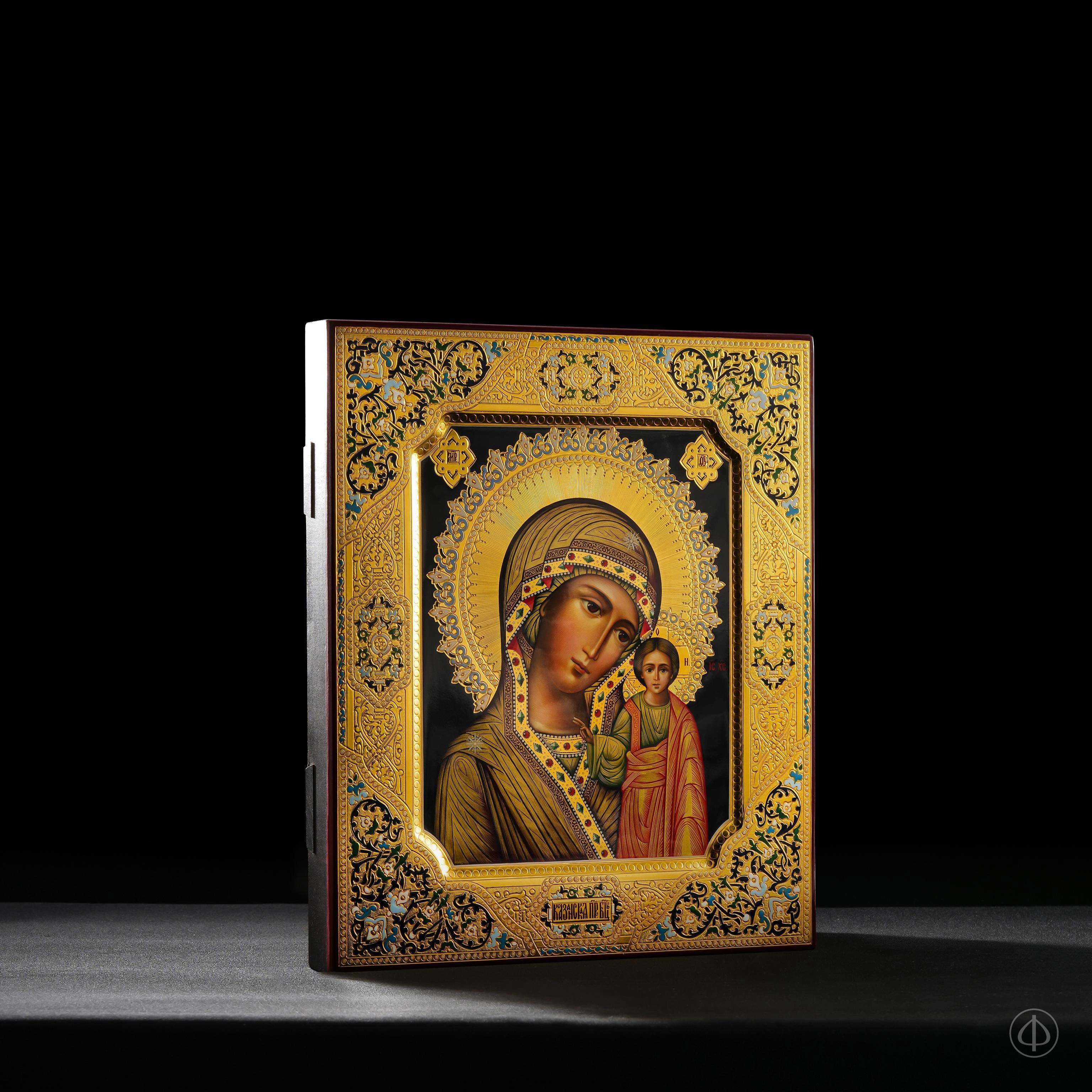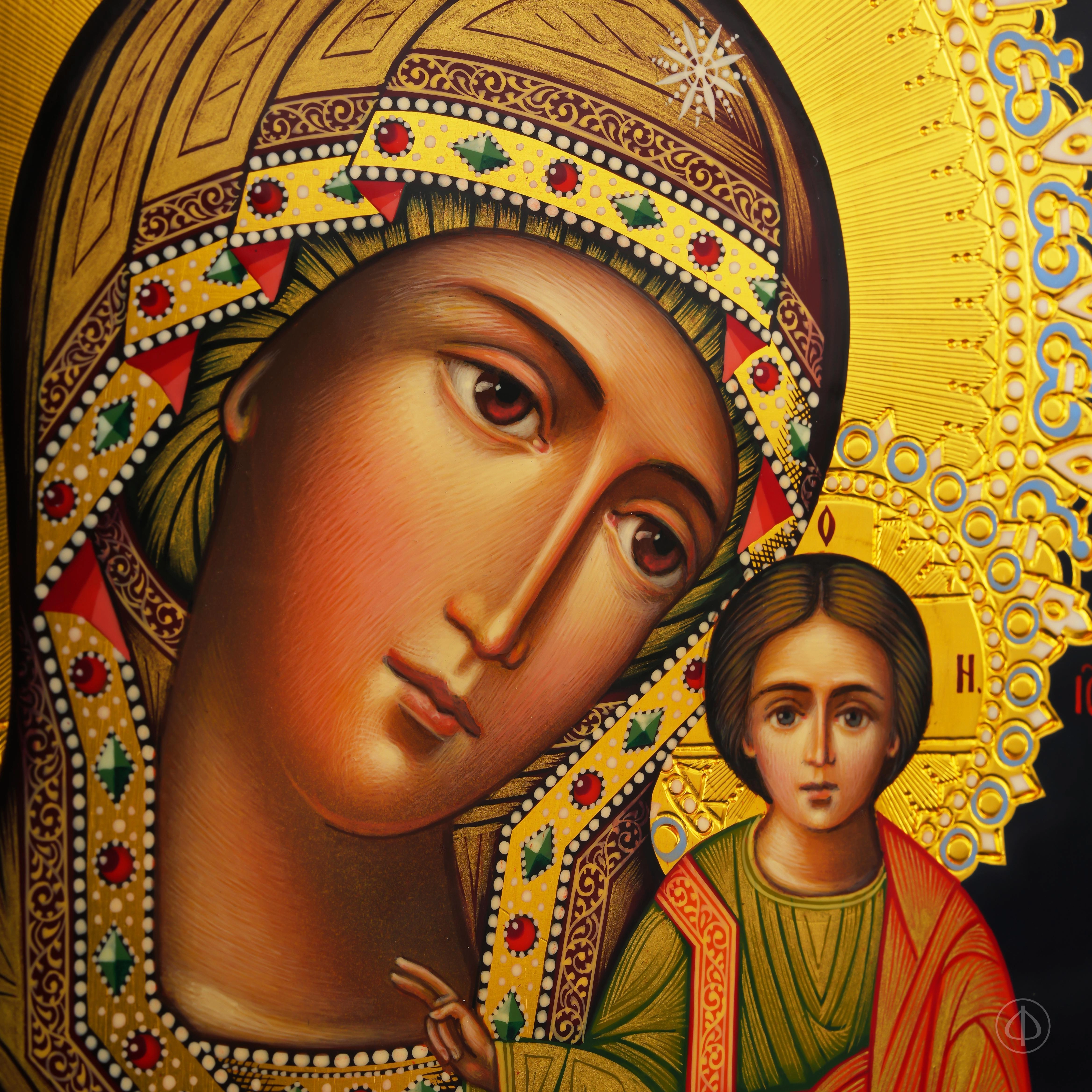Казанская икона Божией Матери – один из самых чтимых православных образов Девы Марии. На иконе изображена Богородица с младенцем Христом на руках. Голова Богоматери наклонена в сторону Иисуса, что говорит одновременно о материнской нежности и преклонении перед Спасителем. Мессия благословляет рукой Небесную царицу, а в ее лице и всех христиан. Икона обладает чудотворной силой, перед ней молятся о благословении брака, защите имущества от пожара, исцелении от недугов.