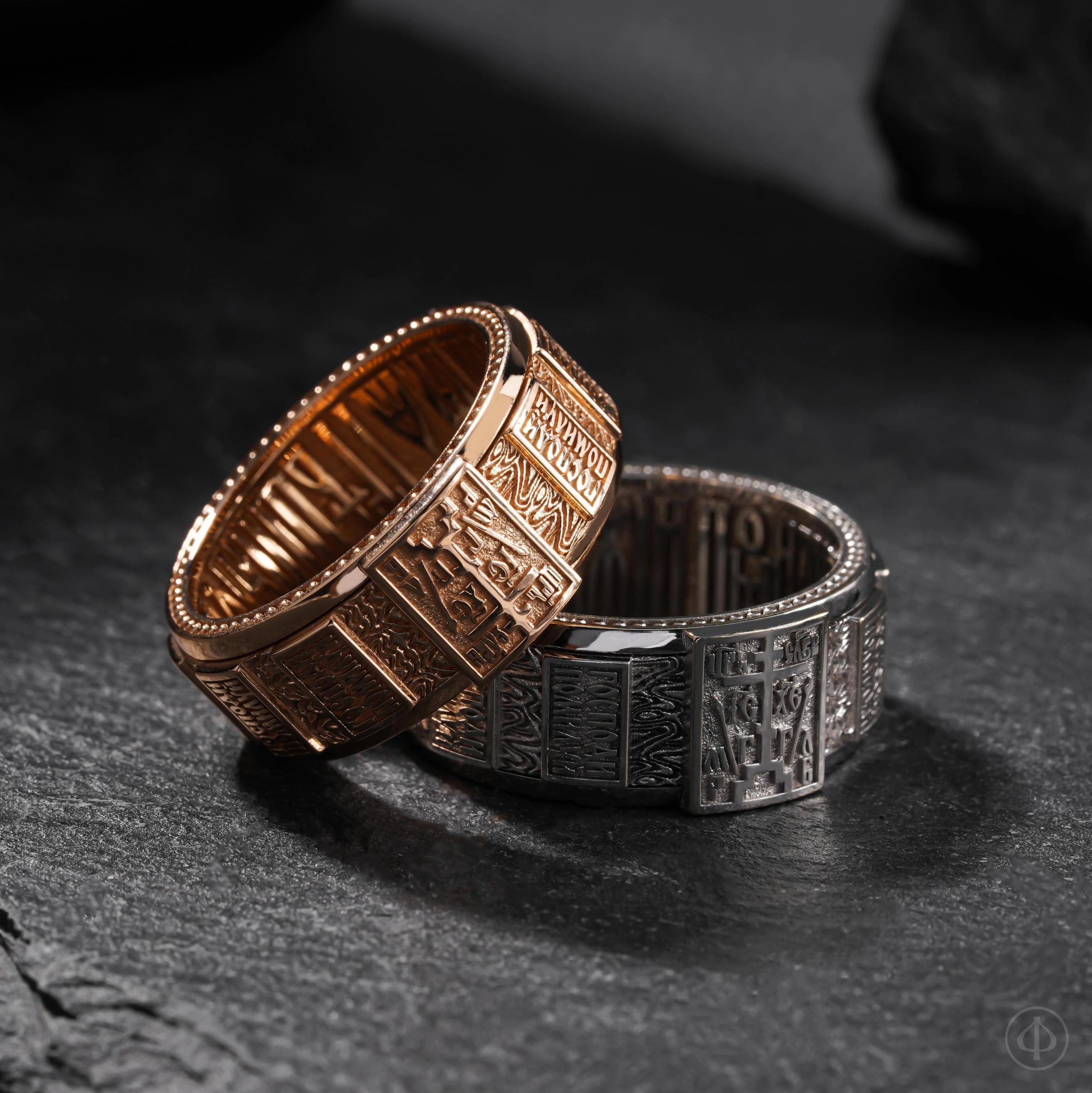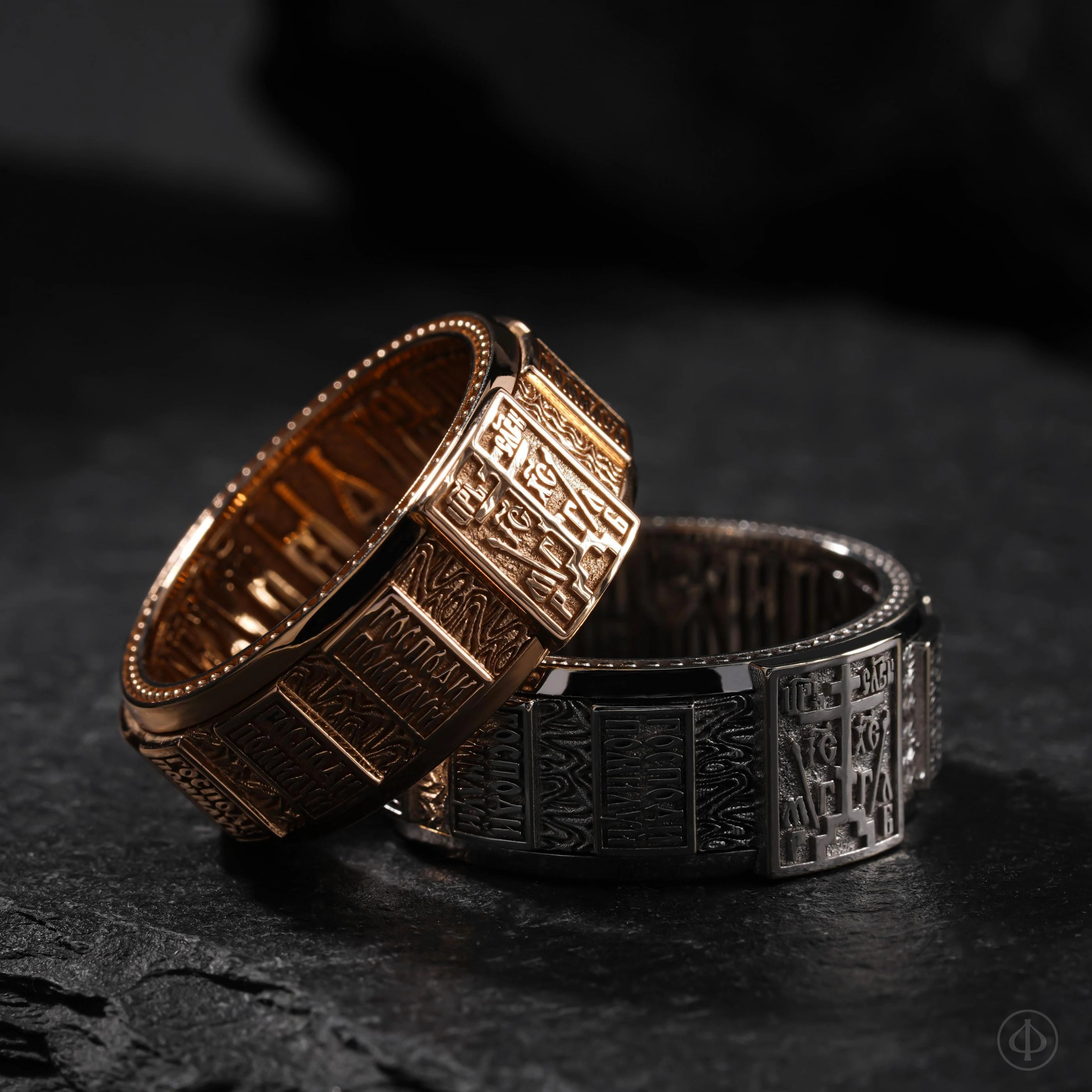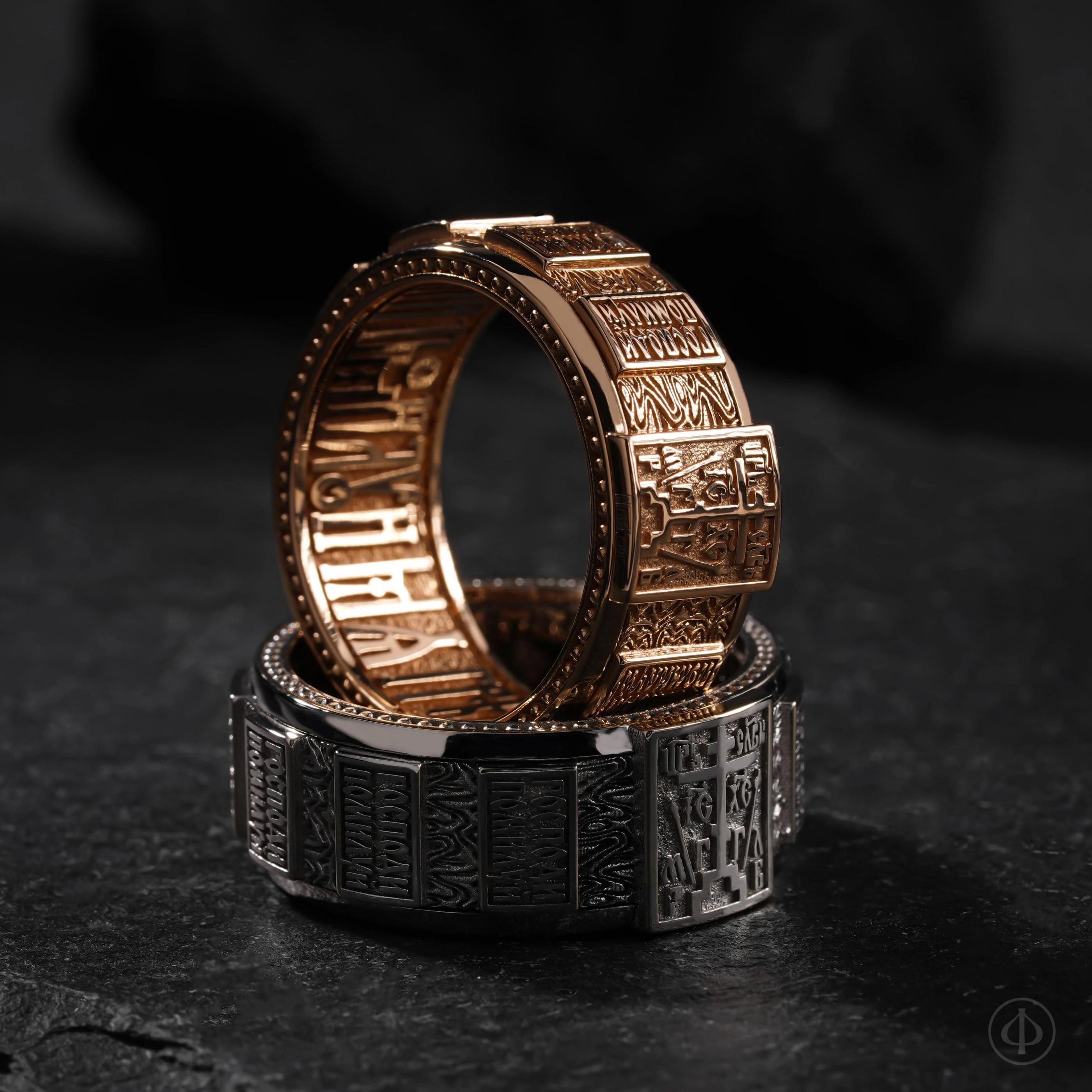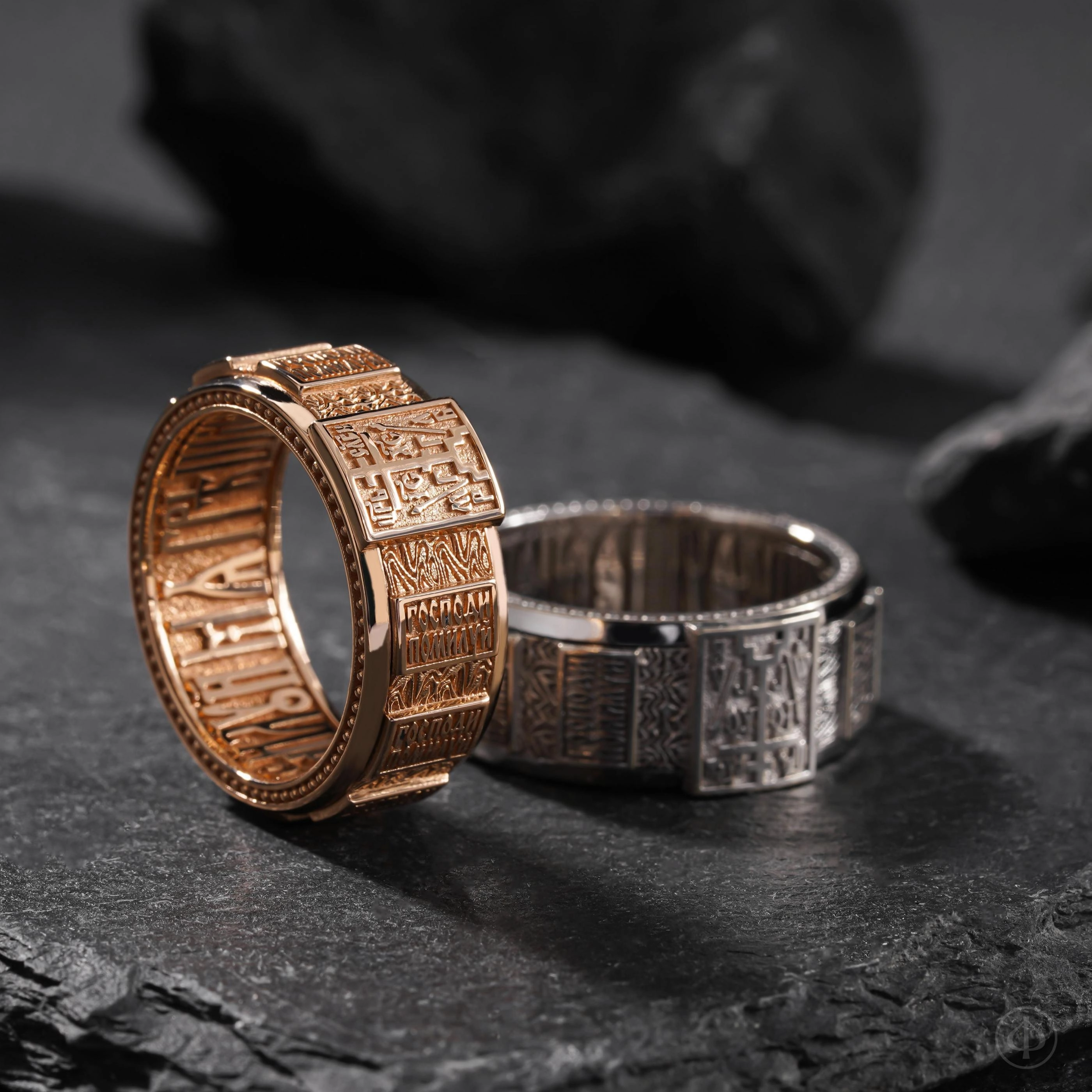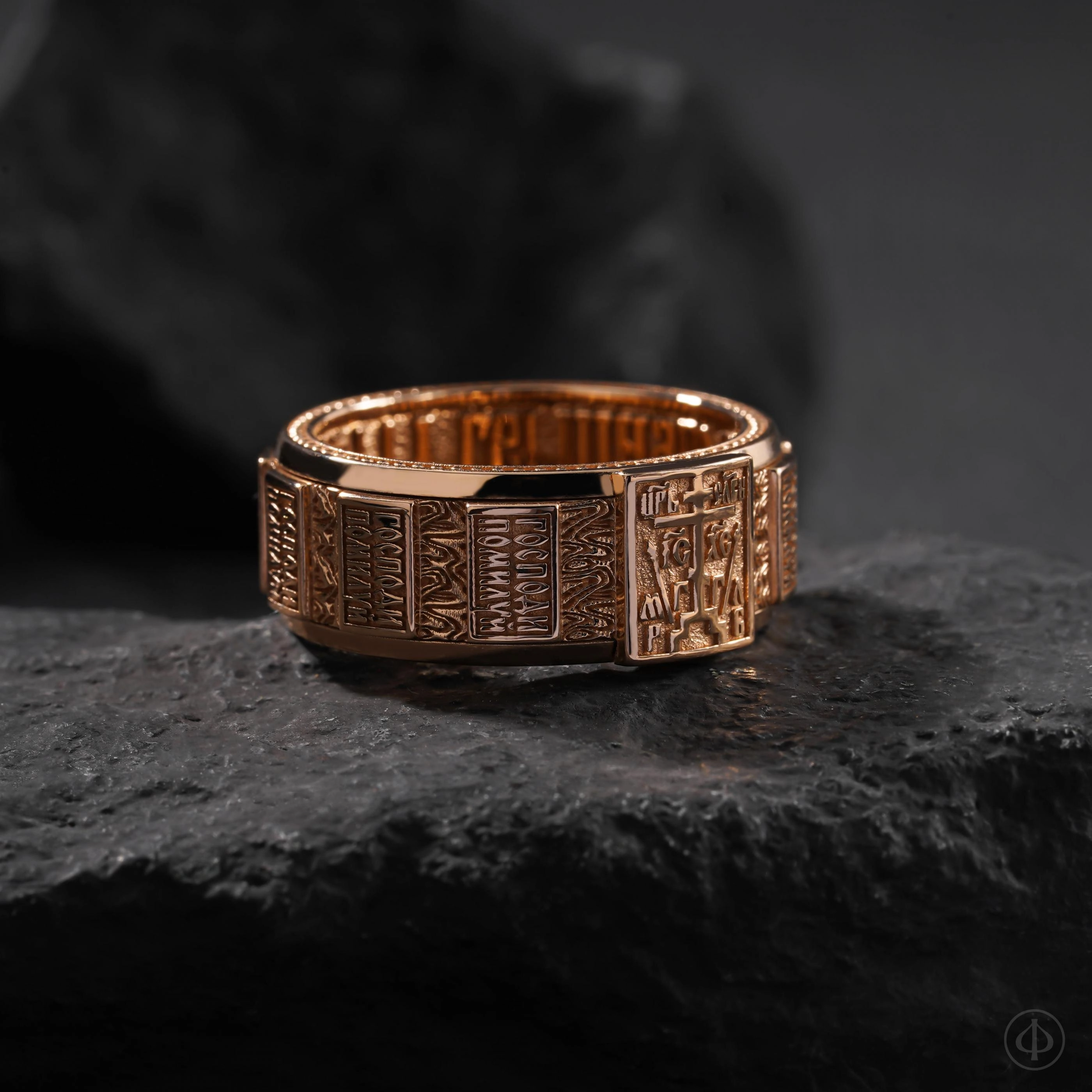 Кольцо-чётки из золота 585 пробы. Внешняя часть кольца - подвижный механизм. Перебирая вставки кольца с подвижным механизмом вы читаете умом и сердцем молитву. Оно символизирует "непрестанную молитву" и наполняет духовно.