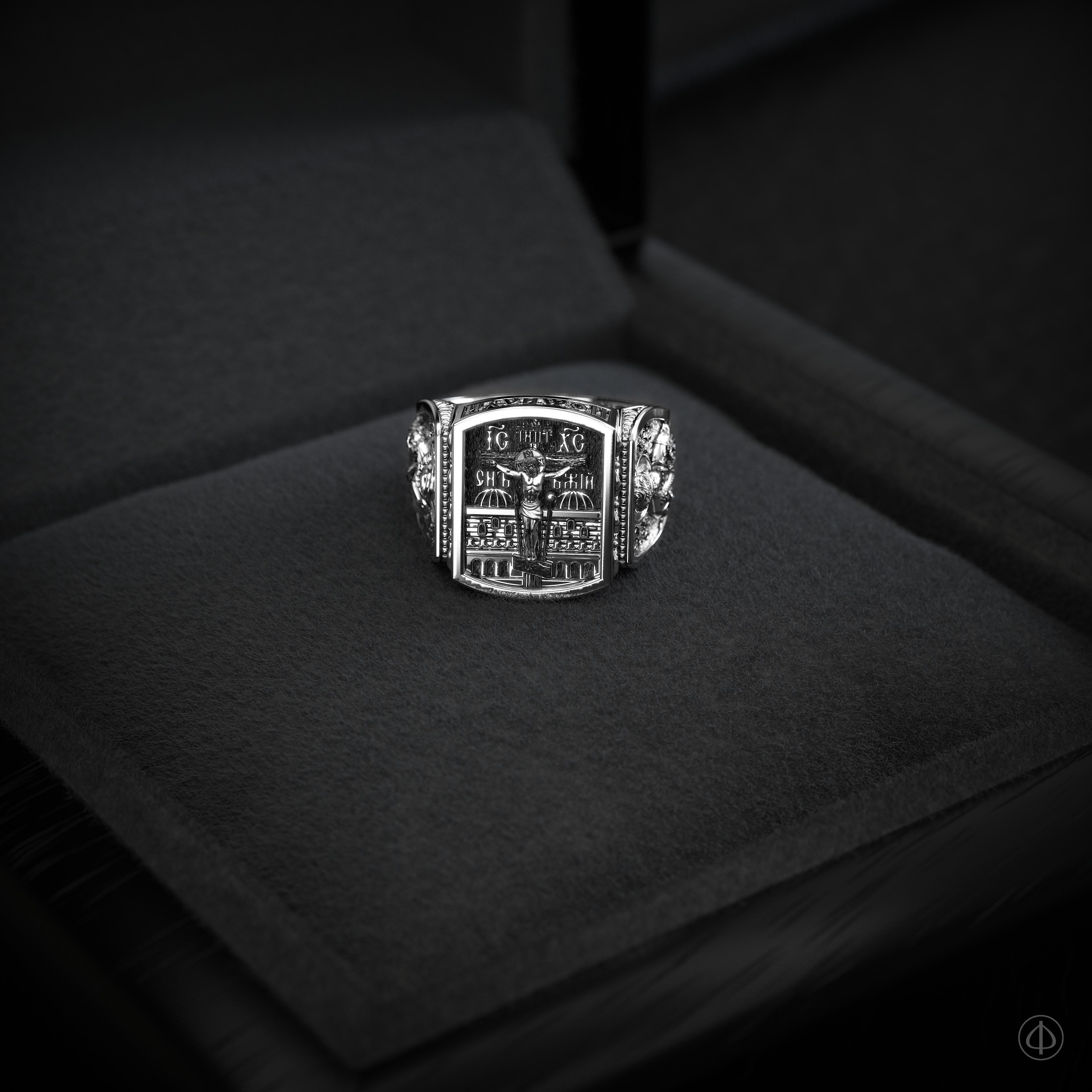 • справа икона Николая Чудотворца и хризма – монограмма имени Христа с греческими буквы α и ω "Аз есмь Альфа и Омега",