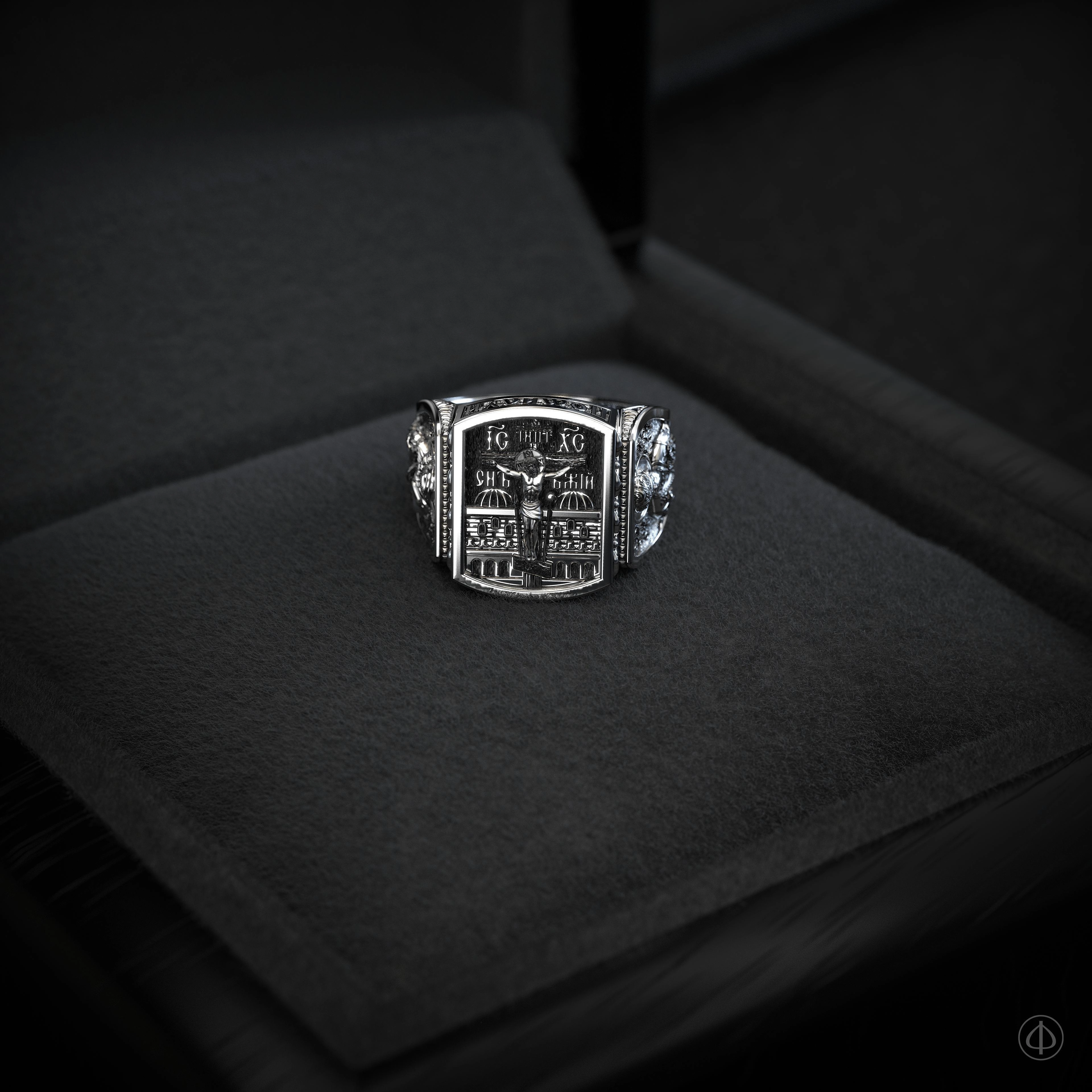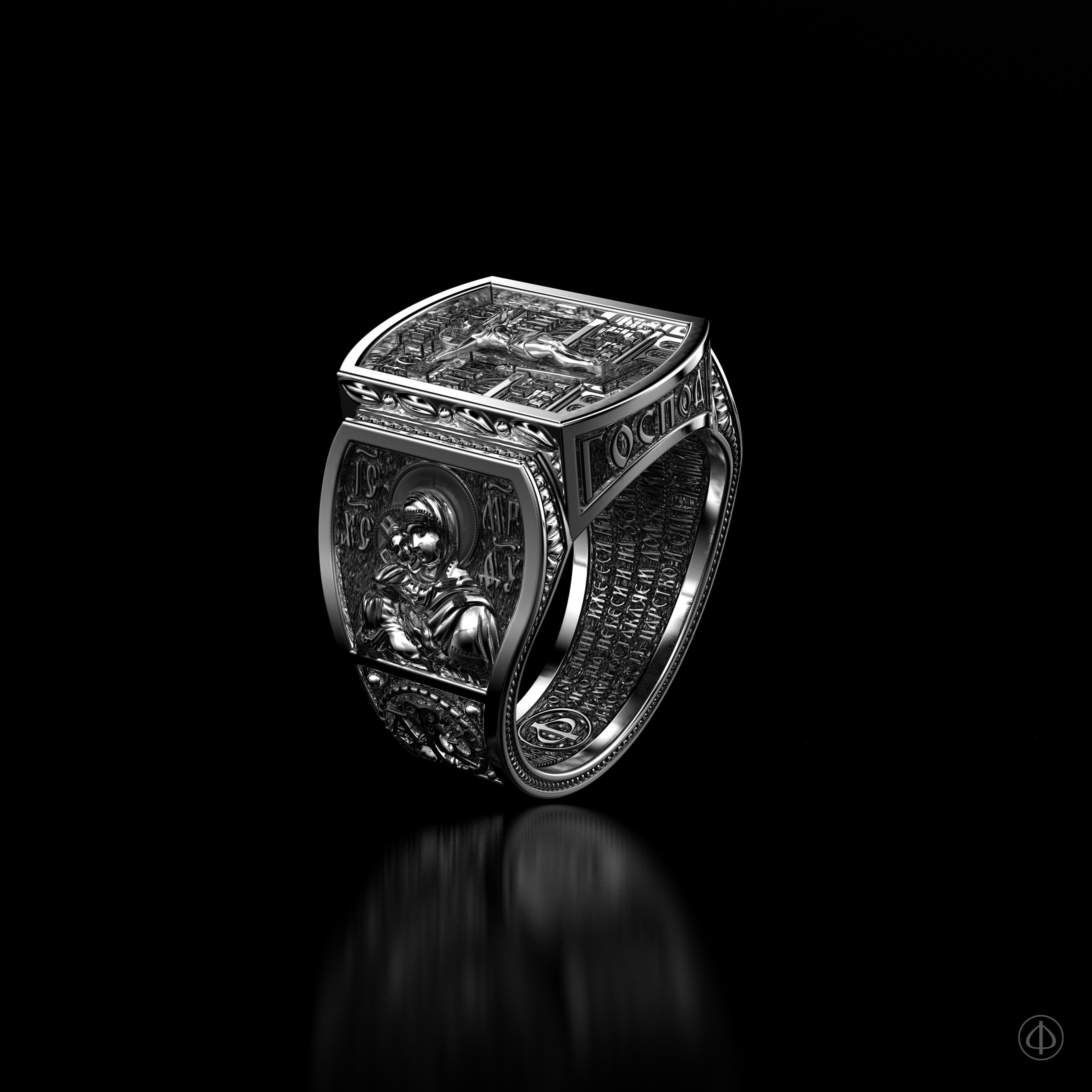 - справа икона Николая Чудотворца и хризма – монограмма имени Христа с греческими буквы α и ω "Аз есмь Альфа и Омега",