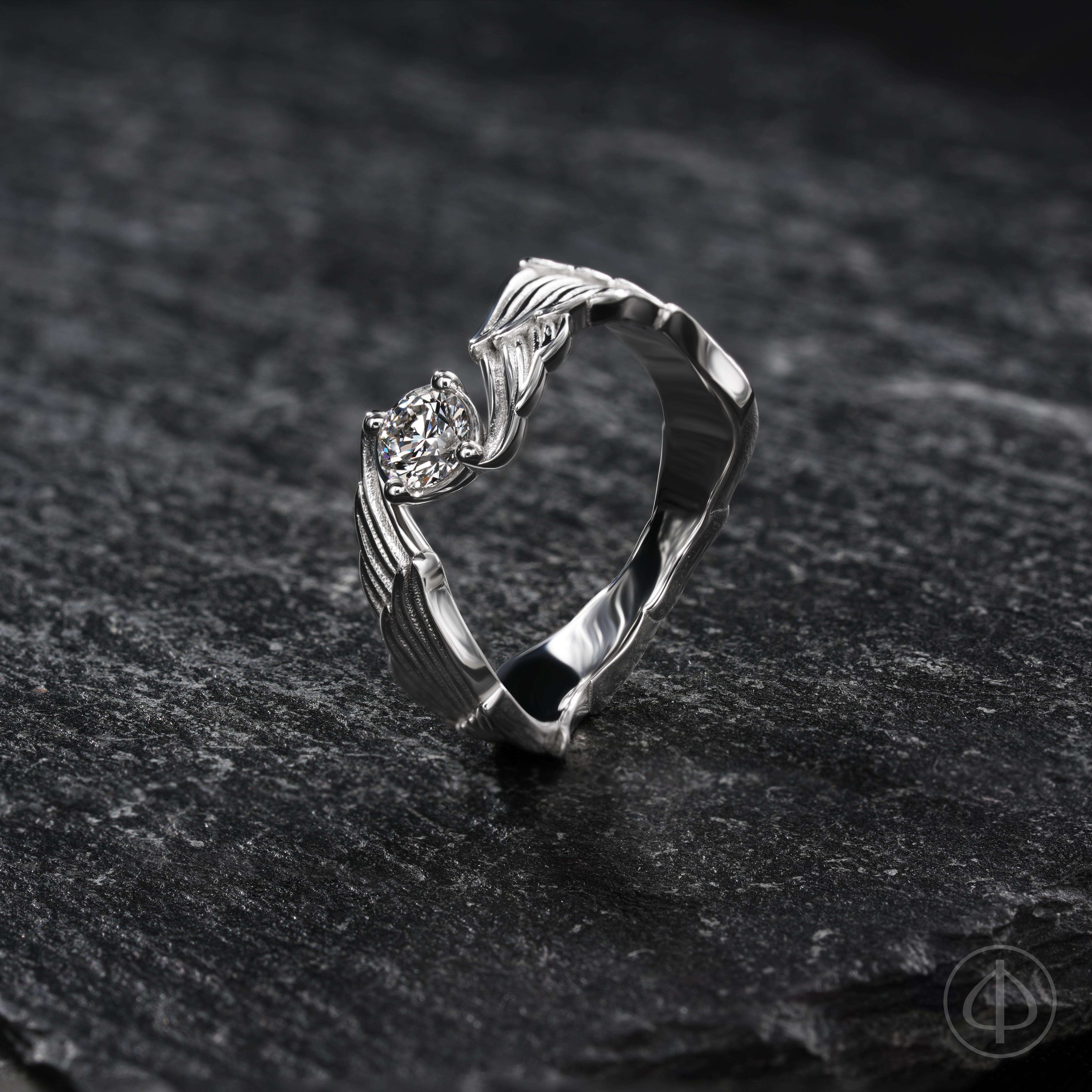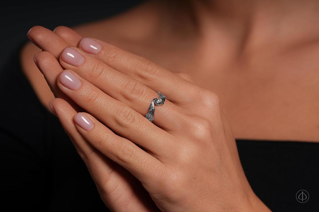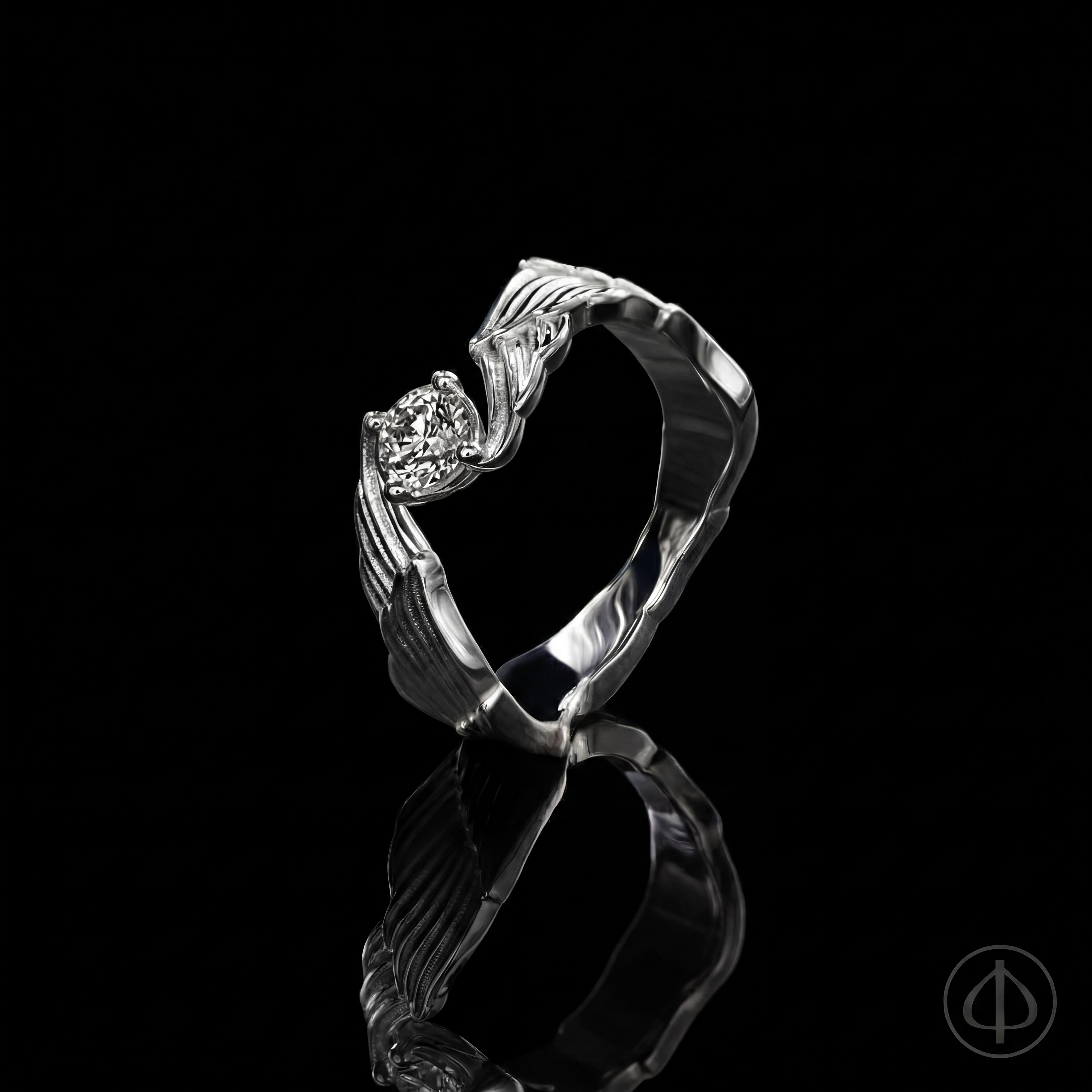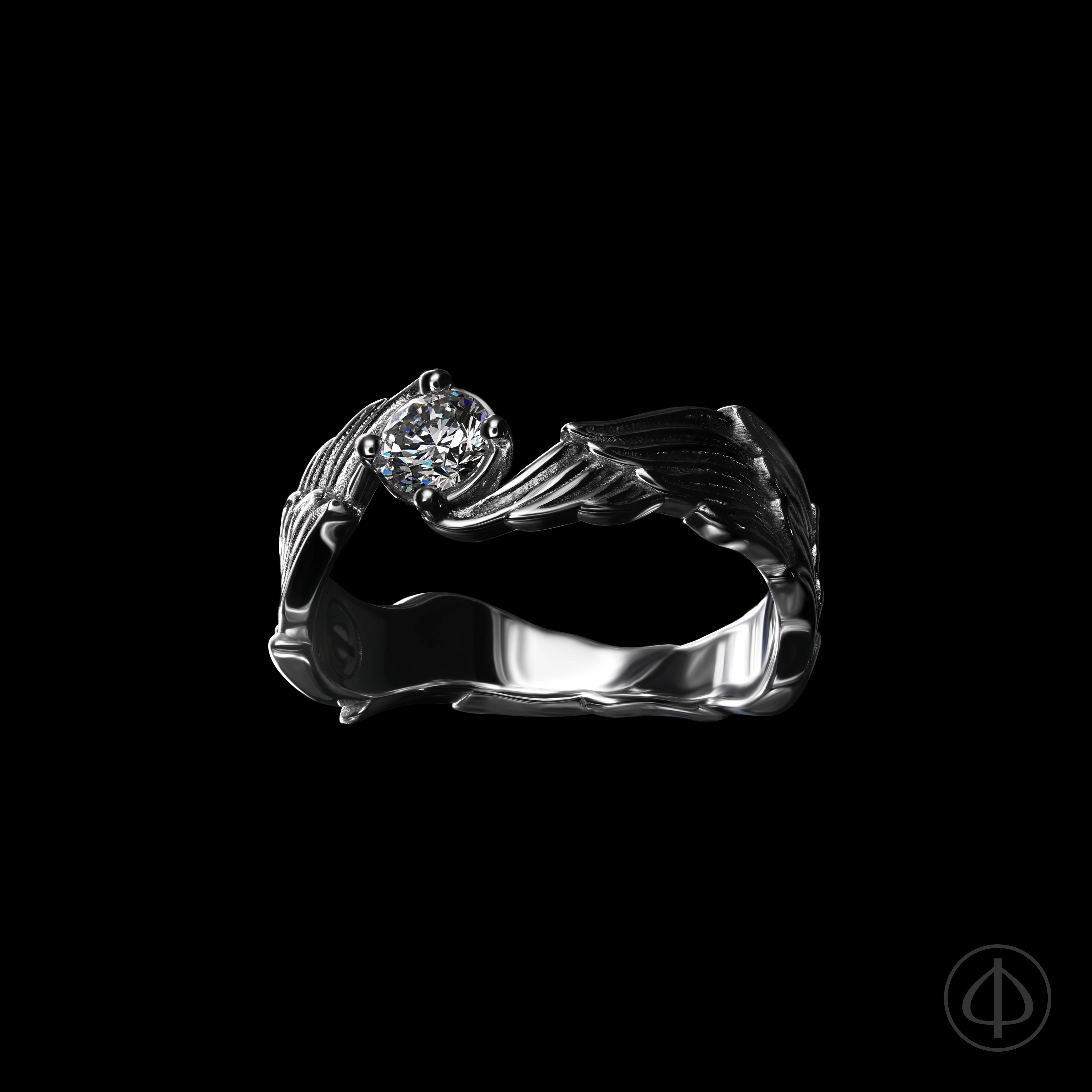 Кольцо "Крылья ангела" из белого золота 585 пробы, инкрустированное бриллиантом