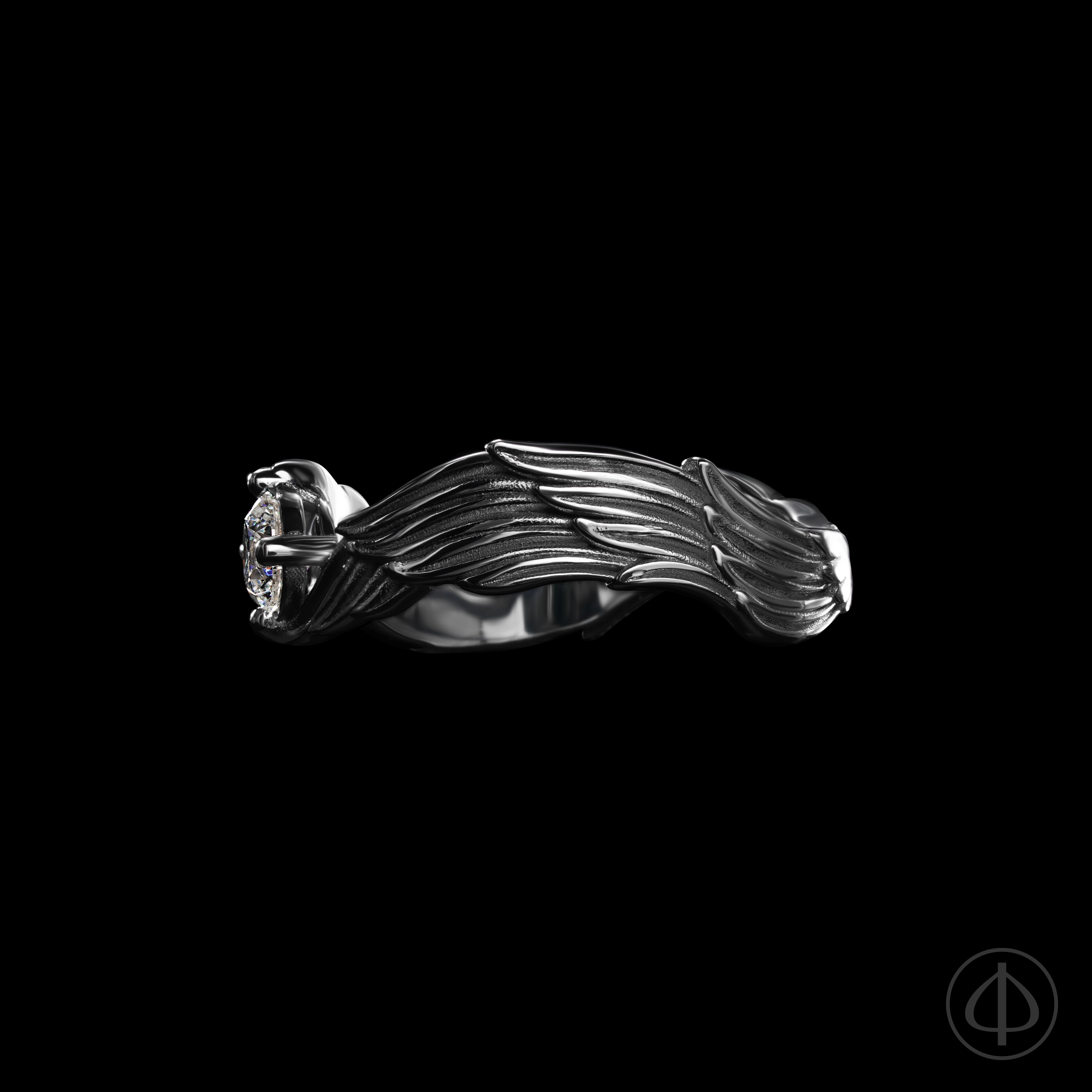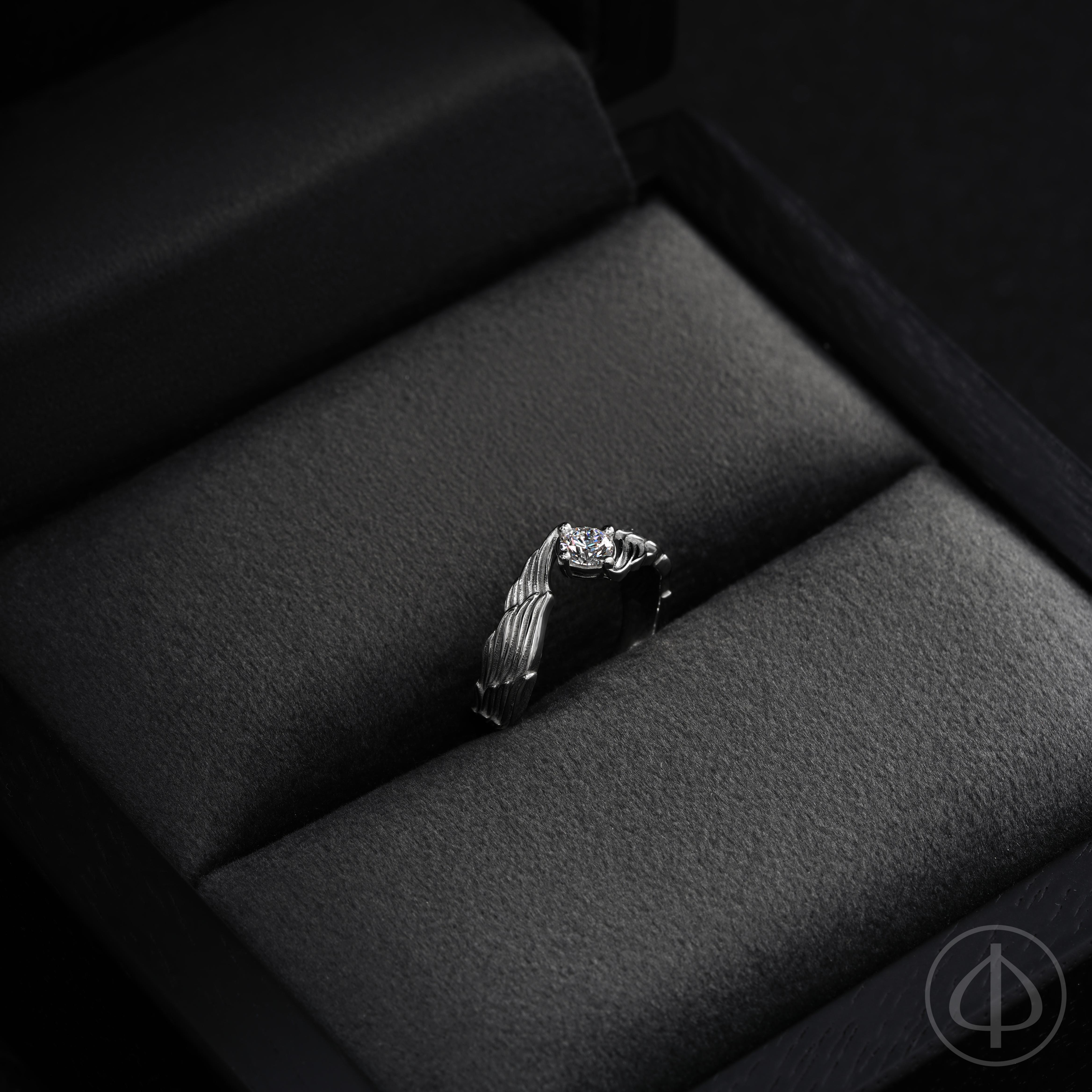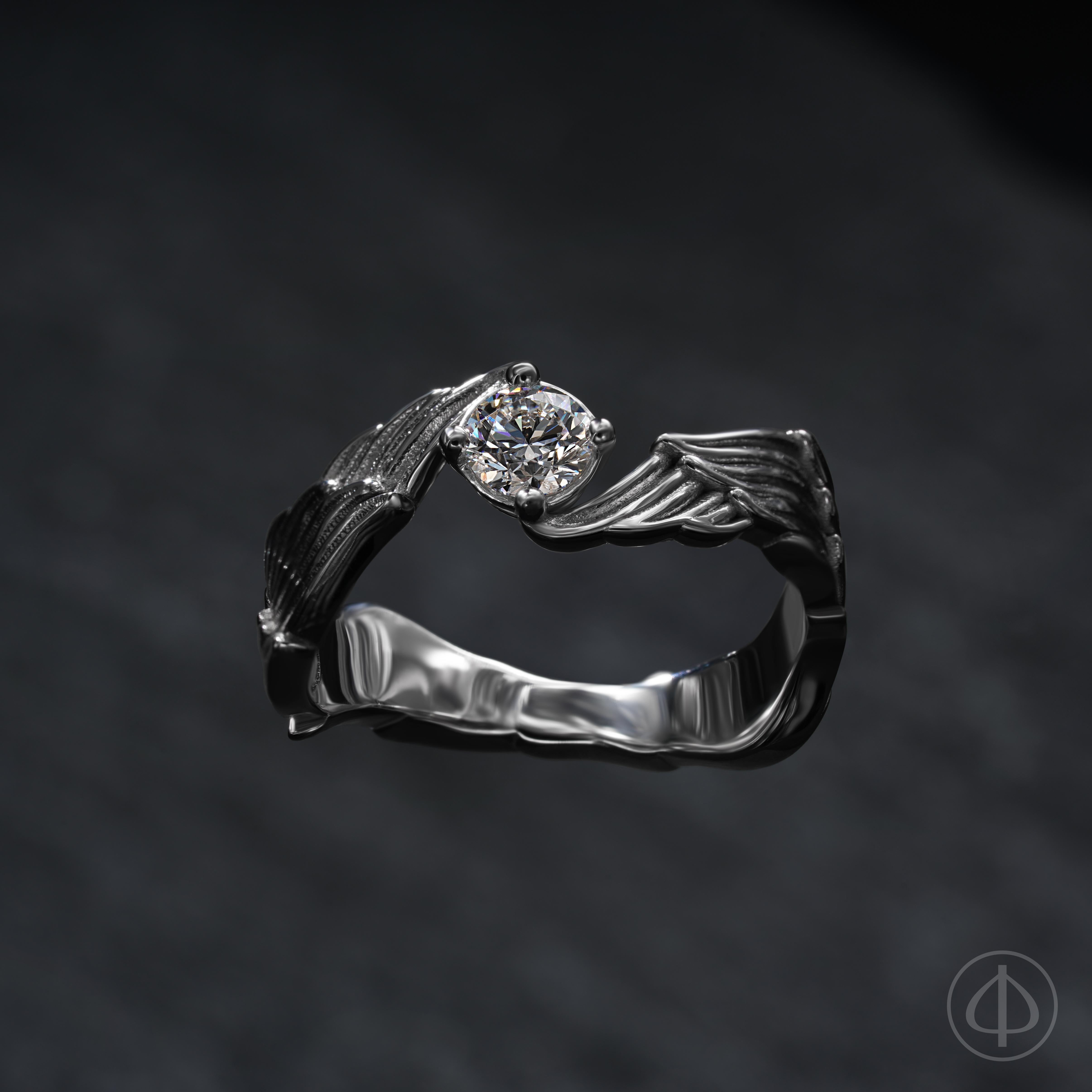 Кольцо "Крылья ангела" из белого золота 585 пробы, инкрустированное бриллиантом