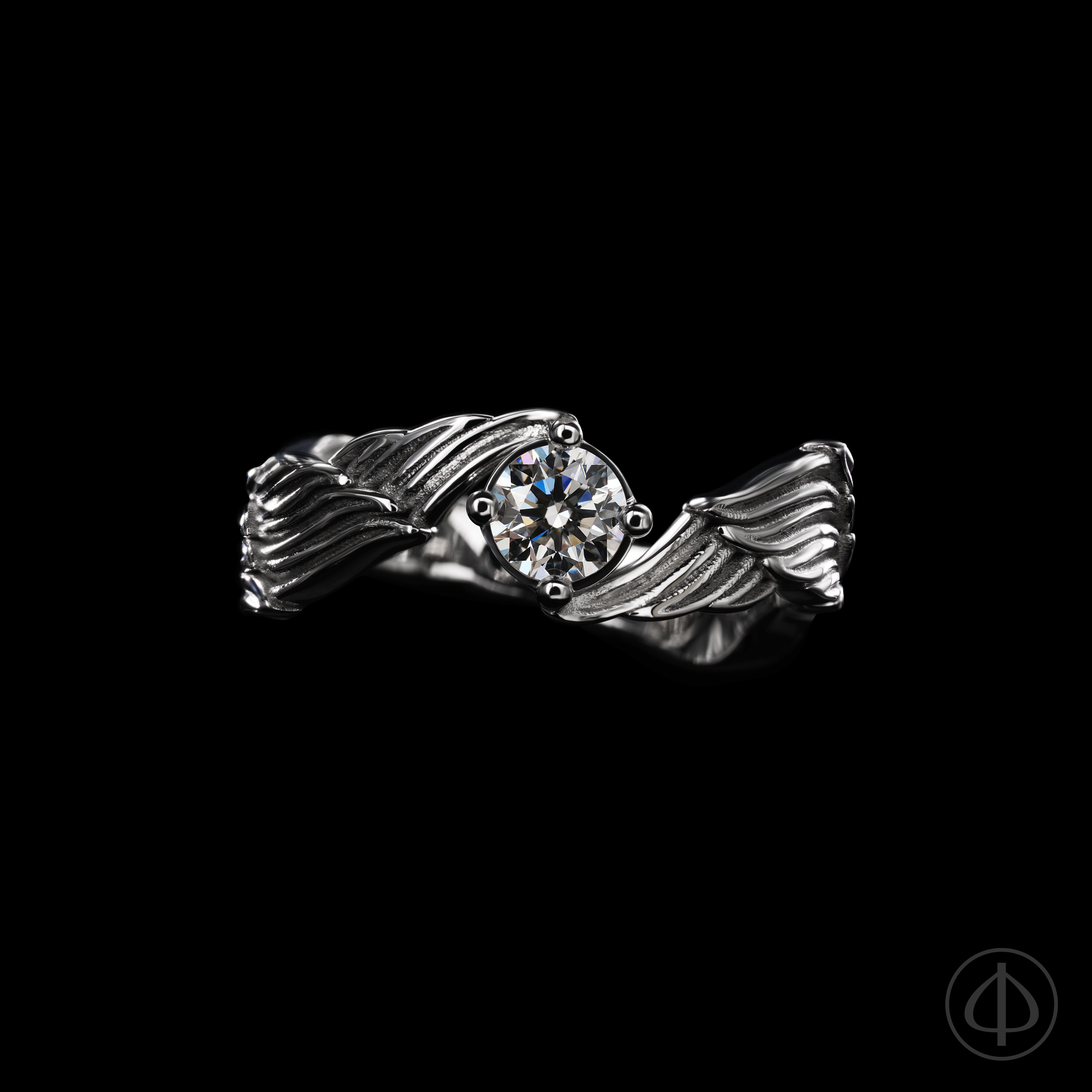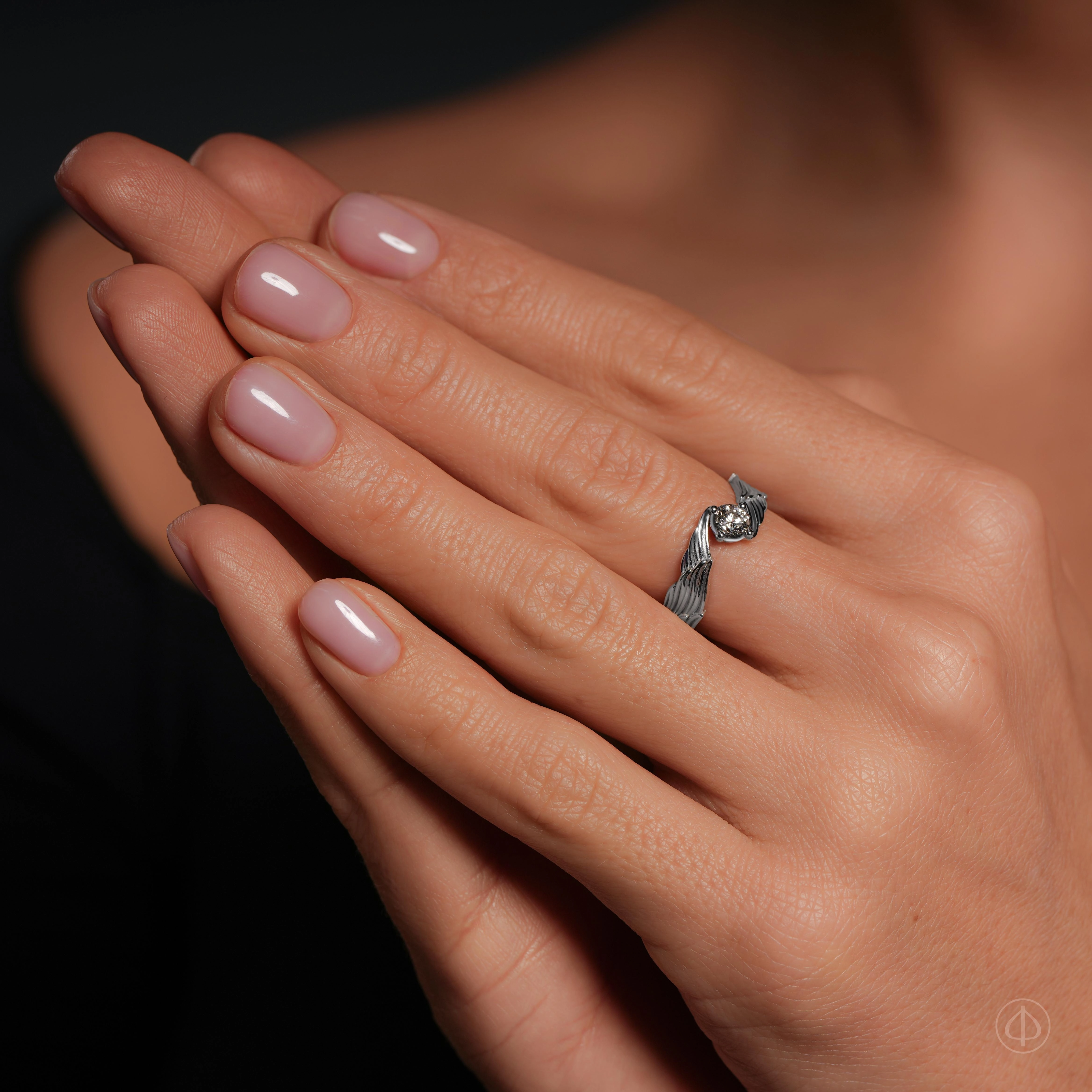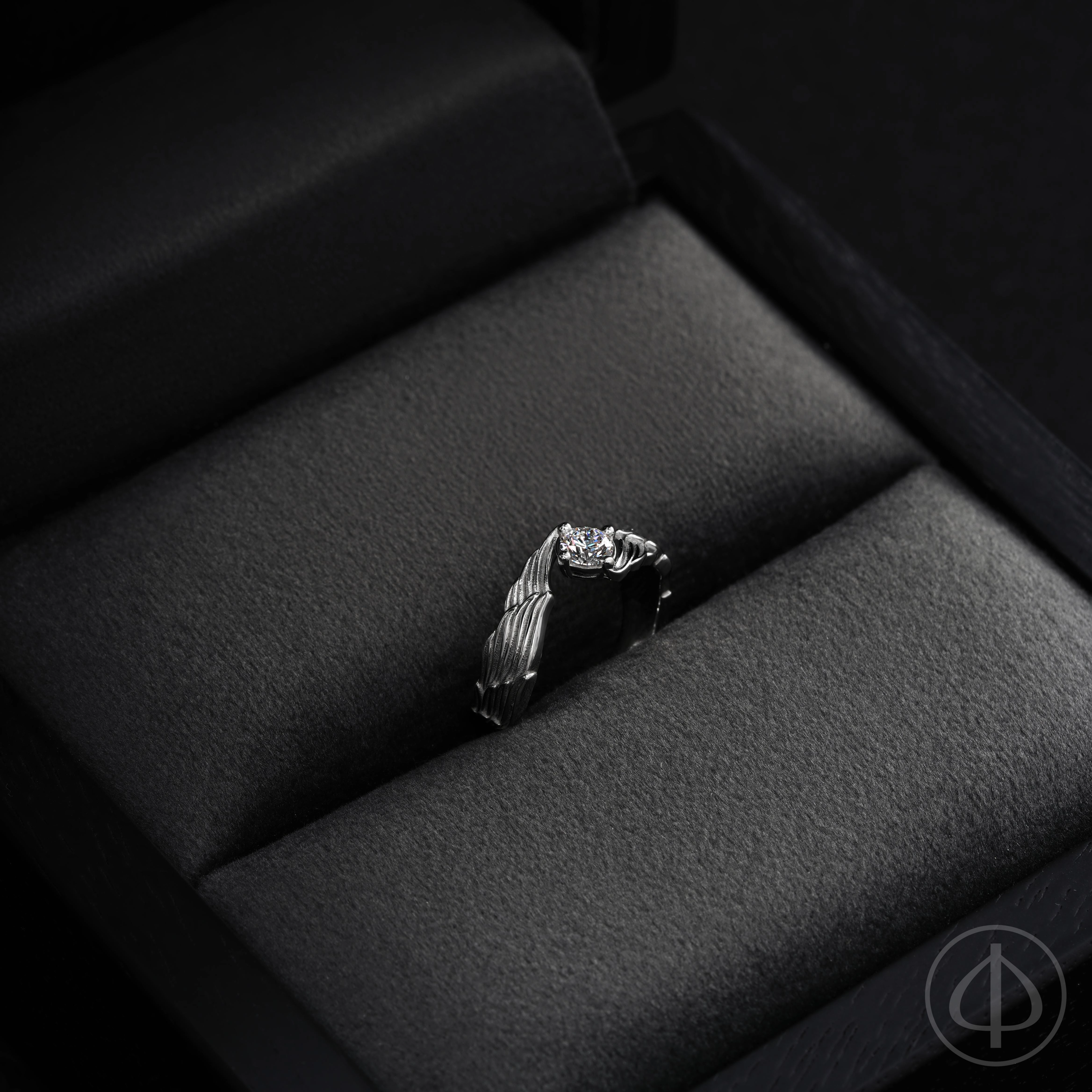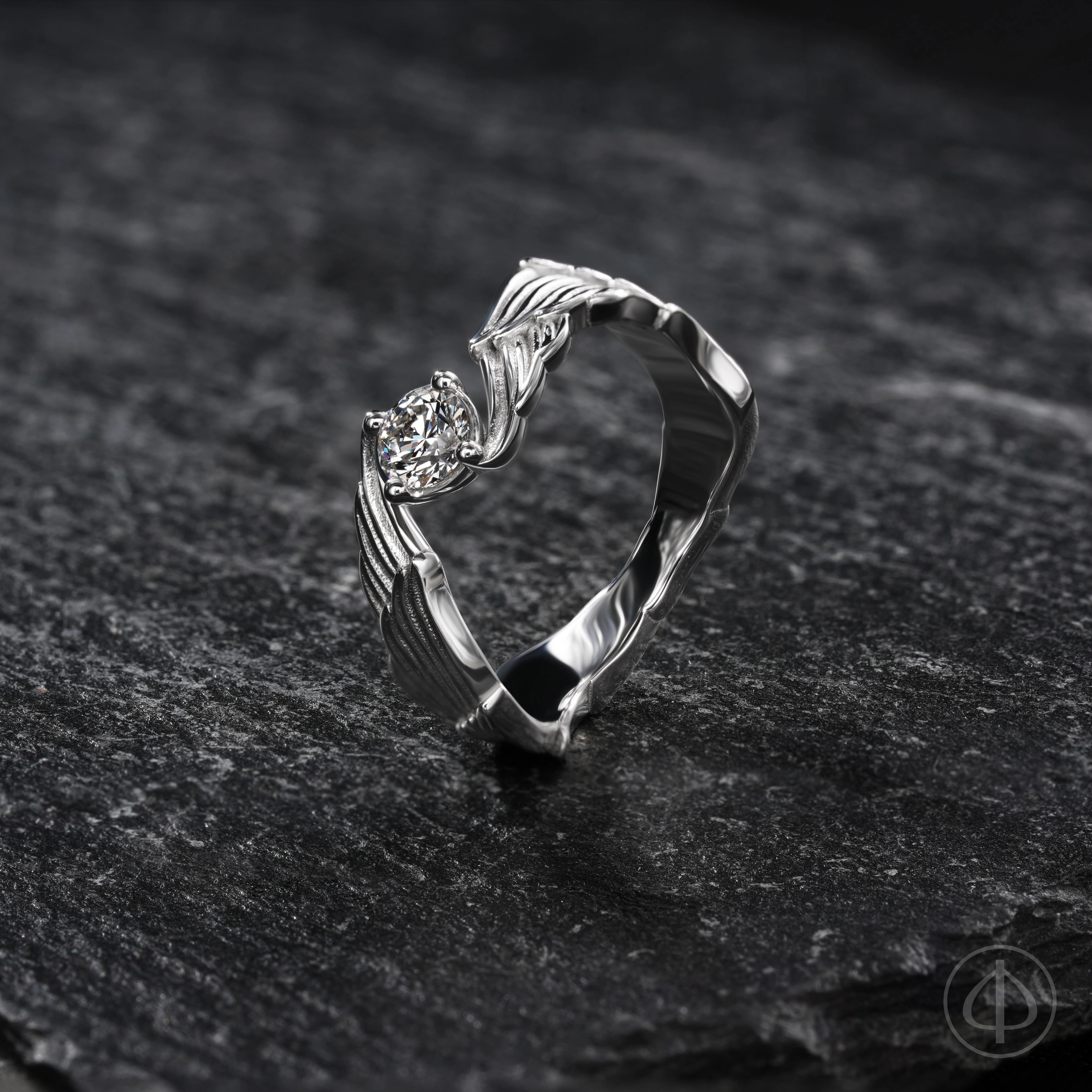 Кольцо "Крылья ангела" из белого золота 585 пробы, инкрустированное бриллиантом
