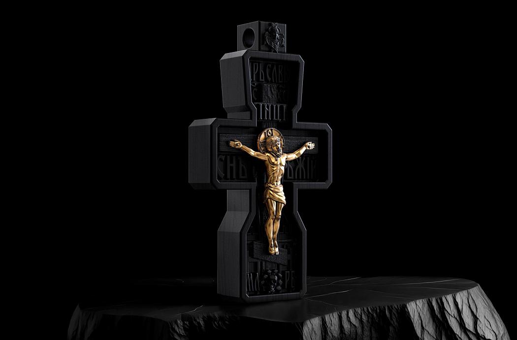 Крест из чёрного эбенового дерева и золота 750 пробы.