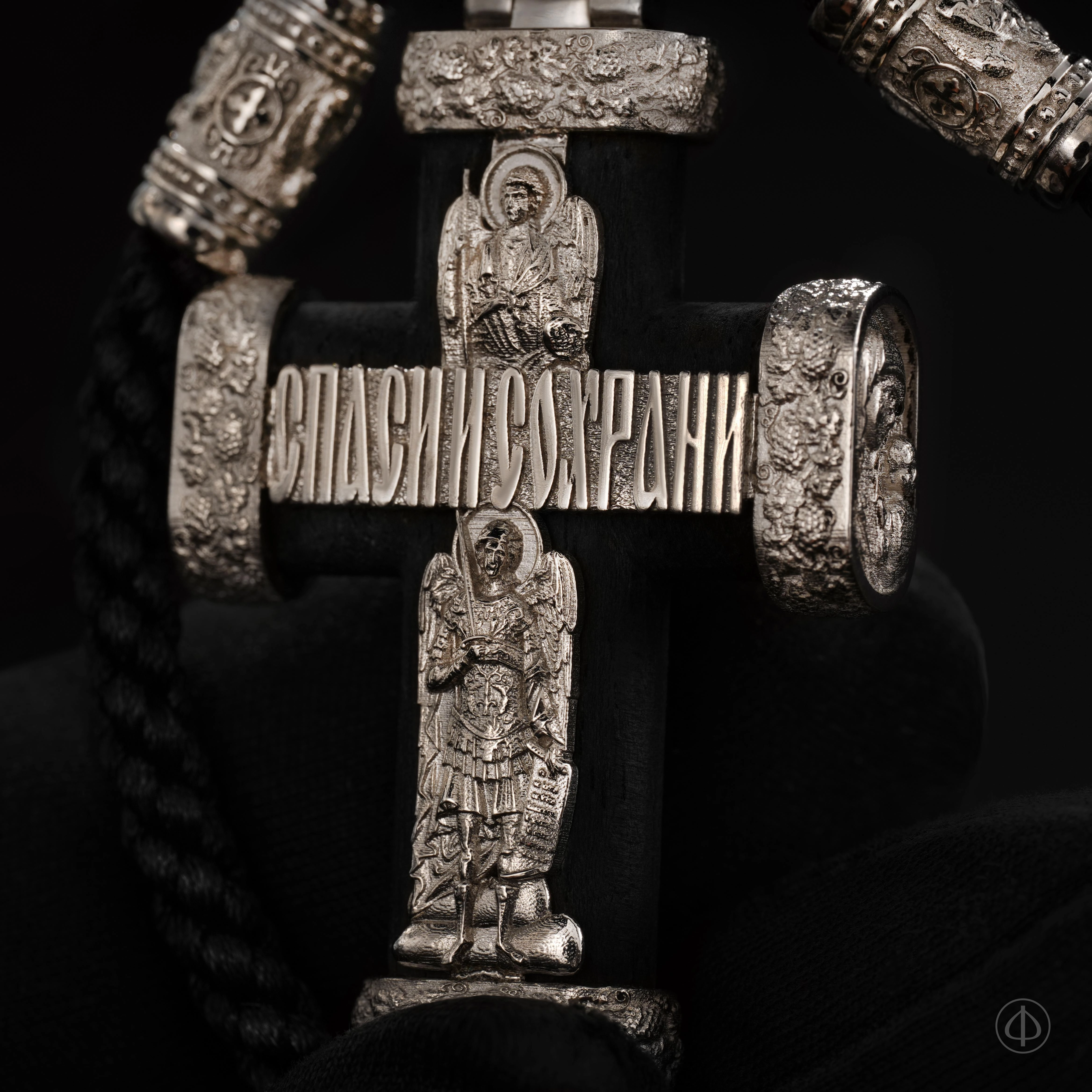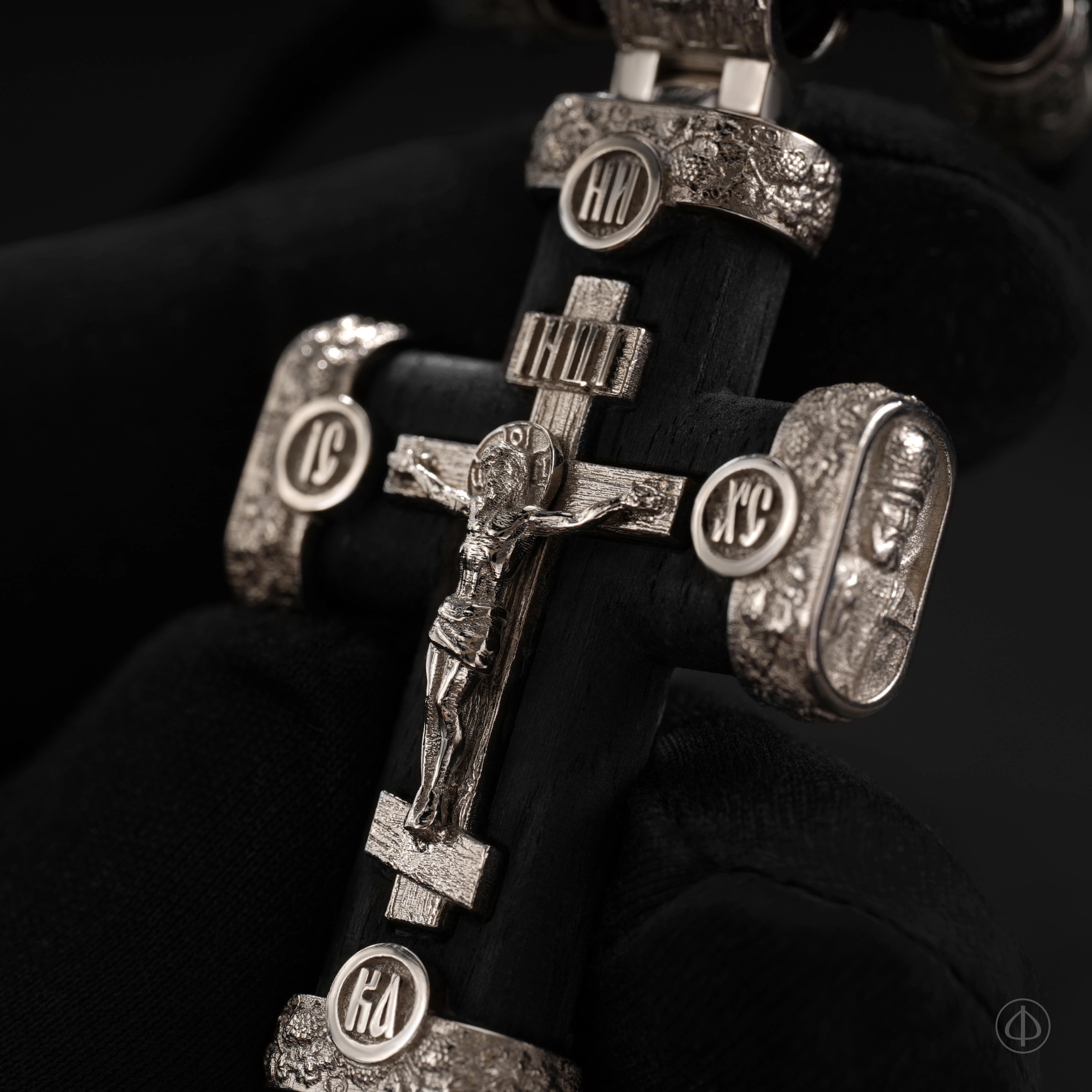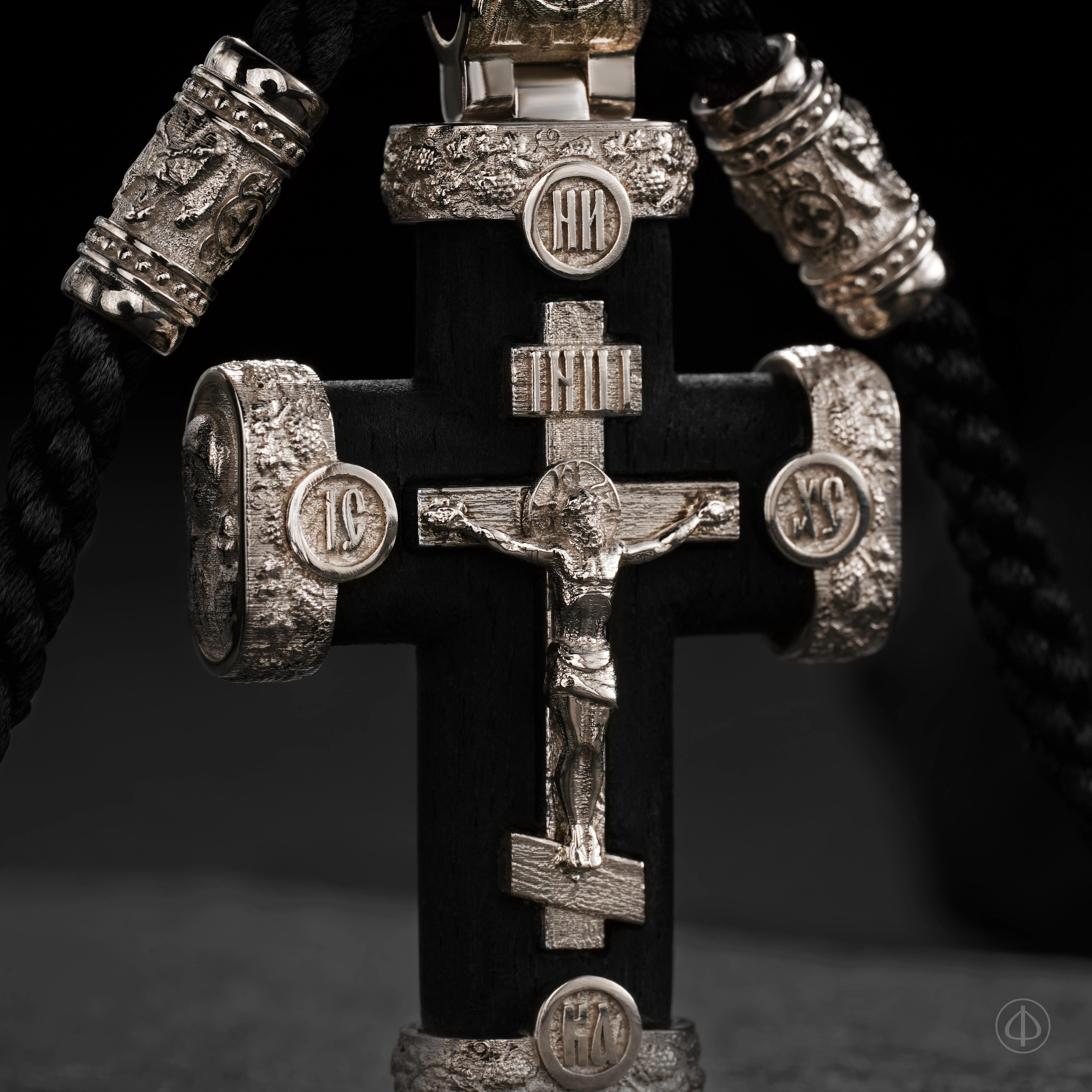 - в центре восьмиконечный крест с Распятием,