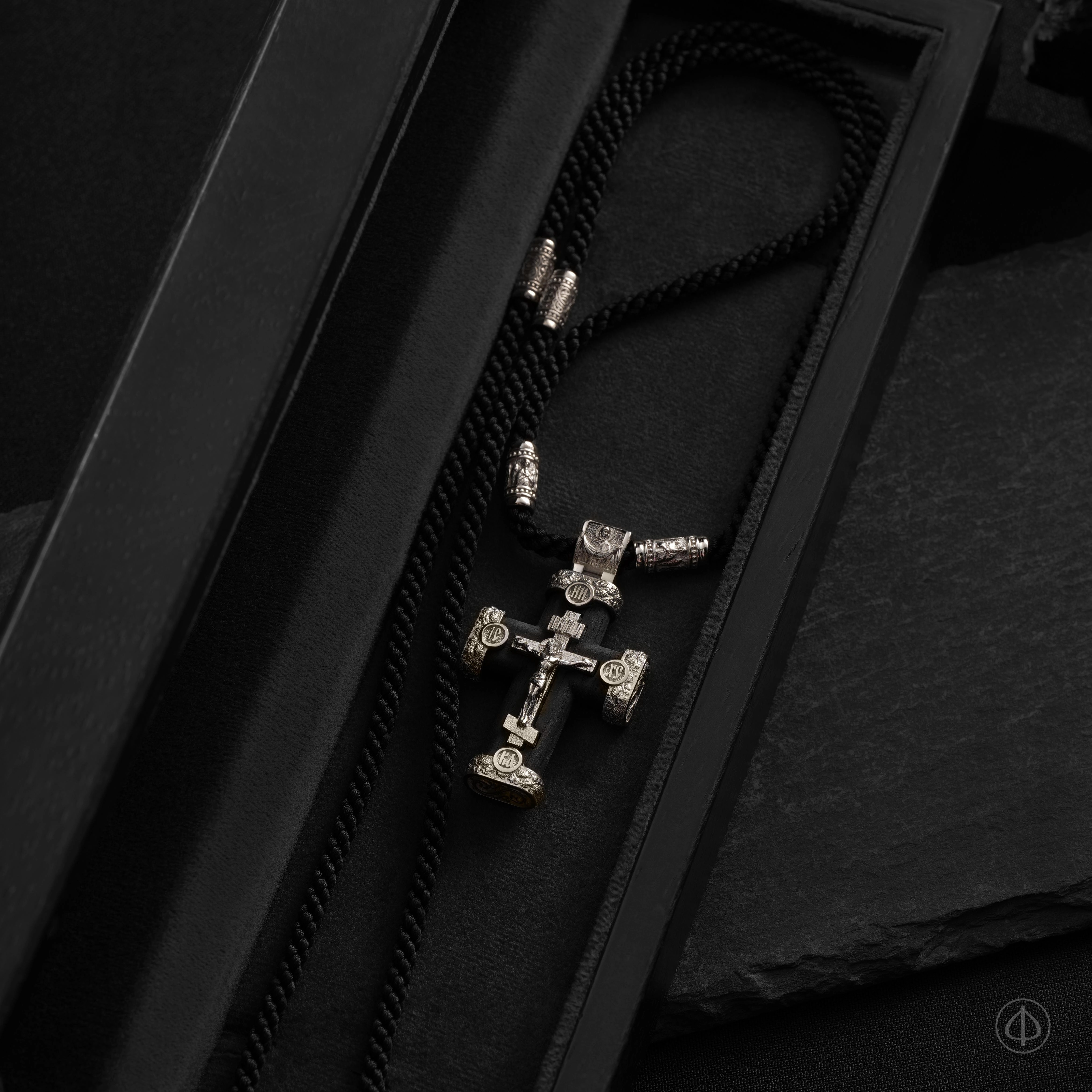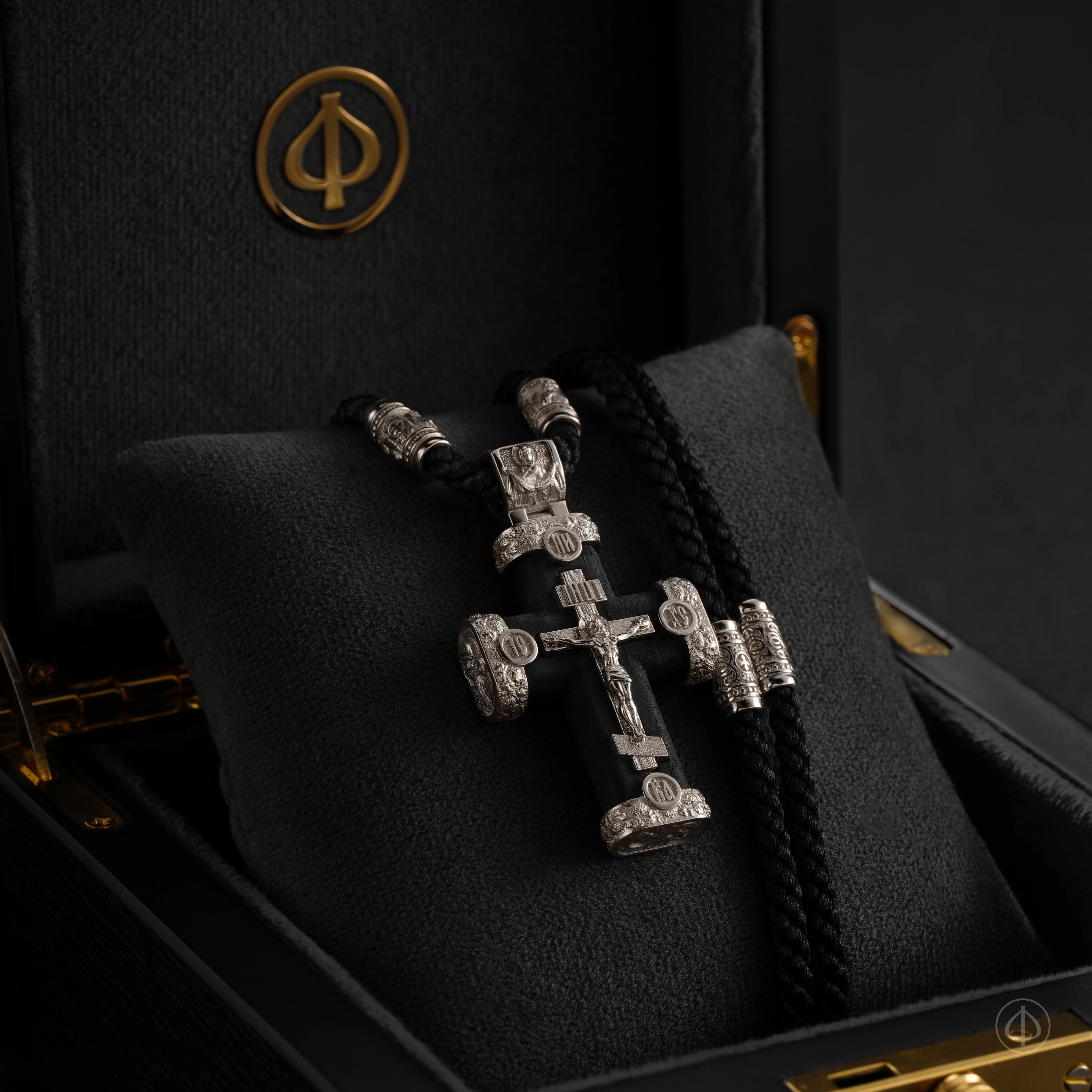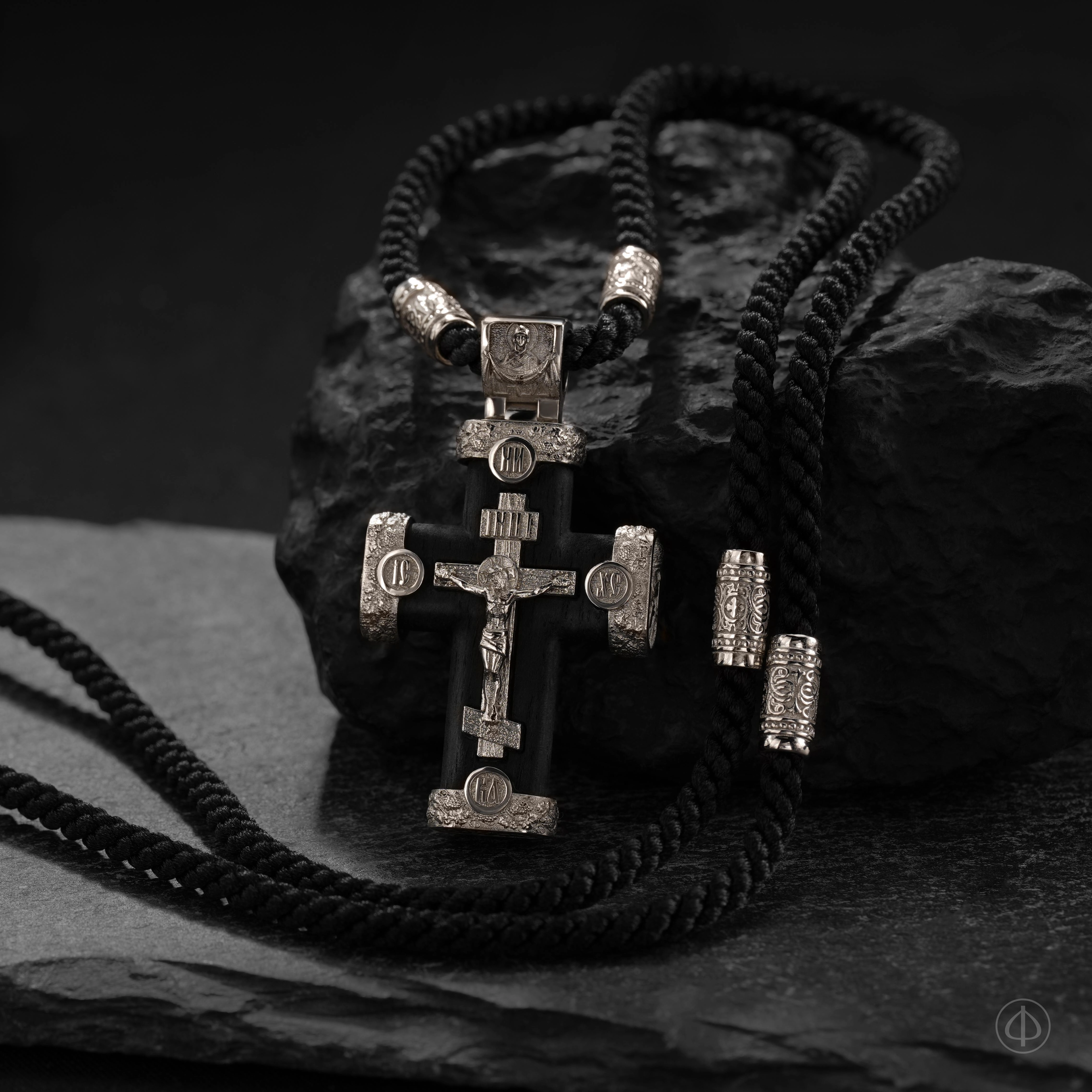 - в центре восьмиконечный крест с Распятием,