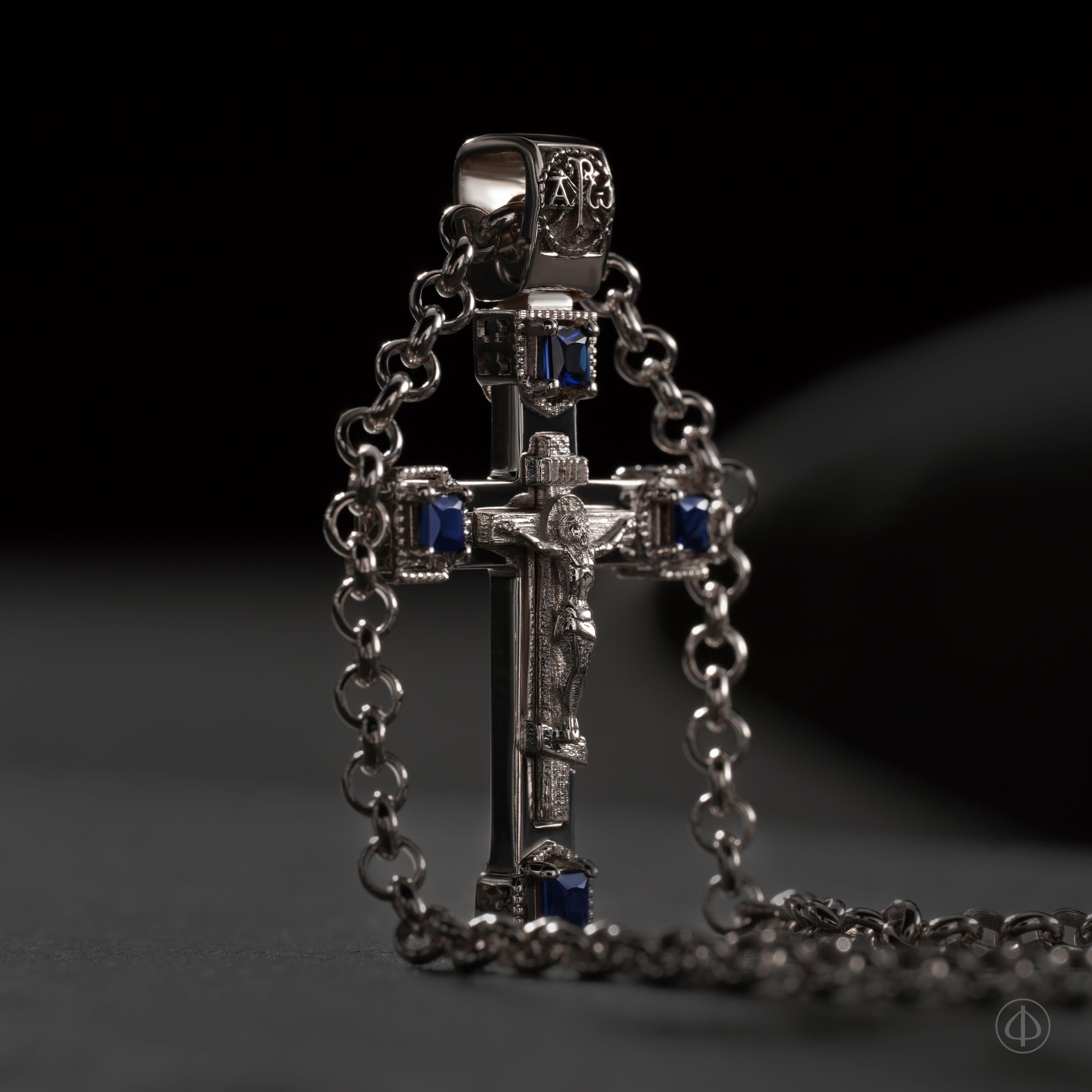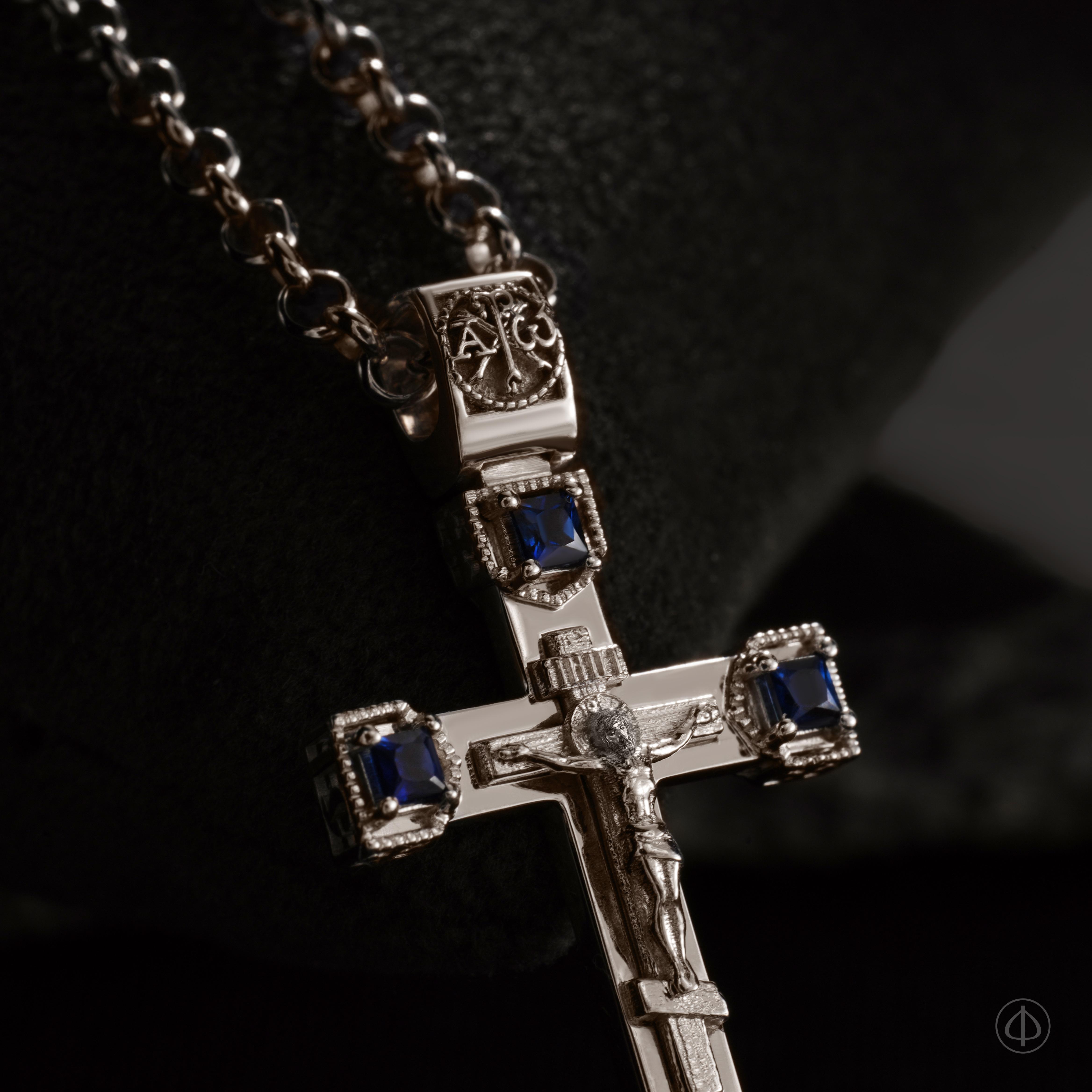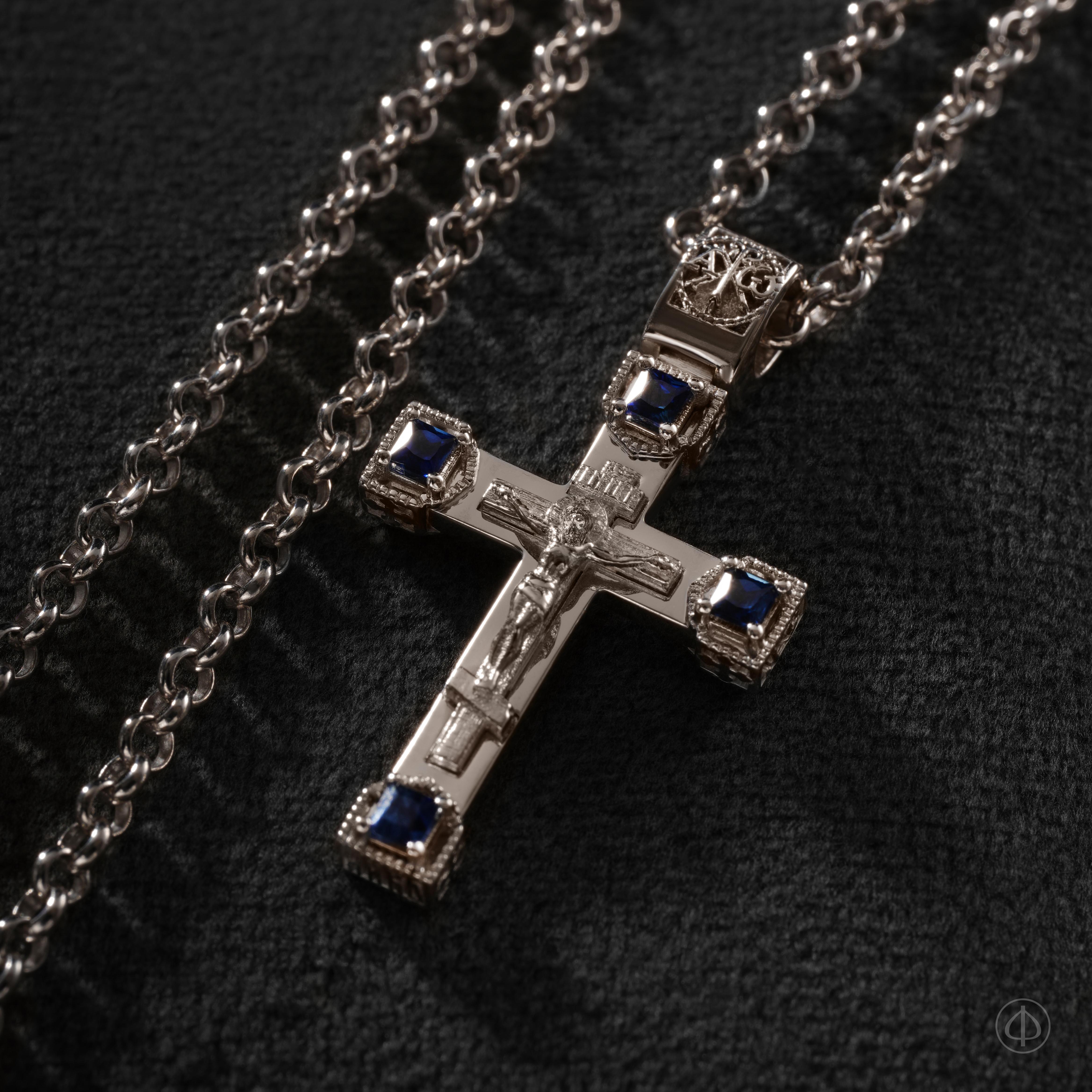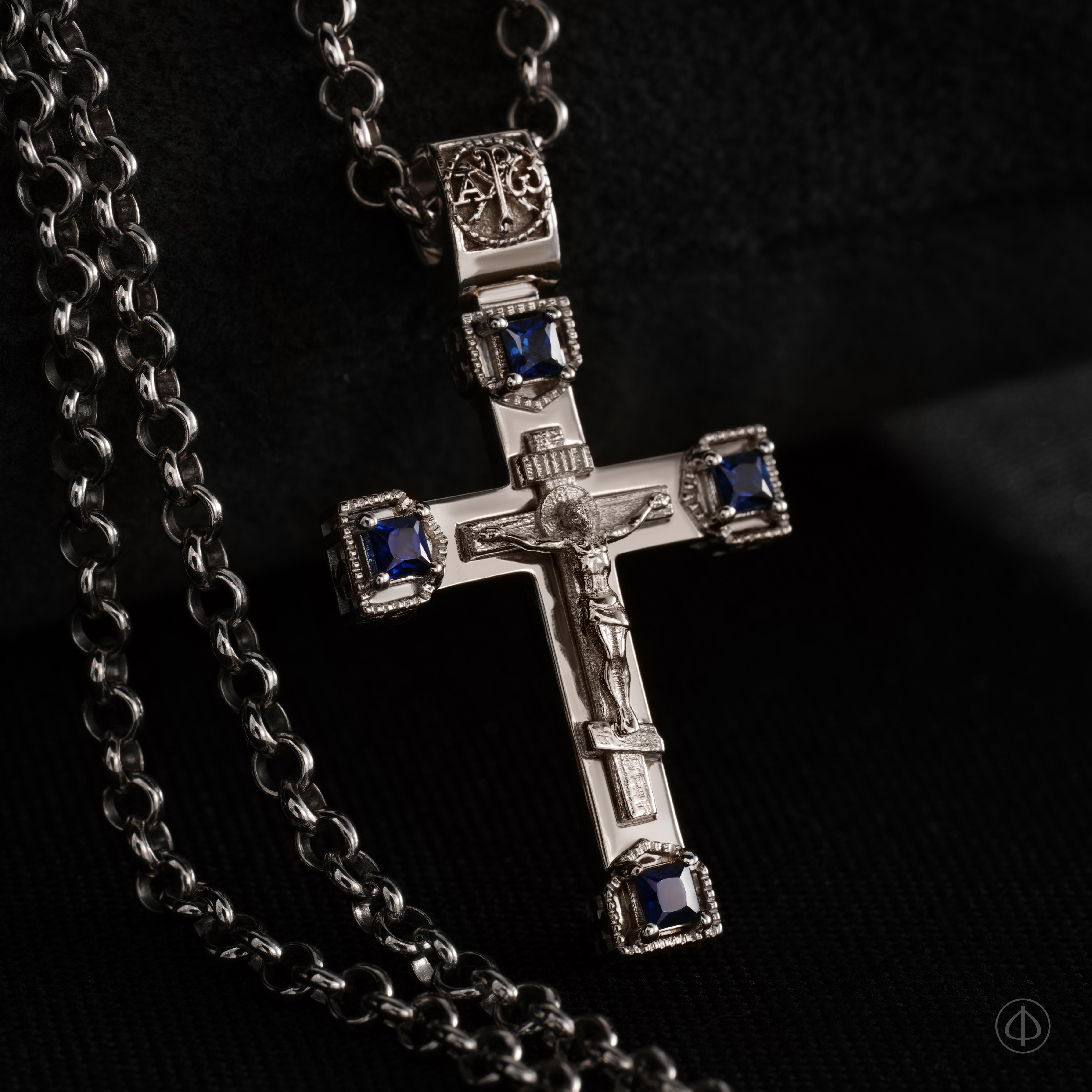 - на ушке Хризма – монограмма имени Христа с греческими буквы α и ω "Аз есмь Альфа и Омега",