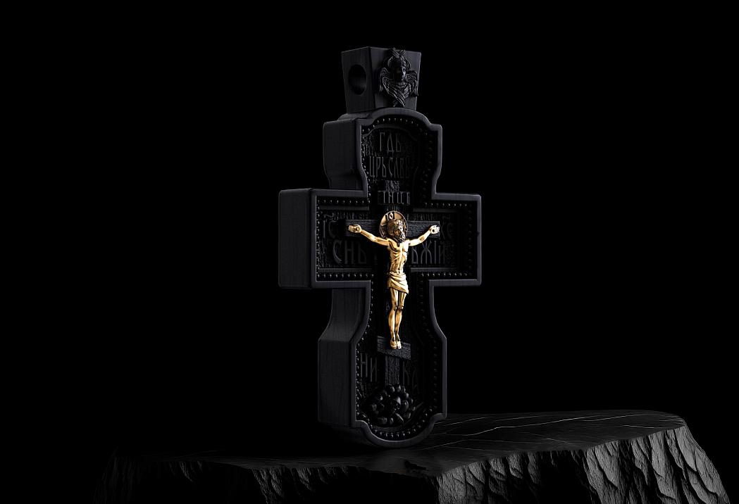 Крест из чёрного эбенового дерева и золота 750 пробы.