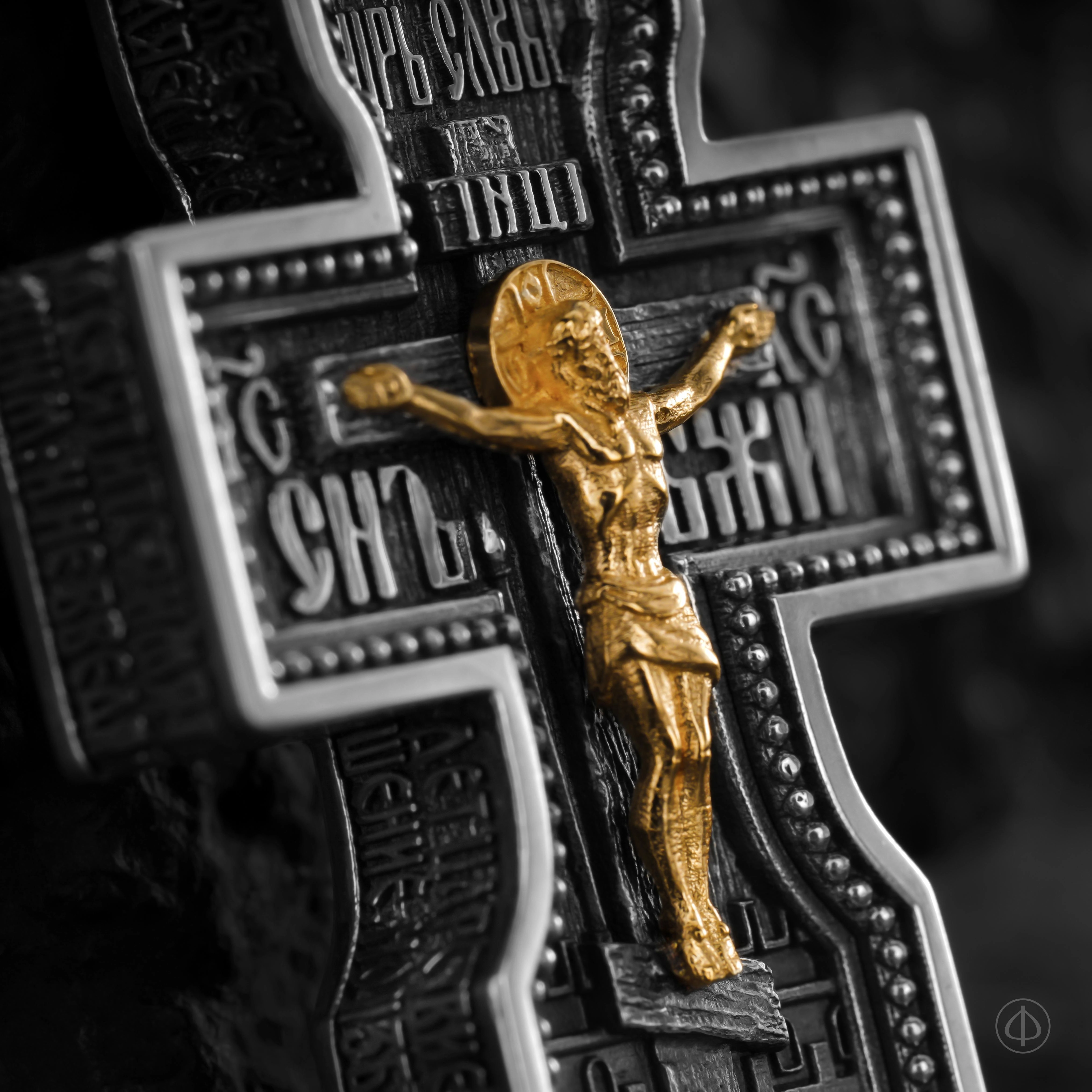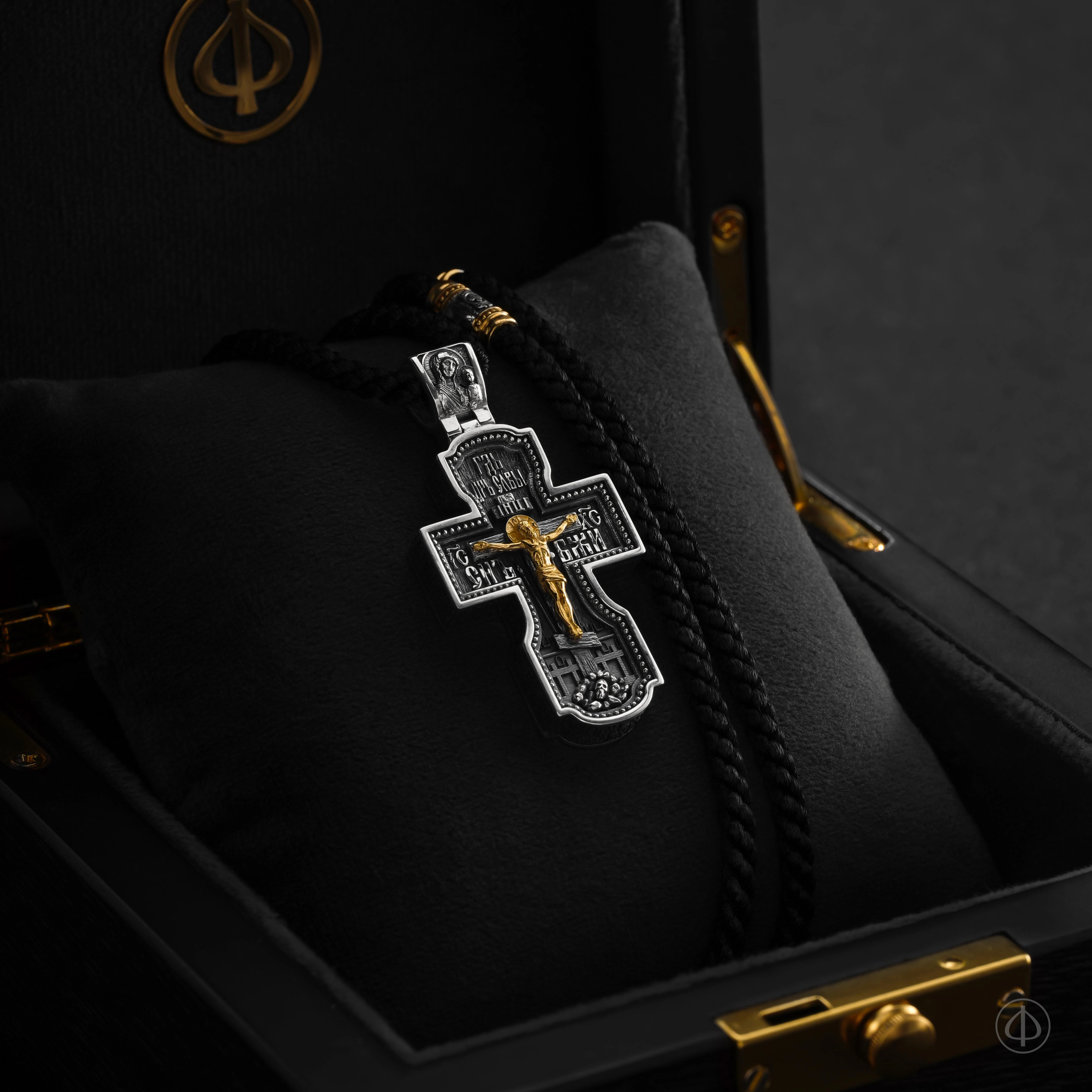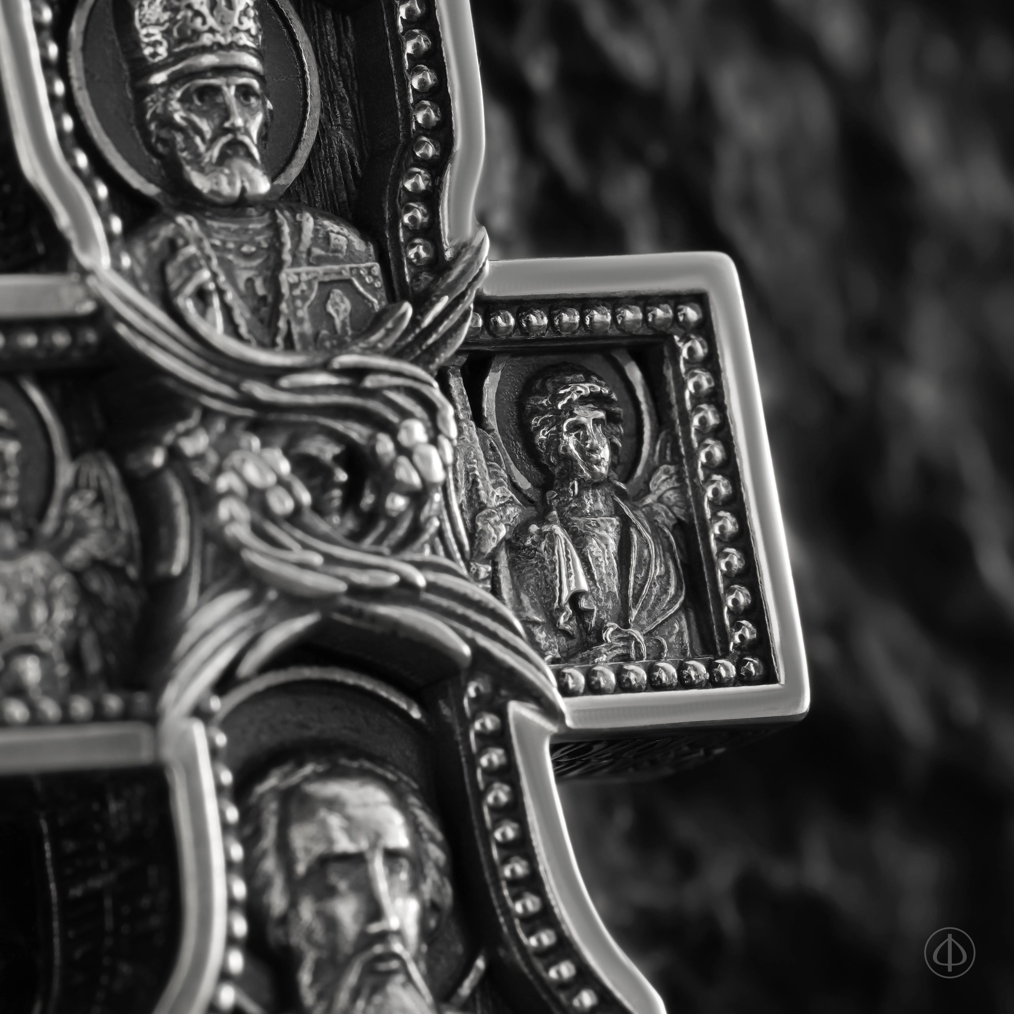 - в центре восьмиконечный крест с Распятием,
