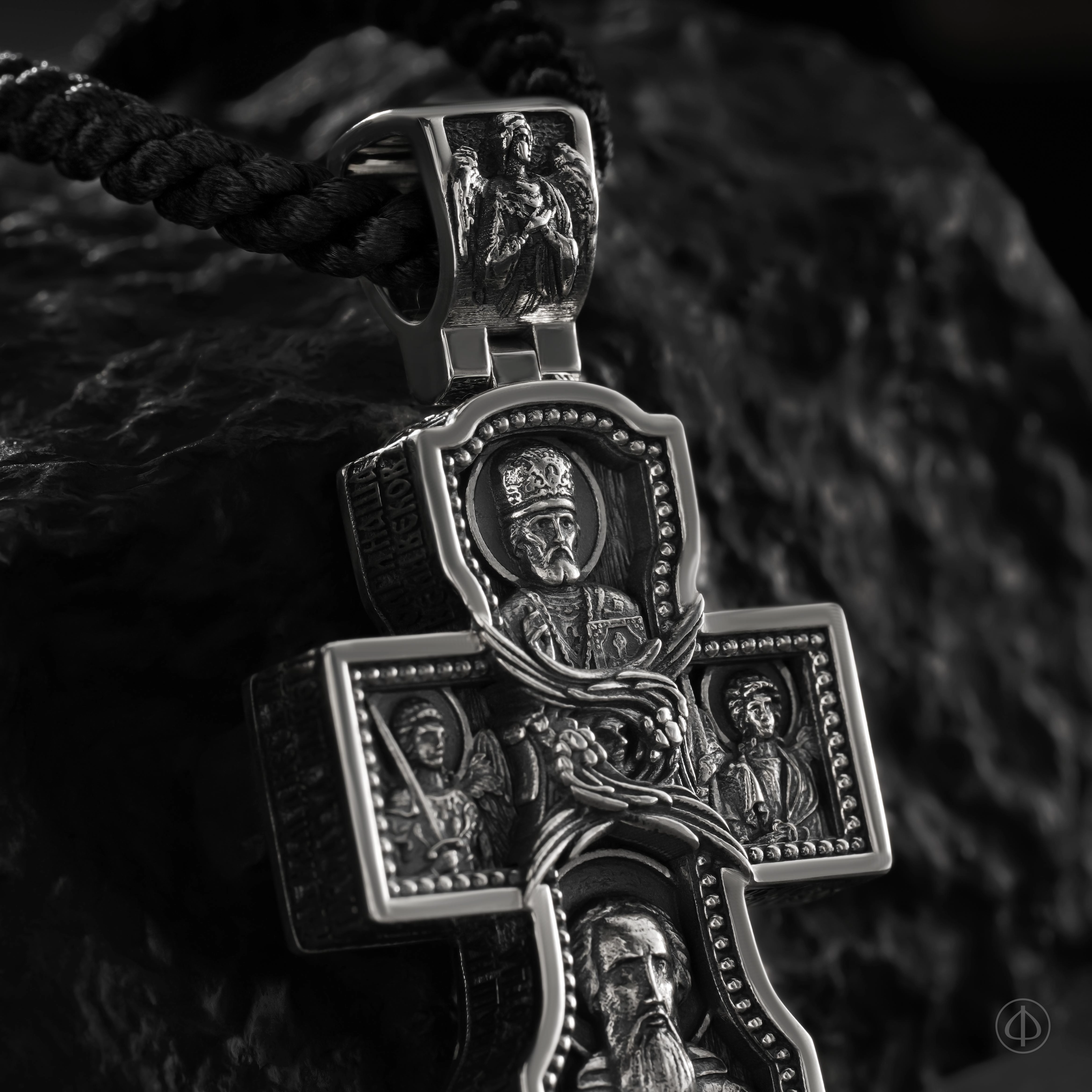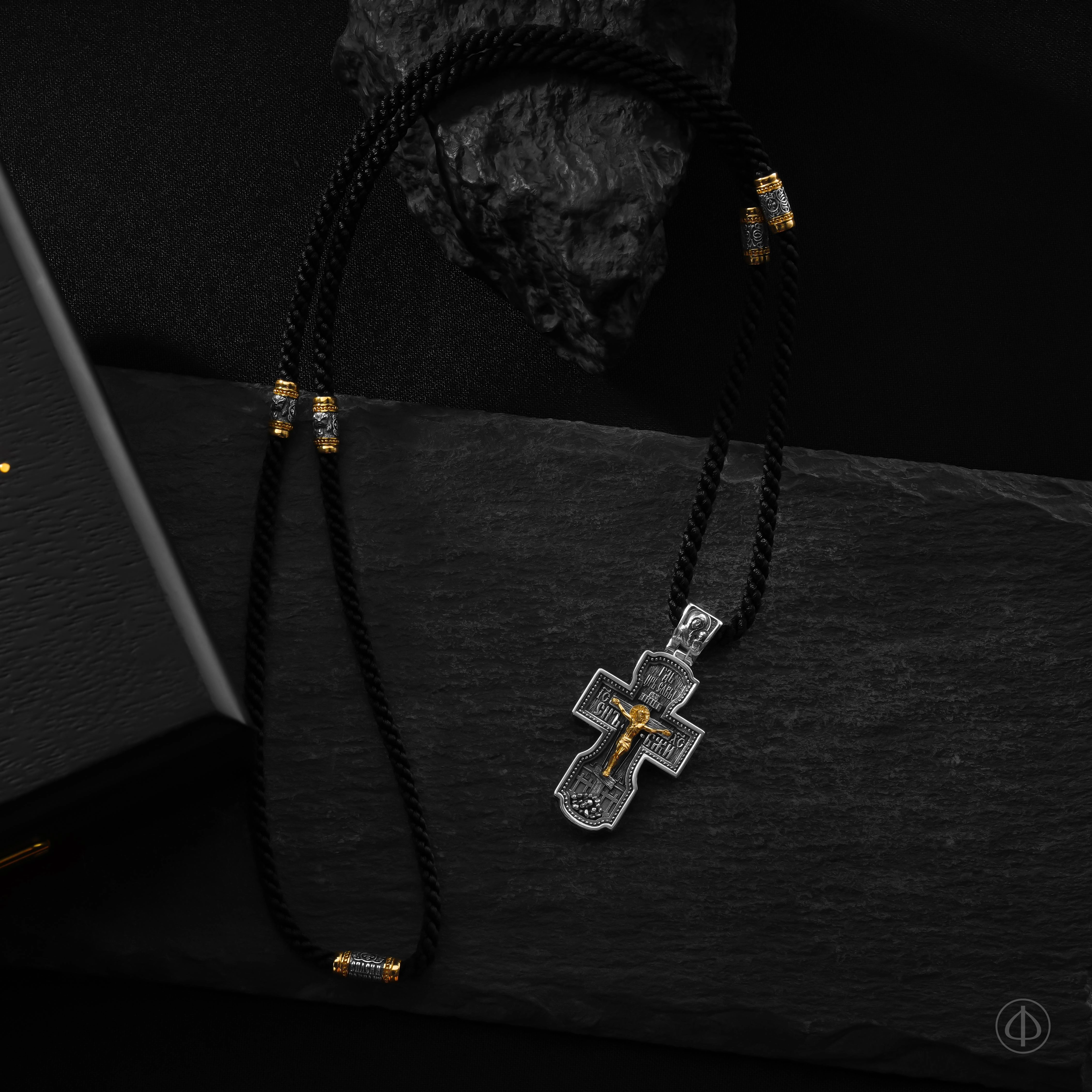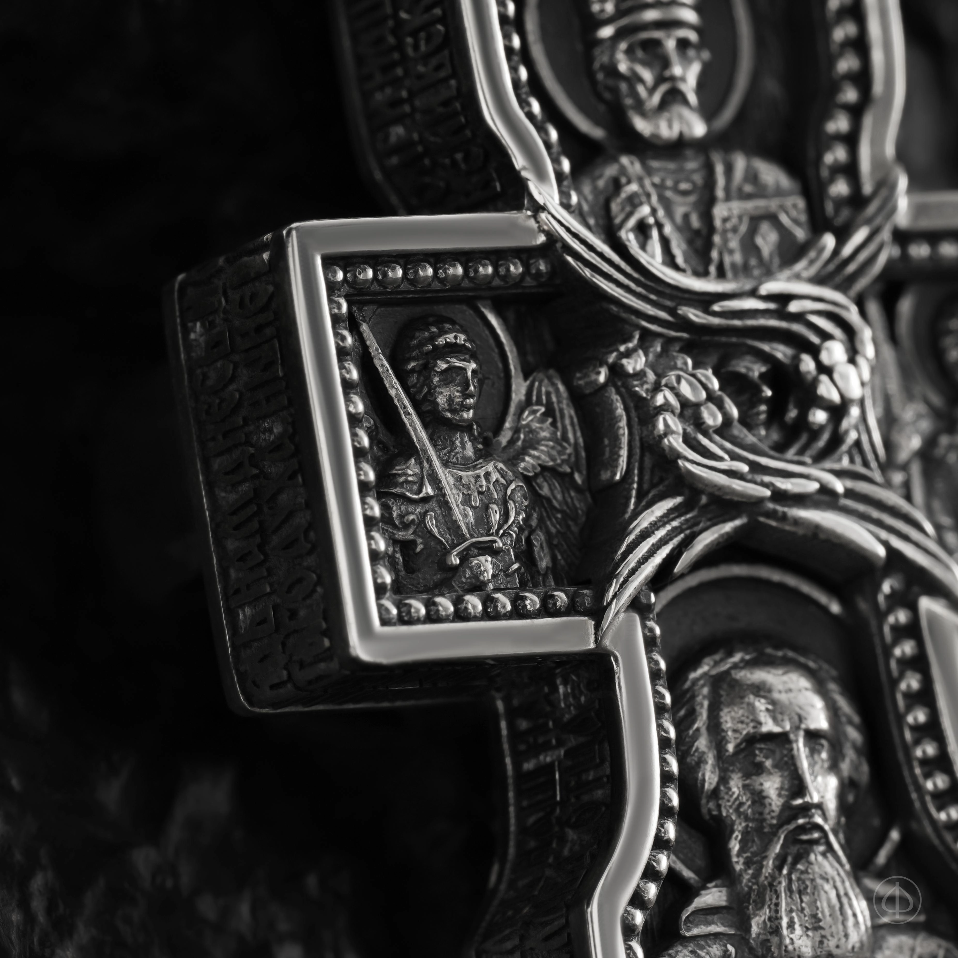 - в центре восьмиконечный крест с Распятием,