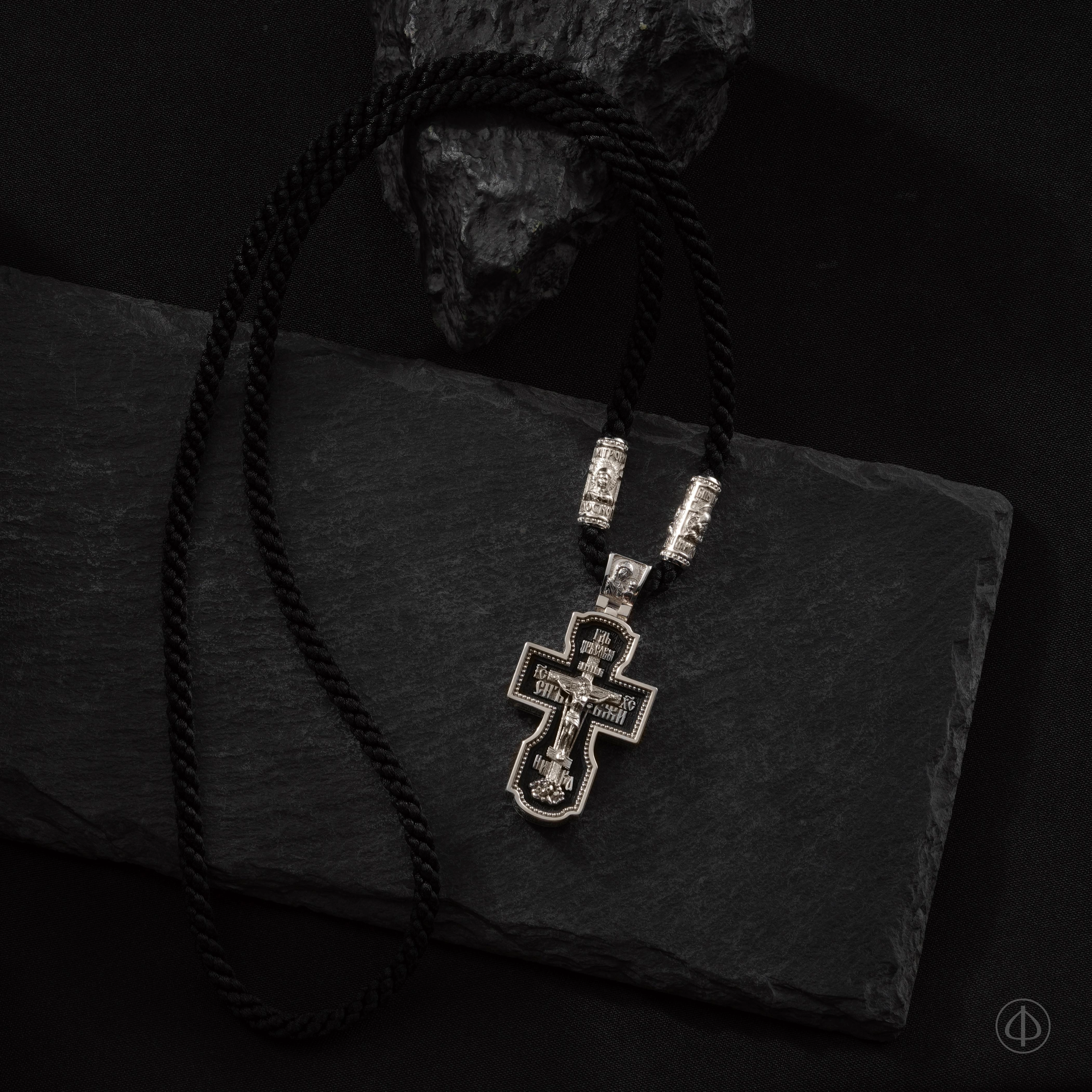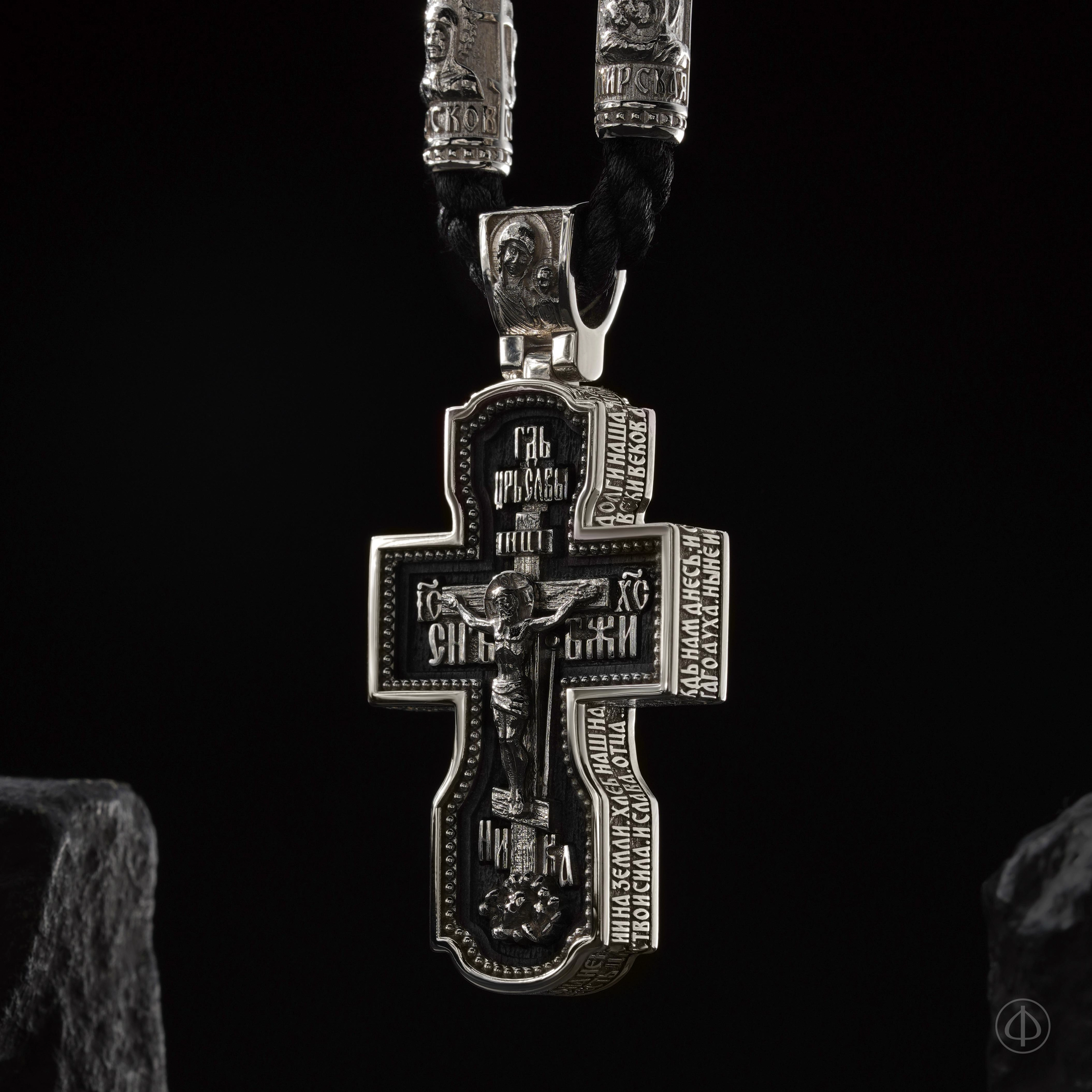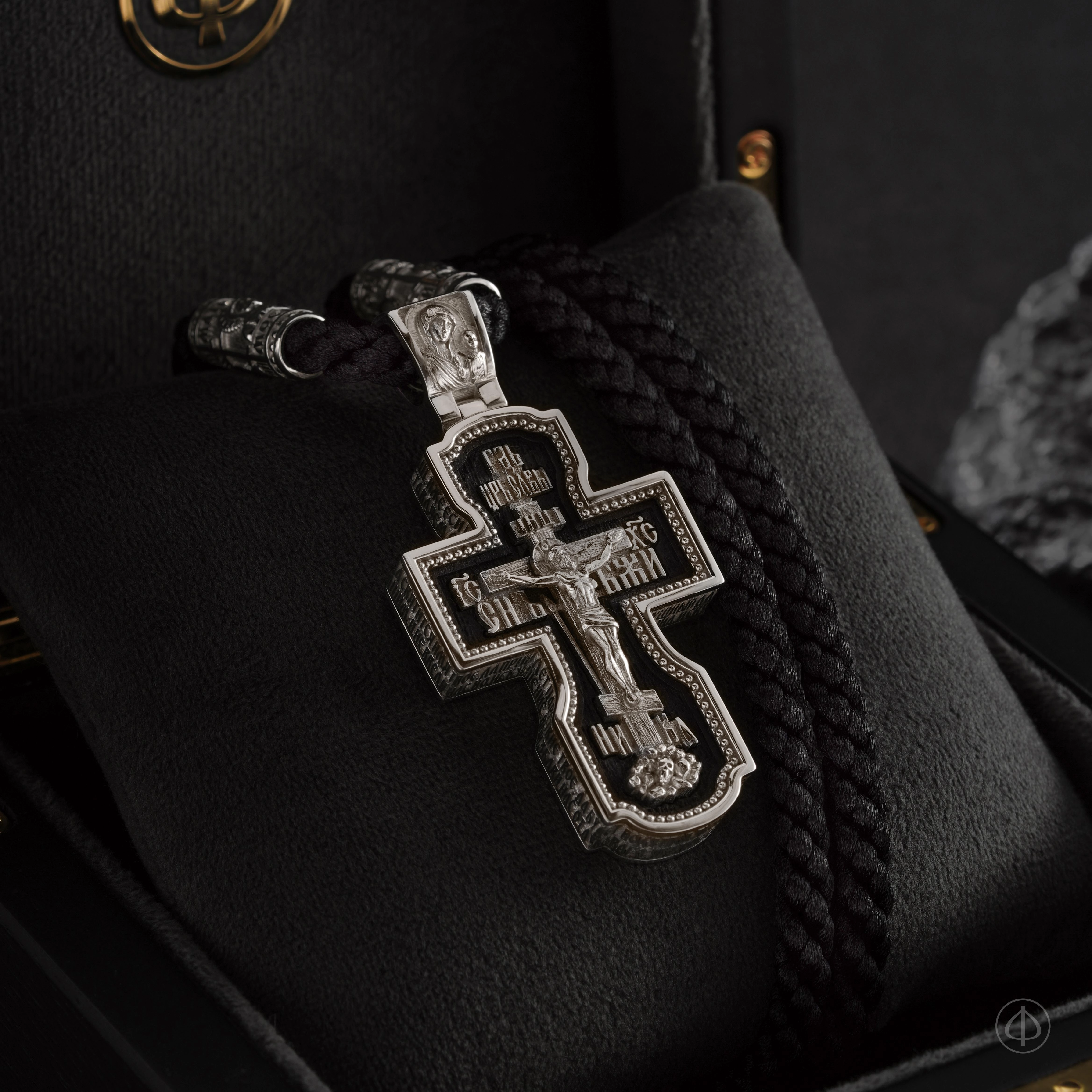 - в центре восьмиконечный крест с Распятием,