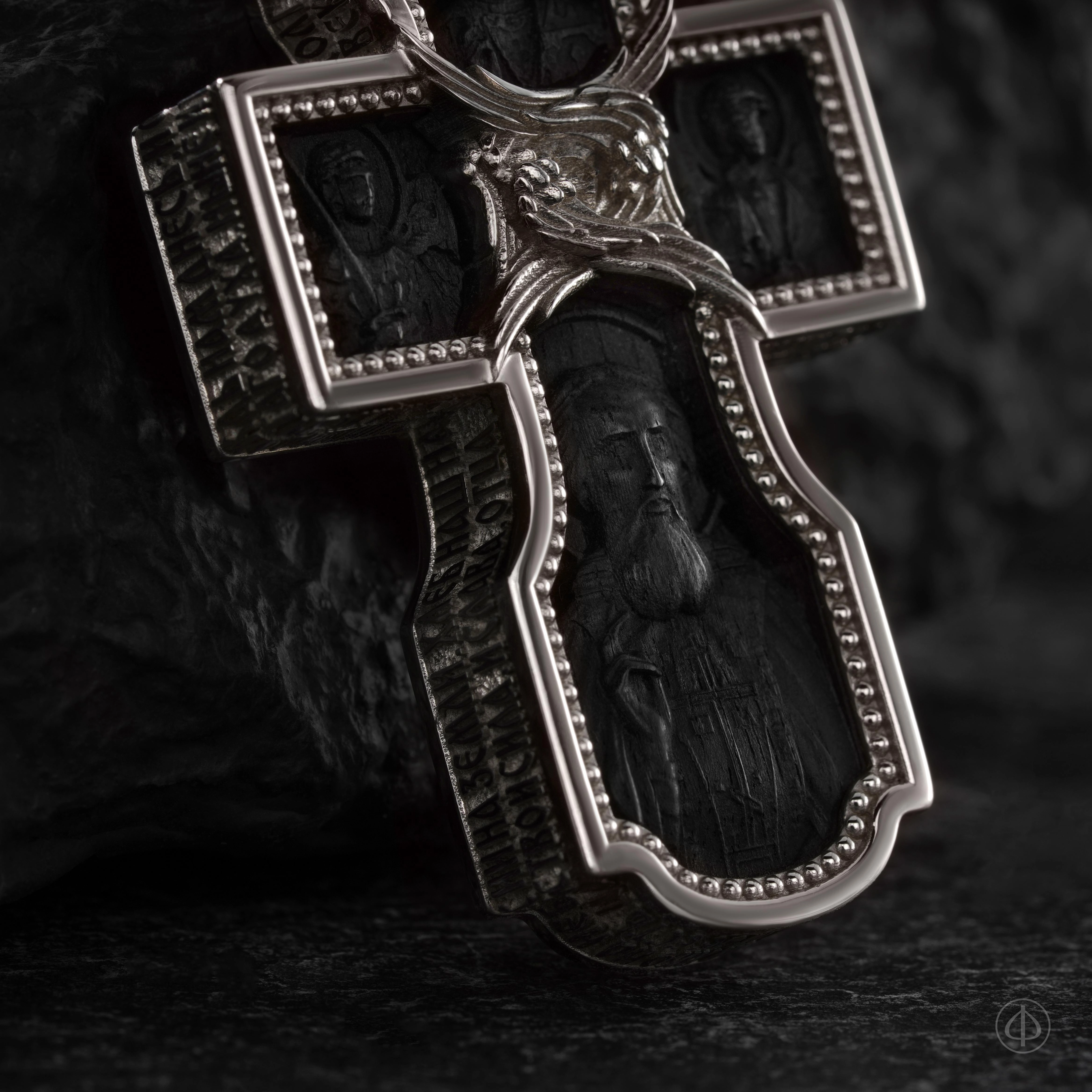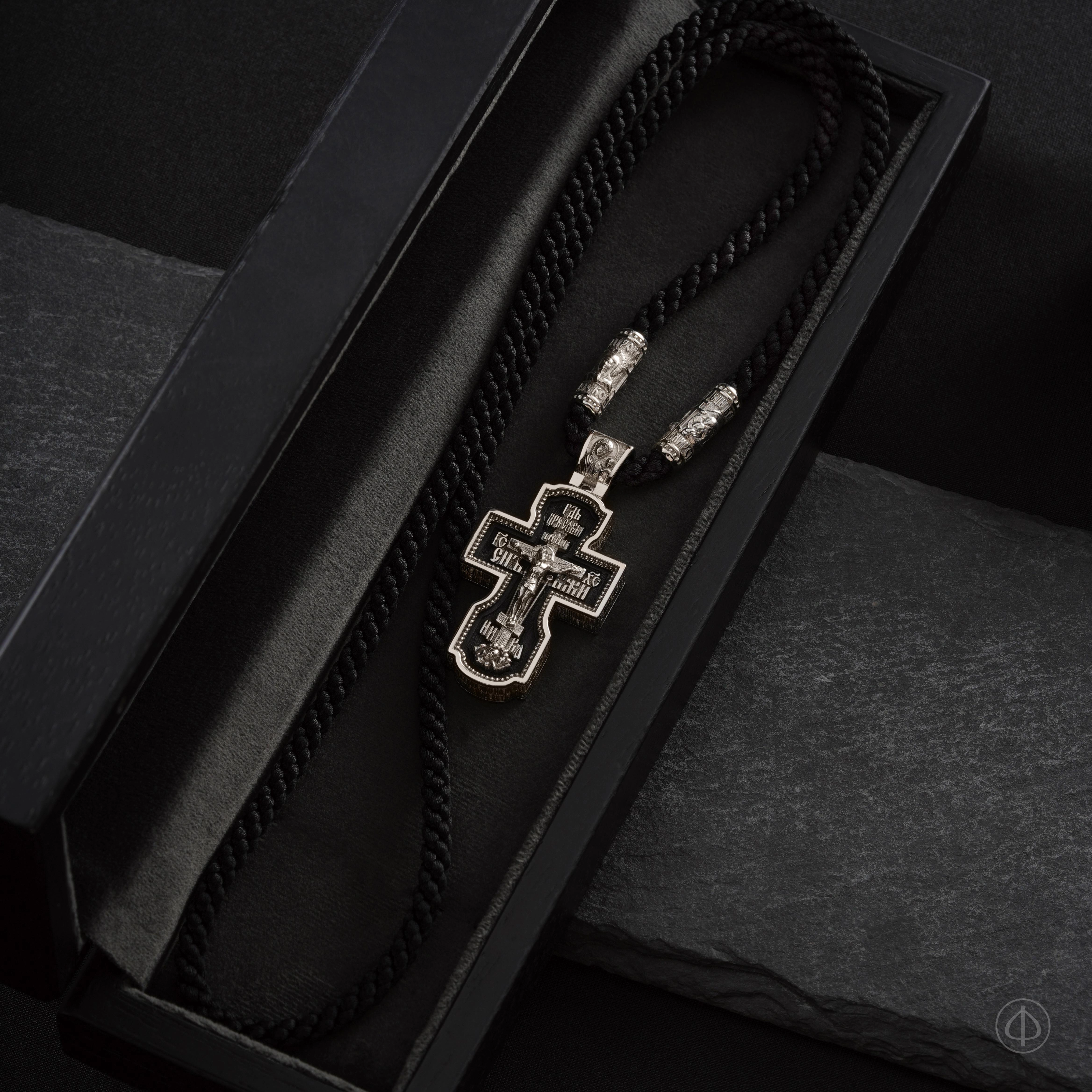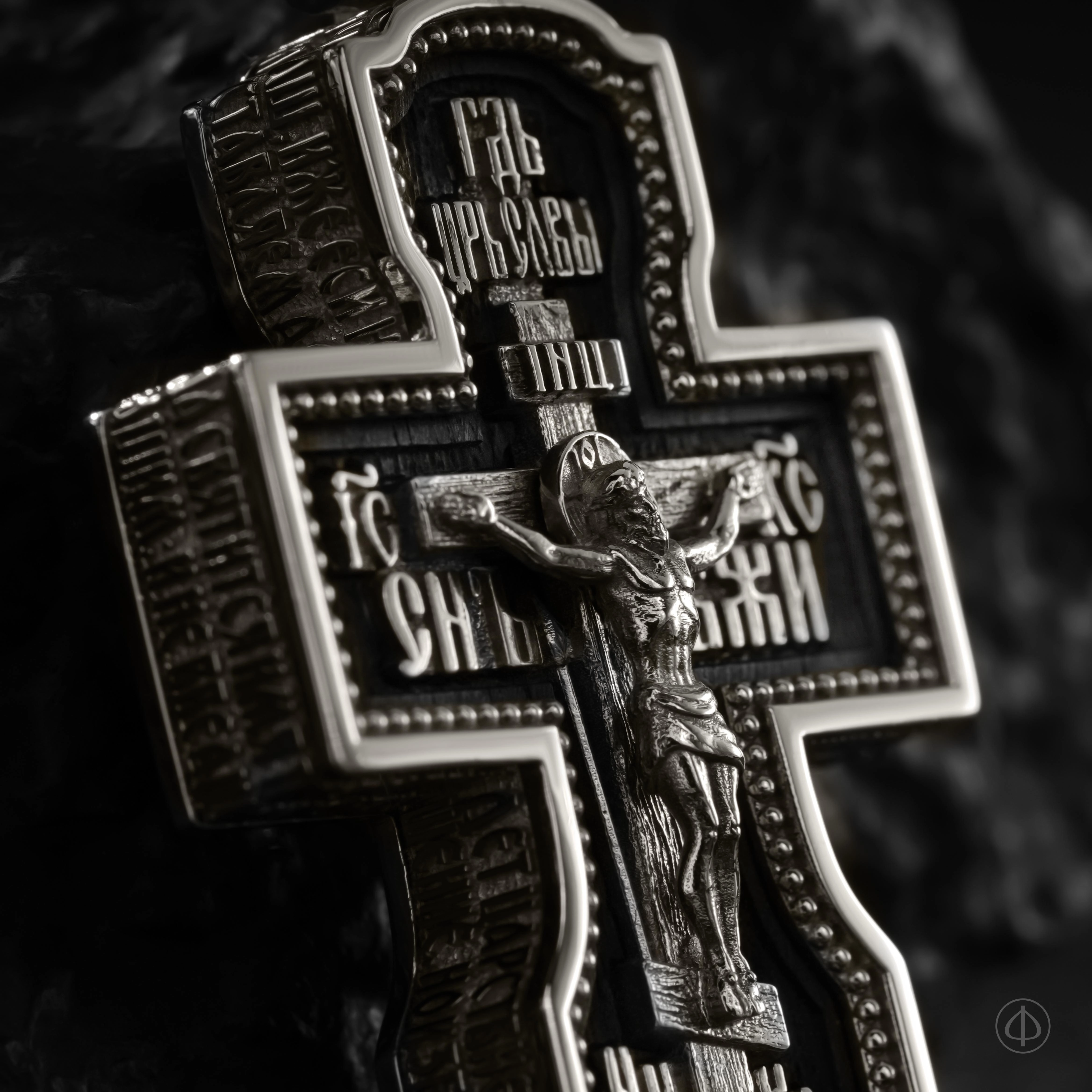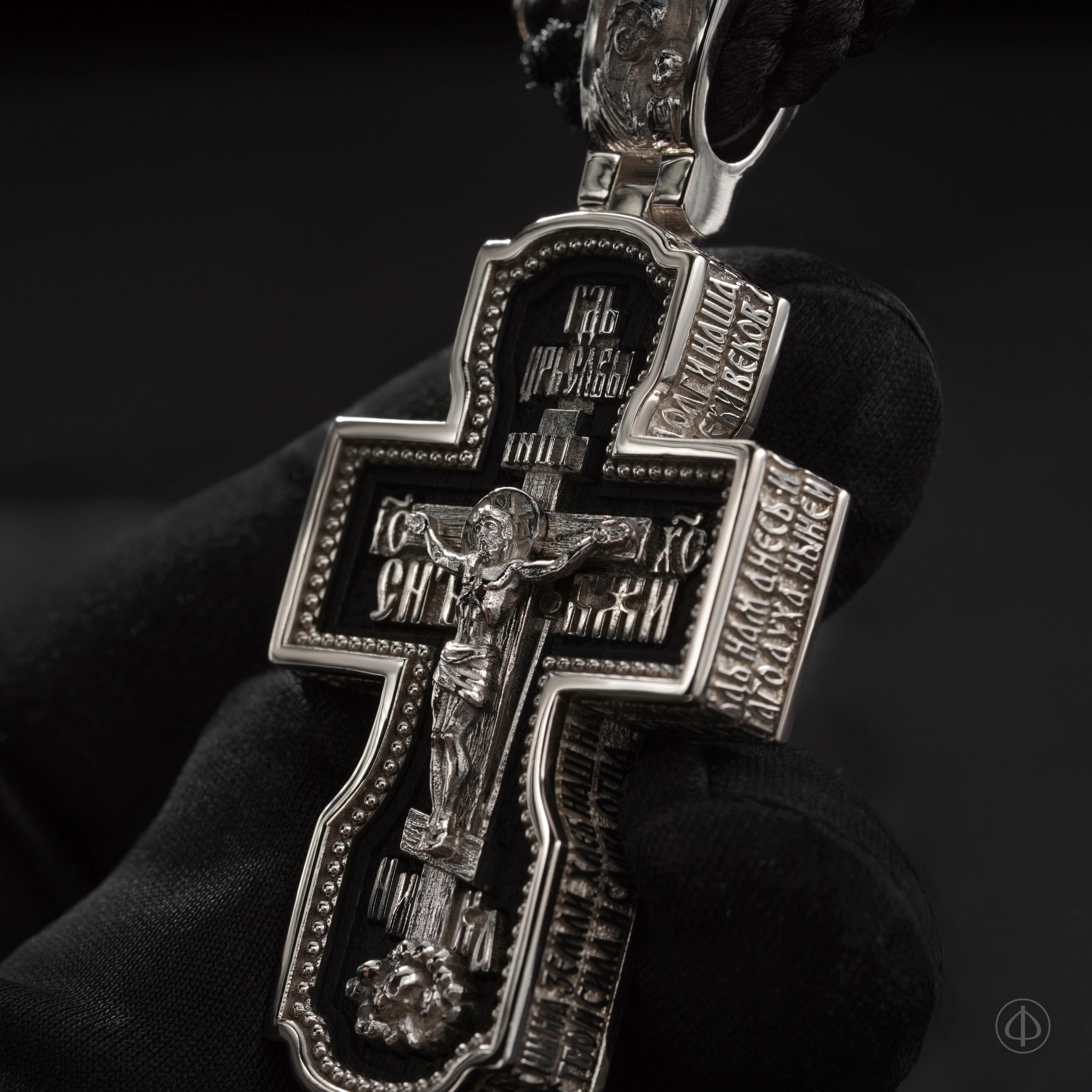 - в центре восьмиконечный крест с Распятием,