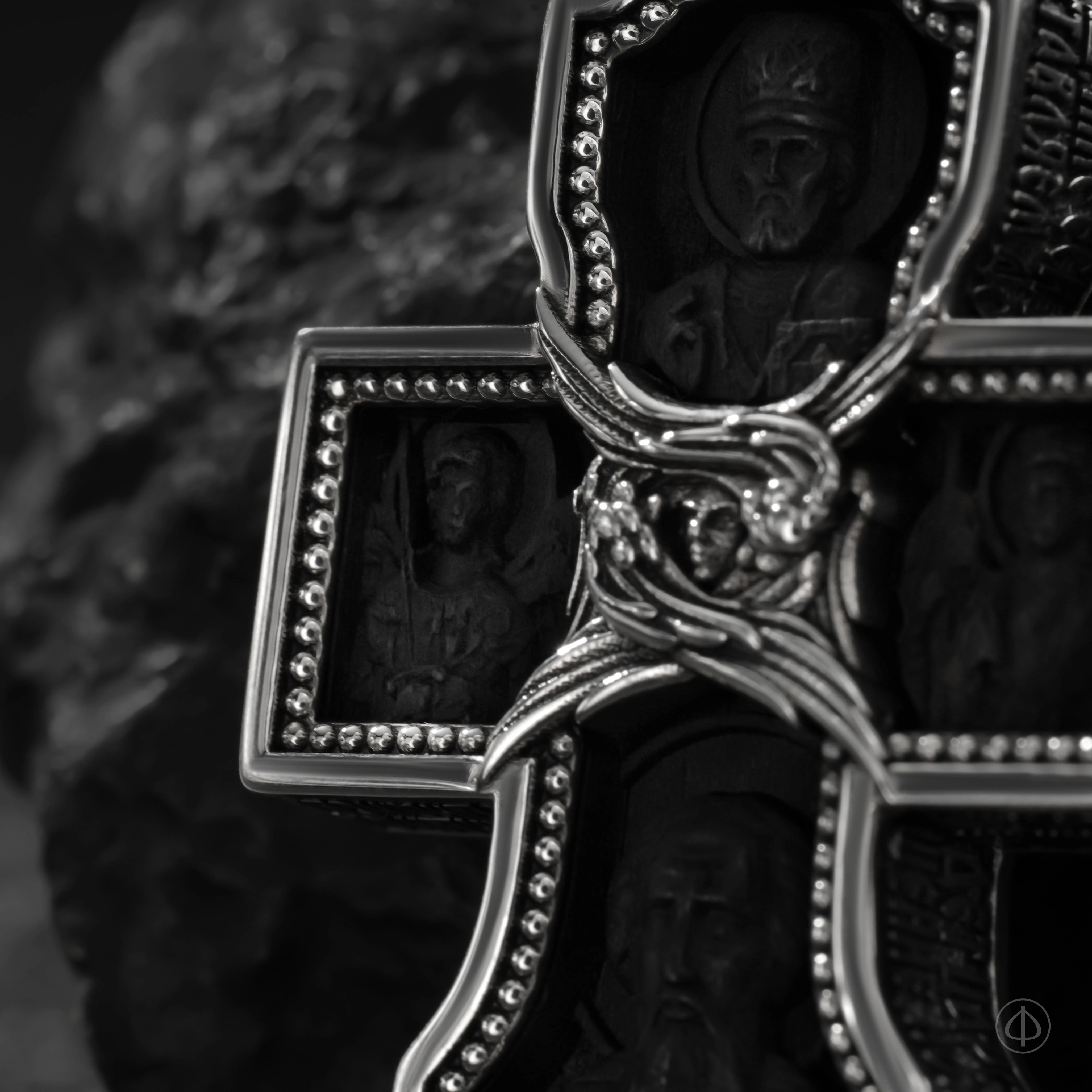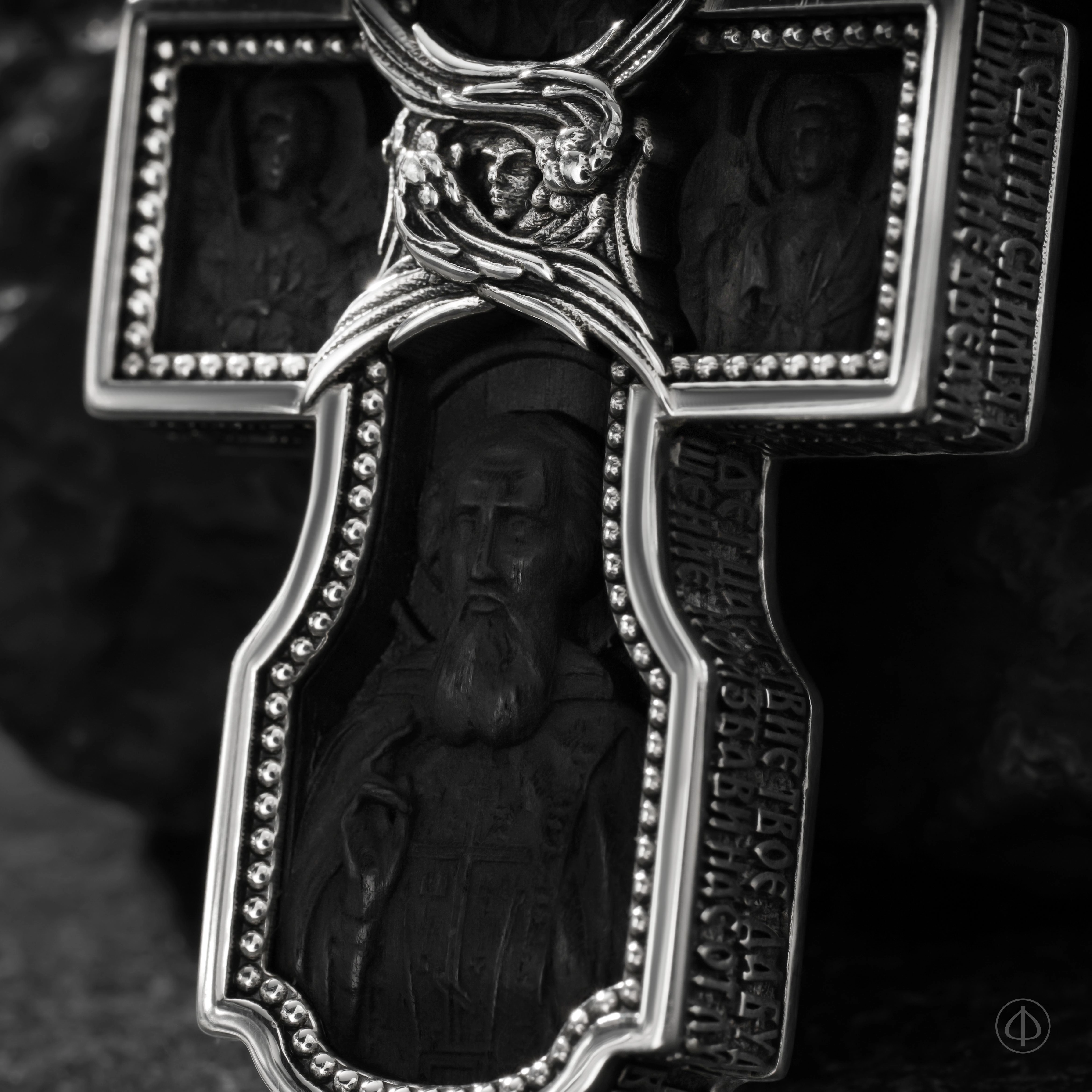 Миниатюрная резьба ликов святых подчёркивает высокий художественный уровень работы: каждая деталь продумана, выверена и исполнена с особой тщательностью. Крест воспринимается не только как нательный образ, но и как цельное ювелирное произведение высокого искусства.