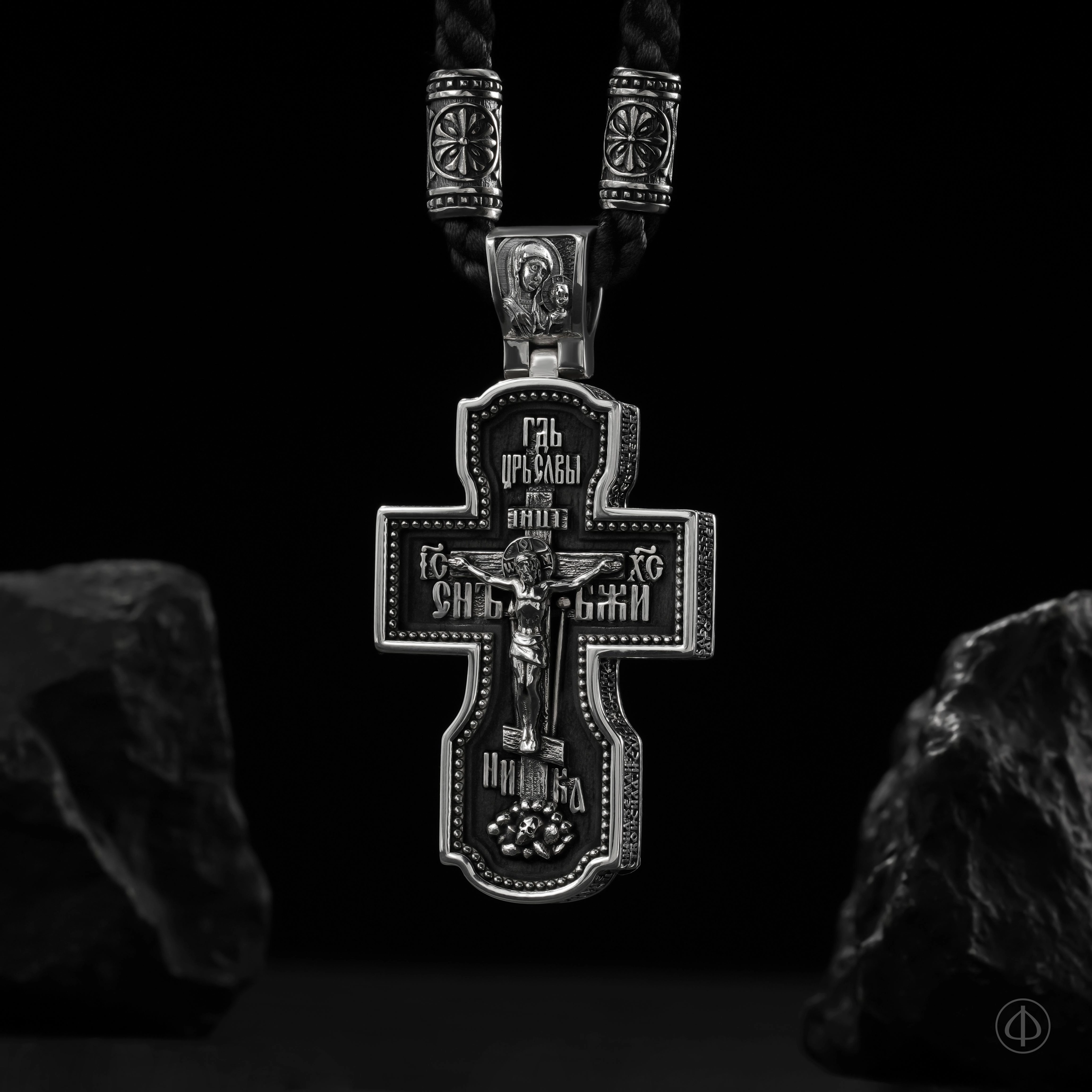 - в центре восьмиконечный крест с Распятием,