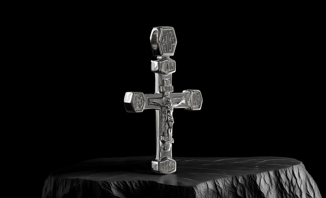 - в центре классический восьмиконечный крест с Распятием.