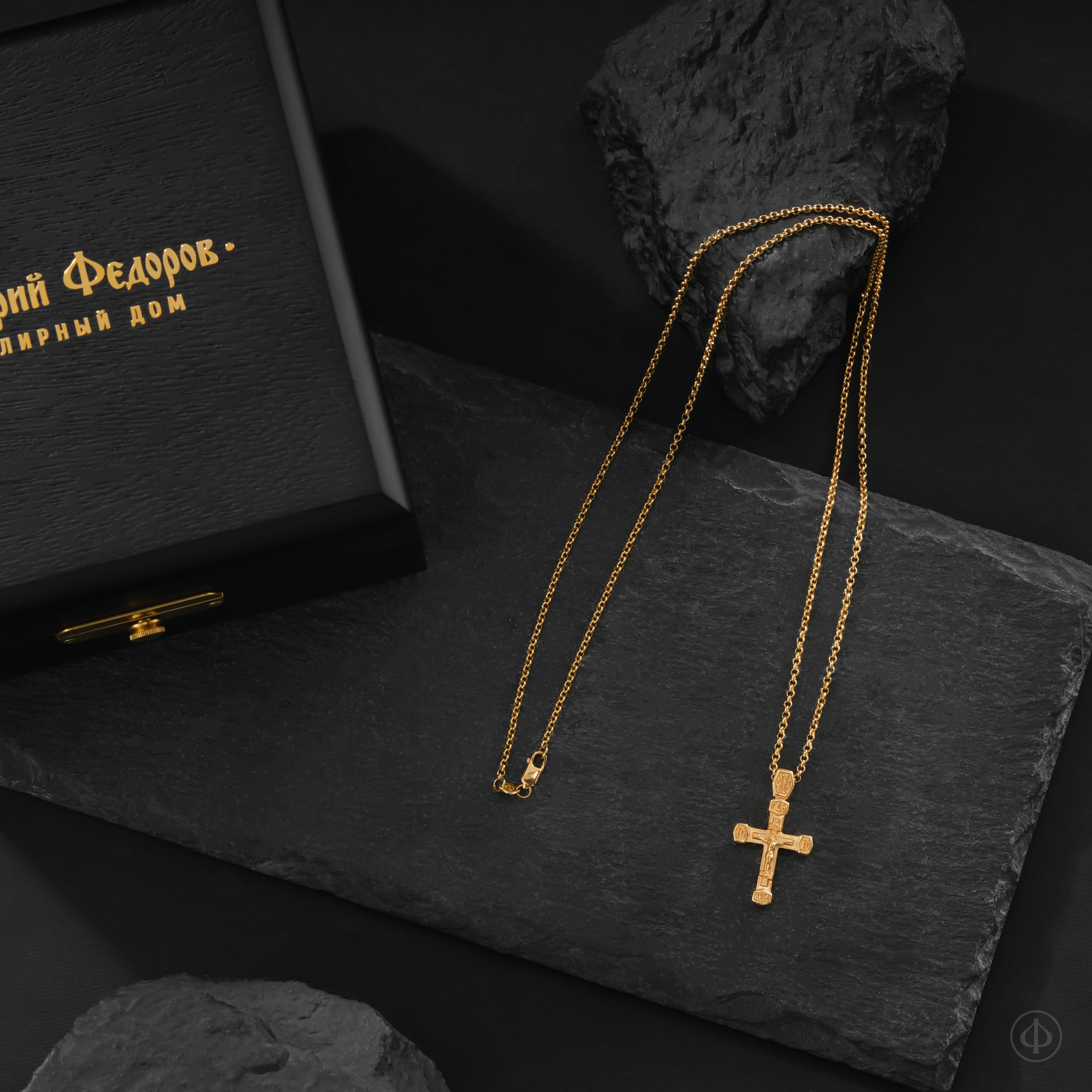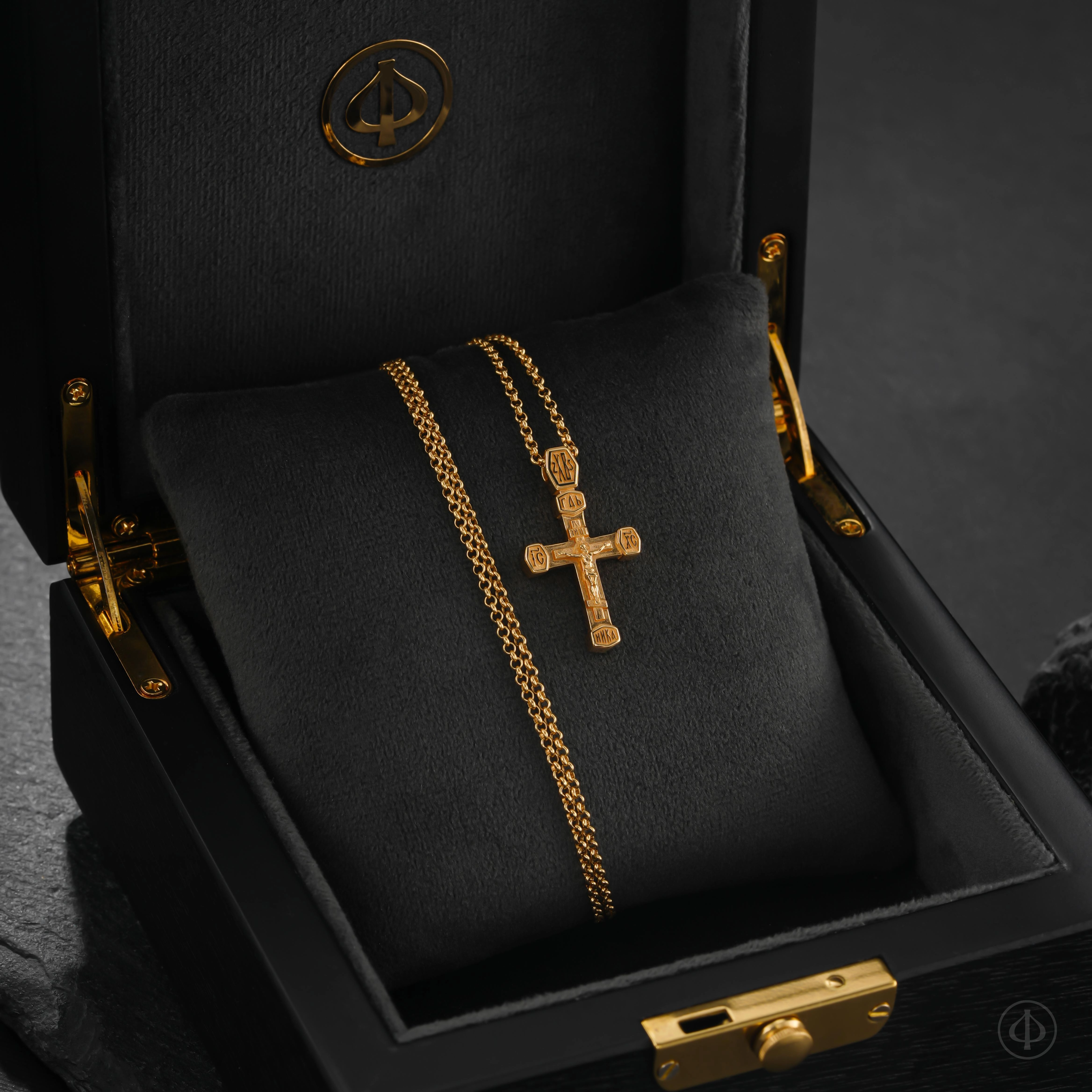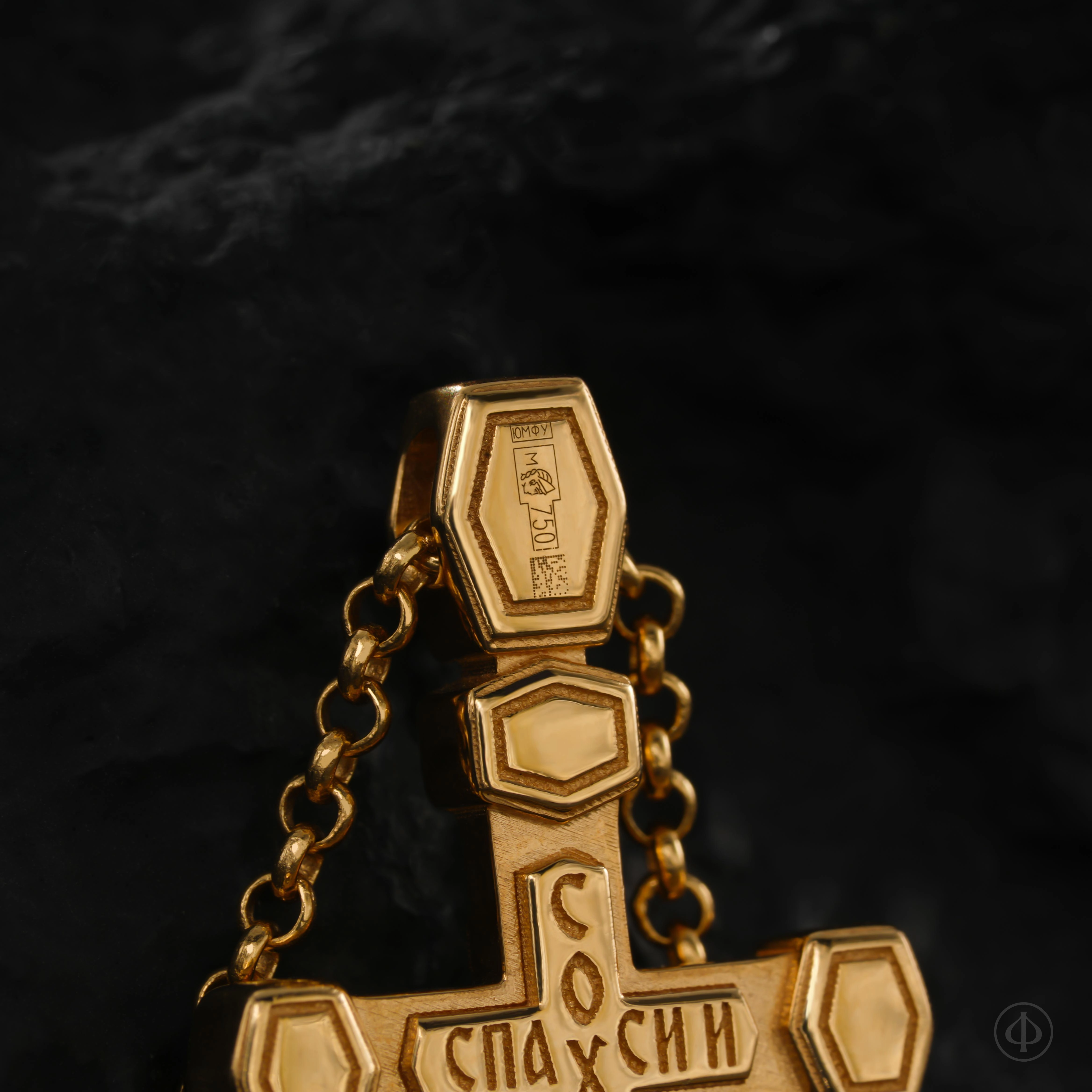 - в центре классический восьмиконечный крест с Распятием.
