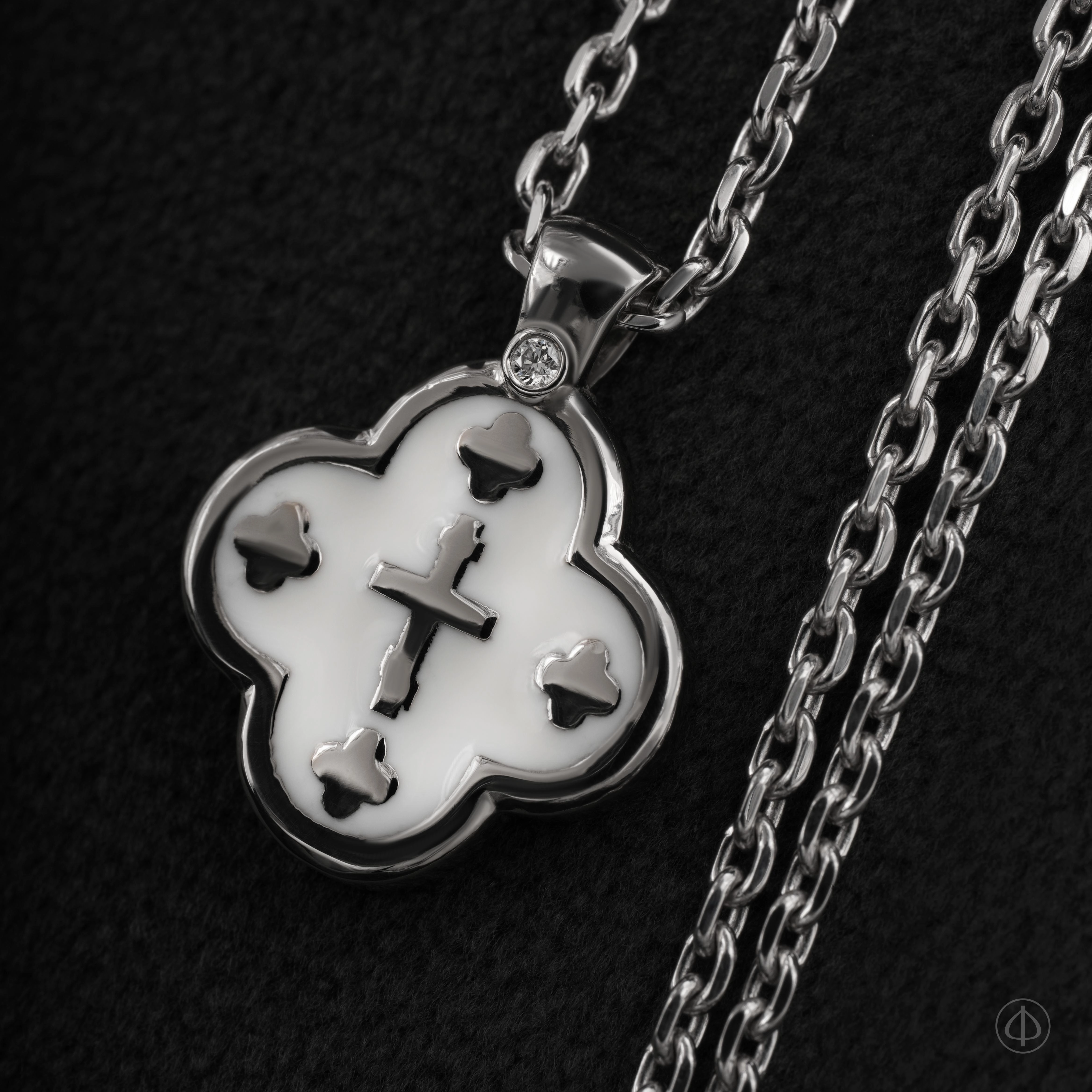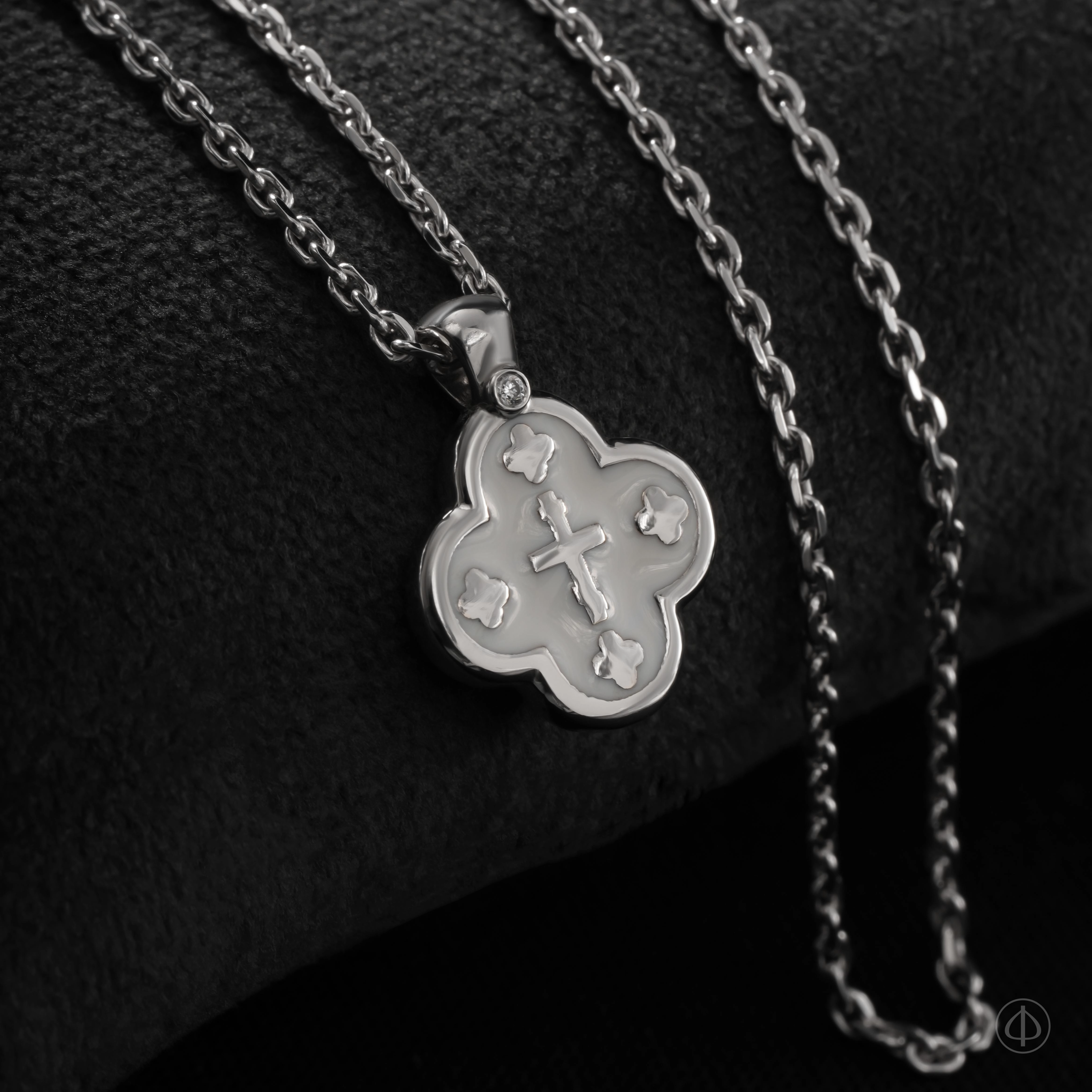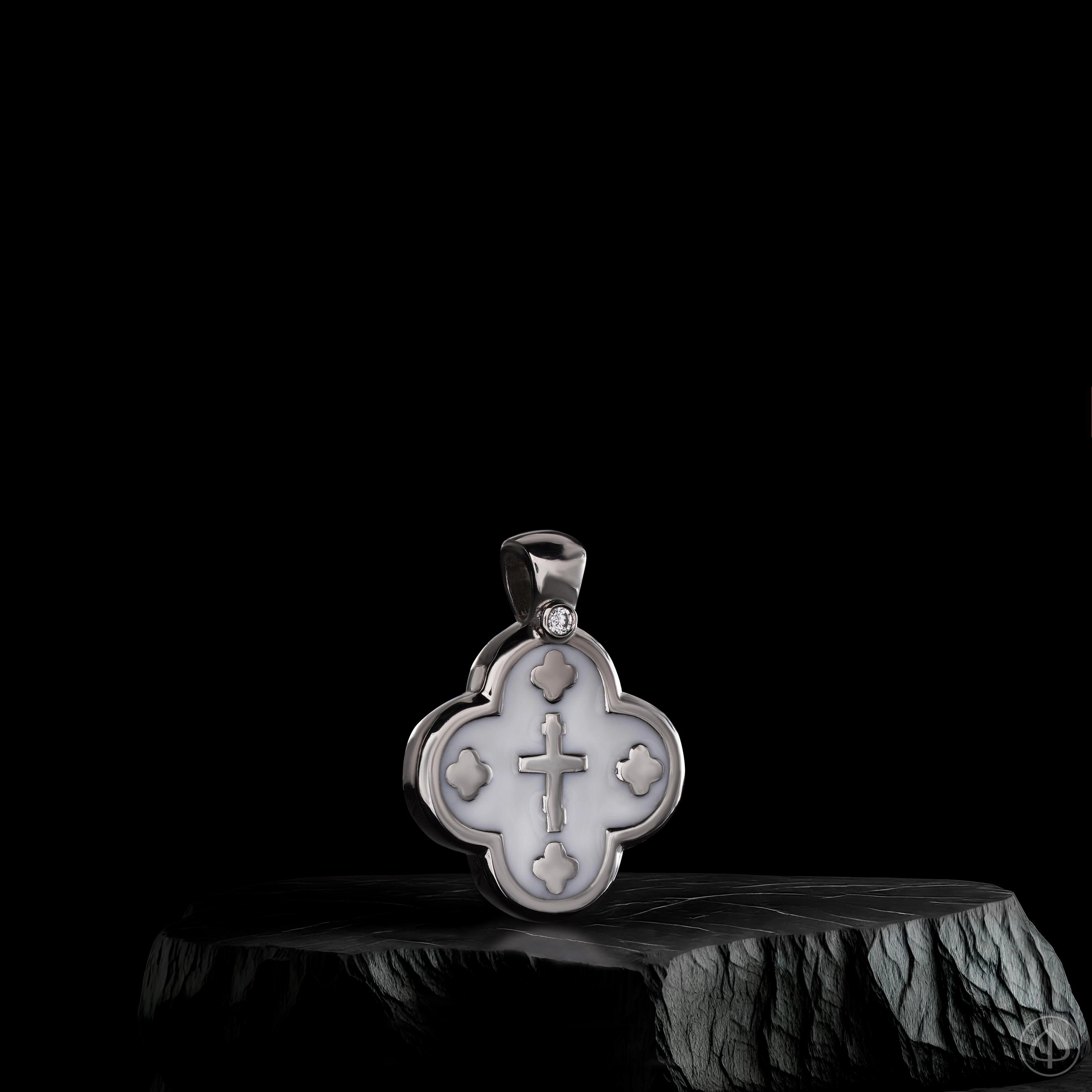 Крест с эмалью ручной работы – духовно значимое произведение ювелирного искусства. Крестик выполнен из платины. Самый прочный драгоценный металл олицетворяет незыблемость и совершенство христианской веры: