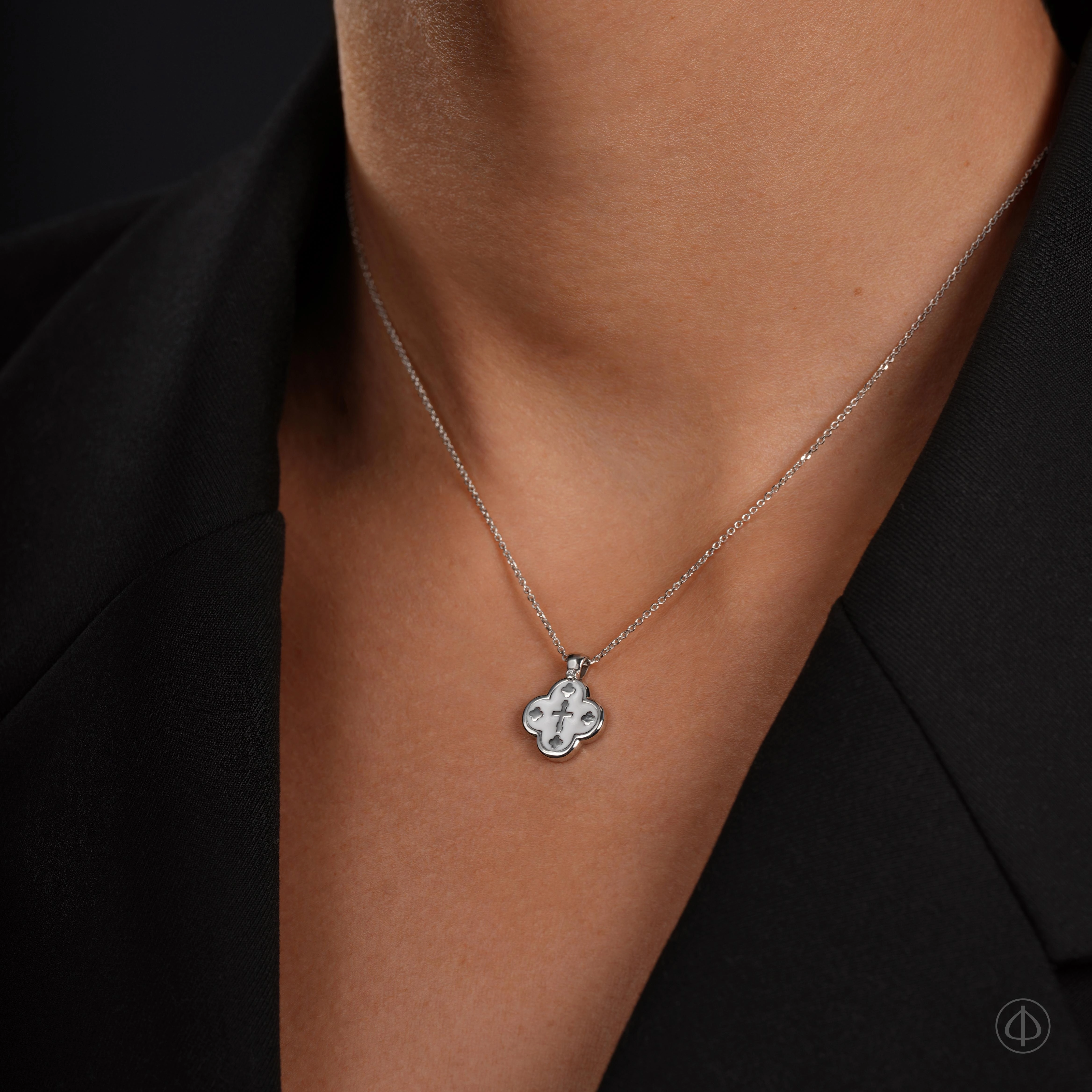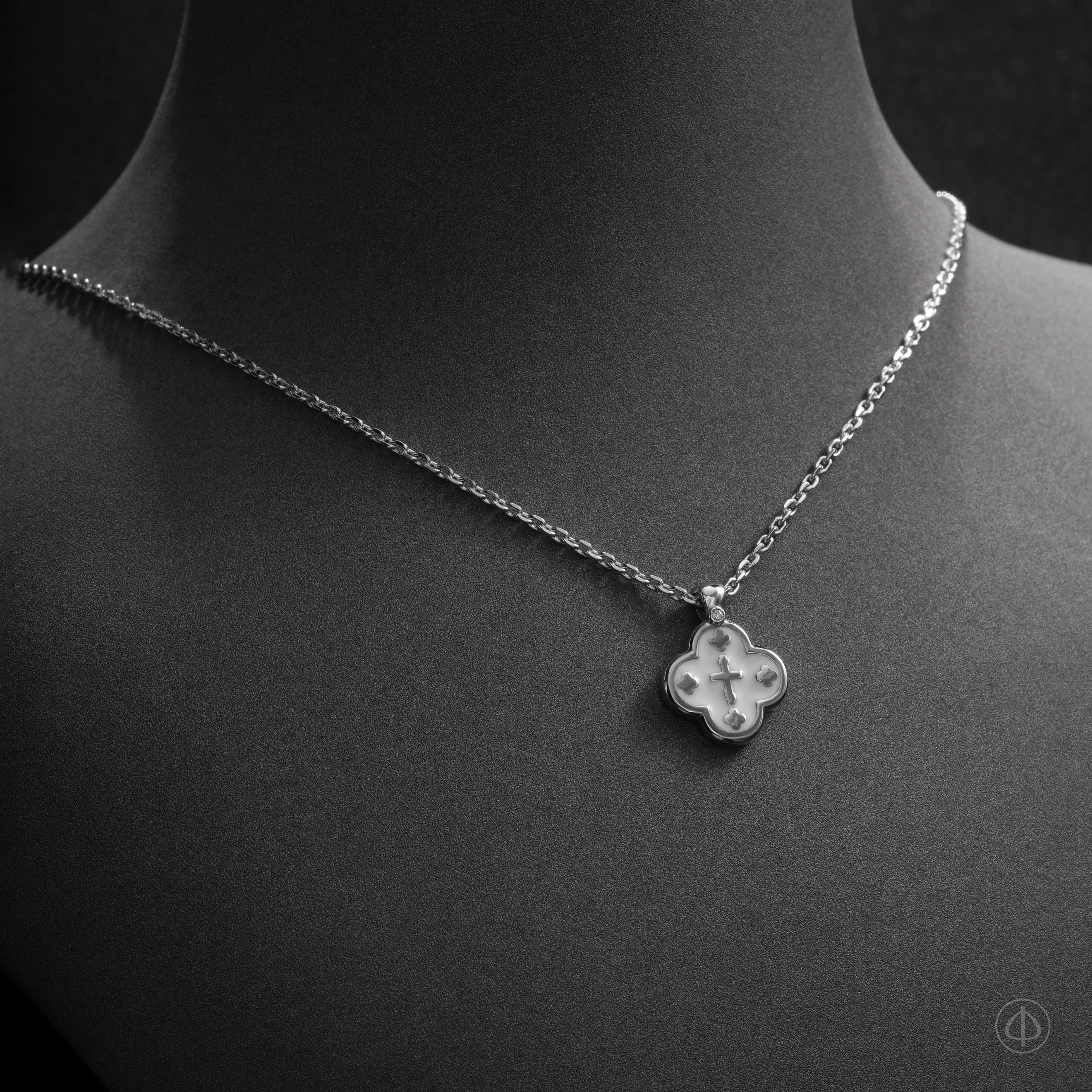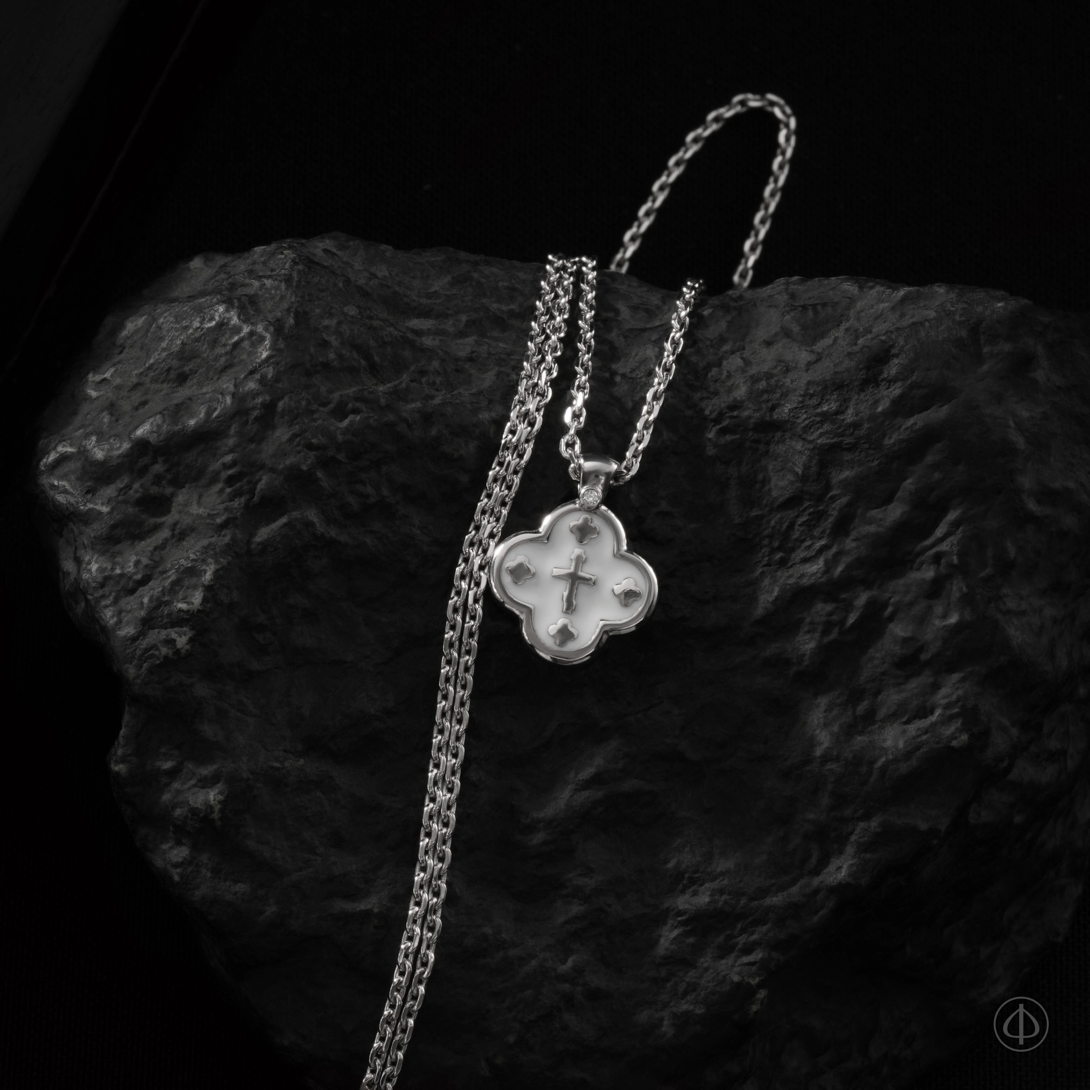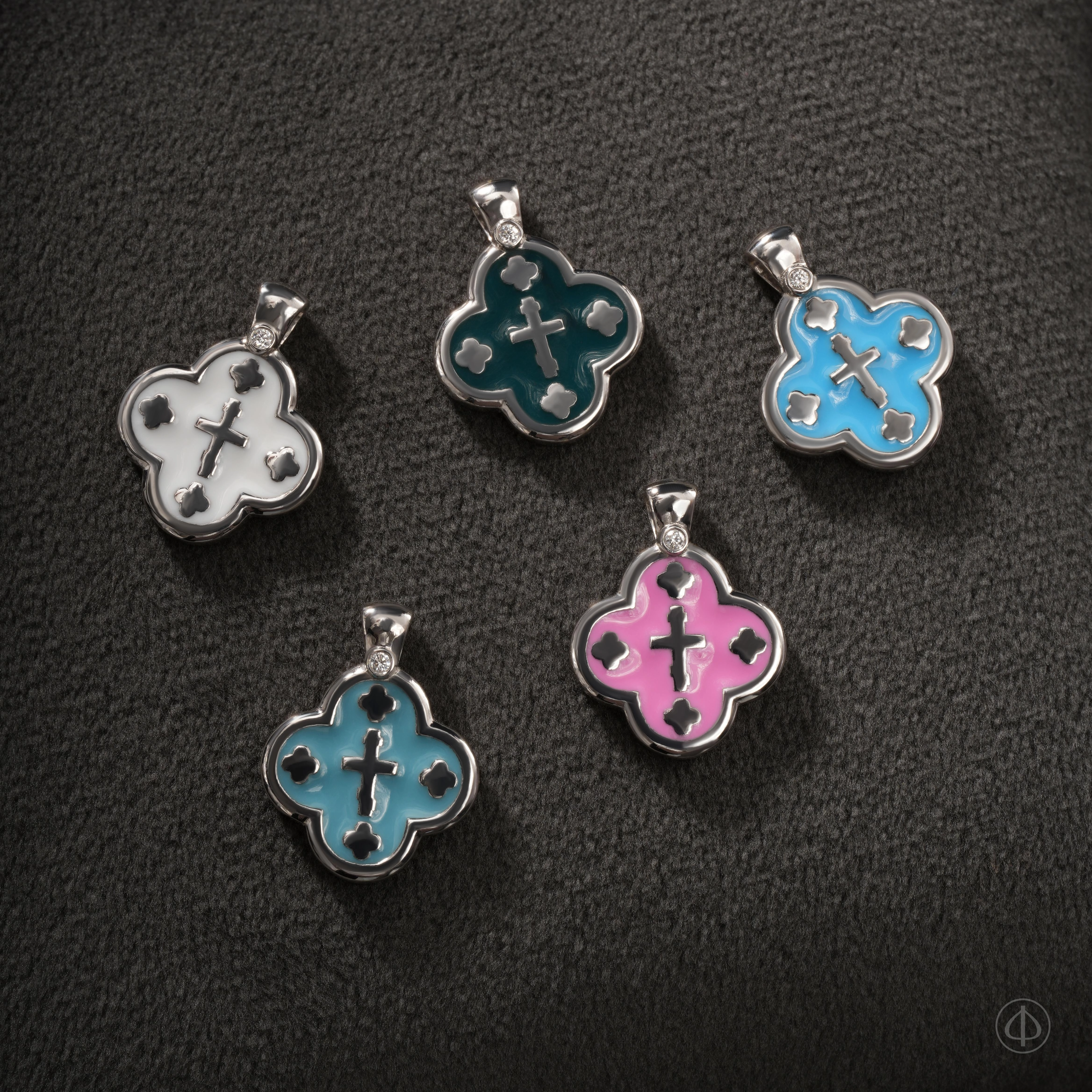 В центре ювелирного изделия – классический крест, а по четырем сторонам представлено еще четыре маленьких крестика.