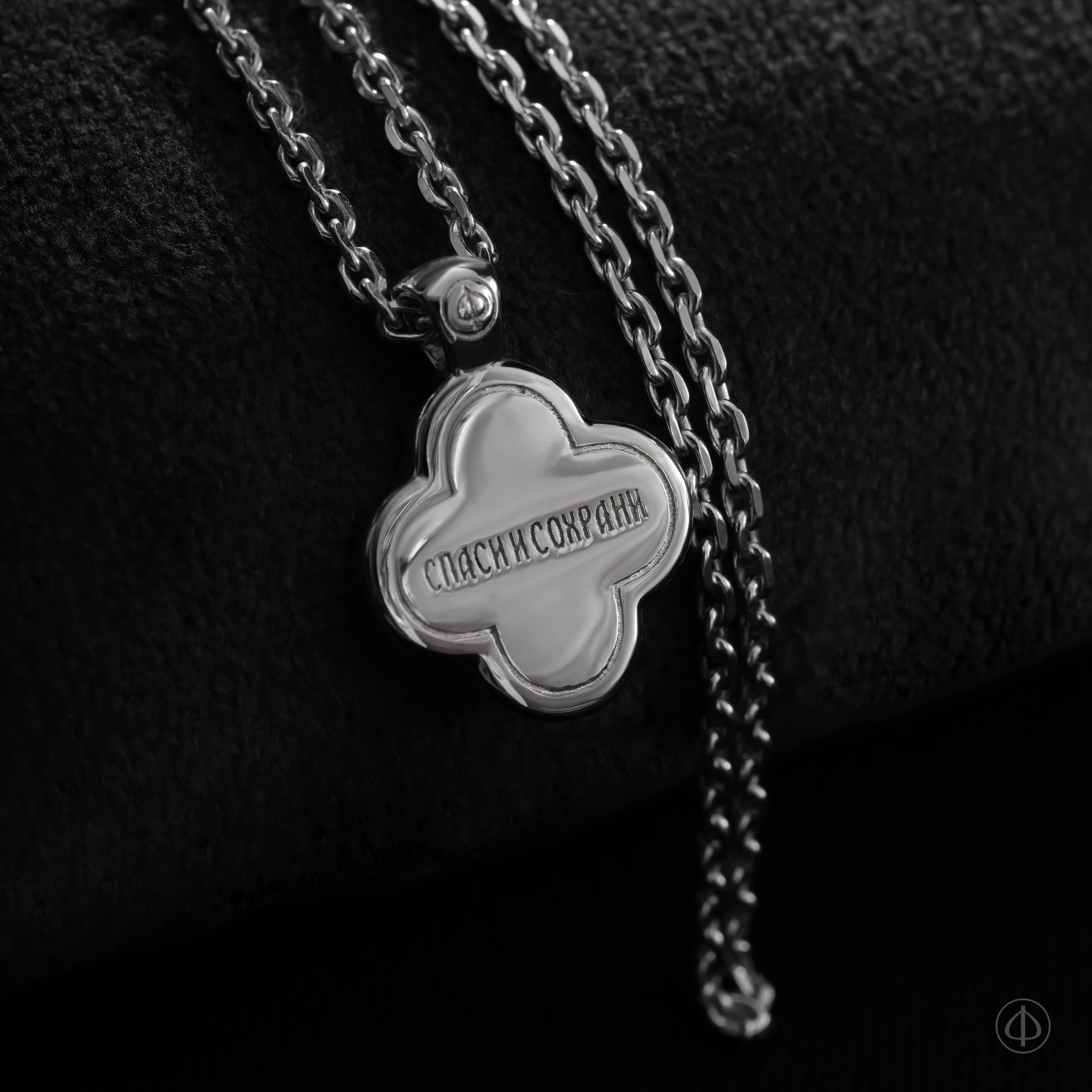 Лицевая сторона украшена эмалью серебристого цвета – символ Господа, вечно пребывающего в Небесном Царствии.