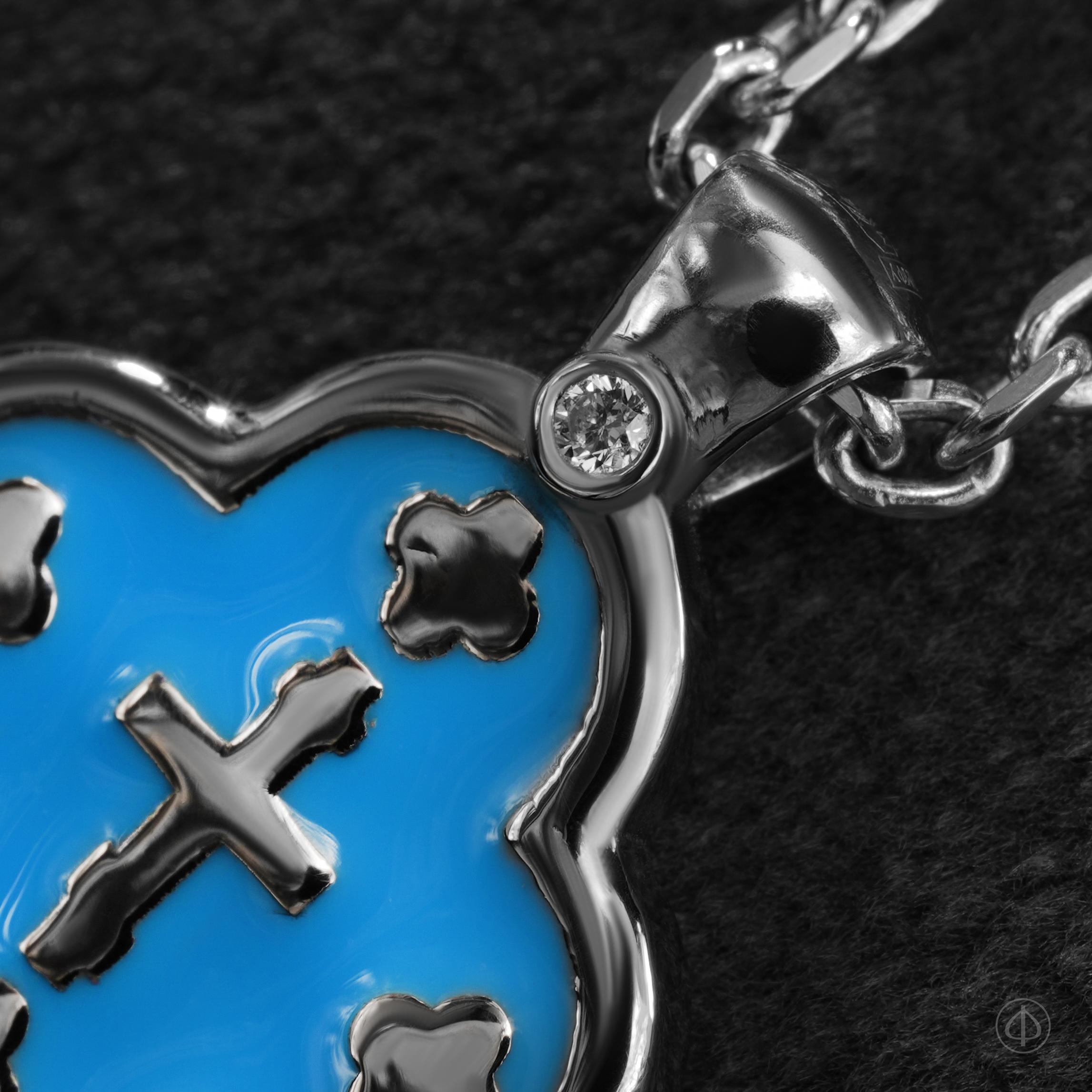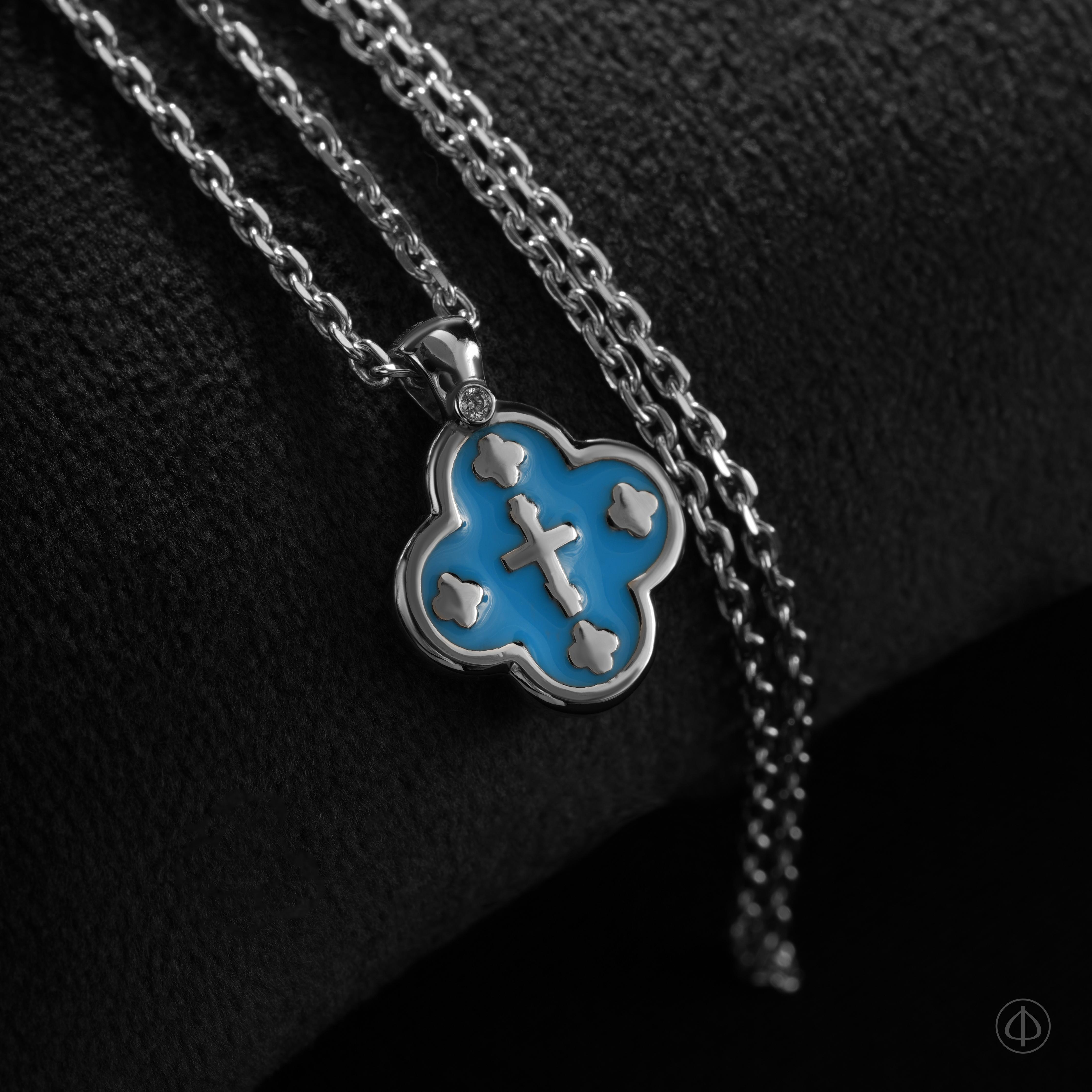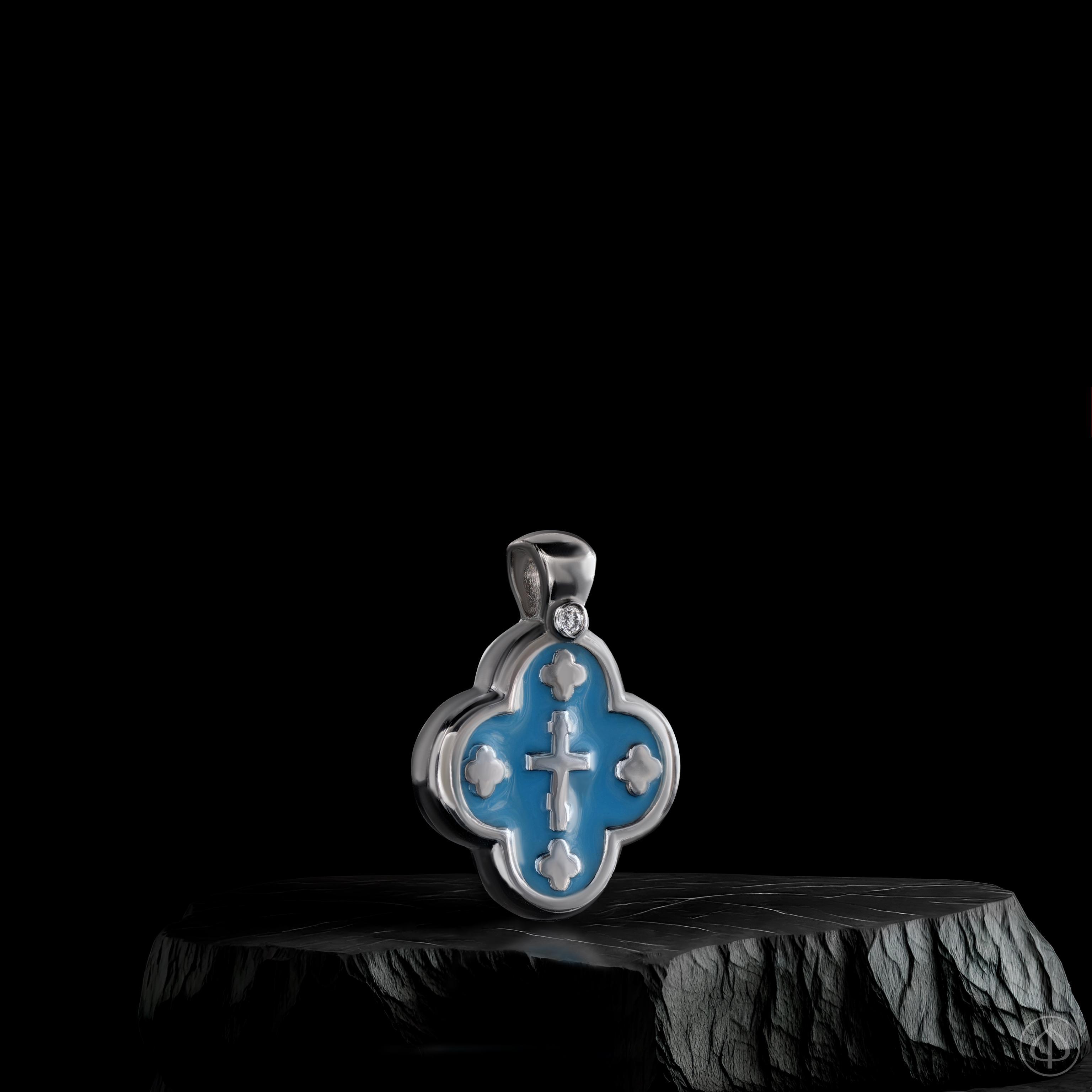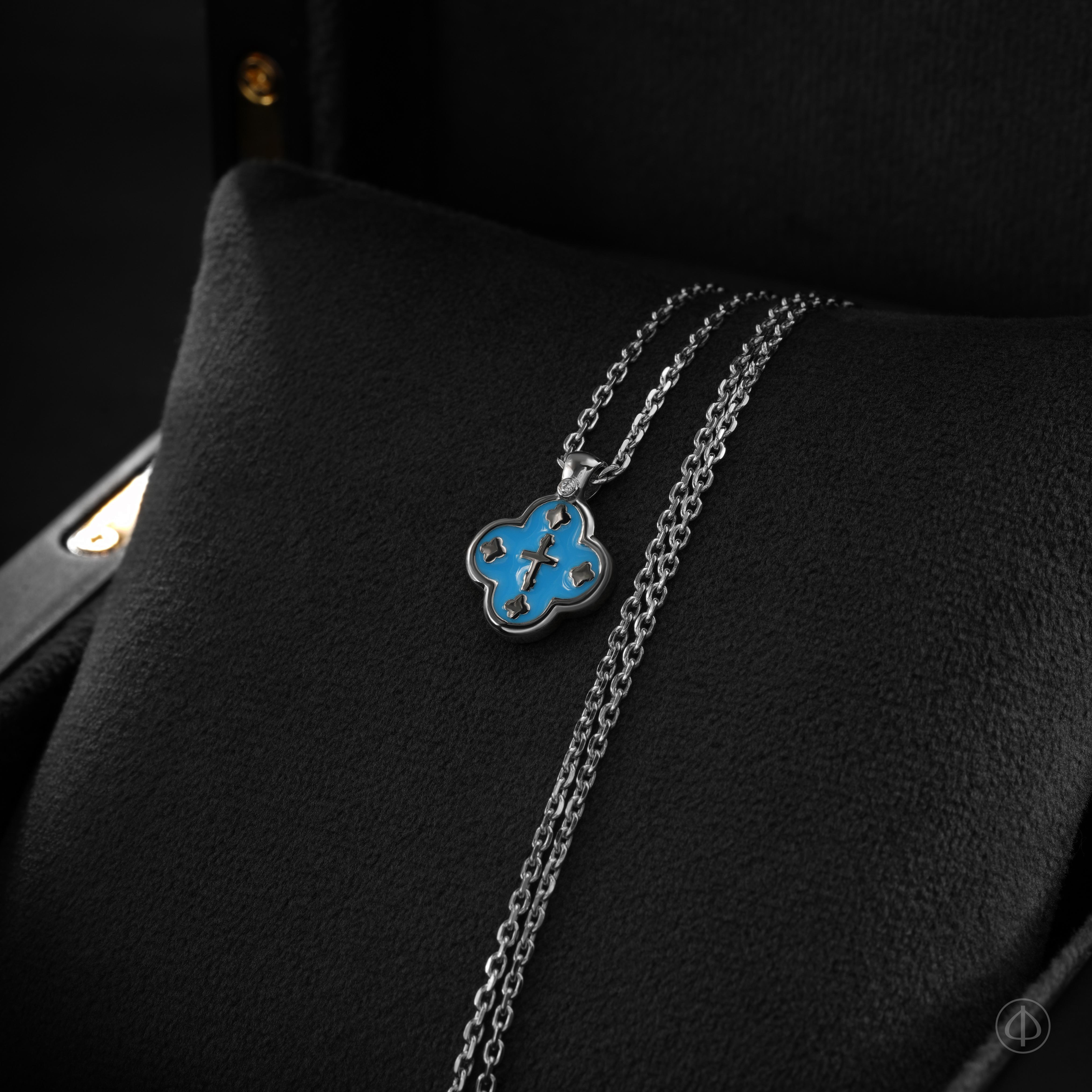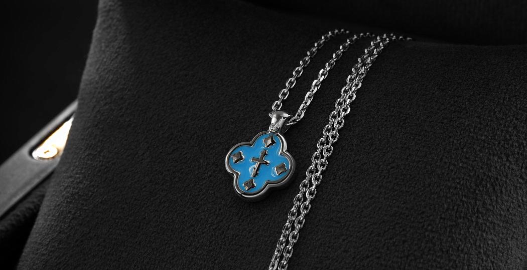 Купить крест с эмалью ручной работы – значит приобрести материальный символ веры и духовной связи с Господом. Сочетание платины, голубой эмали и бриллианта превращает изысканный крестик в глубоко значимое ювелирное изделие.