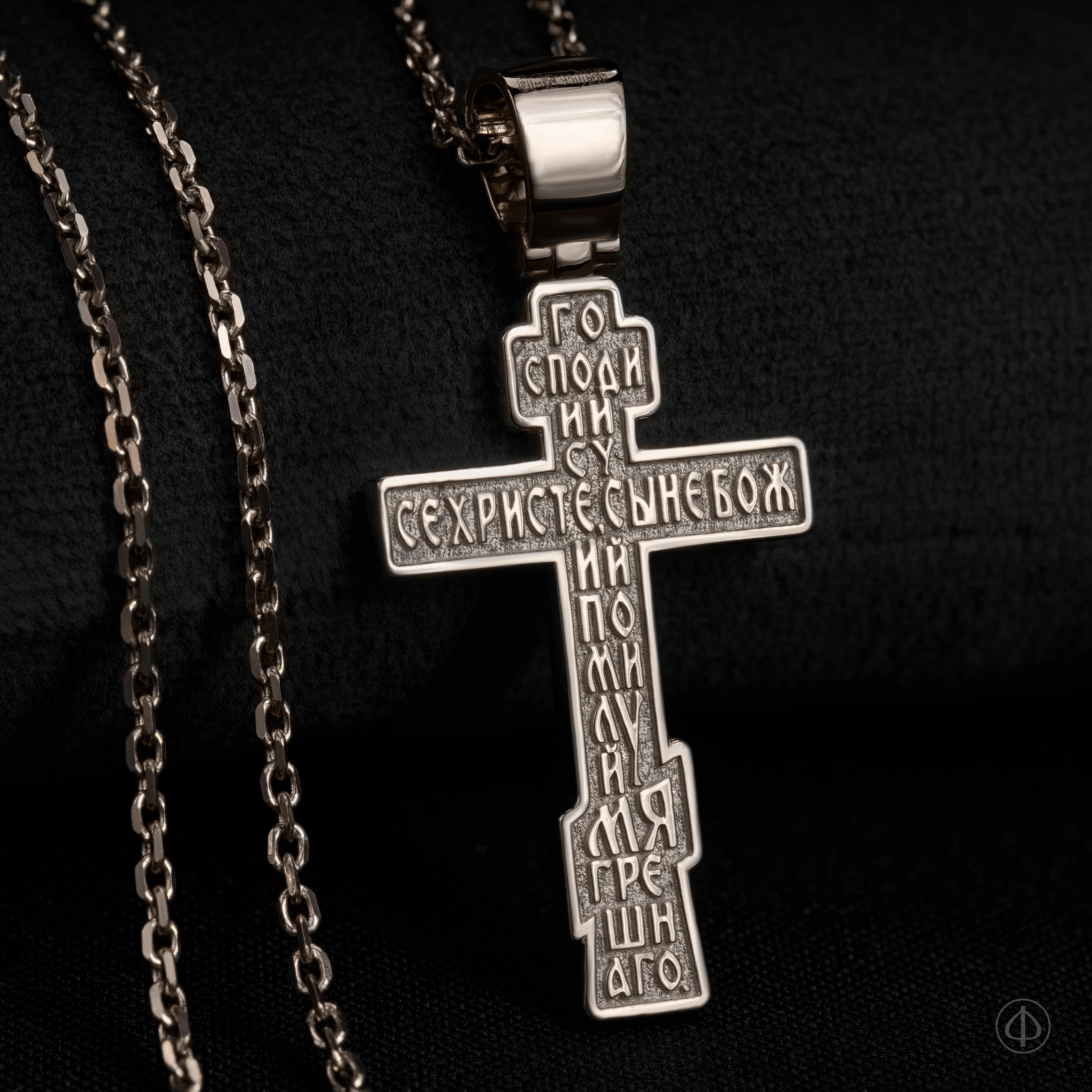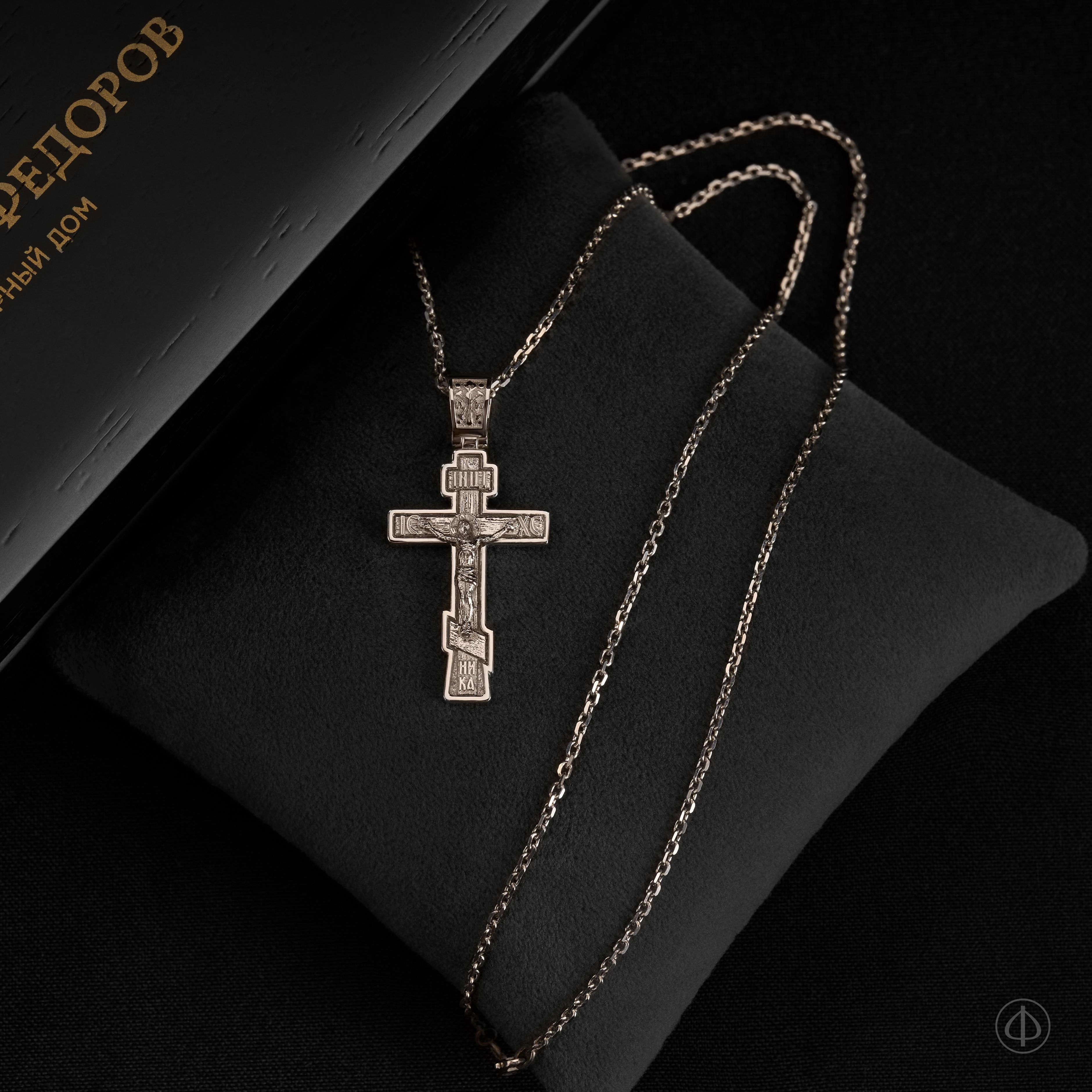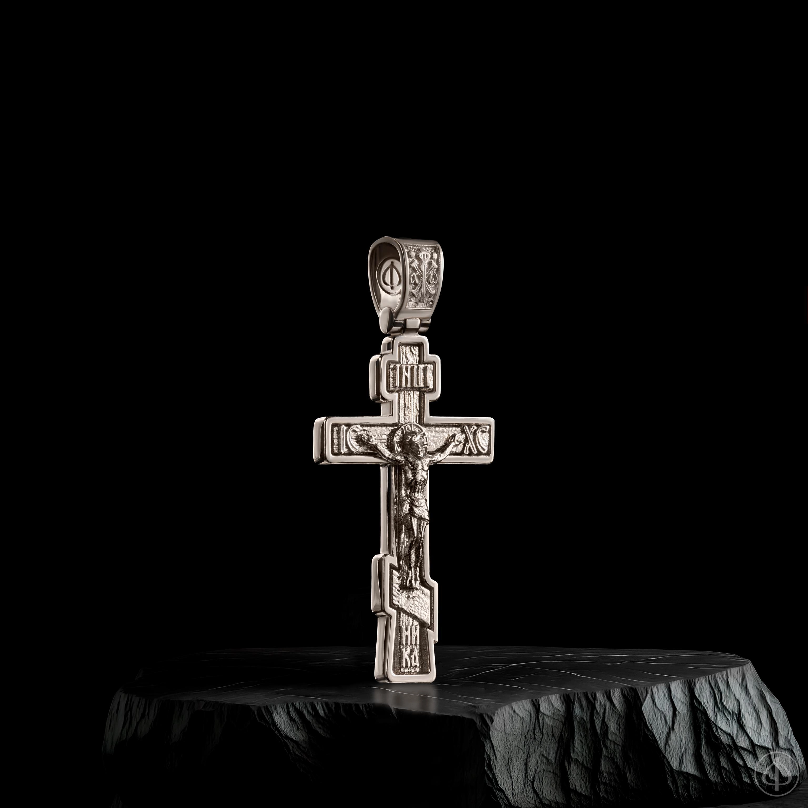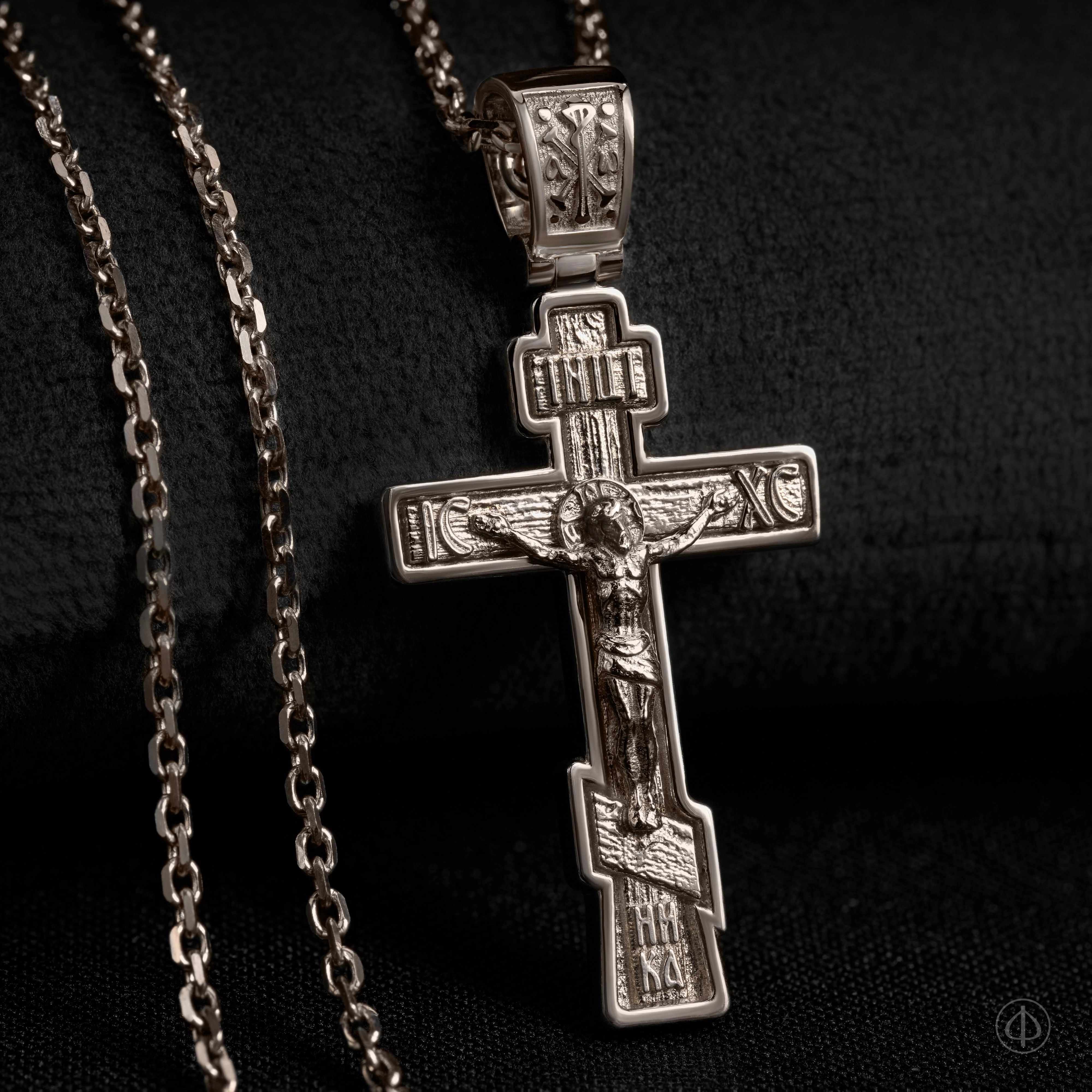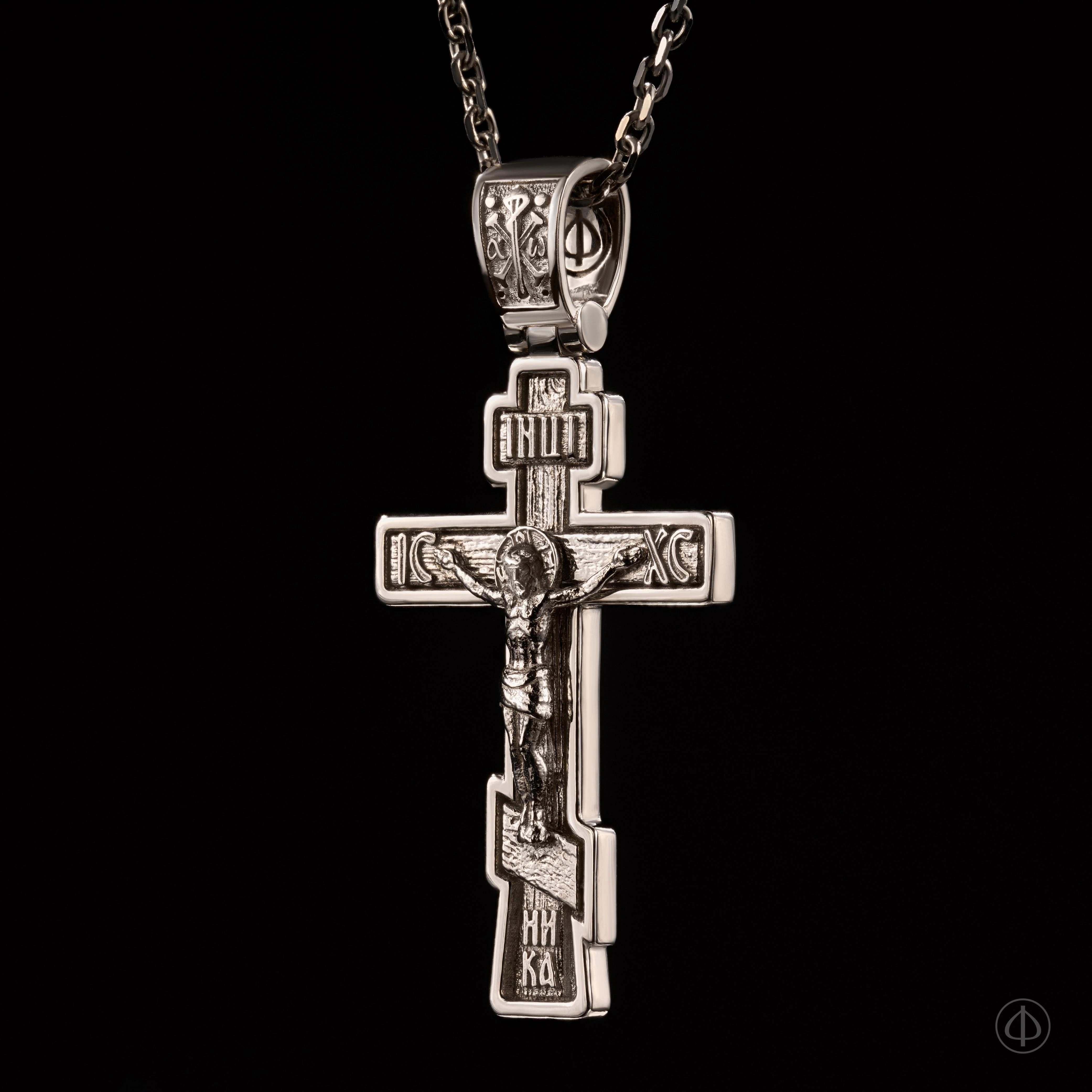 - В центре восьмиконечный крест с Распятием.