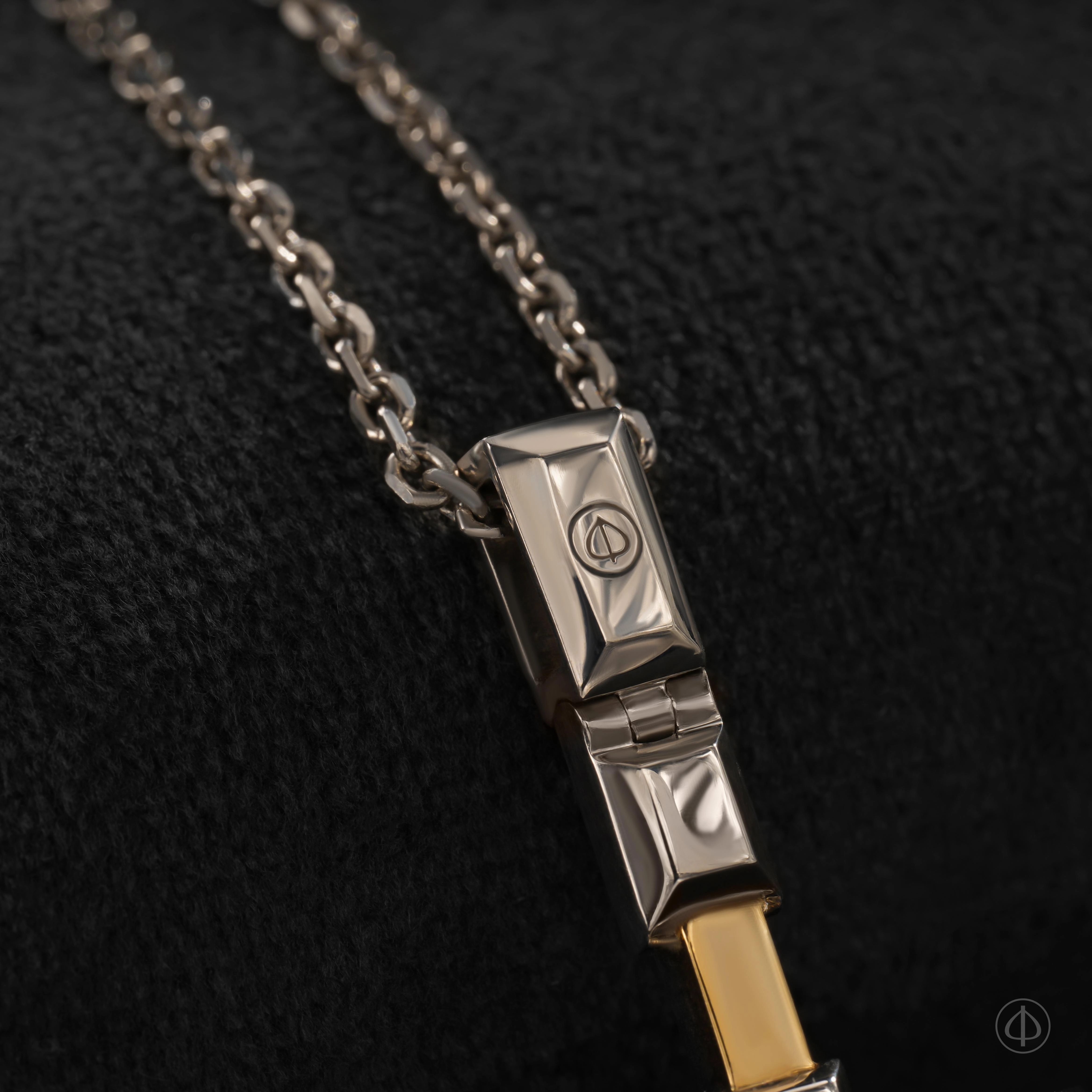 - На ушке, в центре и по бокам вставки из драгоценных камней.
