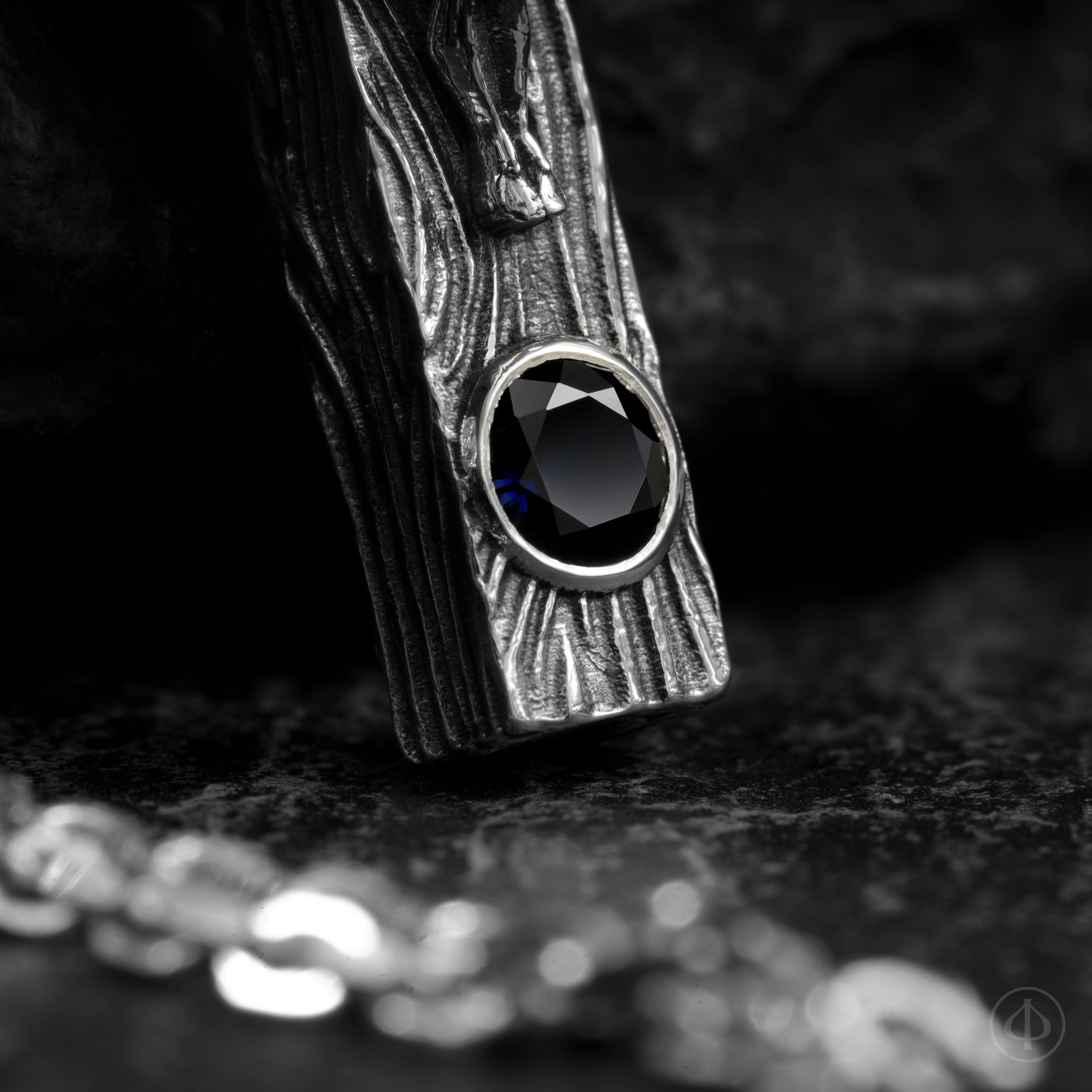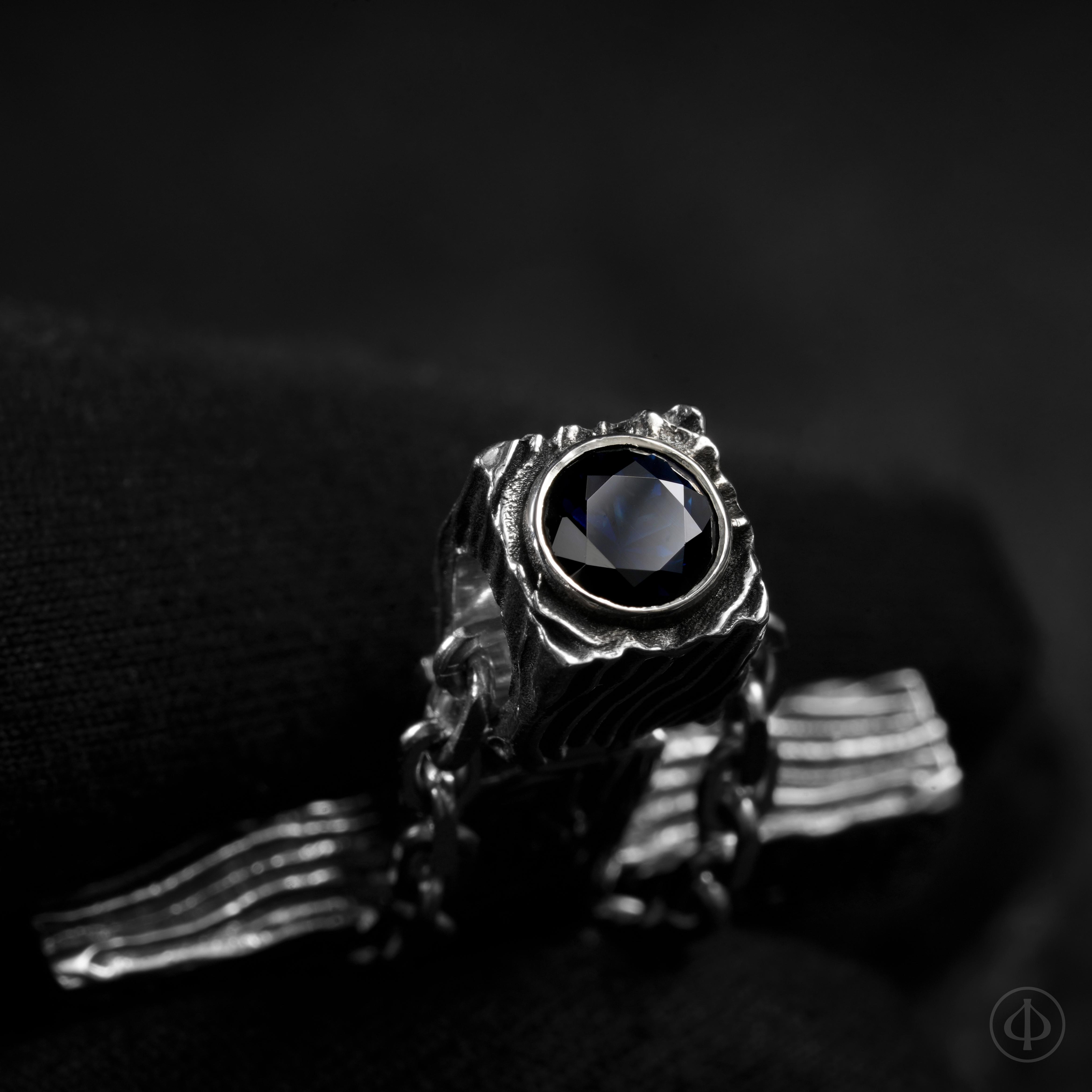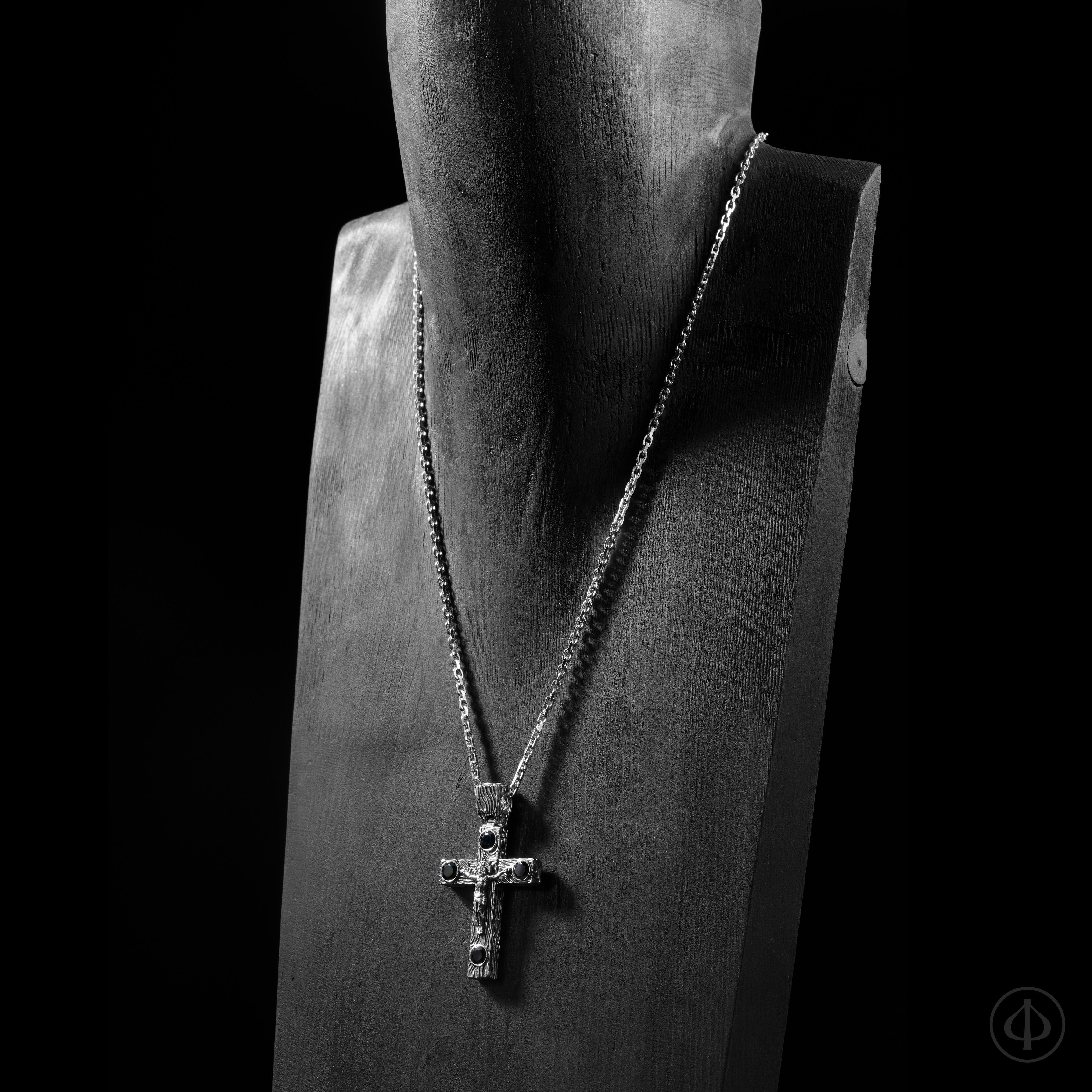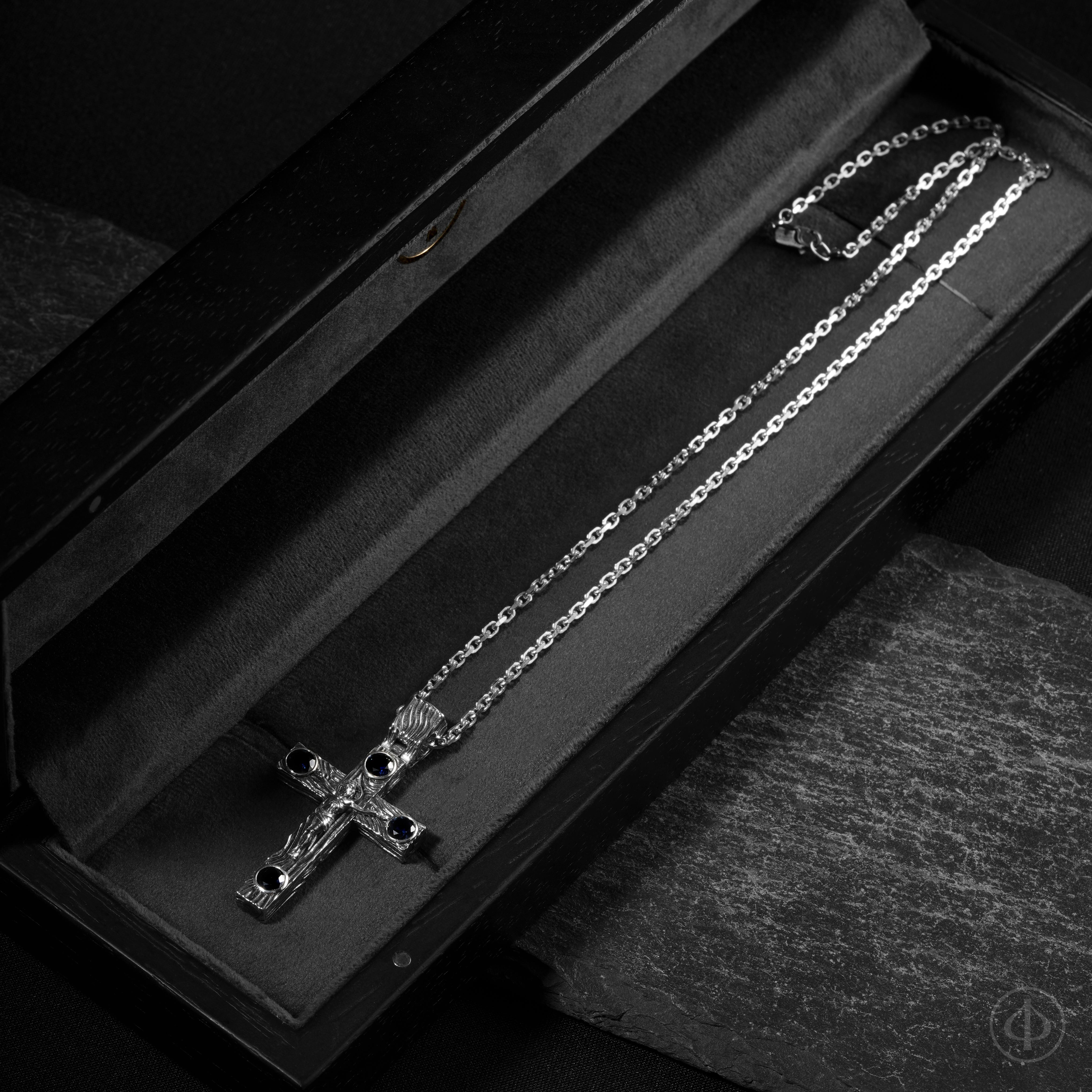 - по сторонам креста и в верхней части ушка сапфиры,