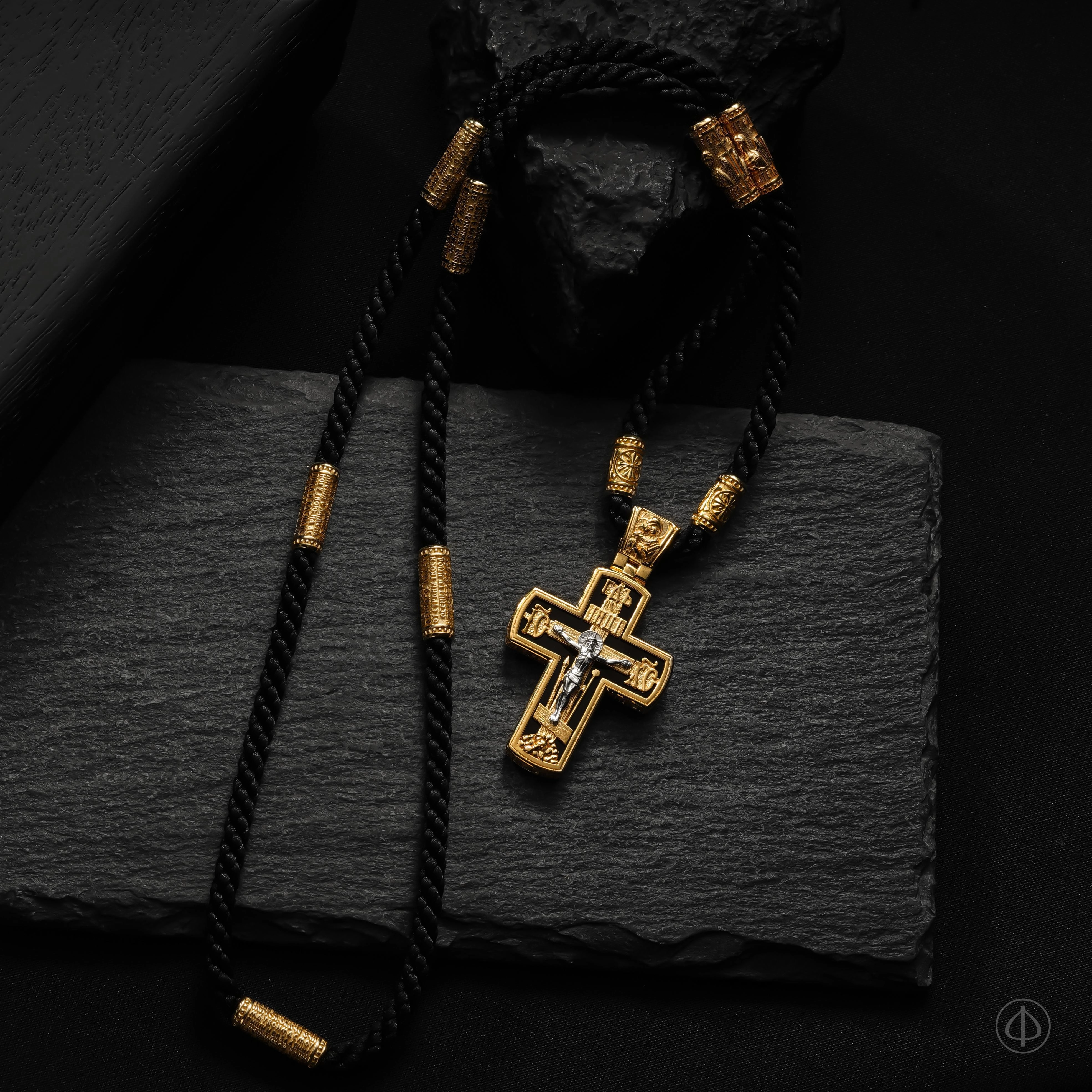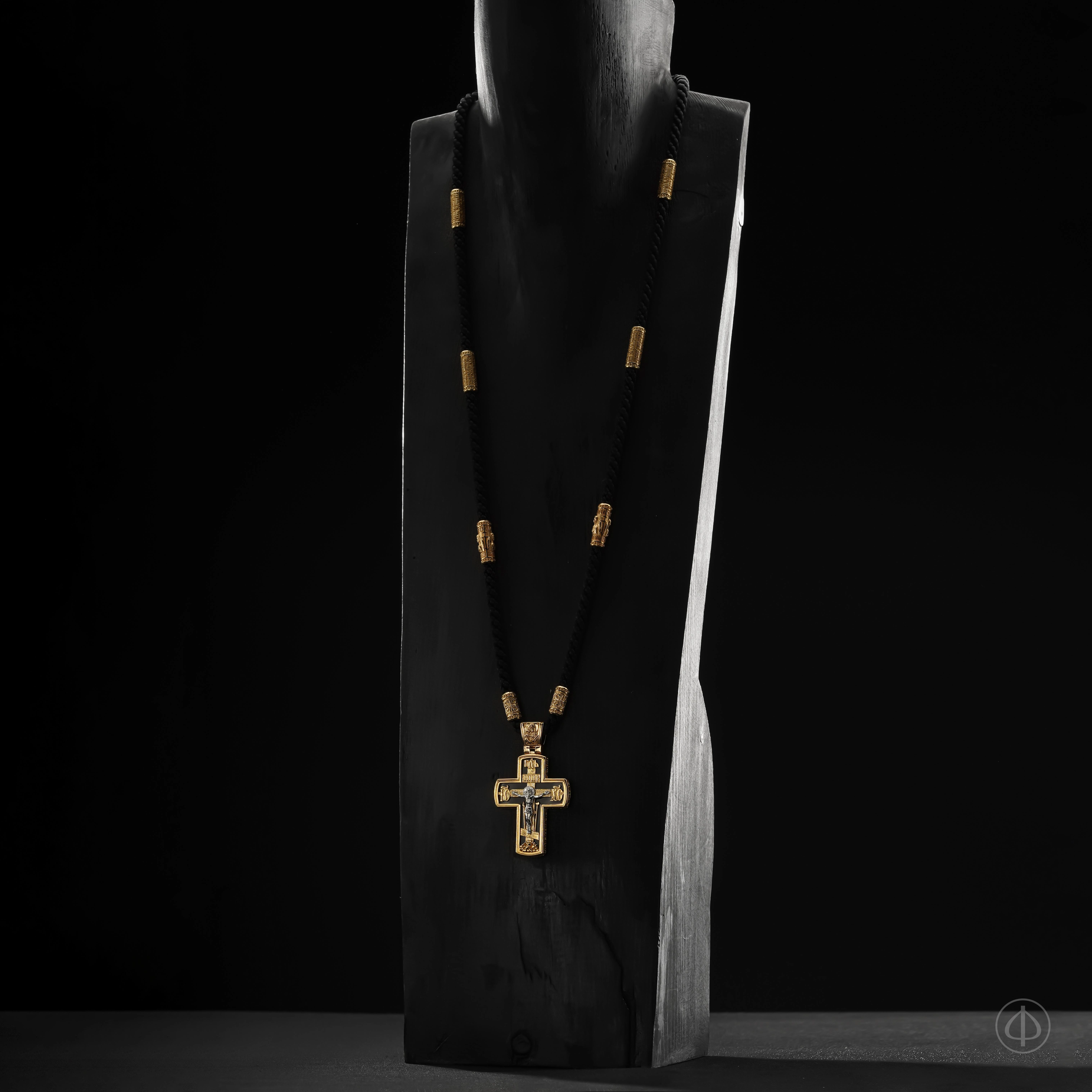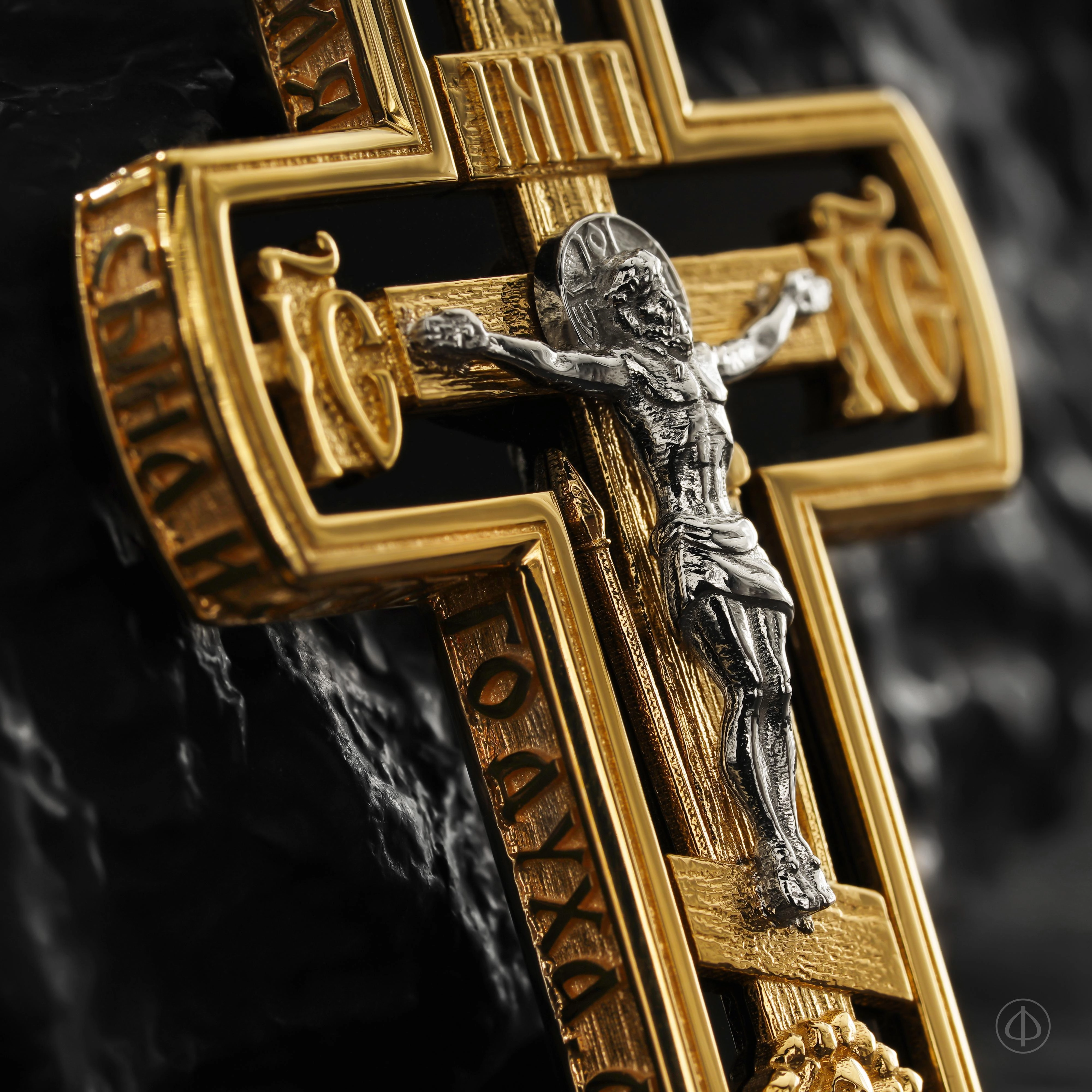 - В центре восьмиконечный крест с Распятием