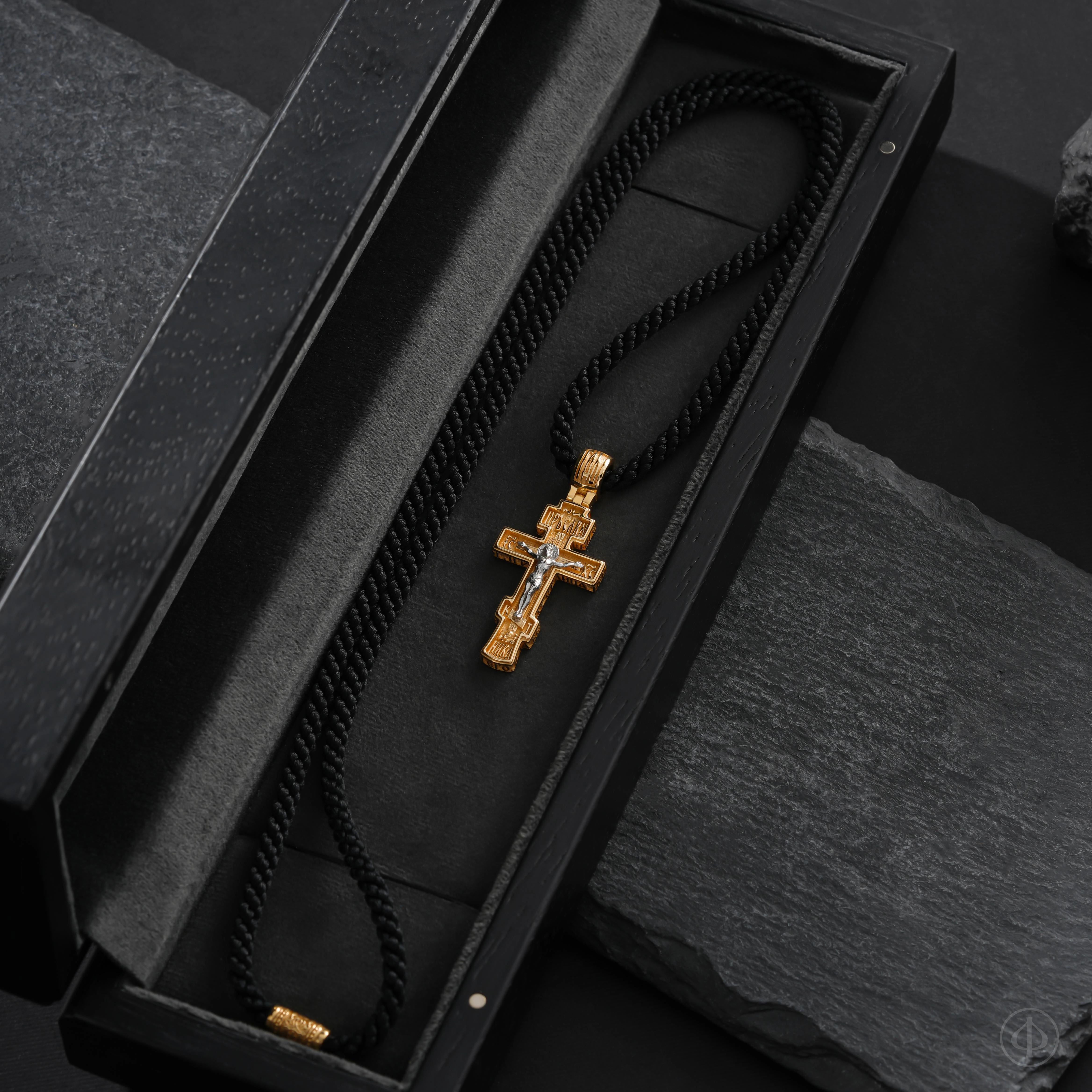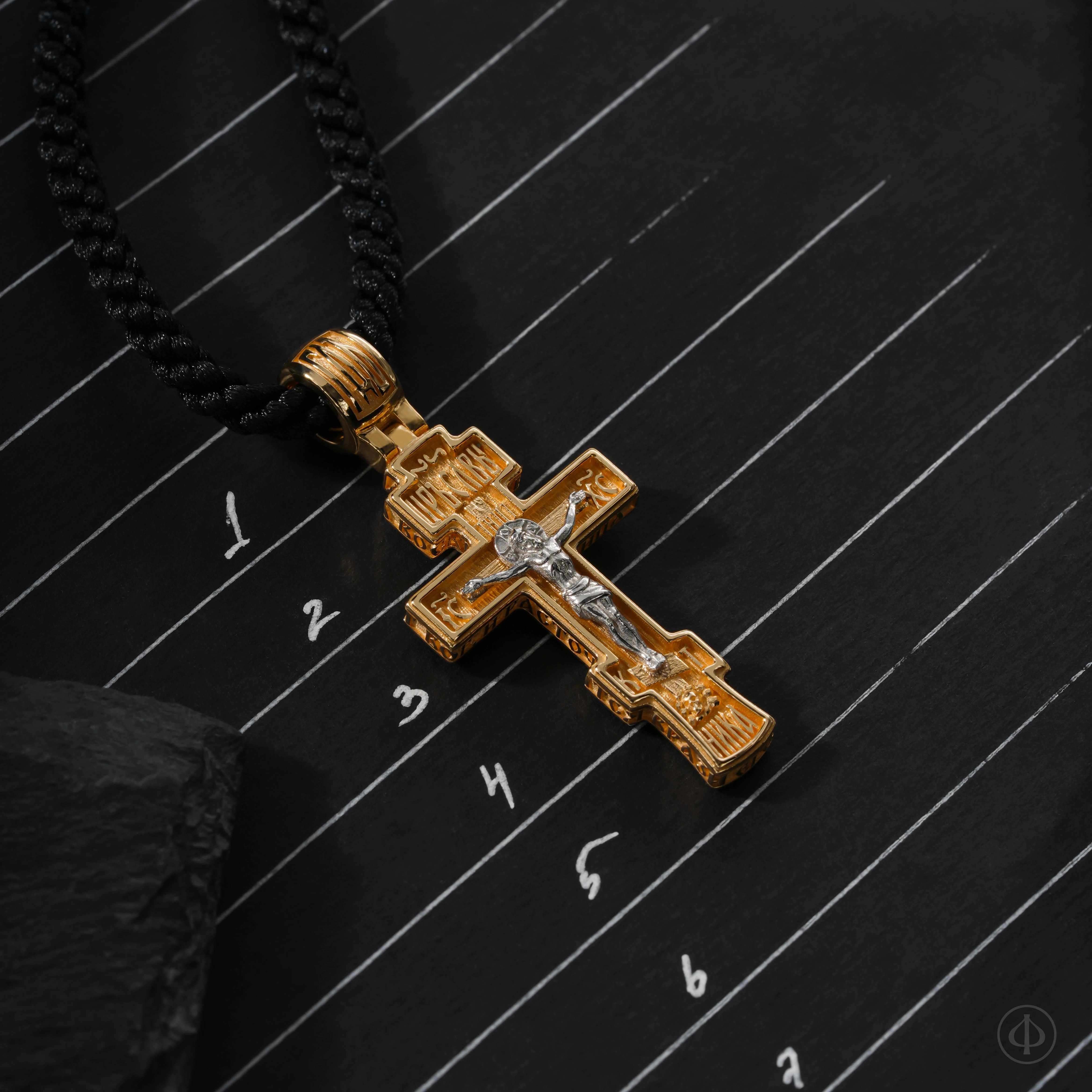 - в центре восьмиконечный крест с Распятием.