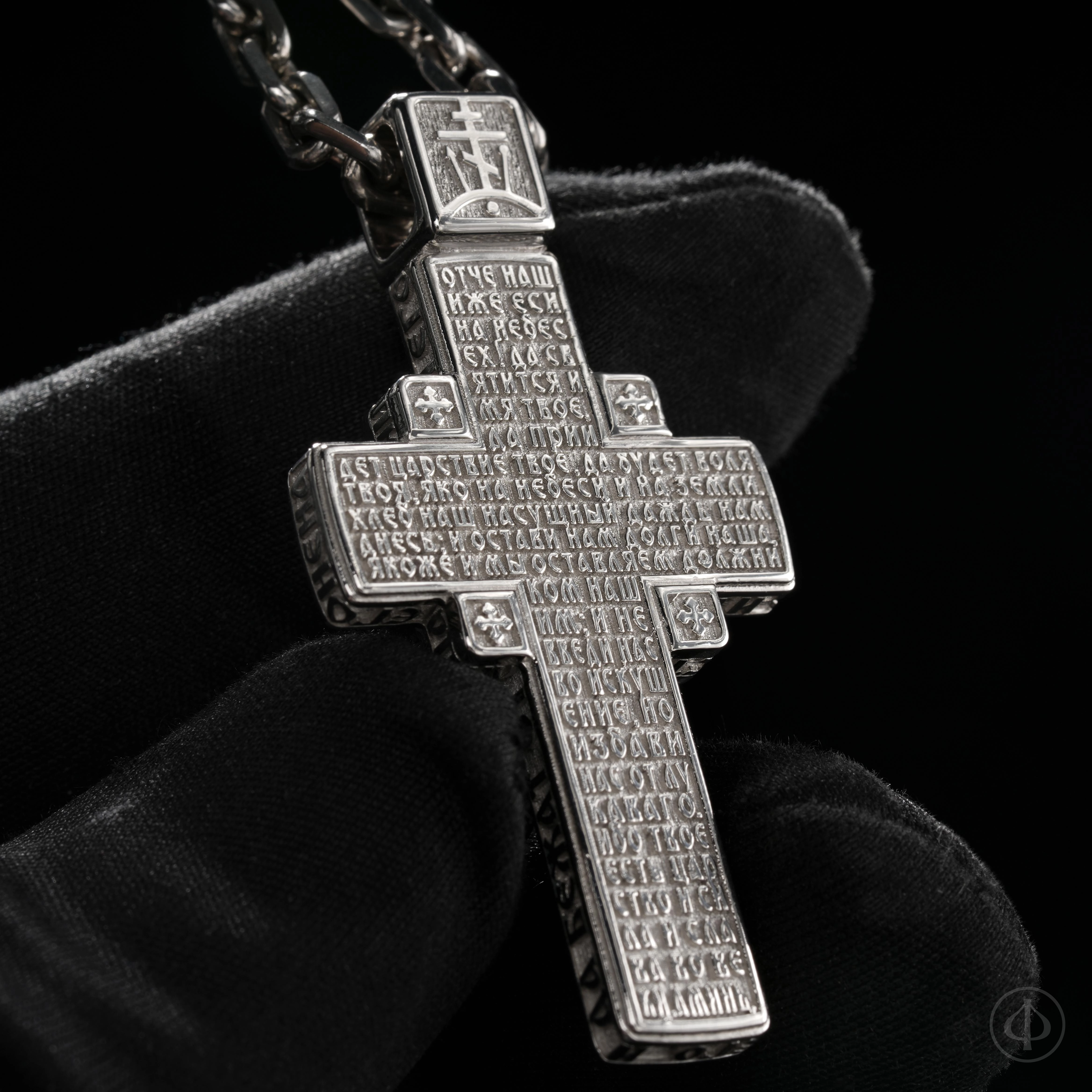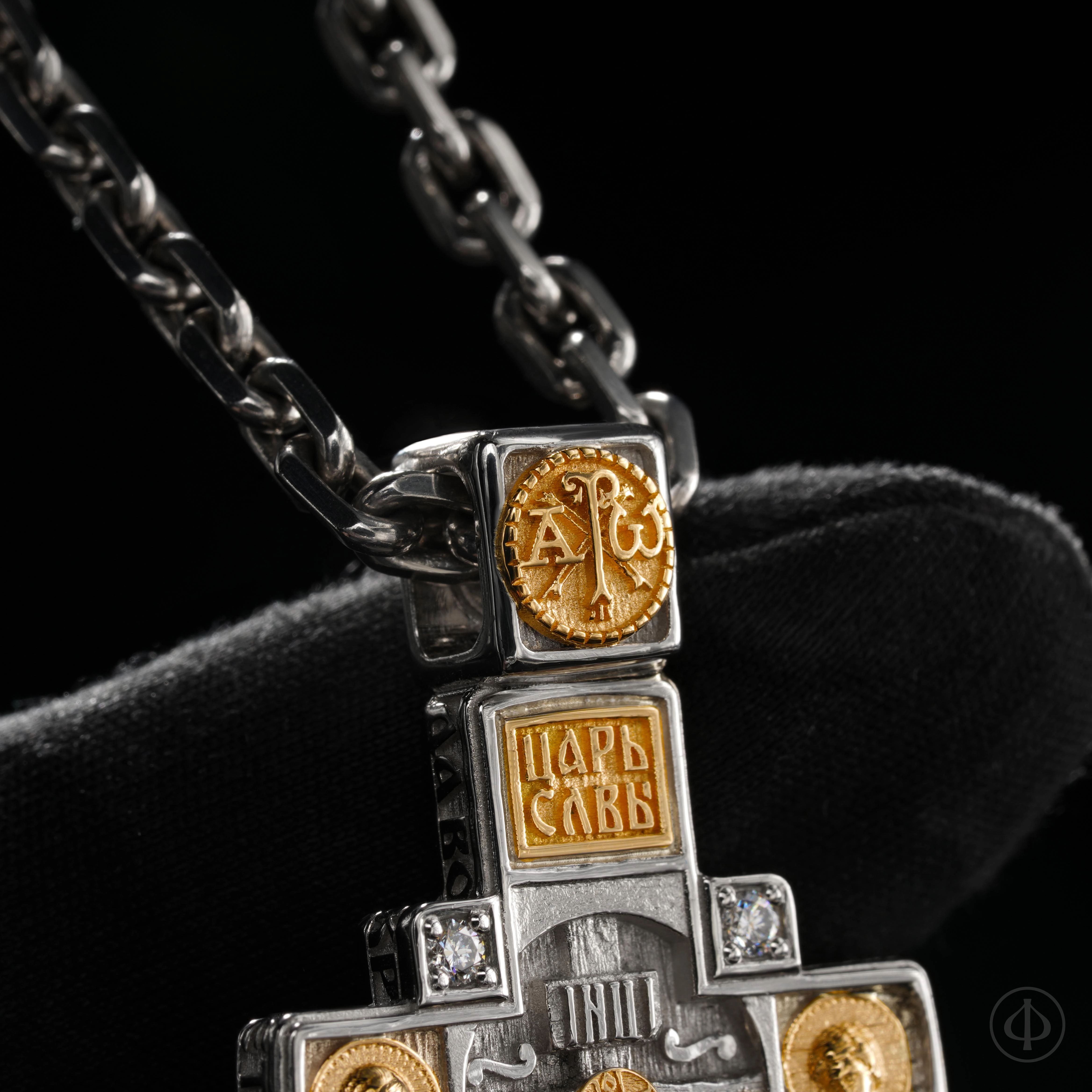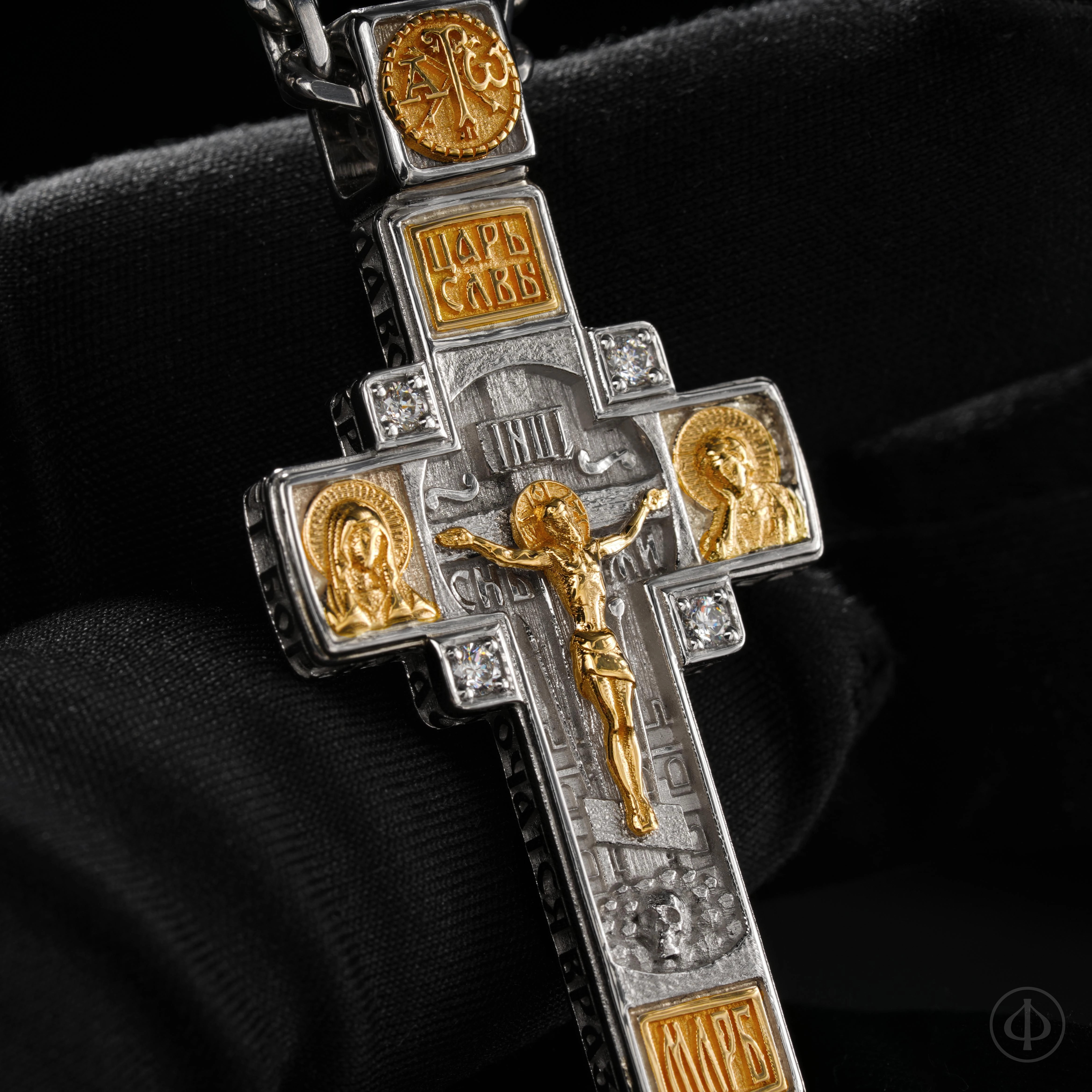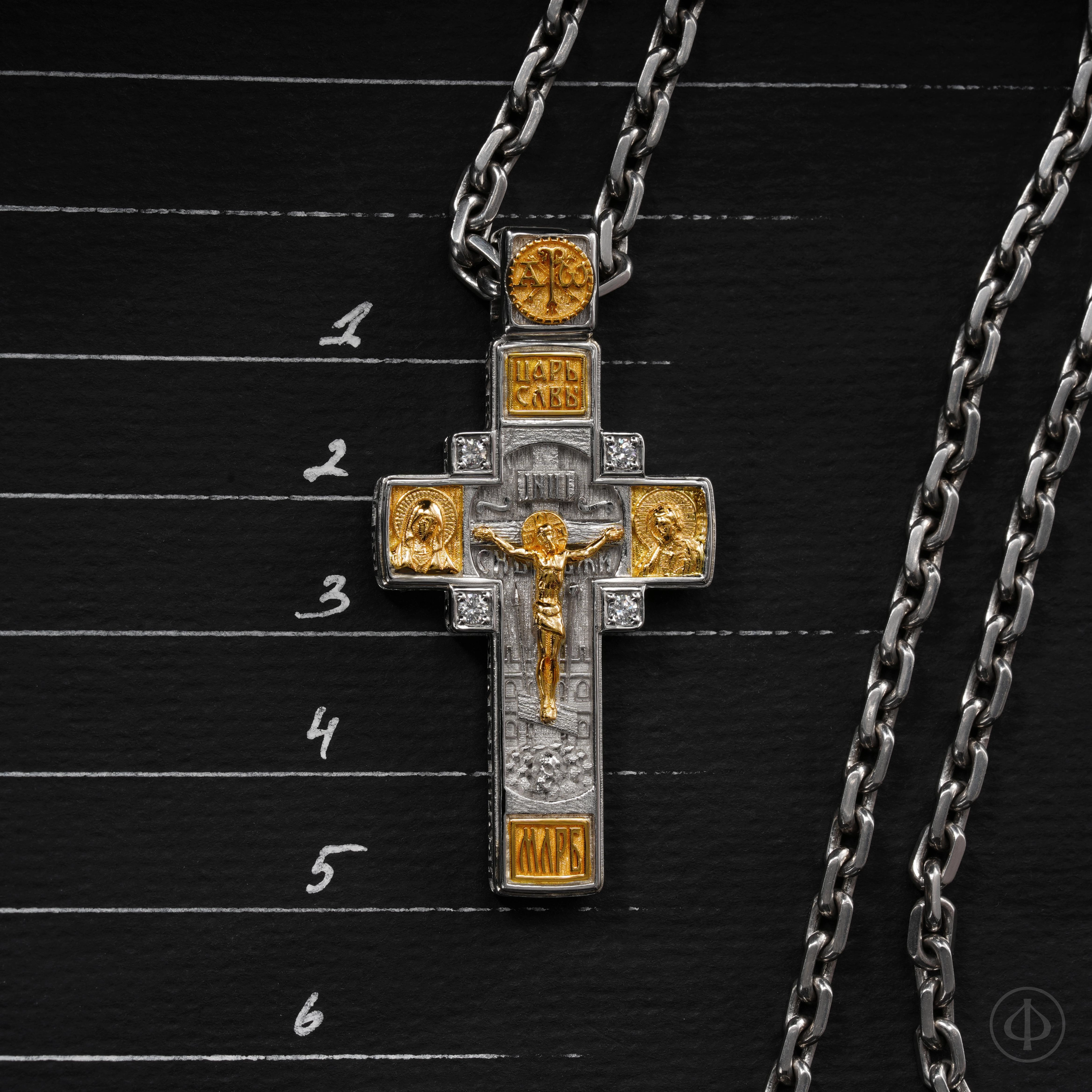 - в центре восьмиконечный крест с Распятием,
