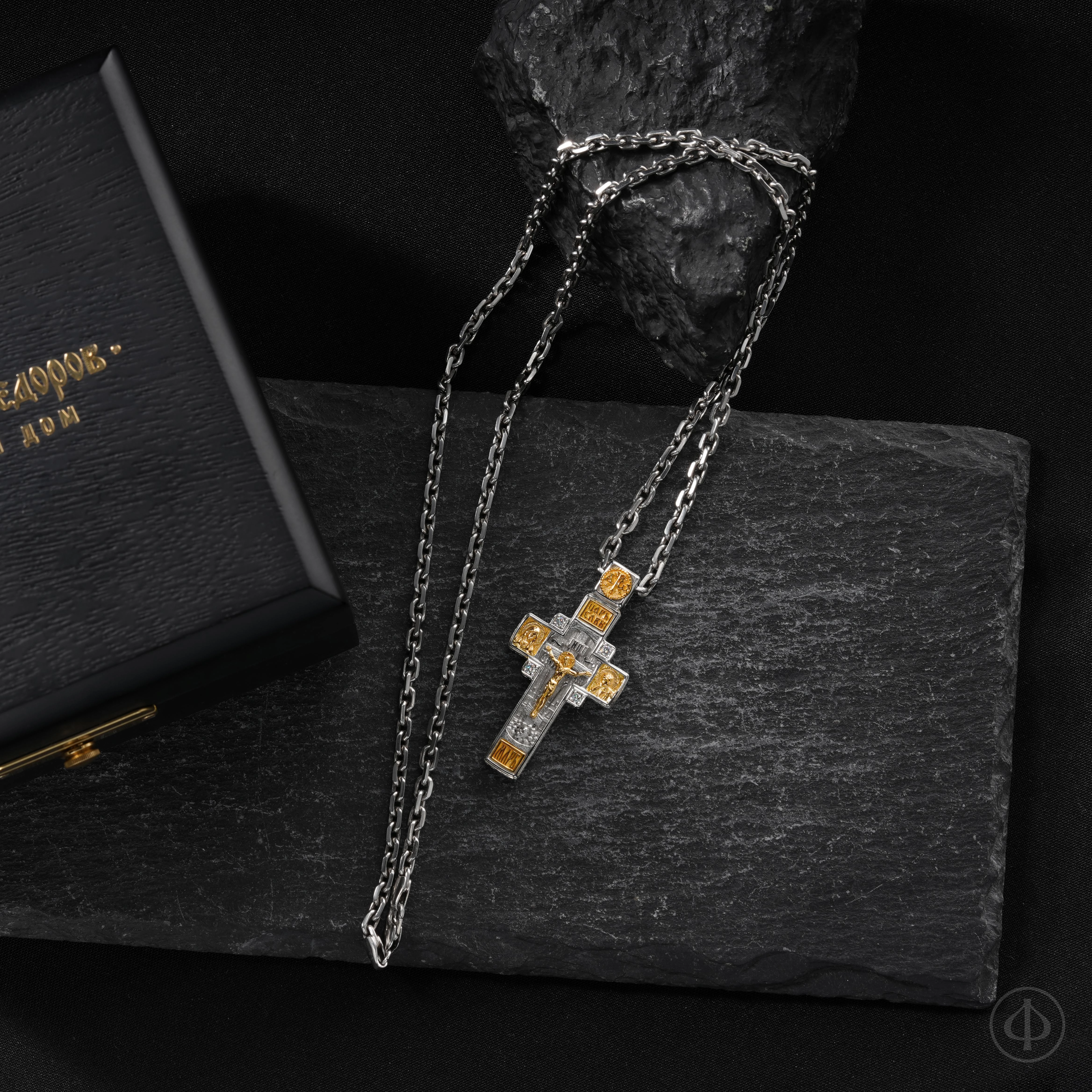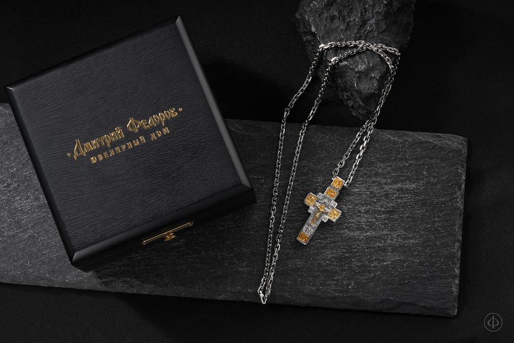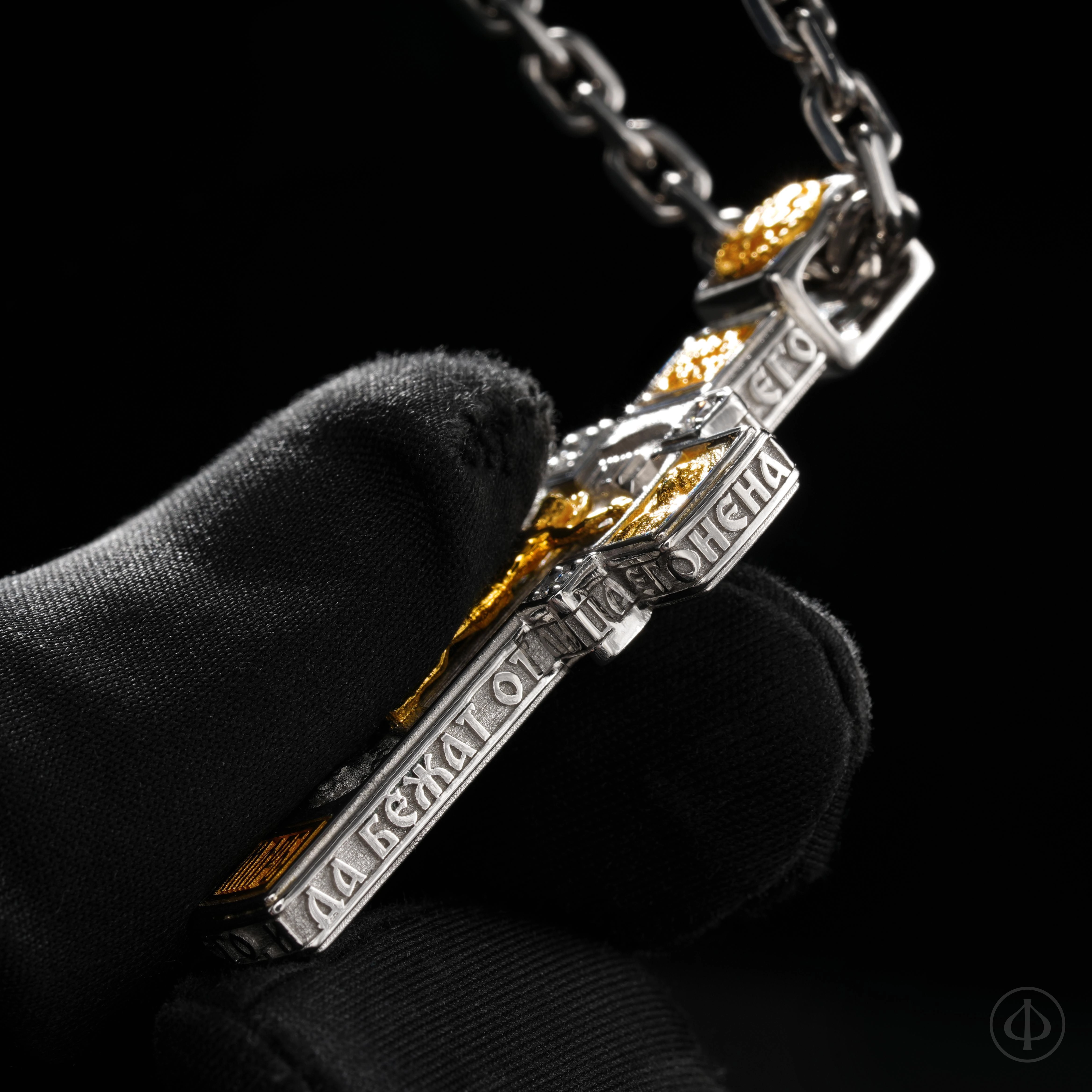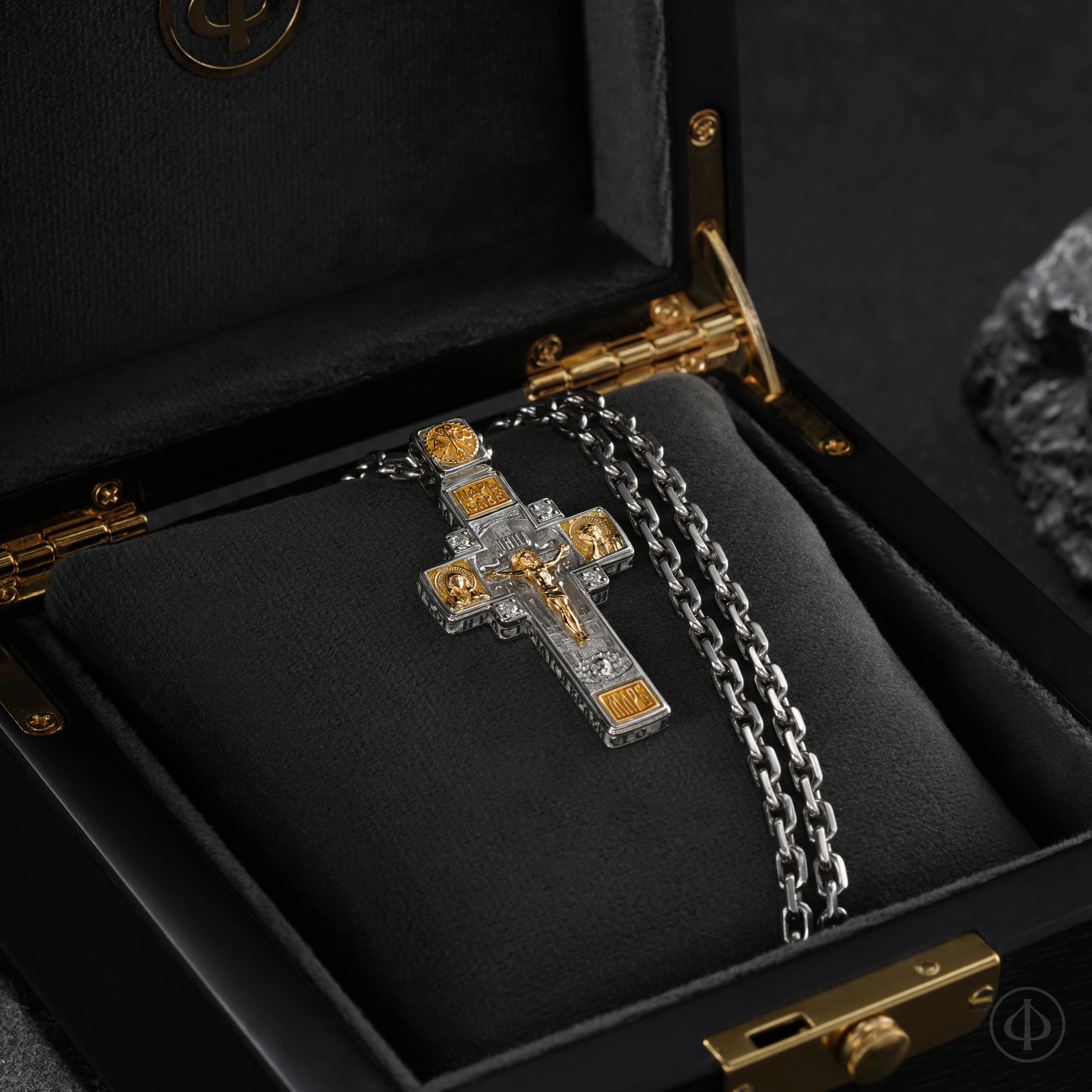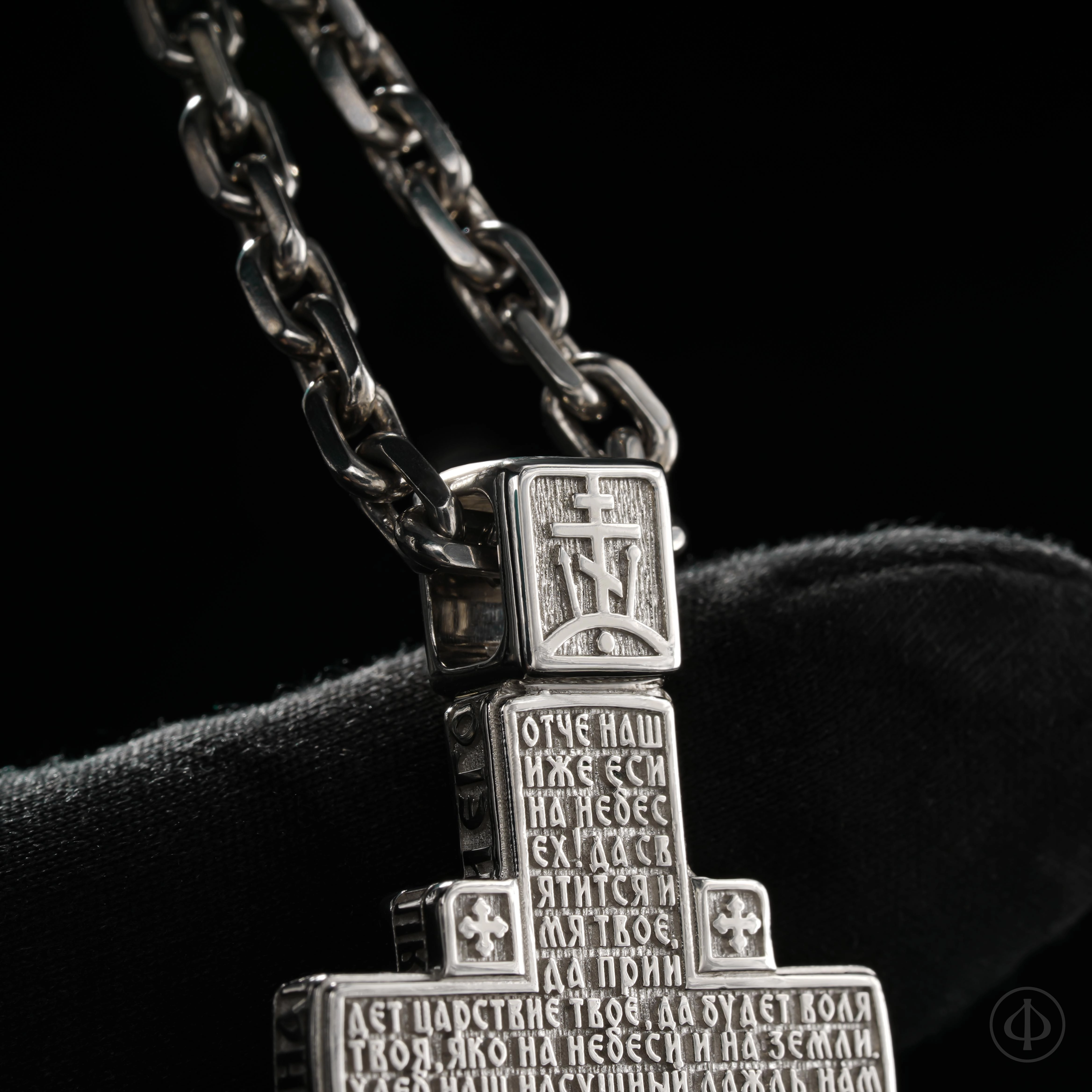 - в центре восьмиконечный крест с Распятием,