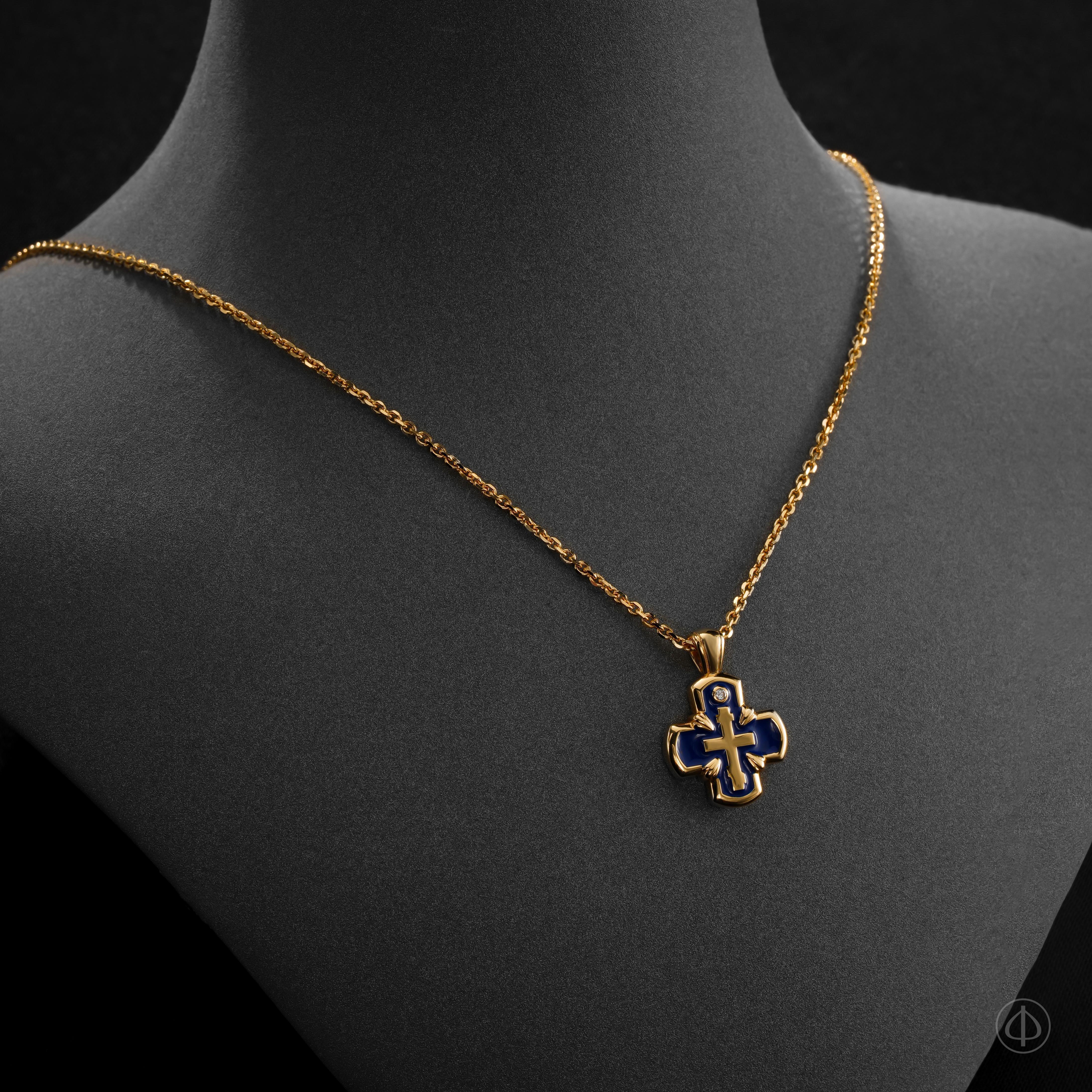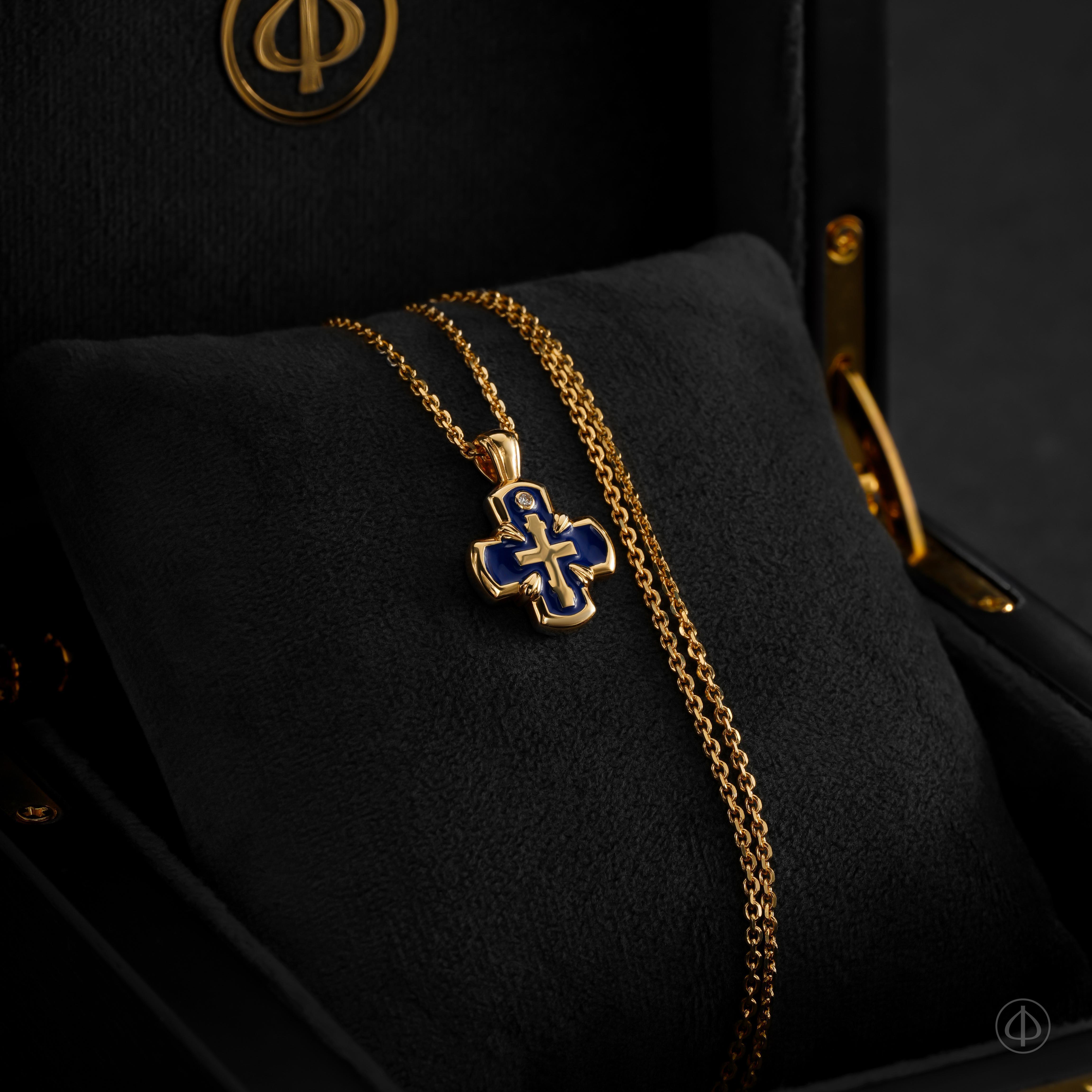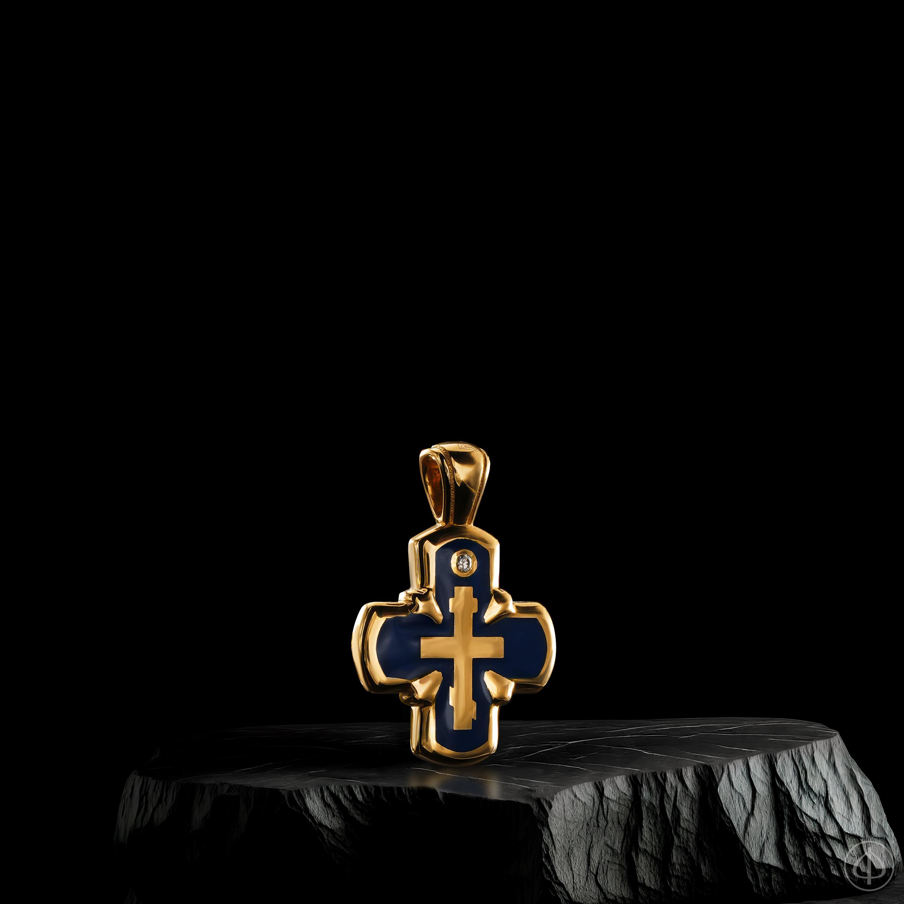 Крест с эмалью ручной работы – уникальное сочетание долговечности, эстетики и глубокой символики ювелирного изделия. Крестик представлен в желтом золоте и декорирован синей эмалью, олицетворяющей небесную чистоту Девы Марии и красоту неба.