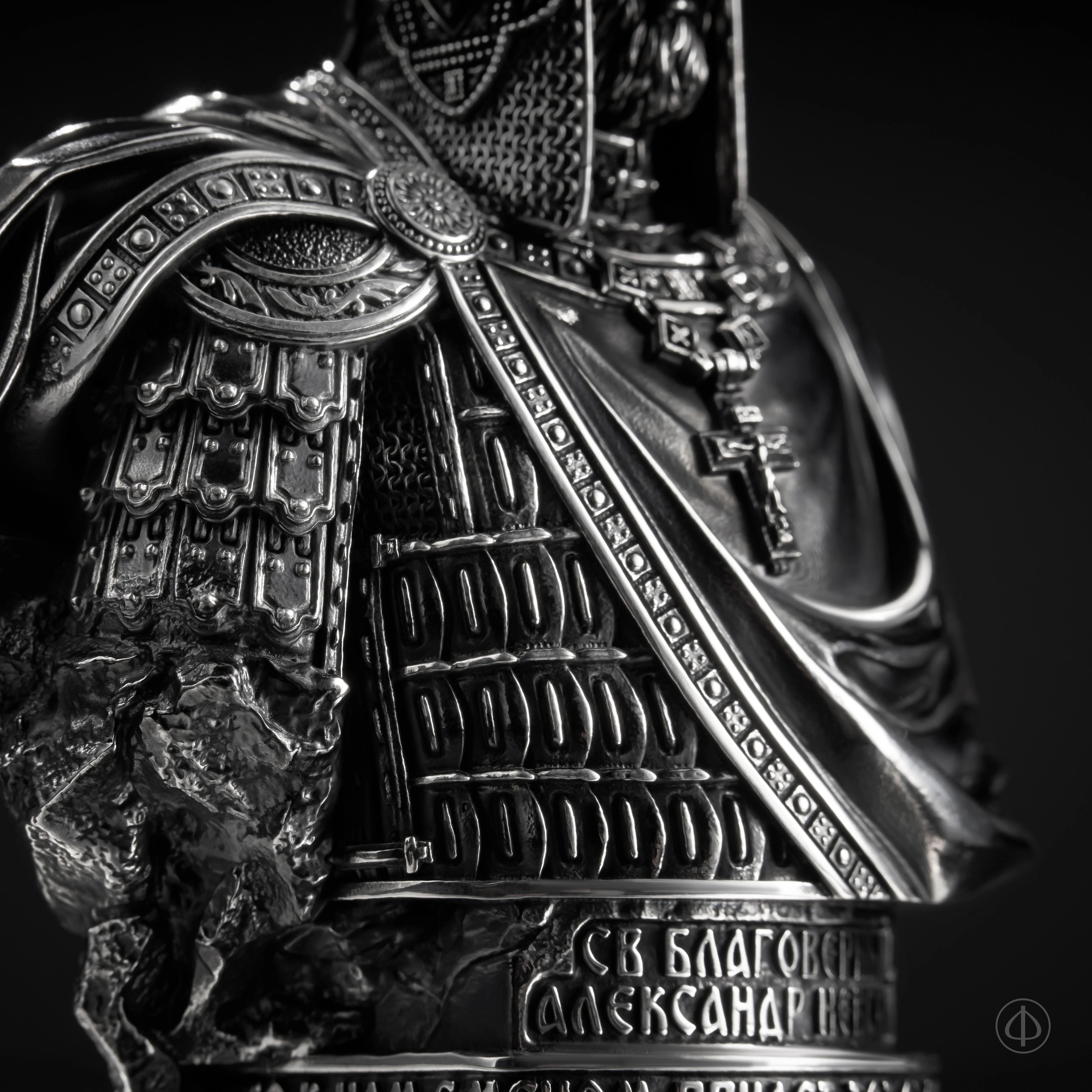 Образ святого благоверного князя Александра Невского — защитника Русской земли и хранителя веры. Скульптура передаёт соединение силы и внутреннего спокойствия, присущее его историческому облику.