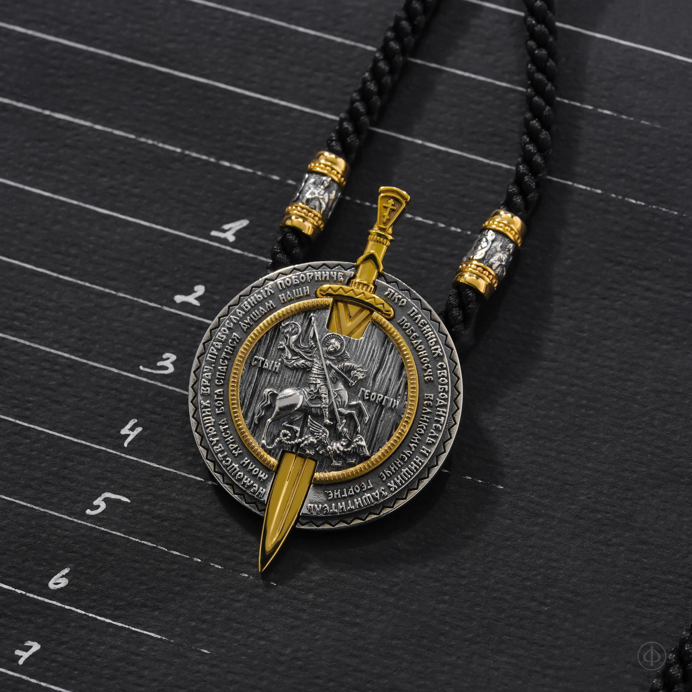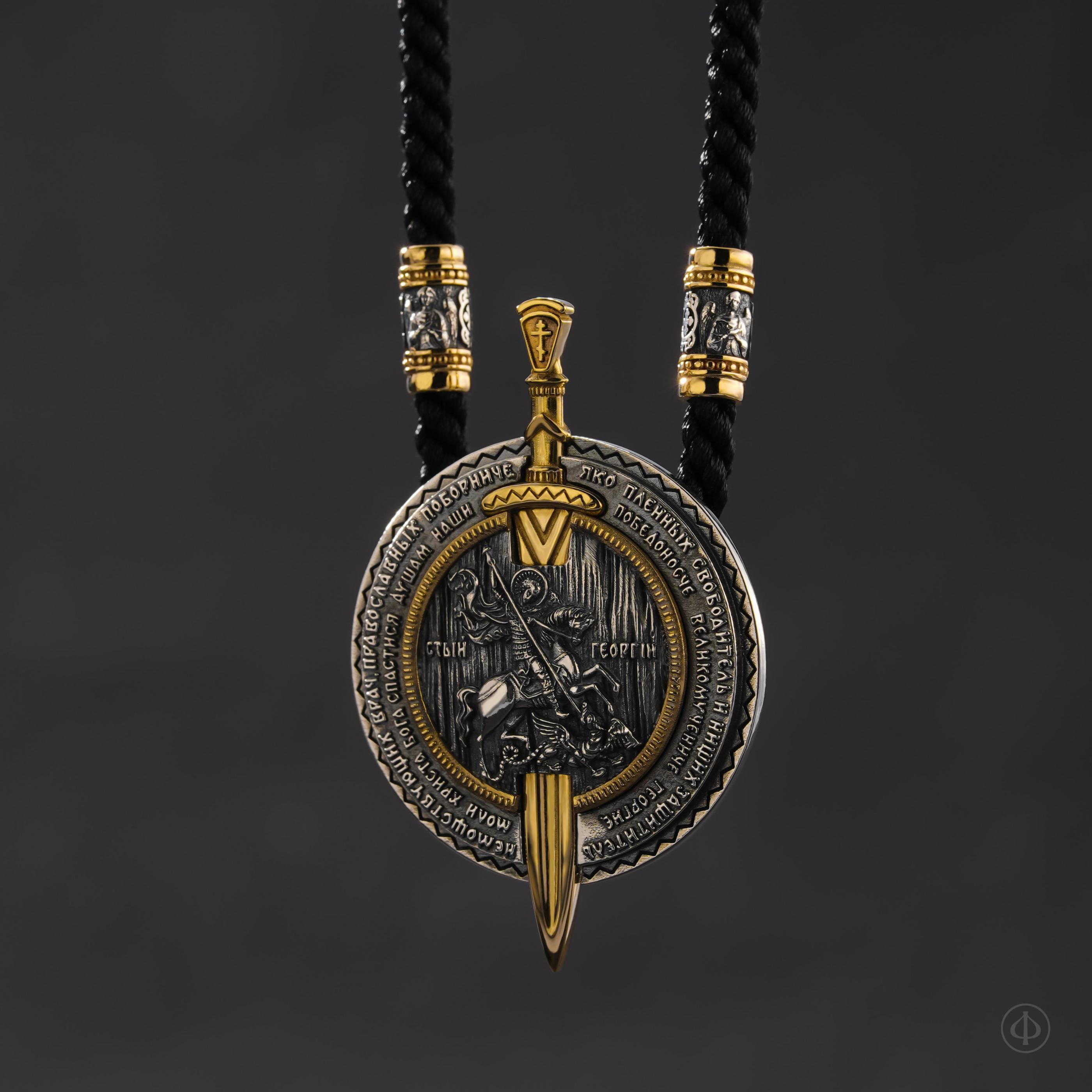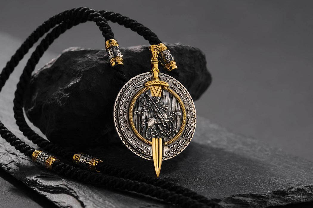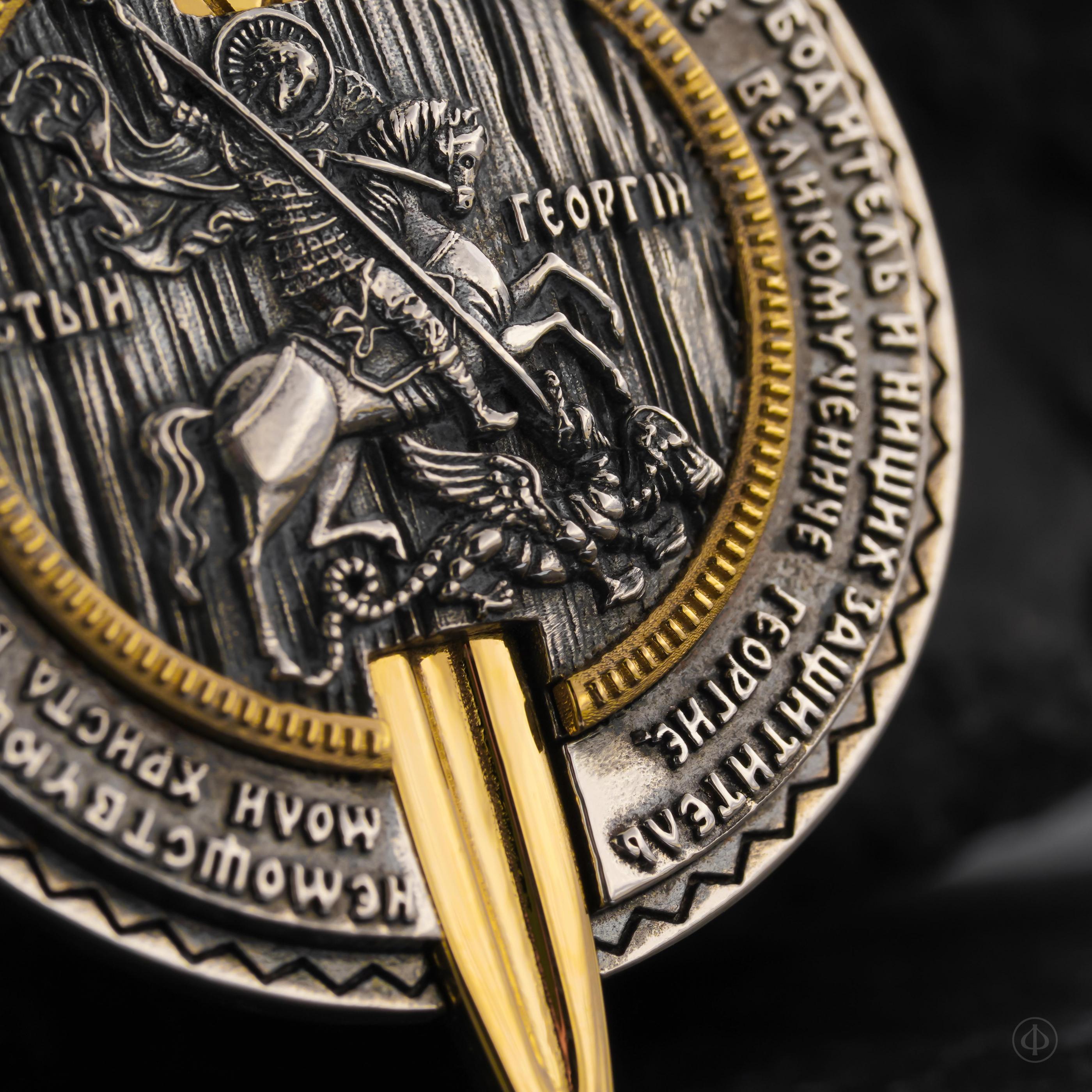 - По окружности текст молитвы ко Георгию Победоносцу Тропарь, глас 4: