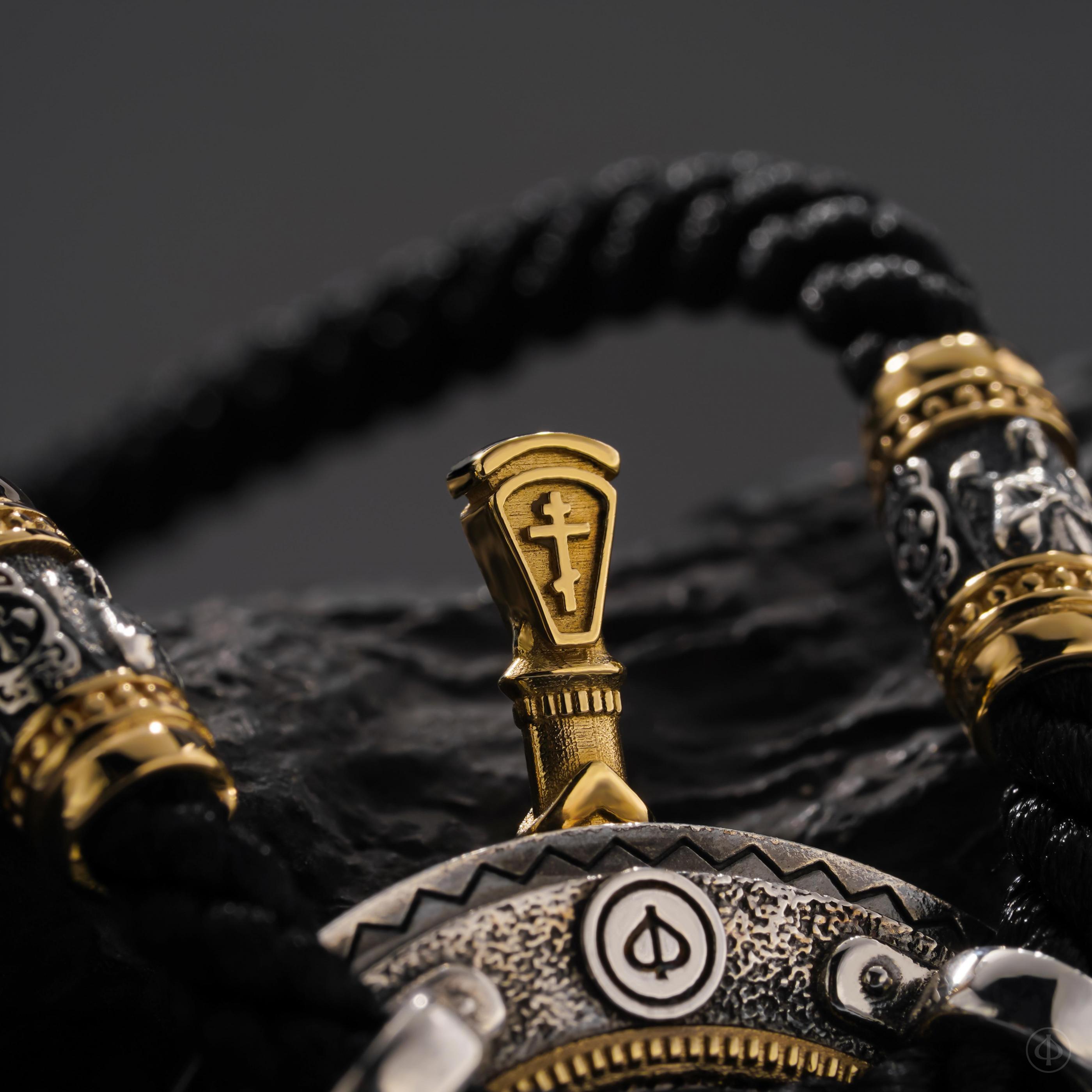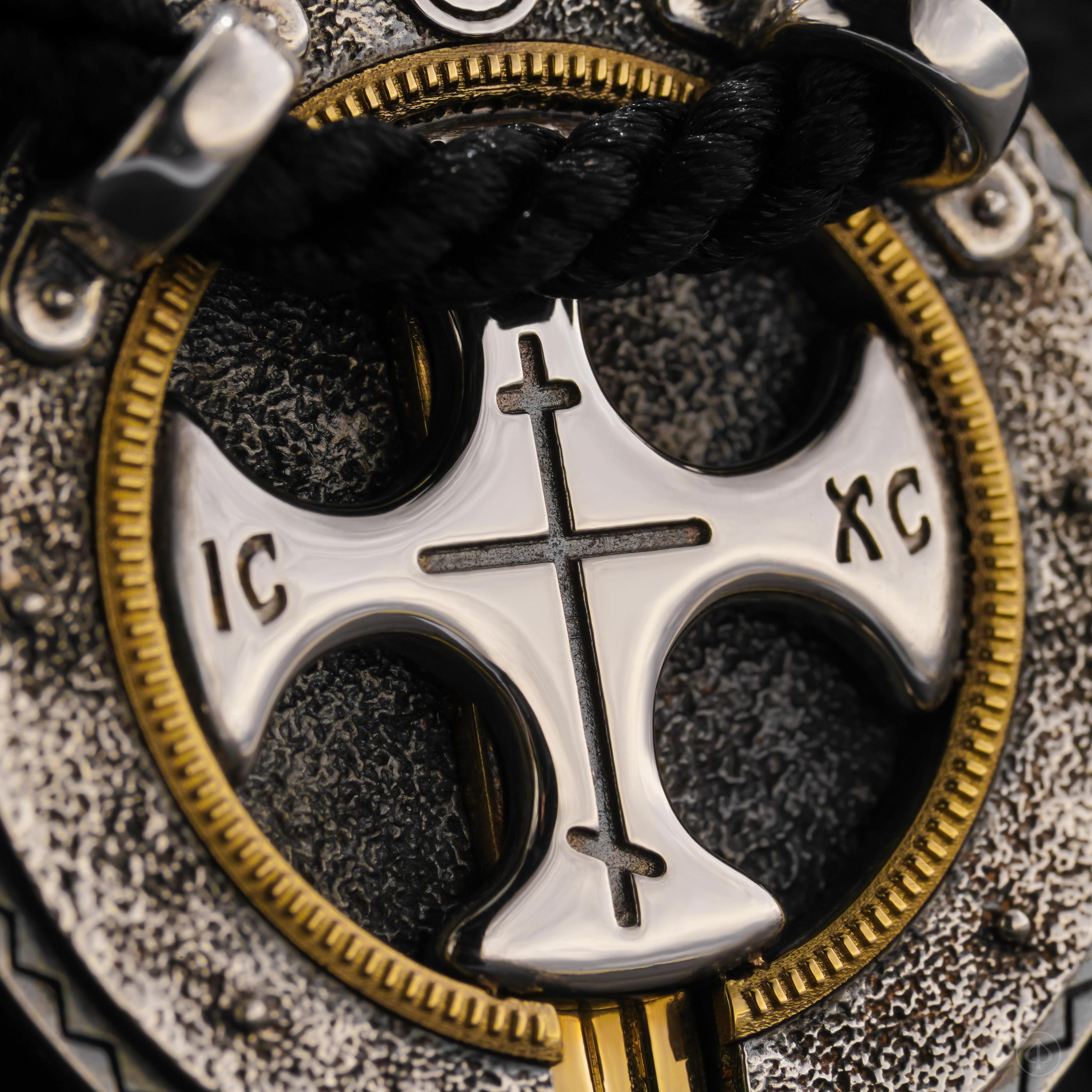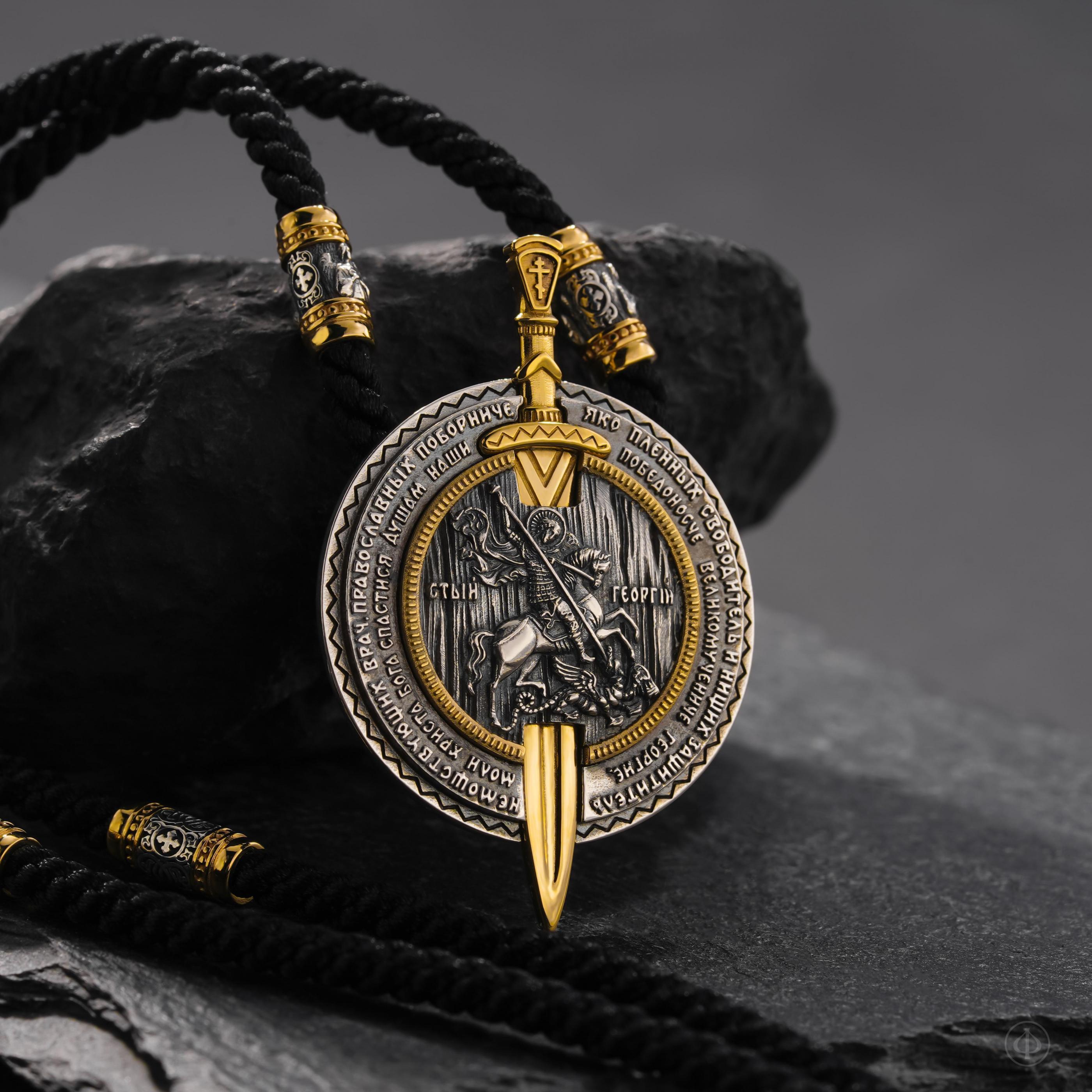 - По окружности текст молитвы ко Георгию Победоносцу Тропарь, глас 4: