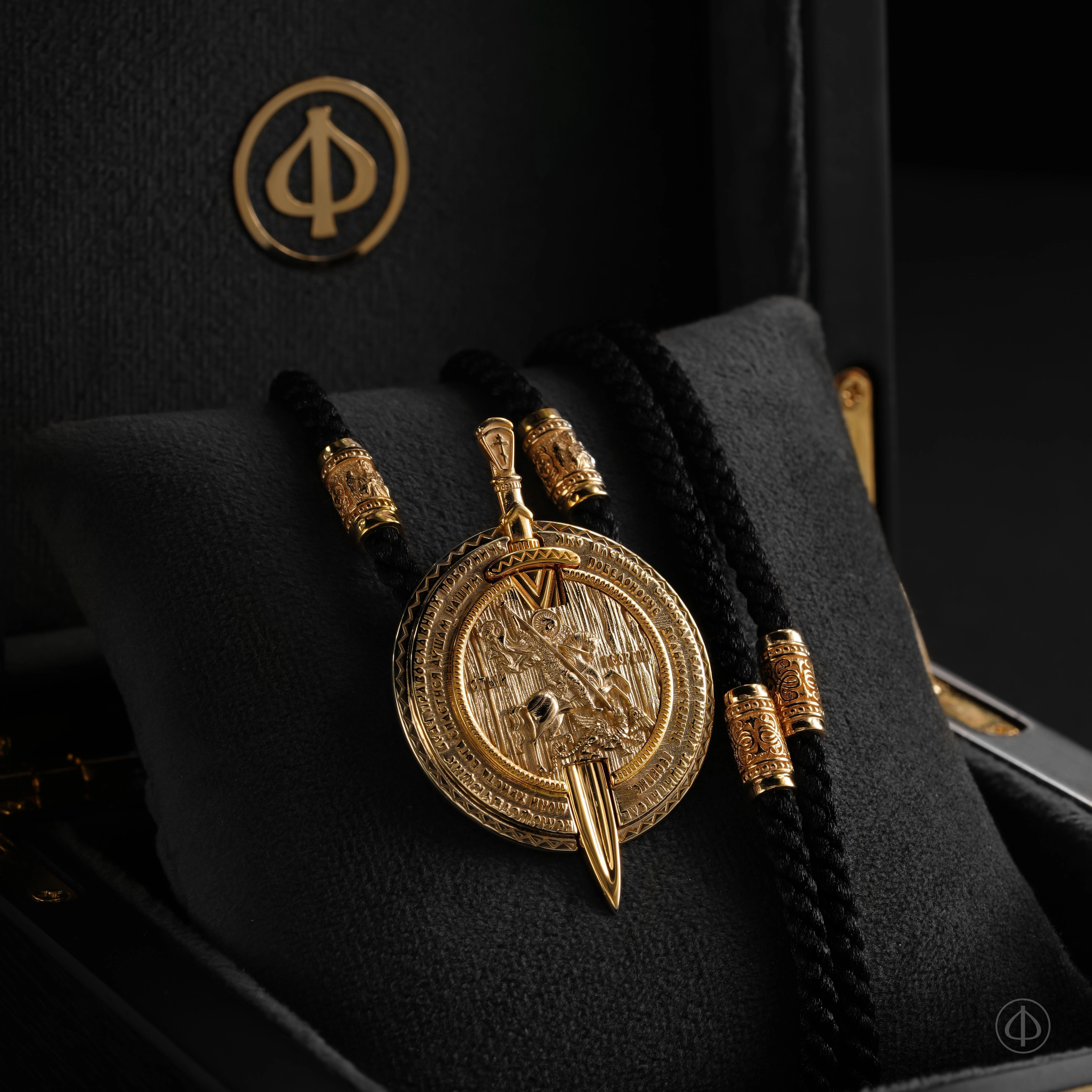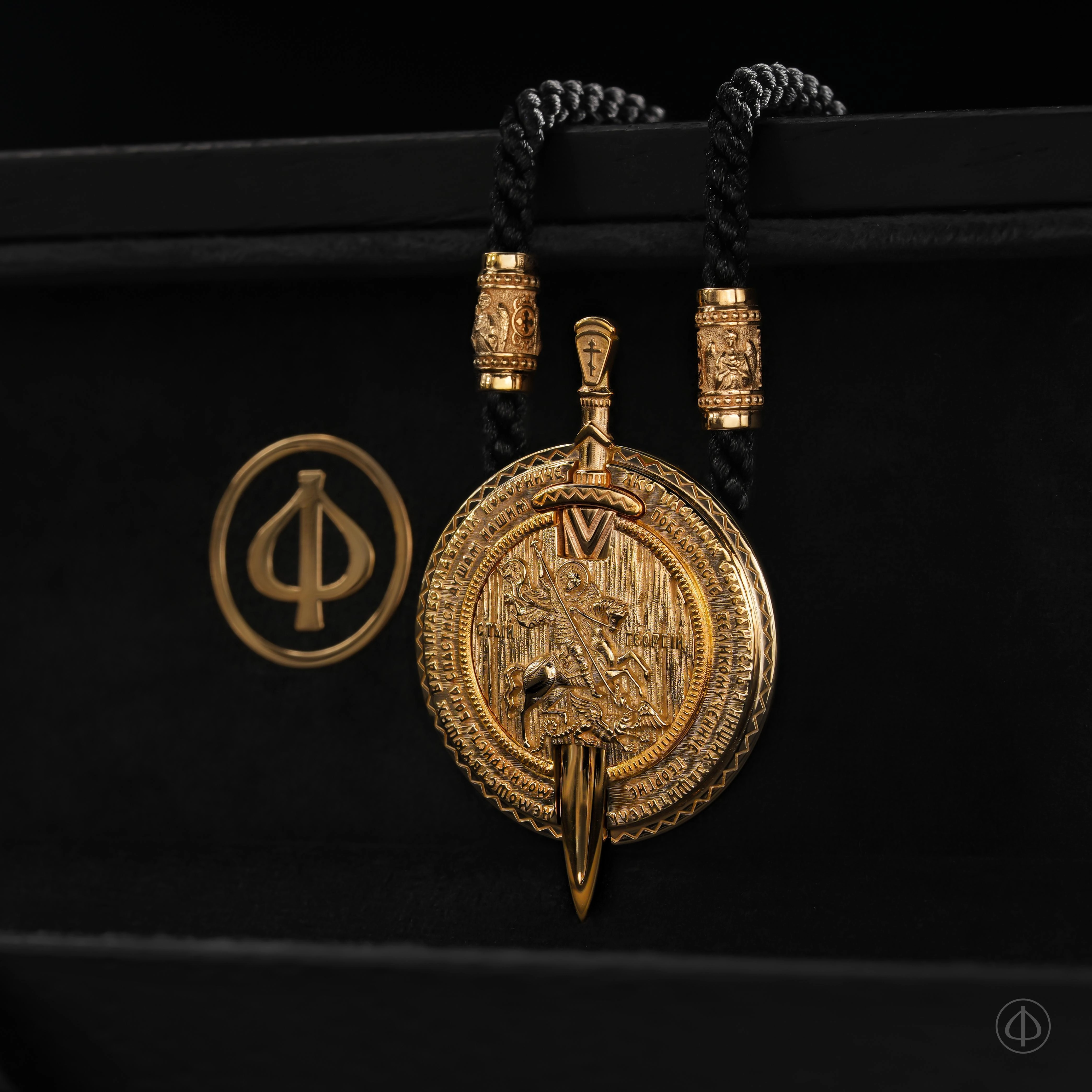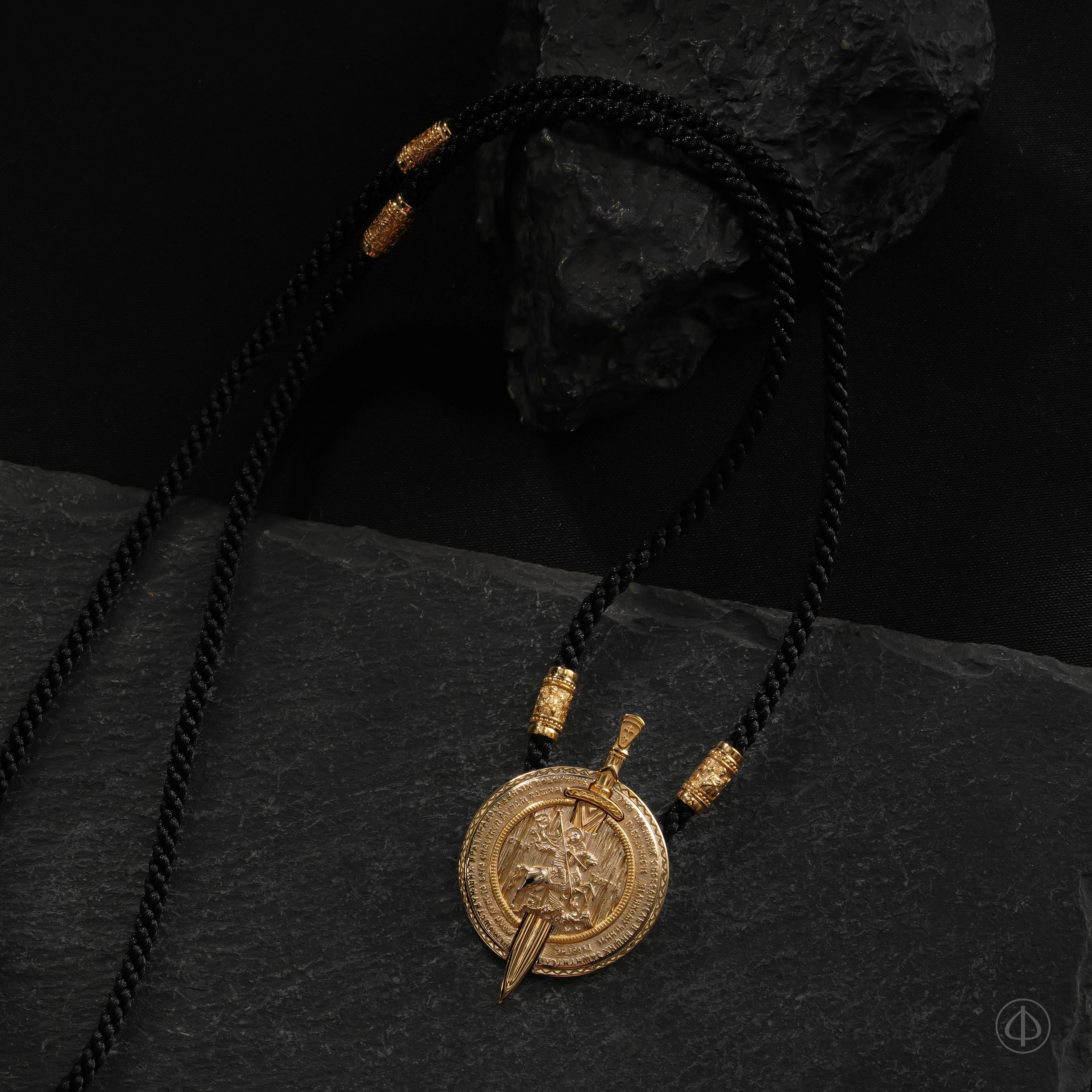 Нательный подвес с центральным образом Георгия Победоносца, одерживающего победу над змеем. Образ Святого Георгия Победоносца — один из самых узнаваемых в православной традиции. В нём соединены мужество, верность и духовная твёрдость. Это образ воина, который побеждает зло не только силой оружия, но силой веры.