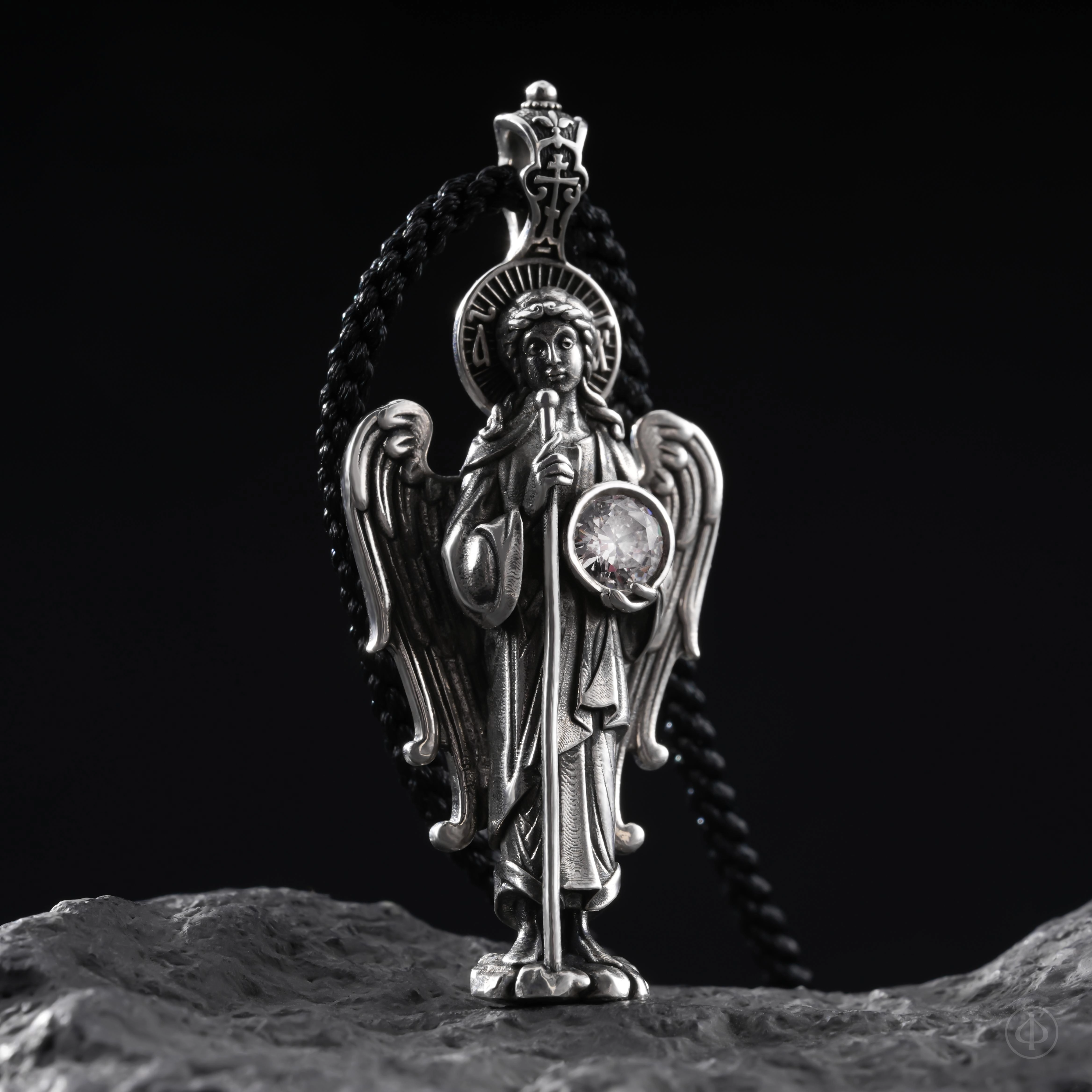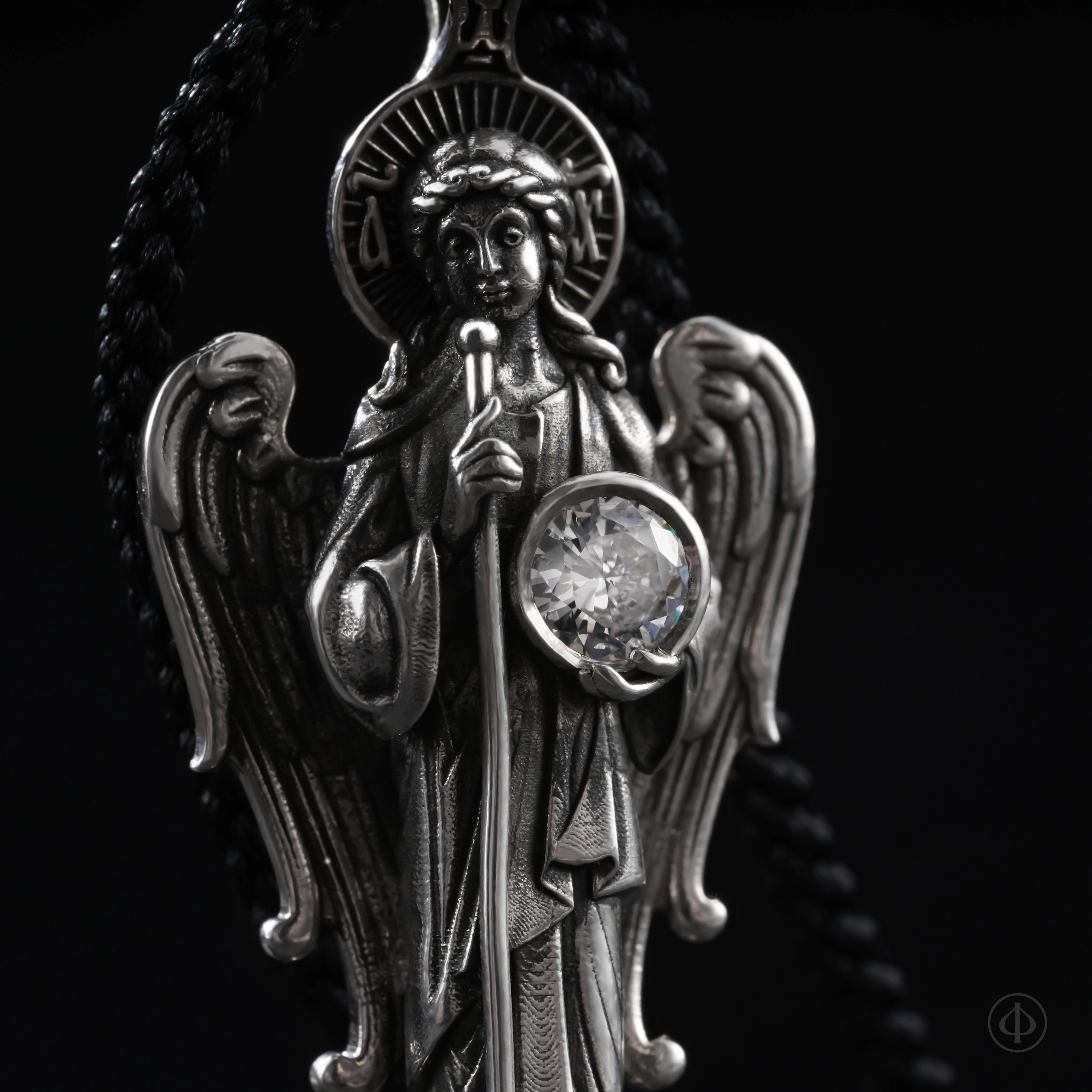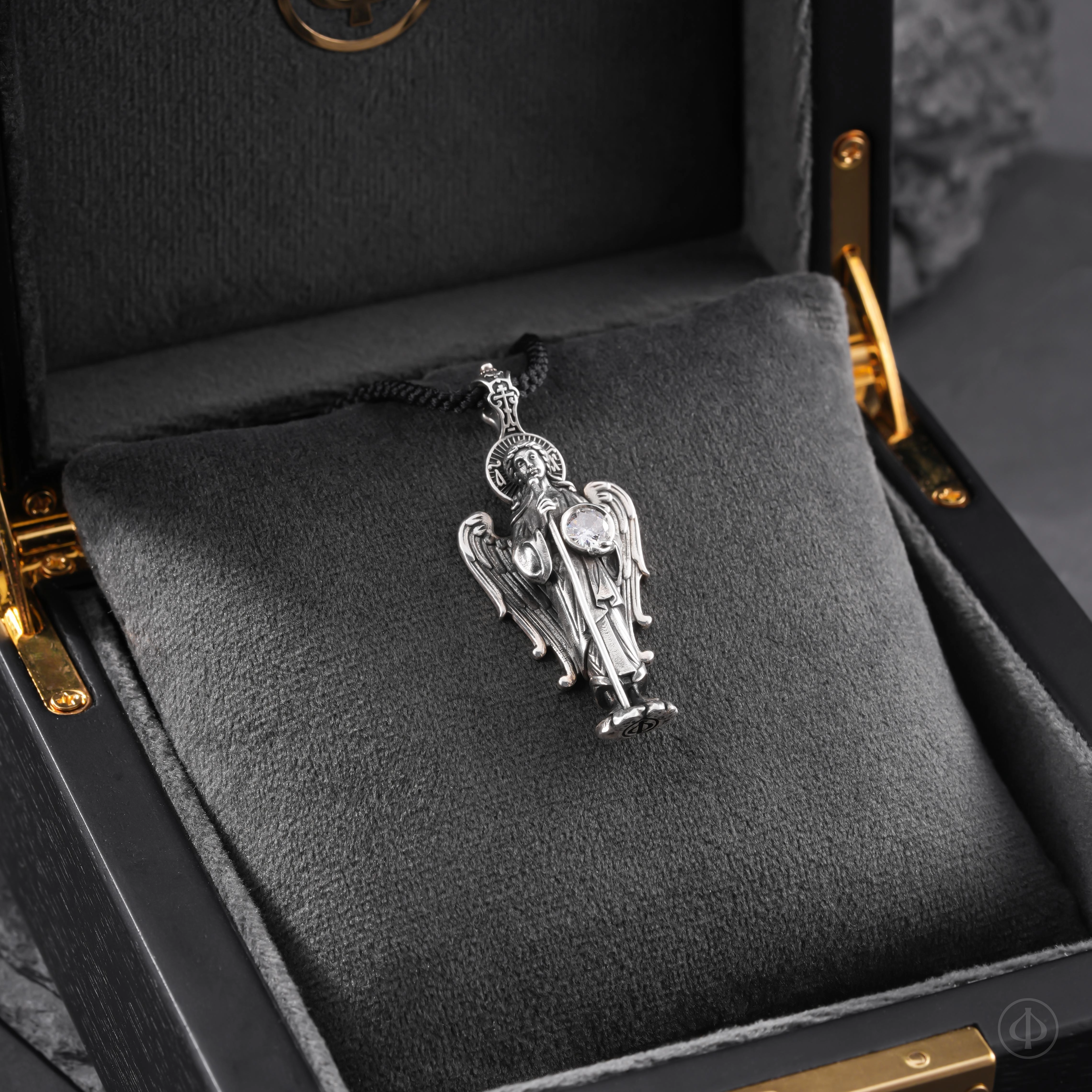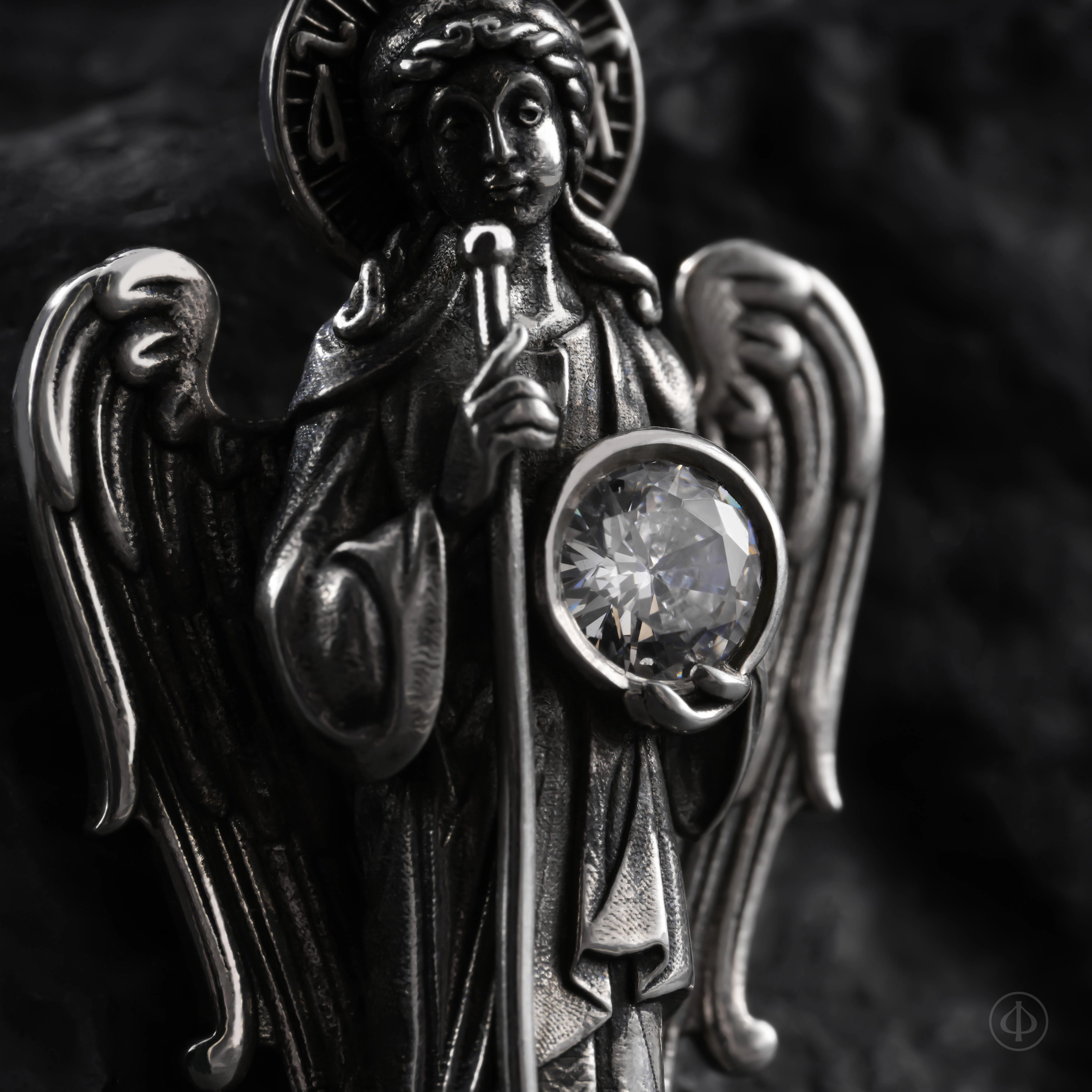 Подвеска из серебра 925 пробы с вставкой фианита в виде ростовой фигуры Ангела-Хранителя.