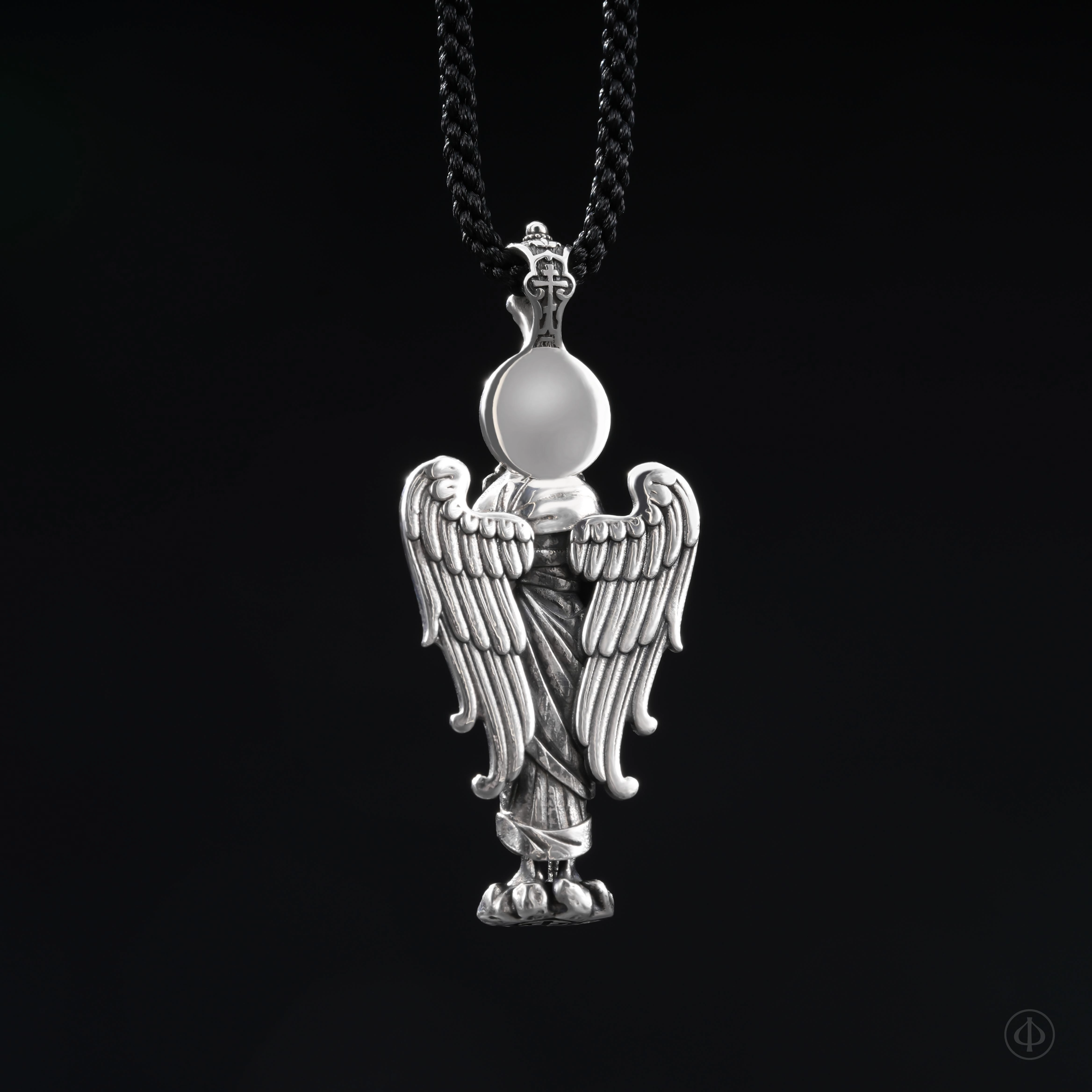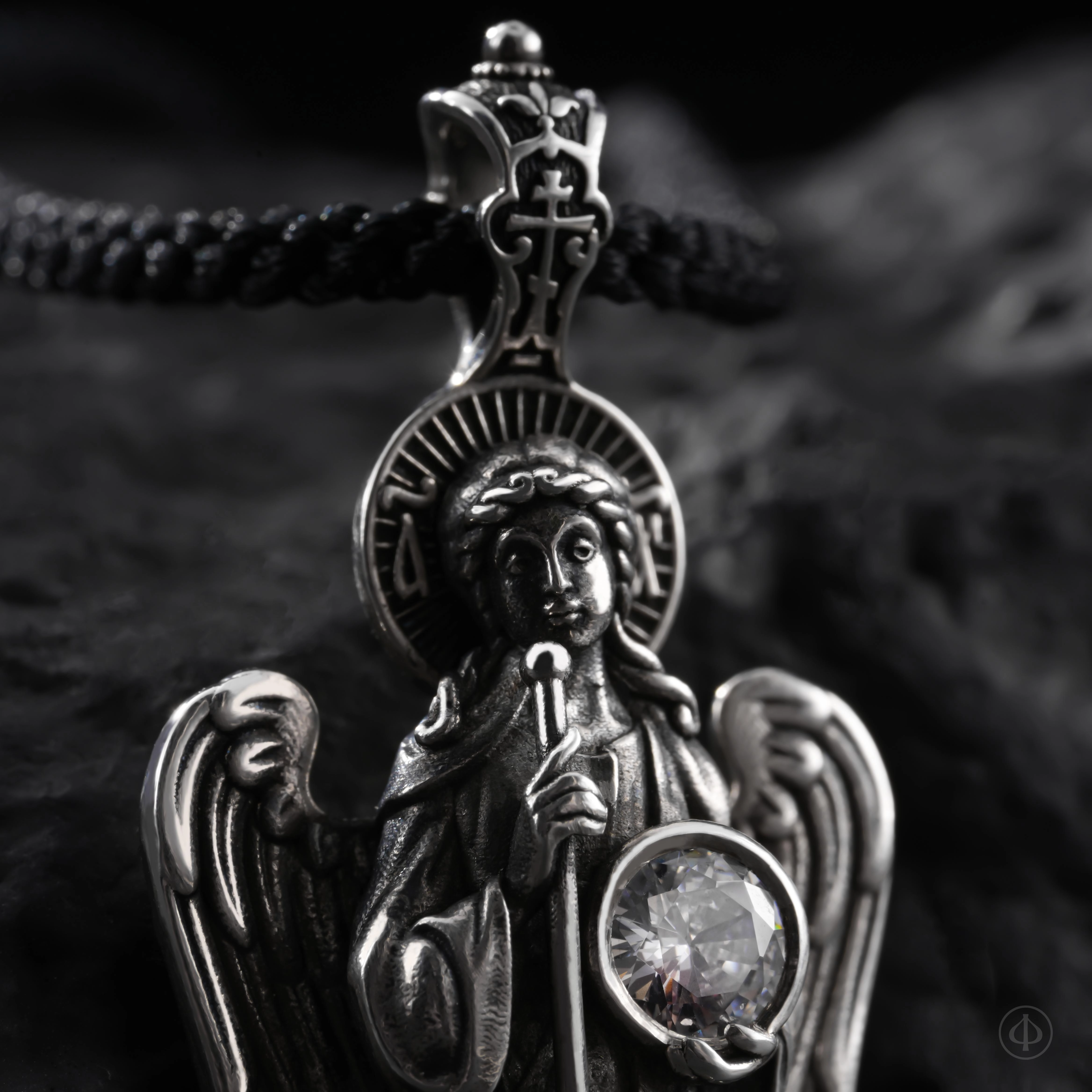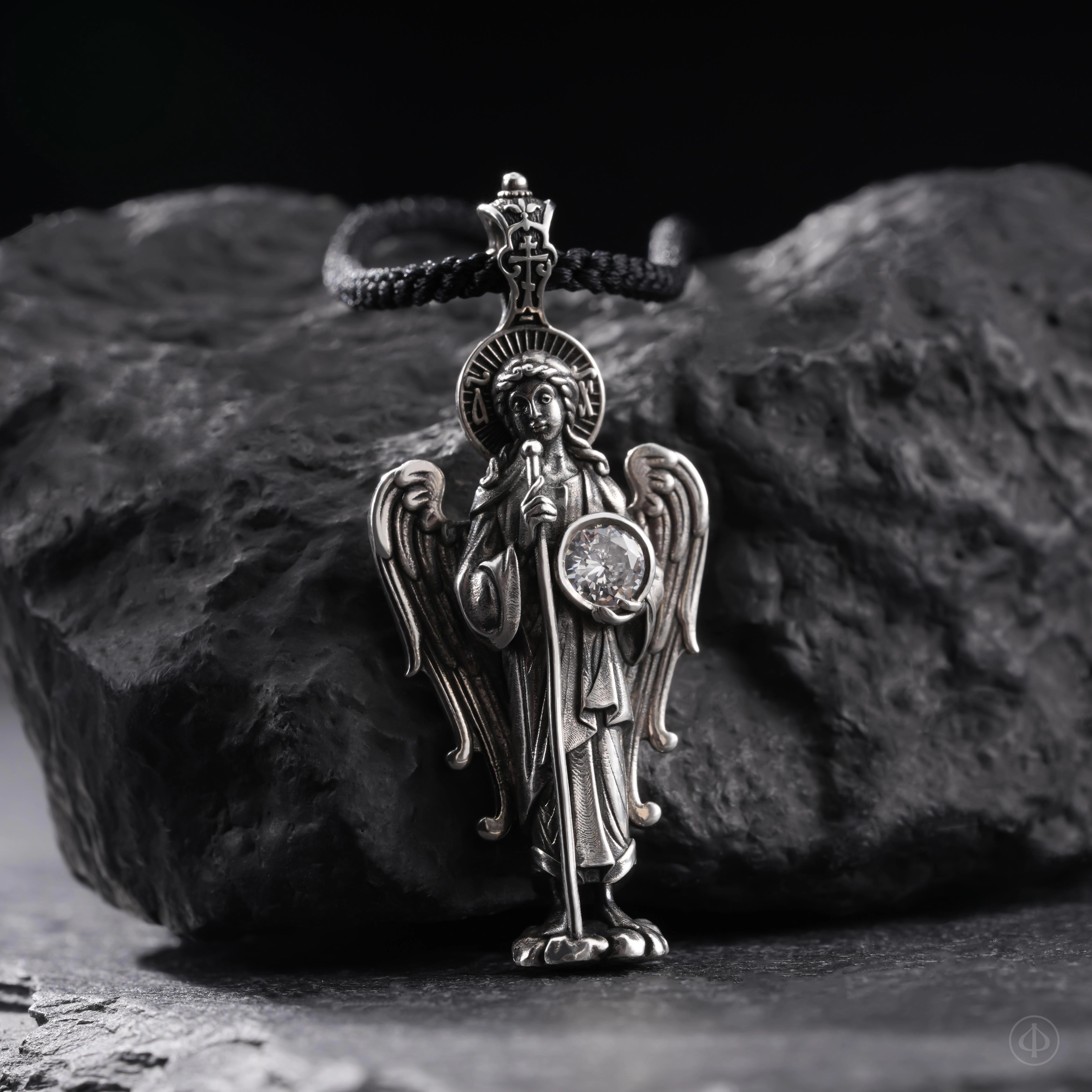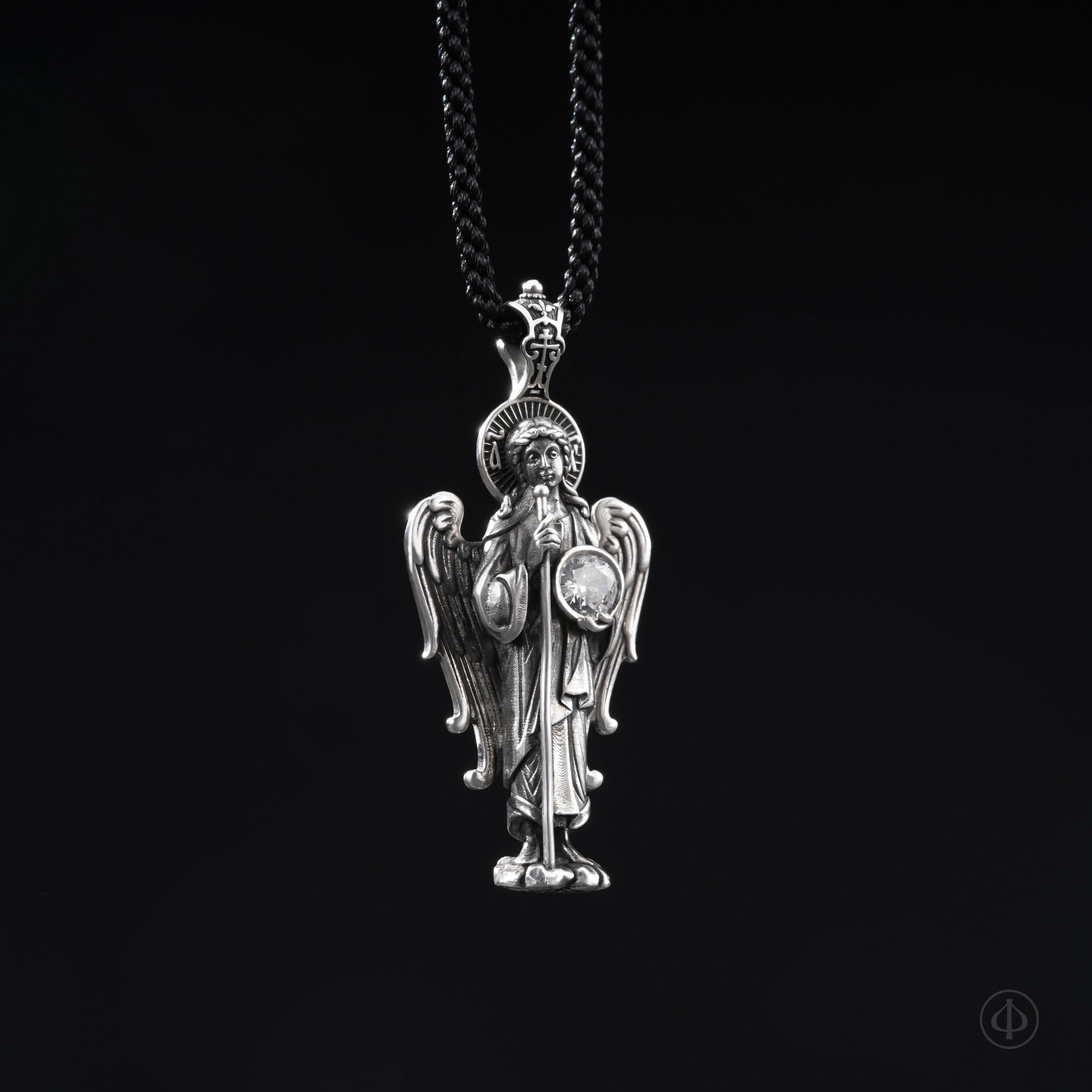 Подвеска из серебра 925 пробы с вставкой фианита в виде ростовой фигуры Ангела-Хранителя.