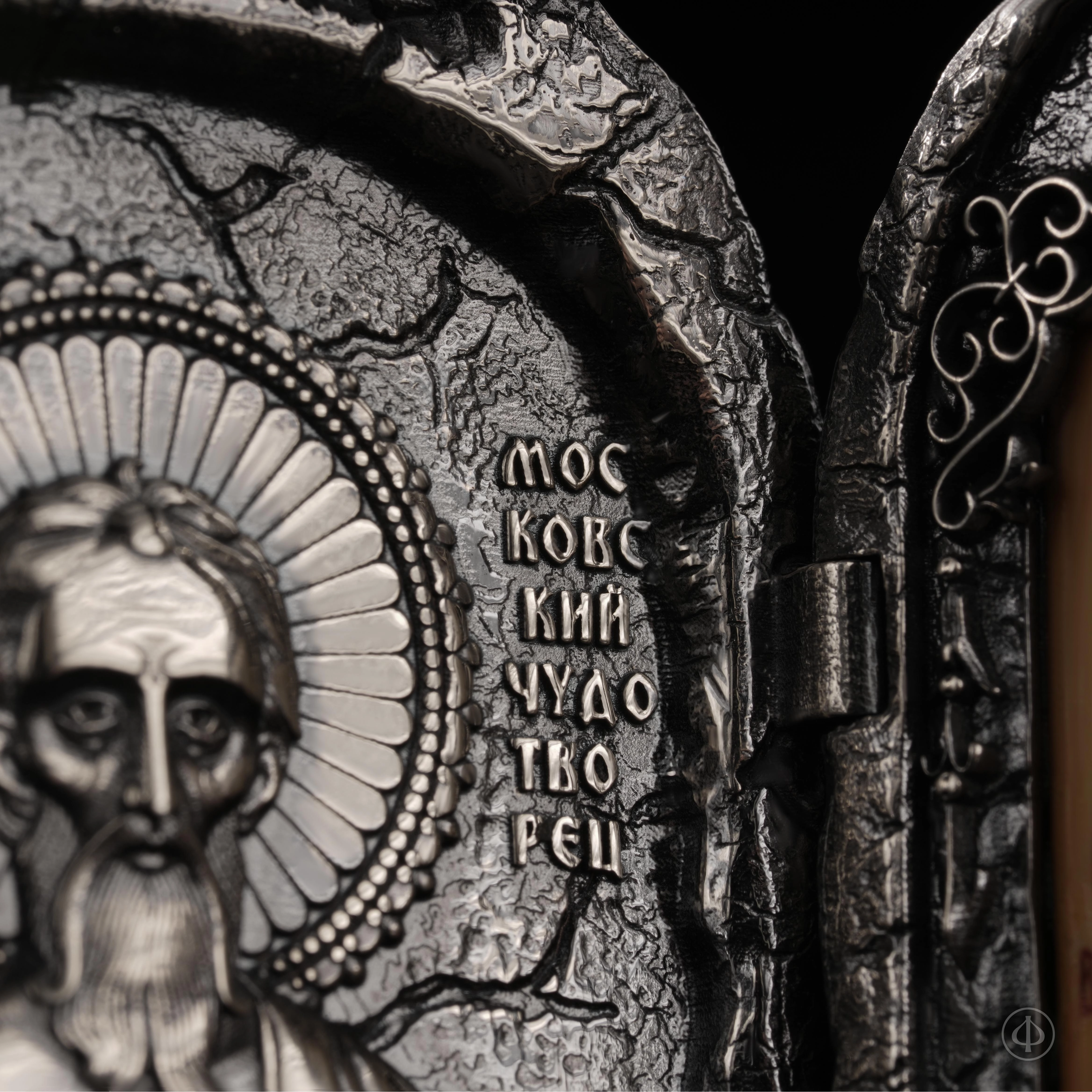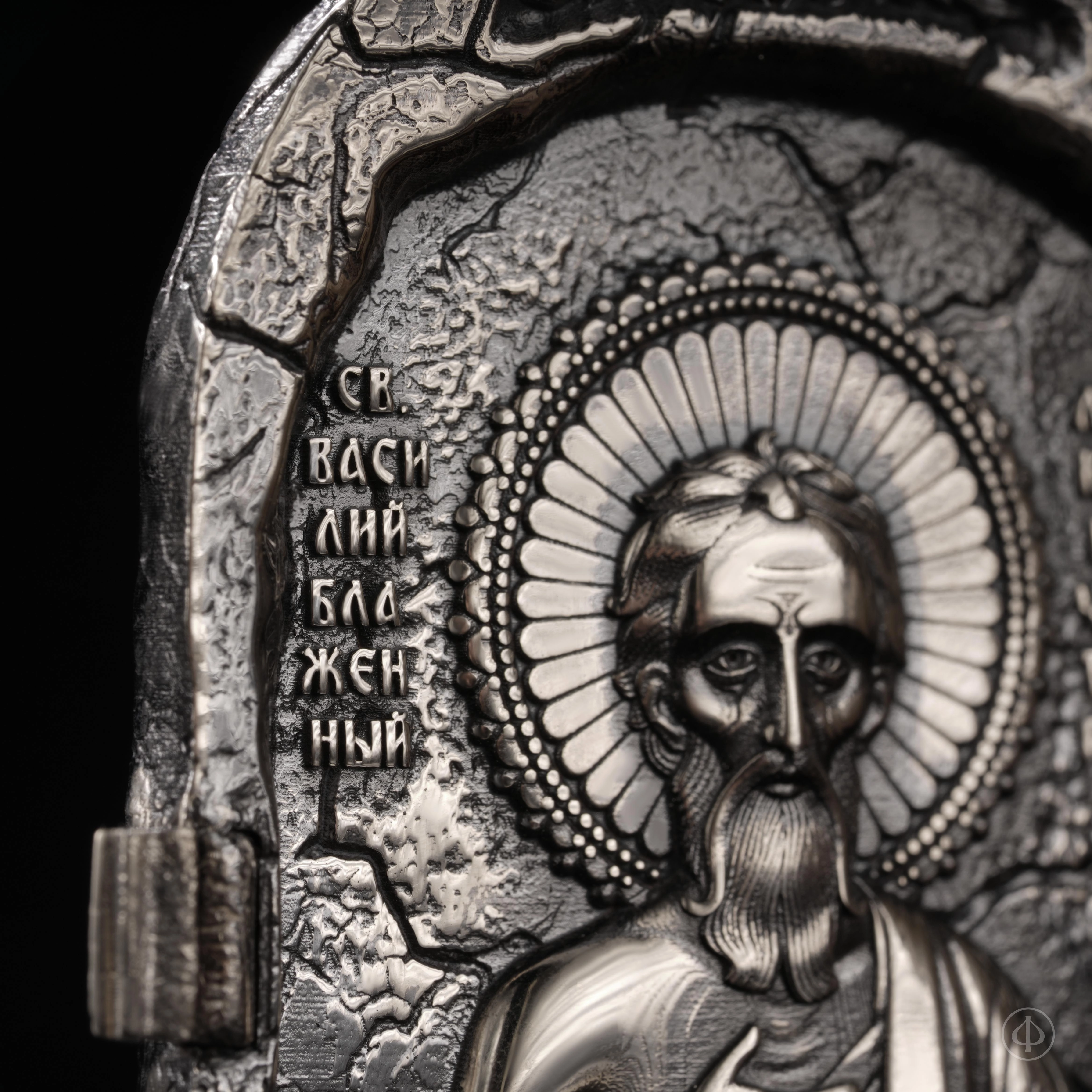 - внутренняя сторона – лик Серафима Саровского, Казанской Божьей Матери, Матроны Московской, «Господь Вседержатель», Василий Блаженный;