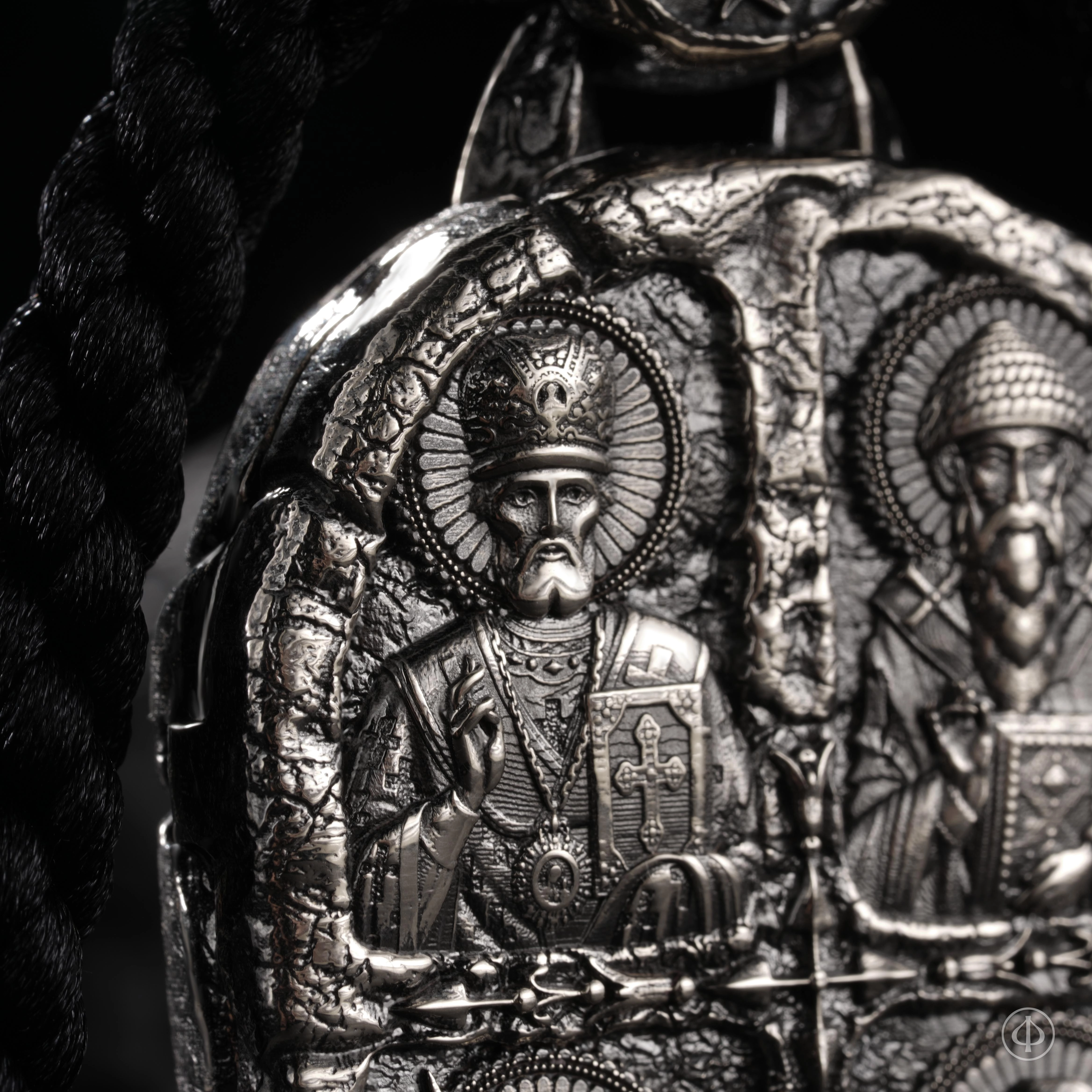 Подвеска из белого золота 750 пробы с финифтью – классическое ювелирное изделие, выполненное по канонам Православной церкви. Купить подвеску с ликами святых – значит приобрести неподвластный времени символ веры.
