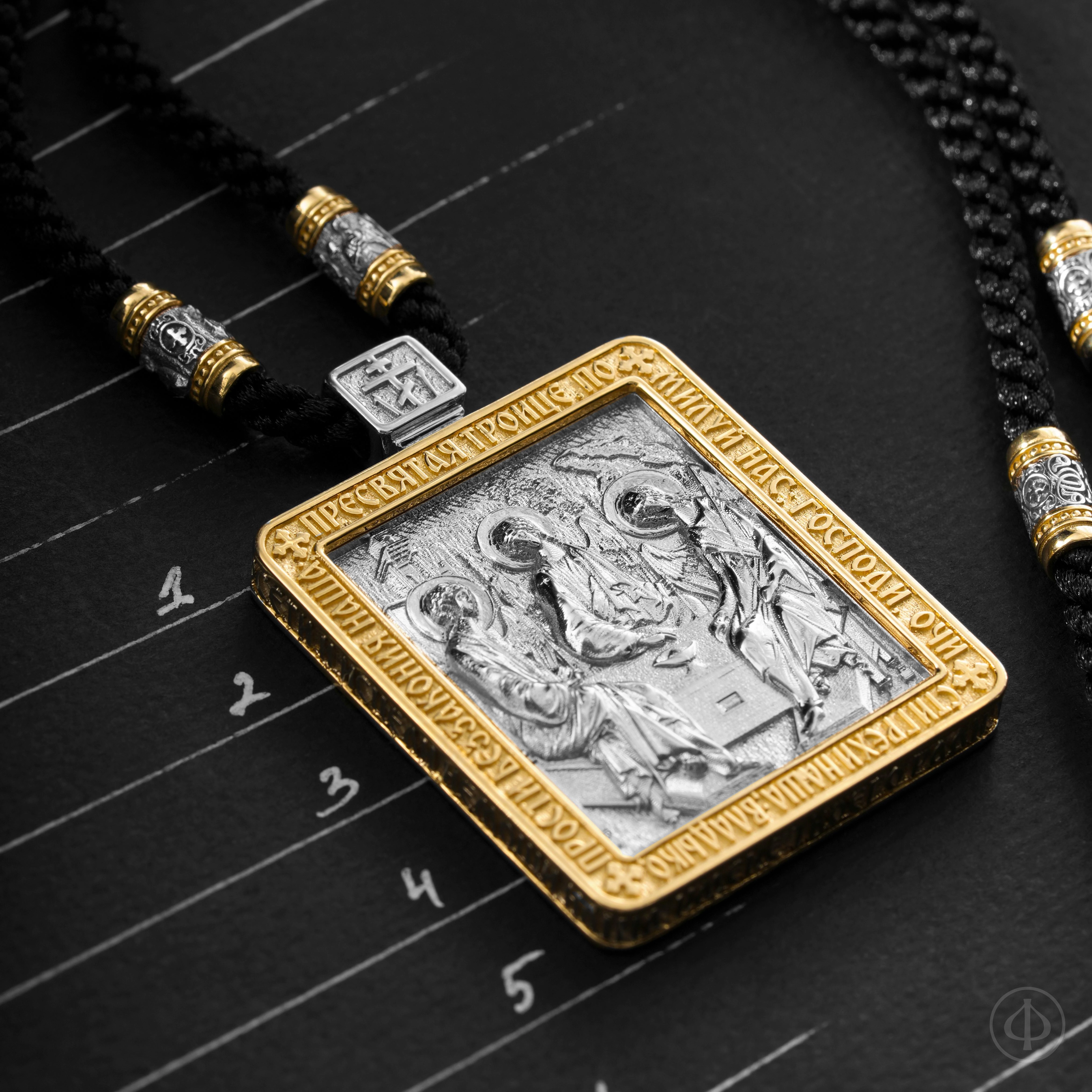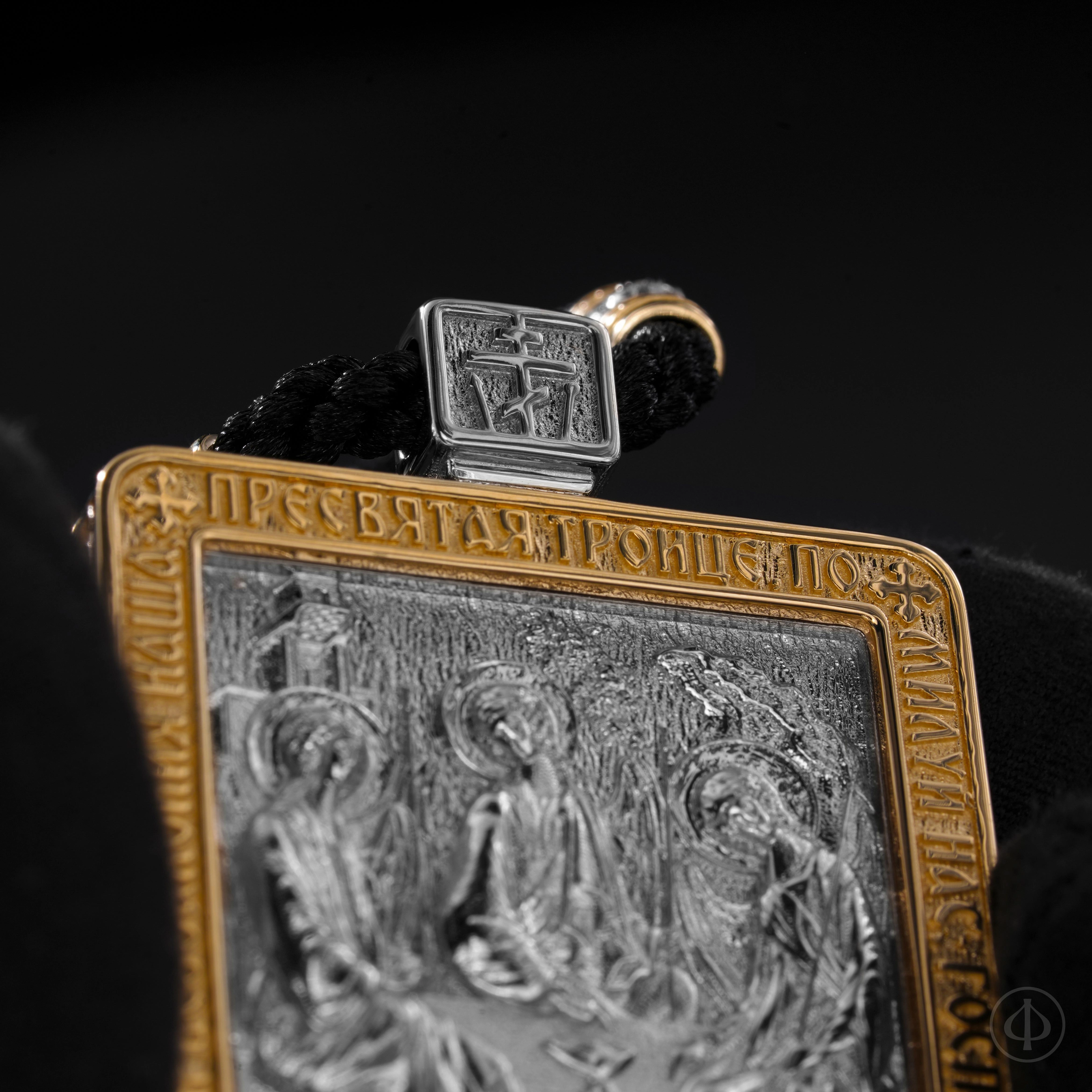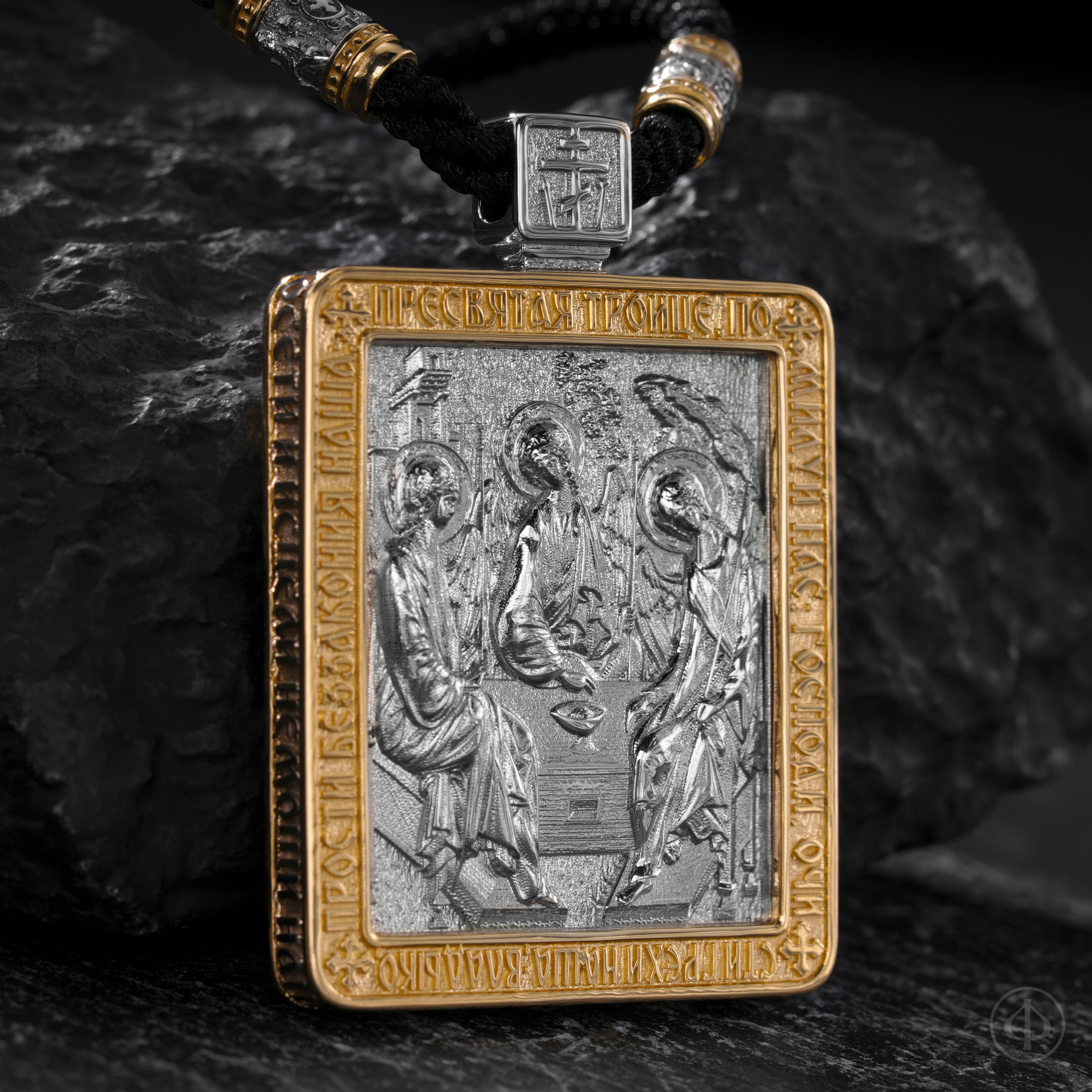 Этот подвес объединяет в себе ключевые образы православной веры и раскрывает тему Божественного единства. Композиция выстроена вокруг идеи Святой Троицы.
