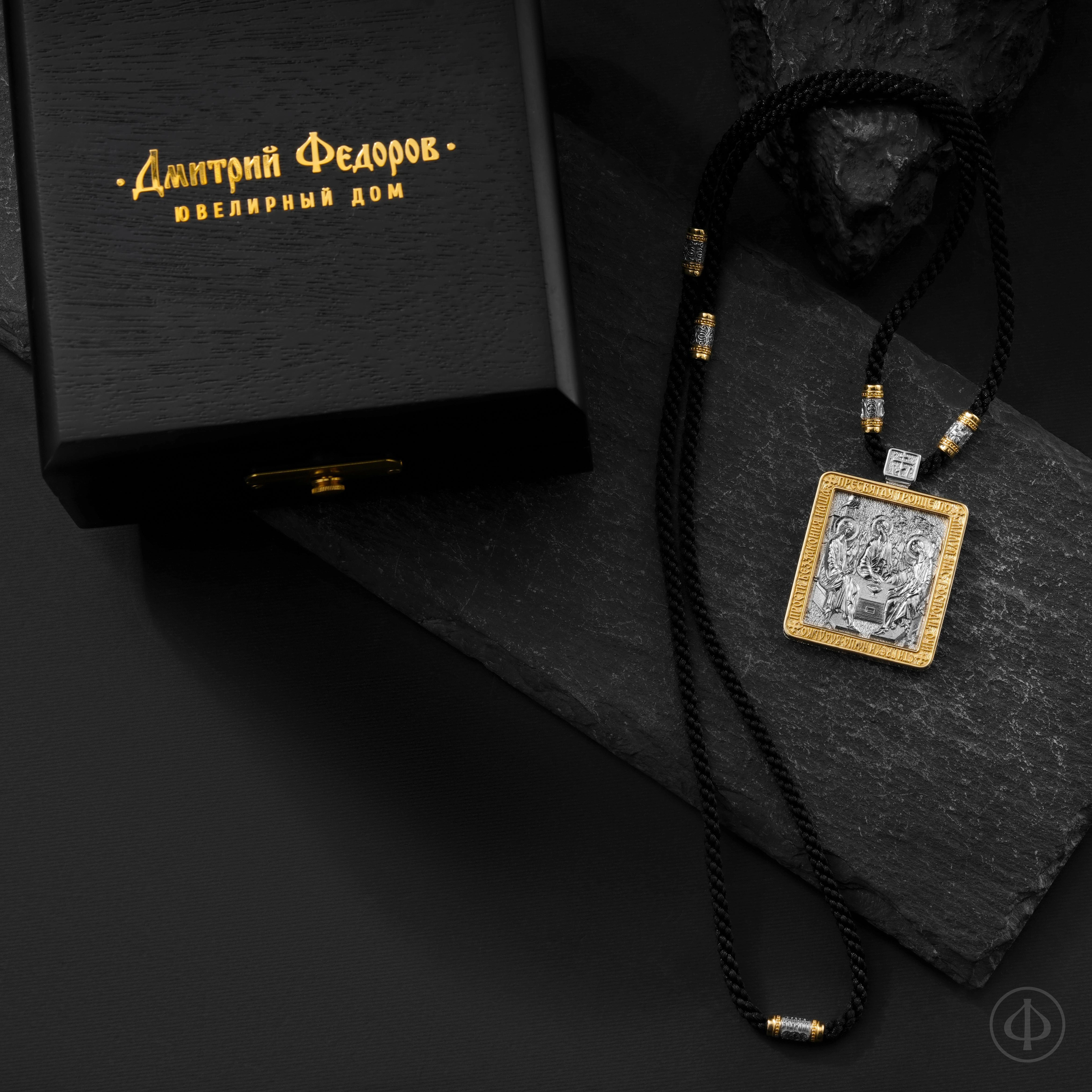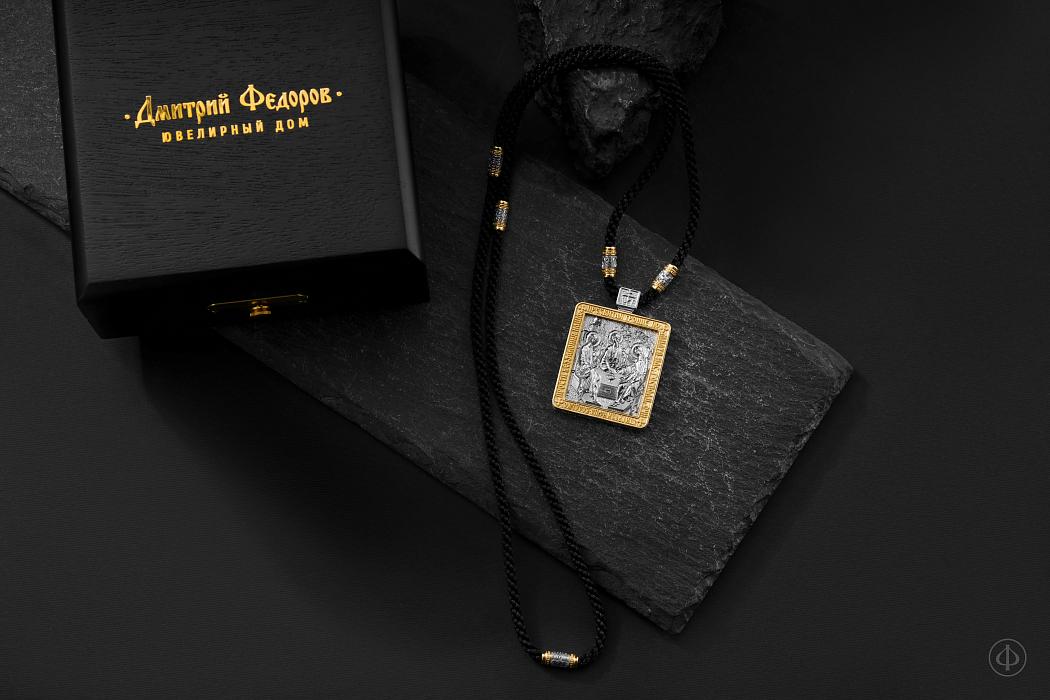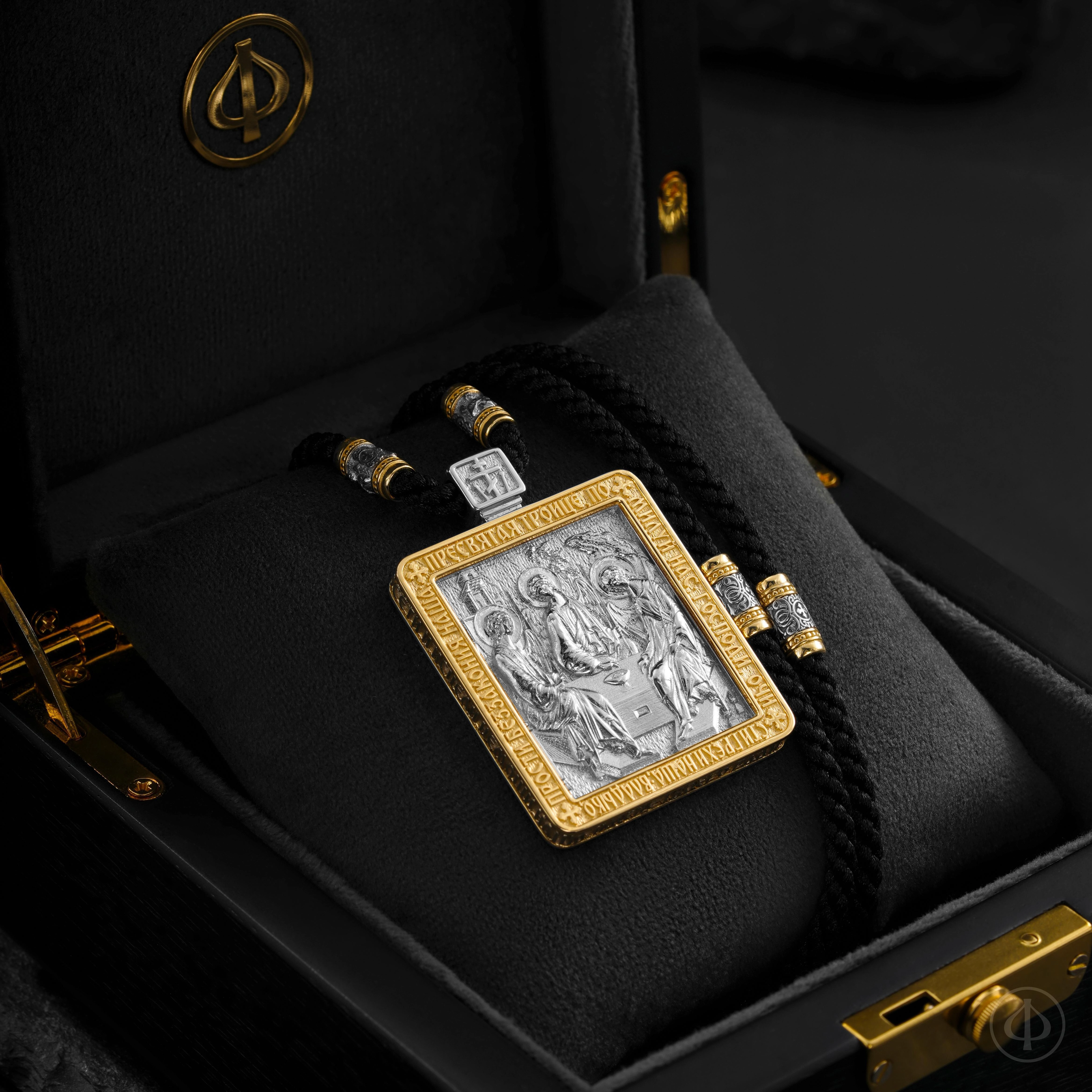 Этот подвес объединяет в себе ключевые образы православной веры и раскрывает тему Божественного единства. Композиция выстроена вокруг идеи Святой Троицы.