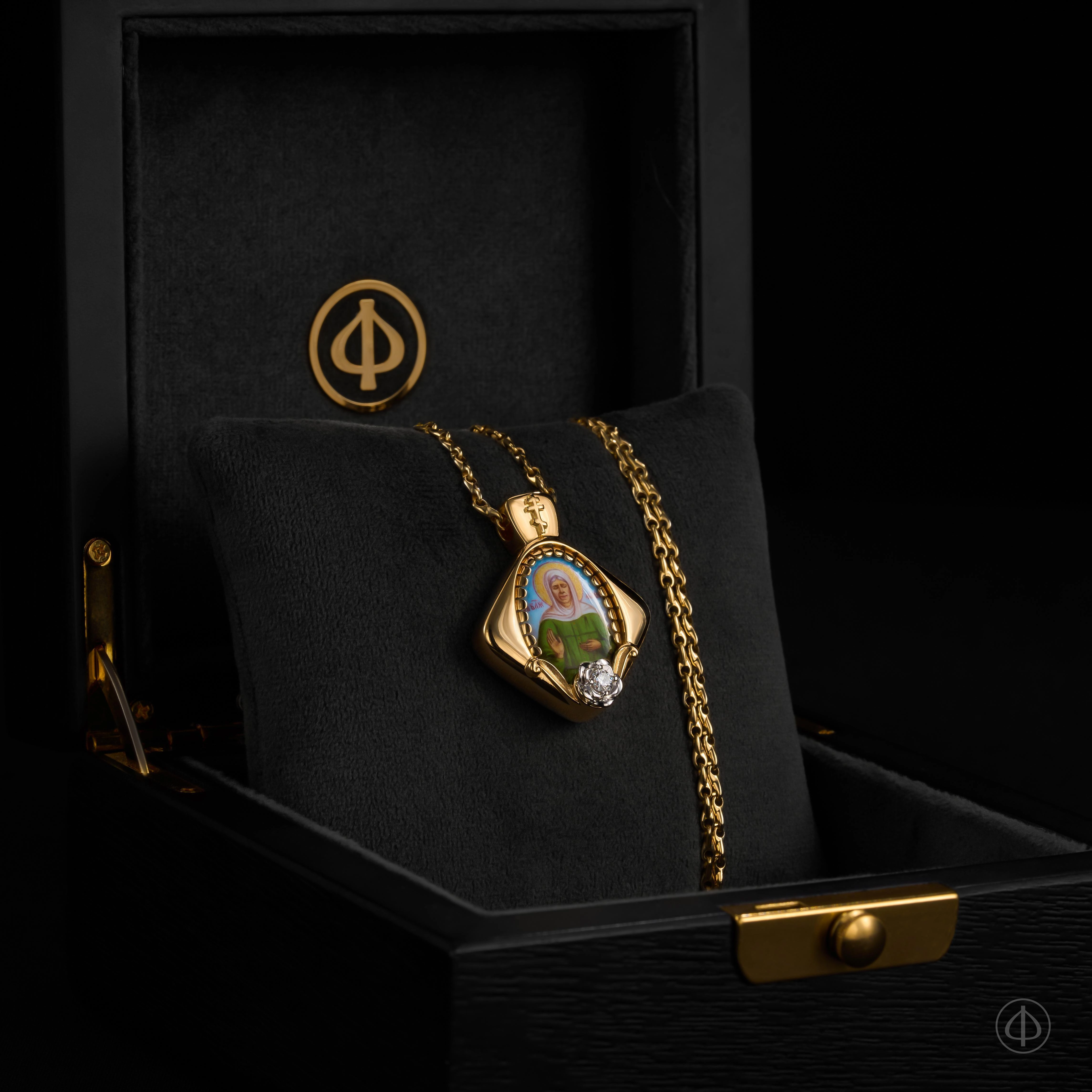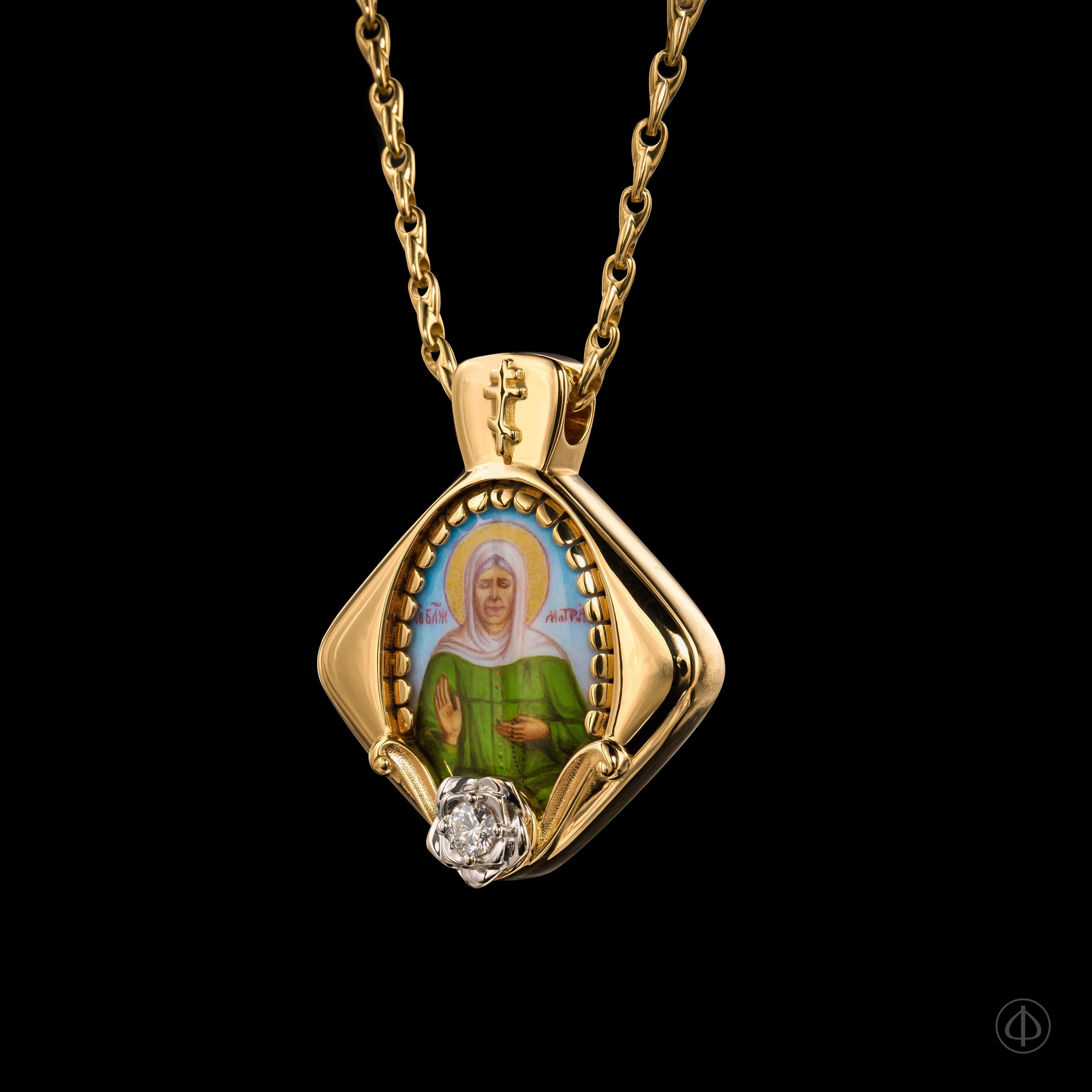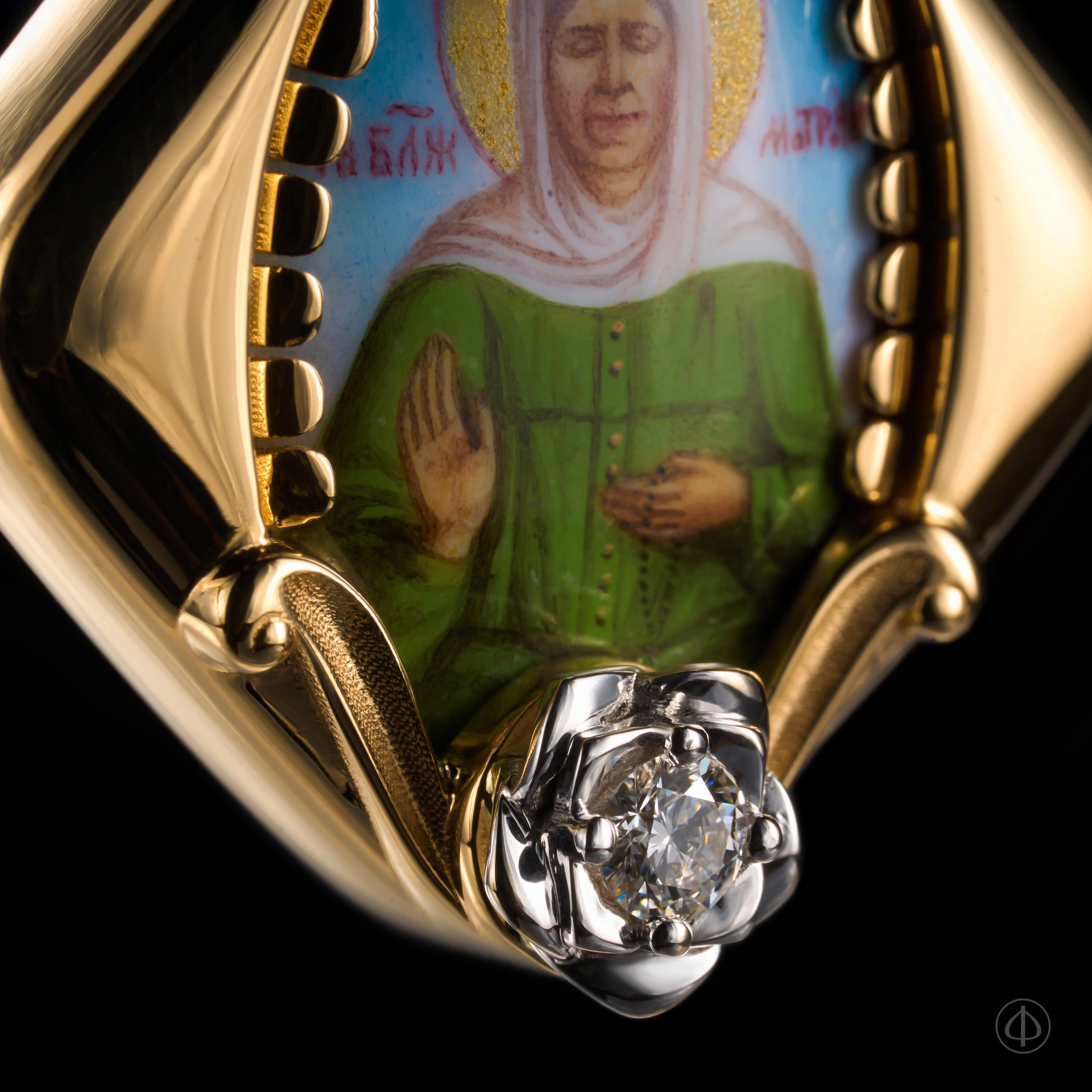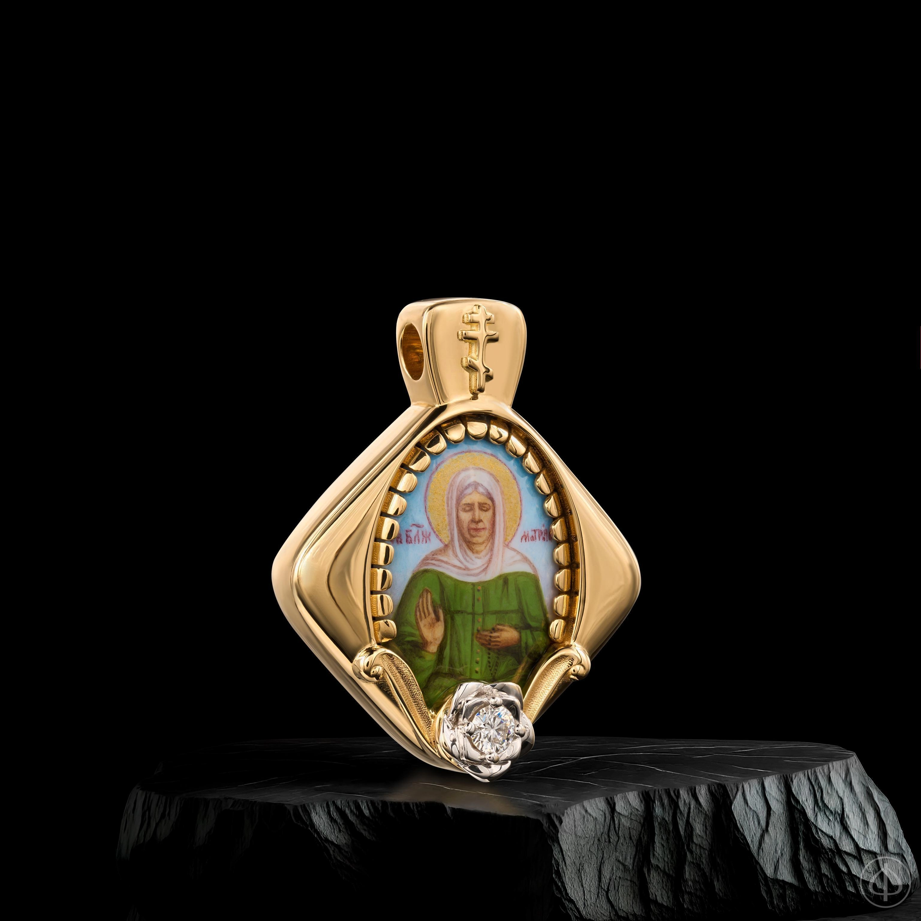 - В центре икона Матроны Московской на перламутре.