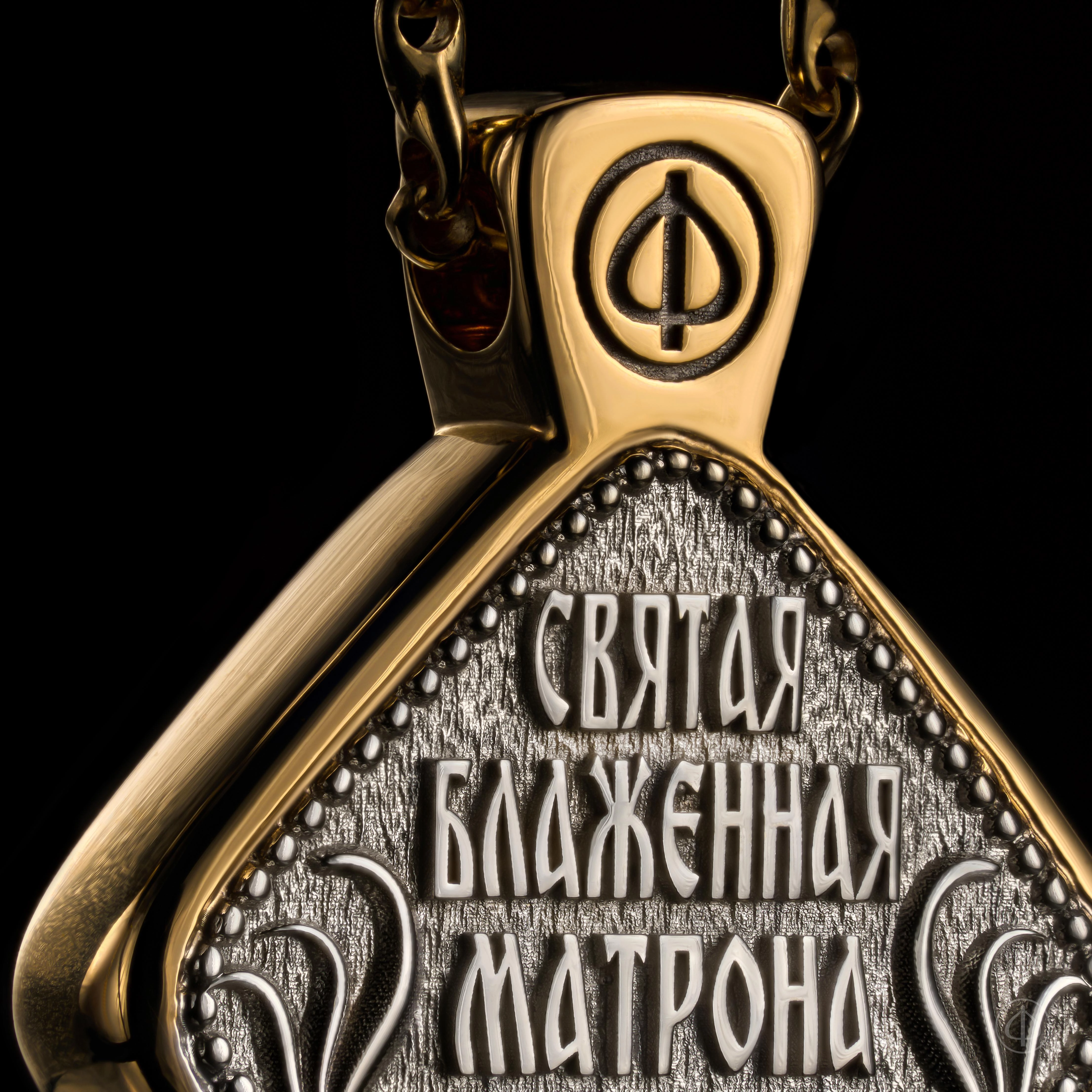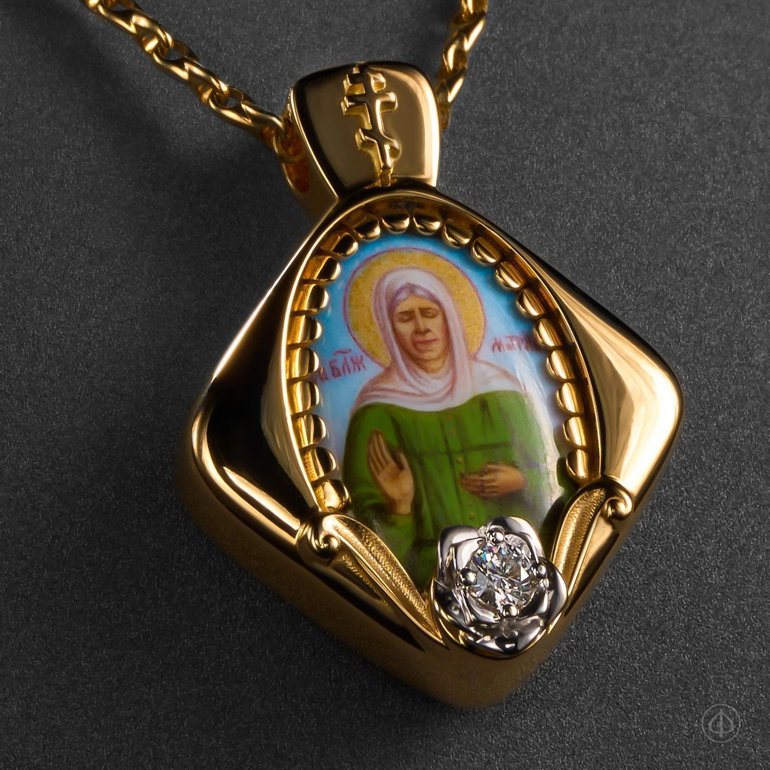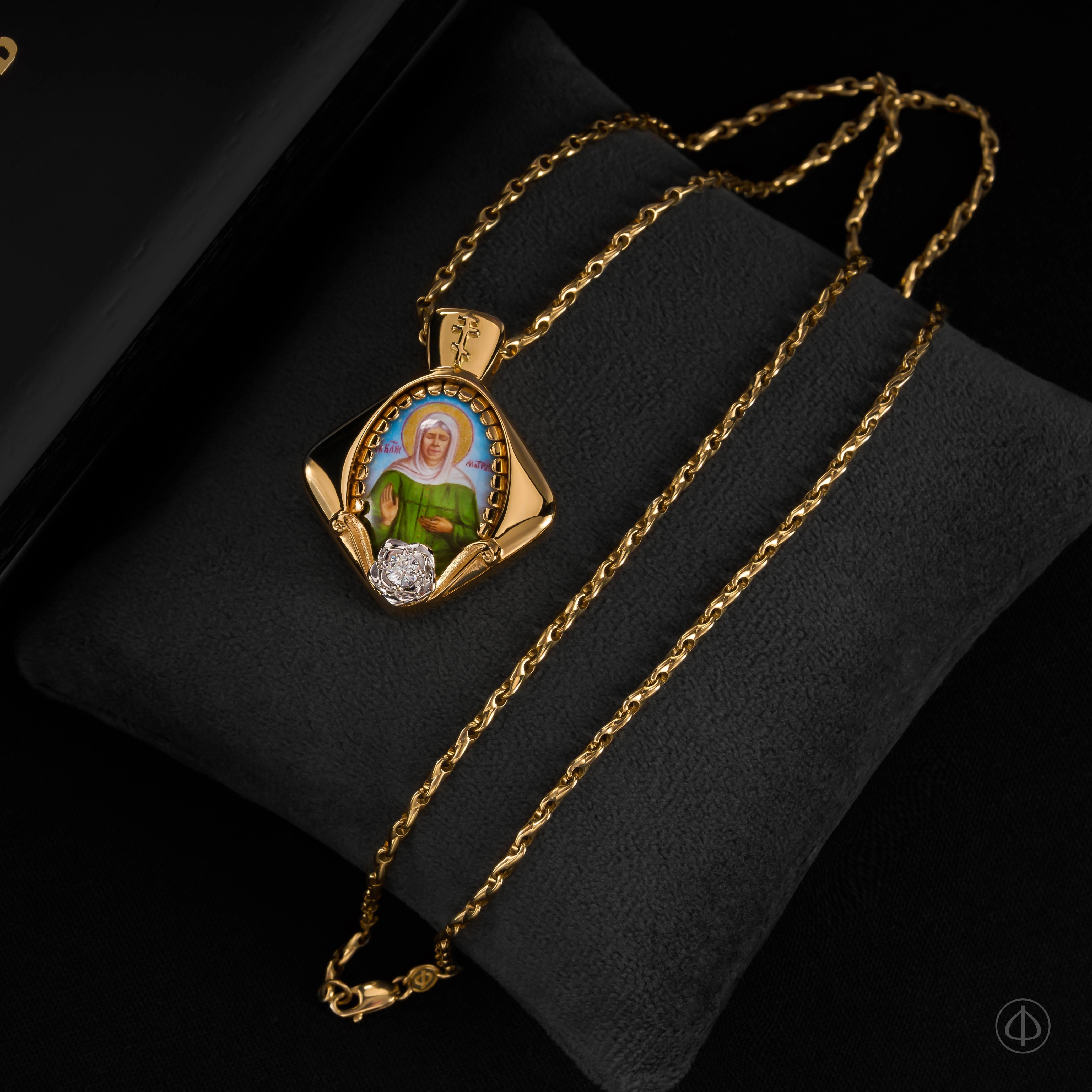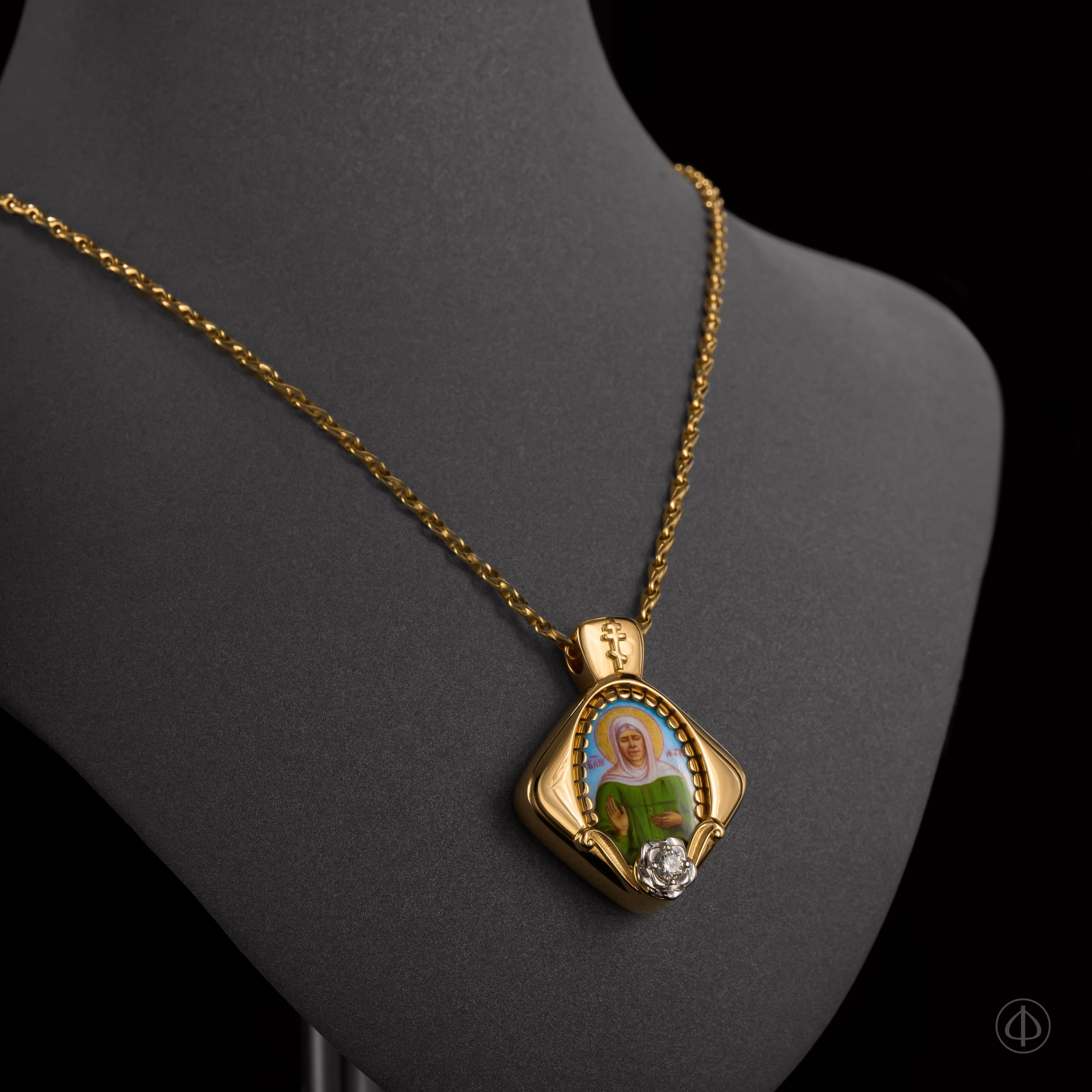 - В центре икона Матроны Московской на перламутре.