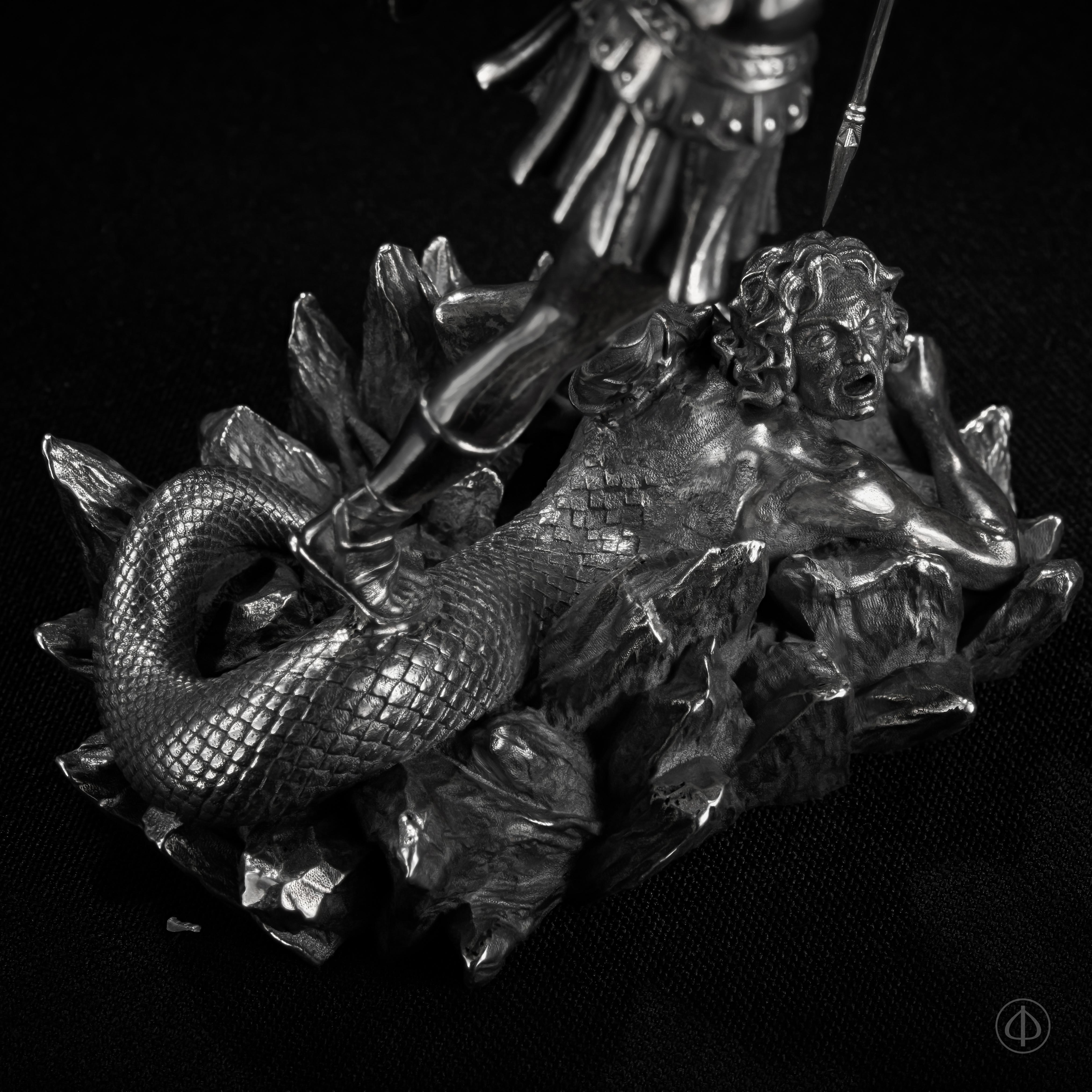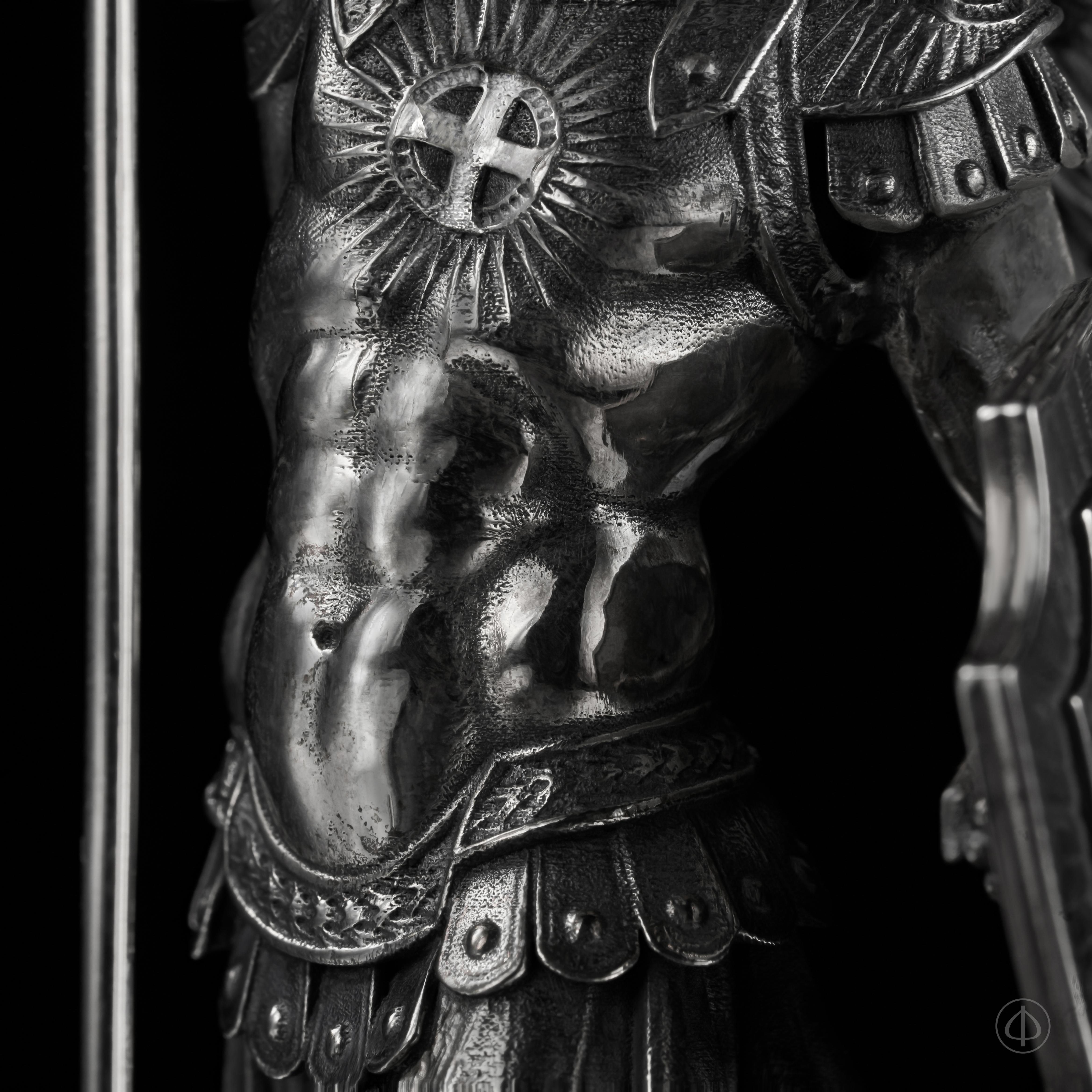 Обратите внимание на исполнение статуэтки. Каждая деталь изделия проработана ювелирами с безупречной точностью. Реалистичность статуэтки придает фактурная отделка, а чернение на серебре создает дополнительный объем и глубину.
