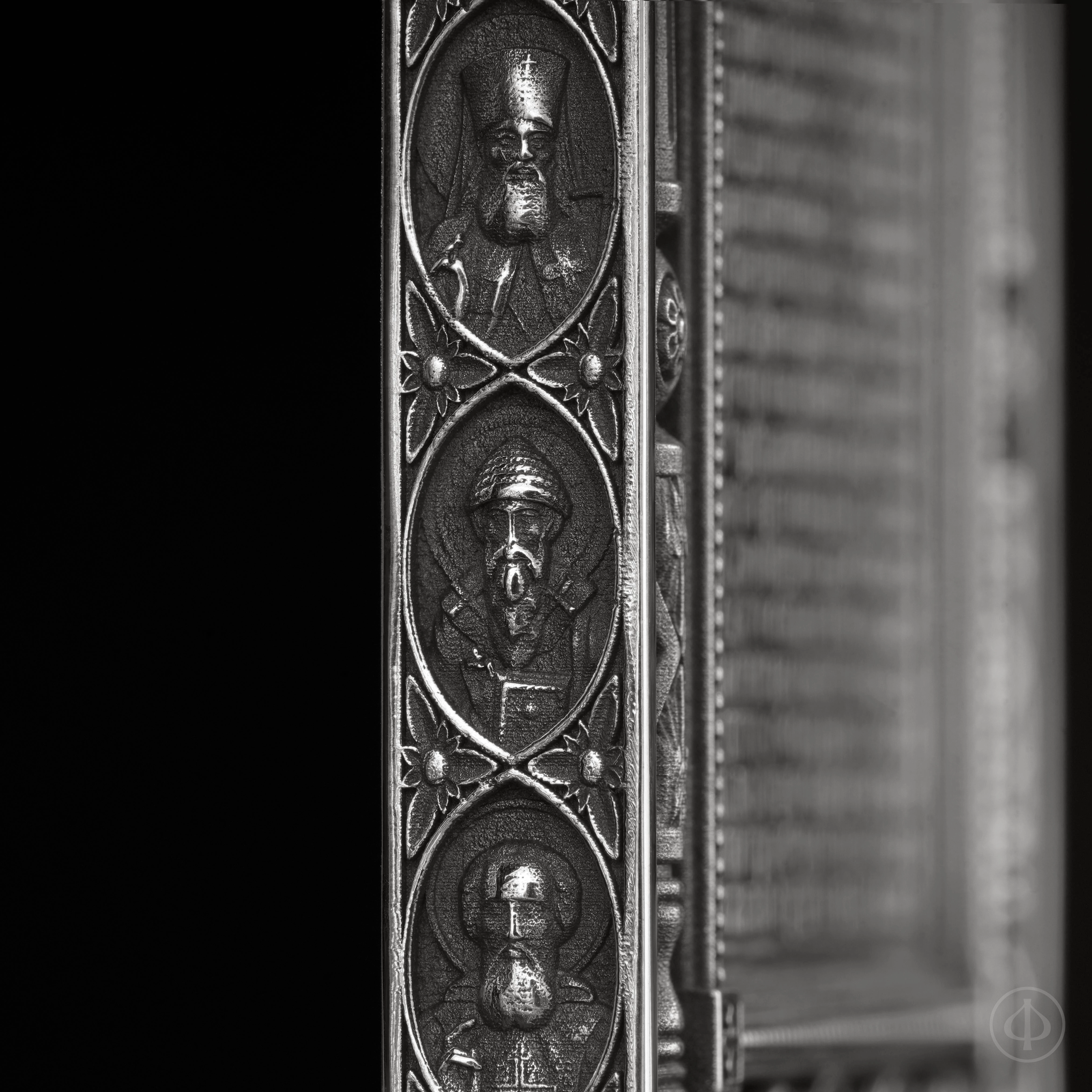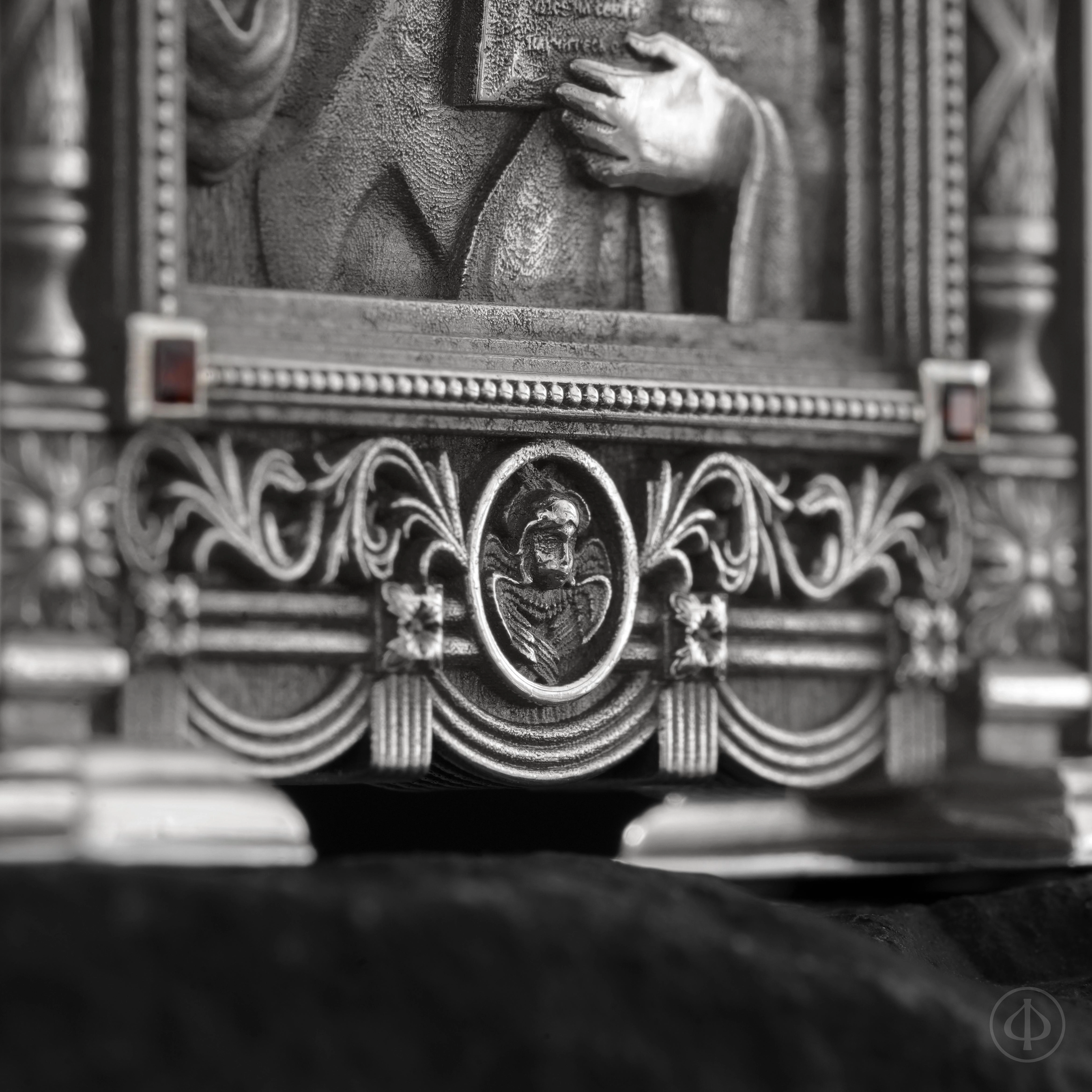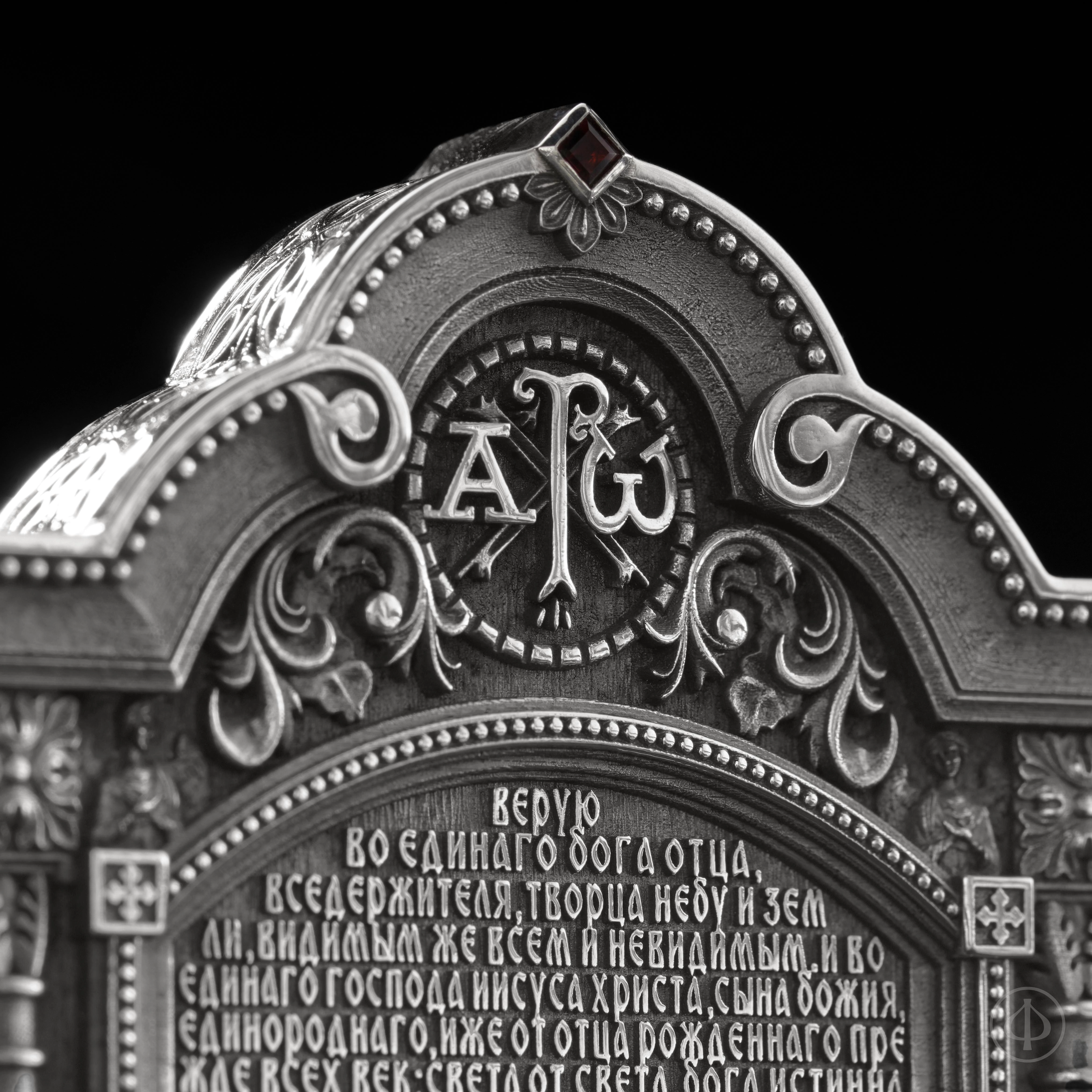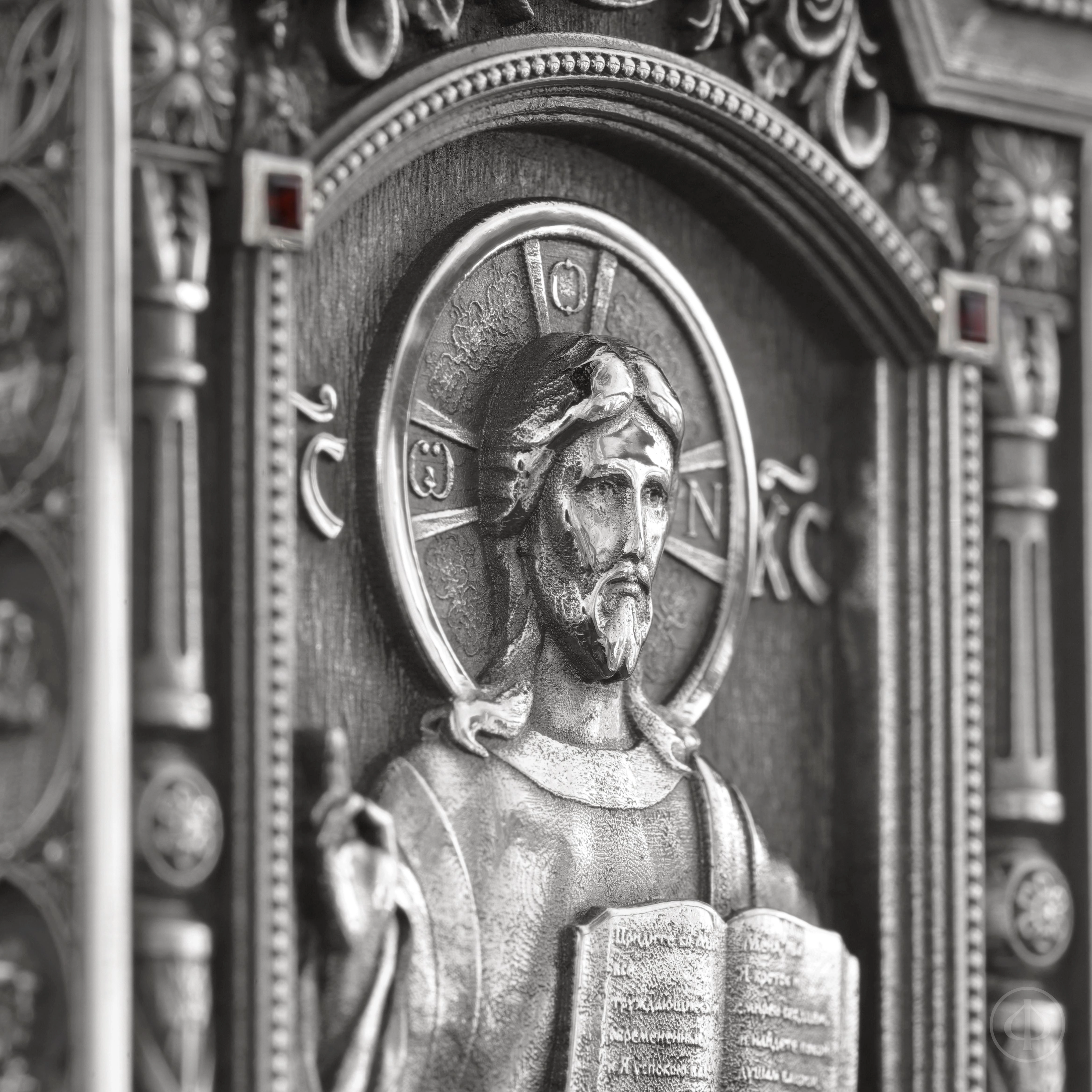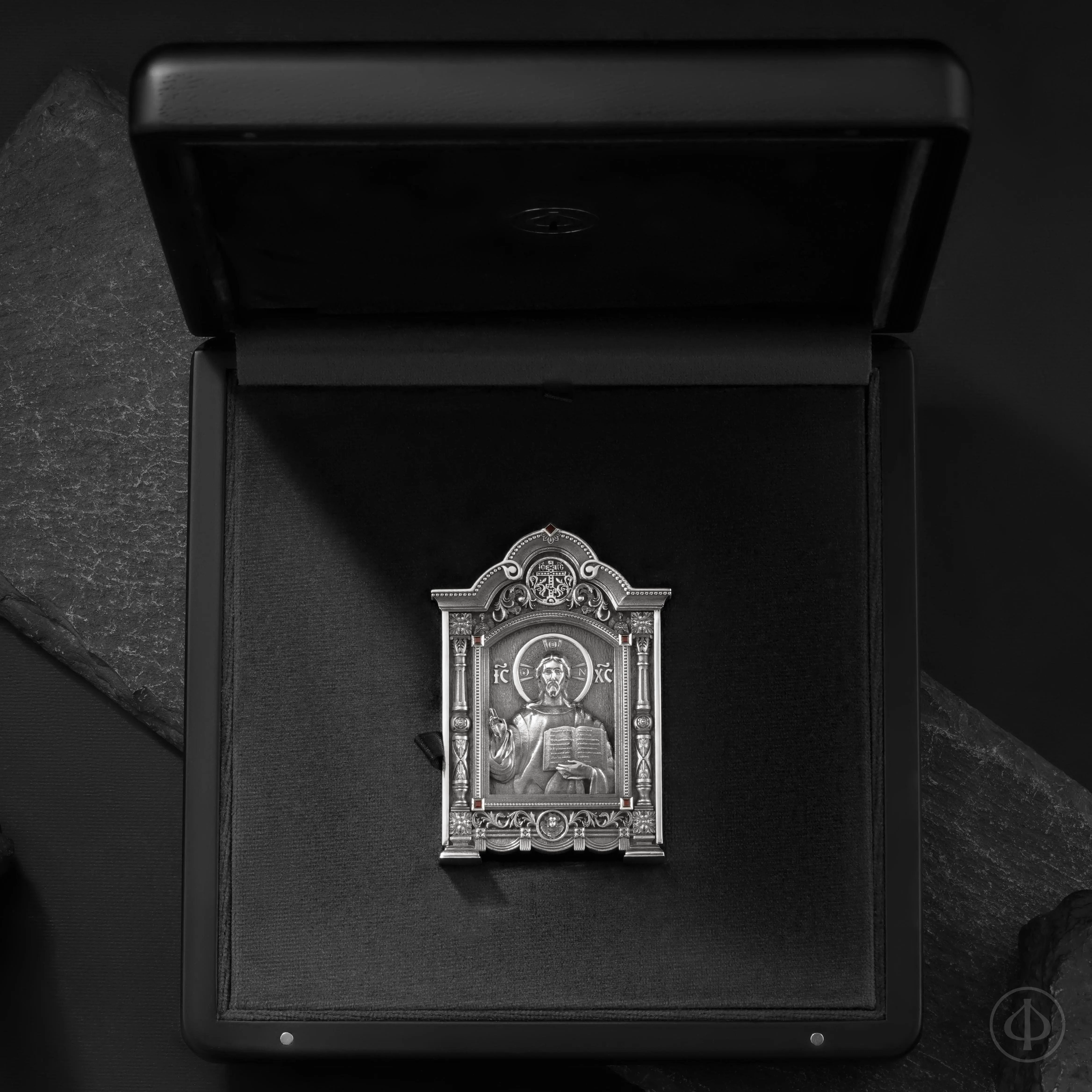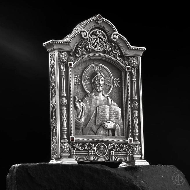 Настольная икона "Господь Вседержитель" с шестью вставками огранкой квадрат из драгоценных и полудрагоценных камней.